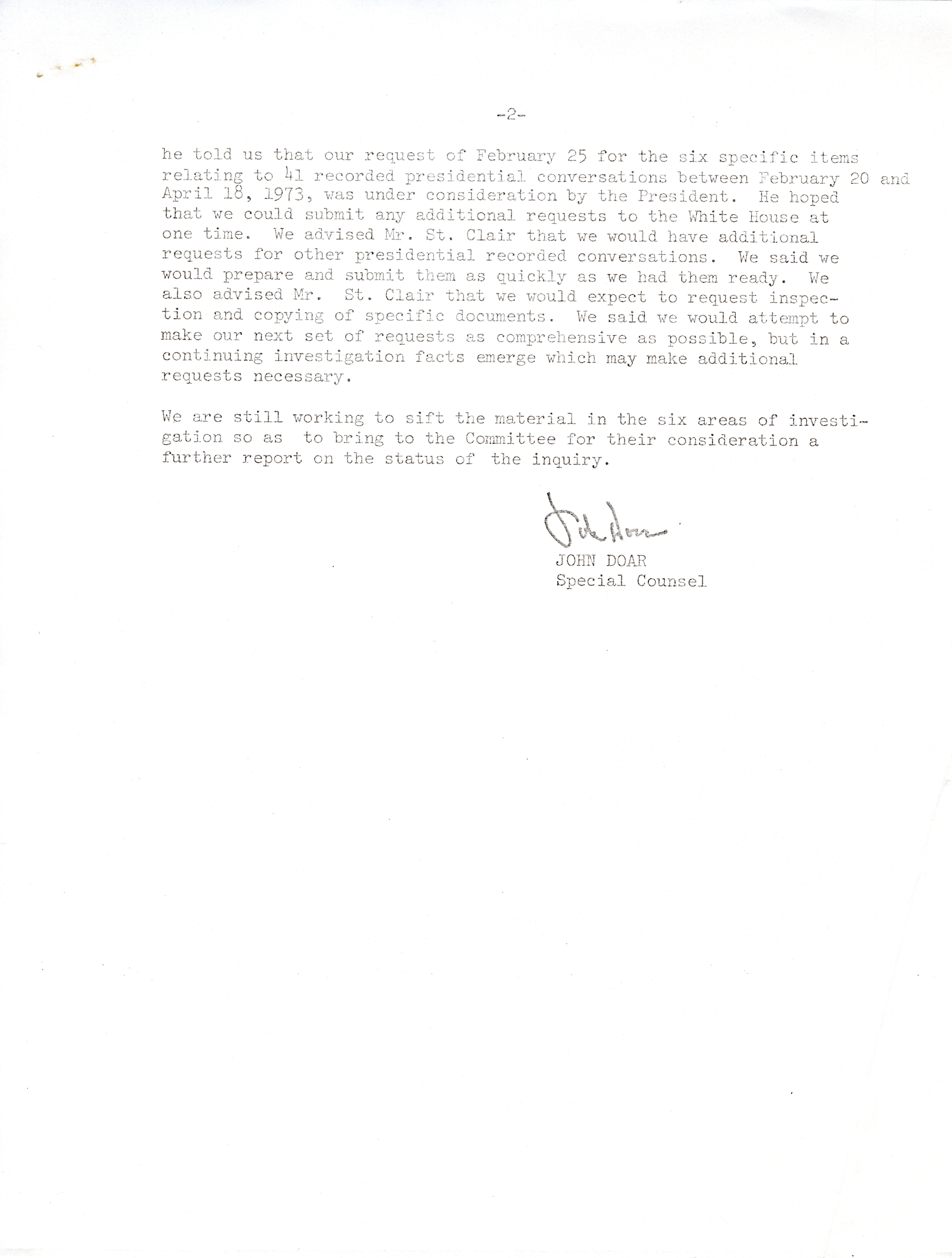 - "Memorandum to Members of the Judiciary Committee from Special Counsel John Doar, March 26, 1974", Edward Mezvinsky Collection, Iowa State University Library Digital Collections