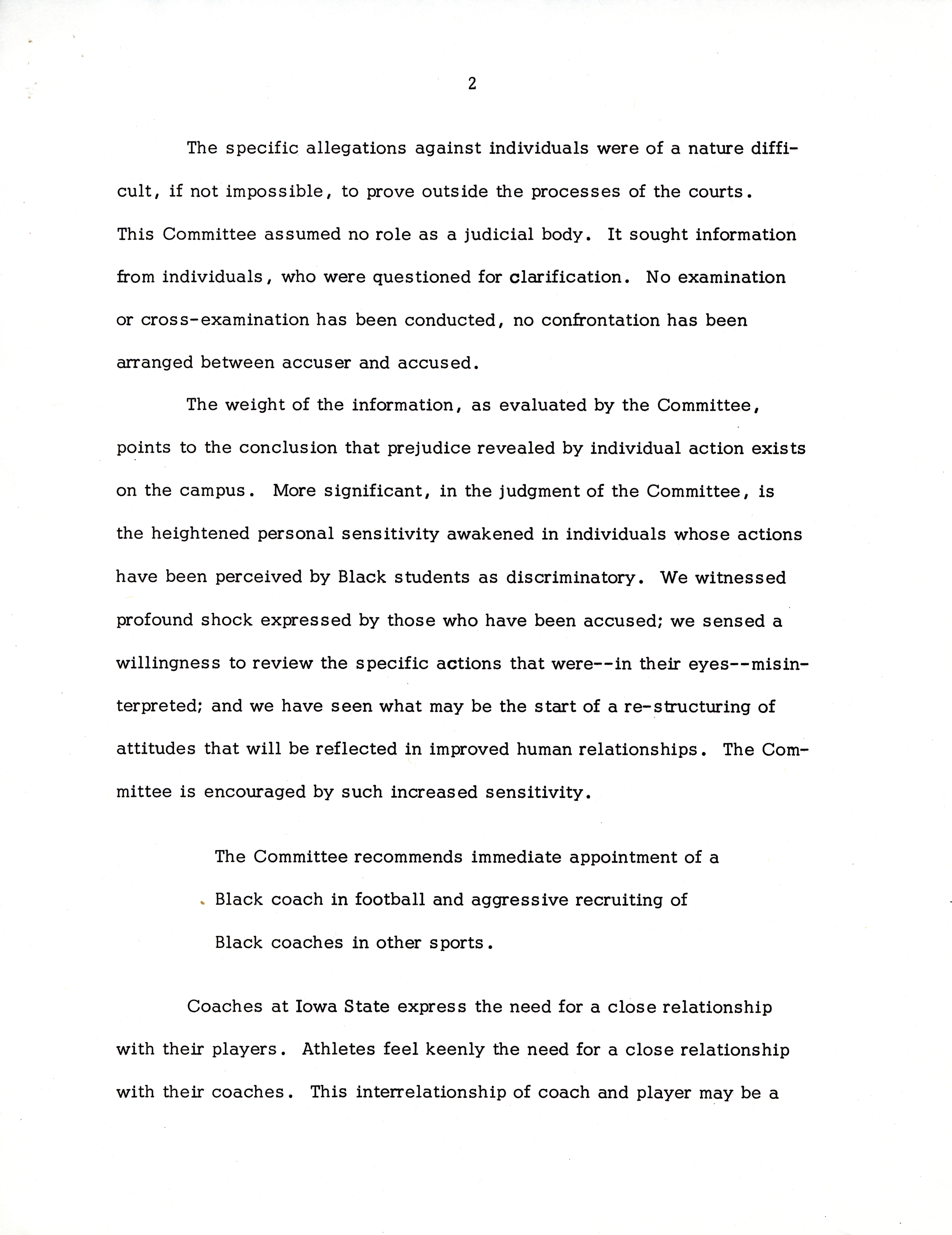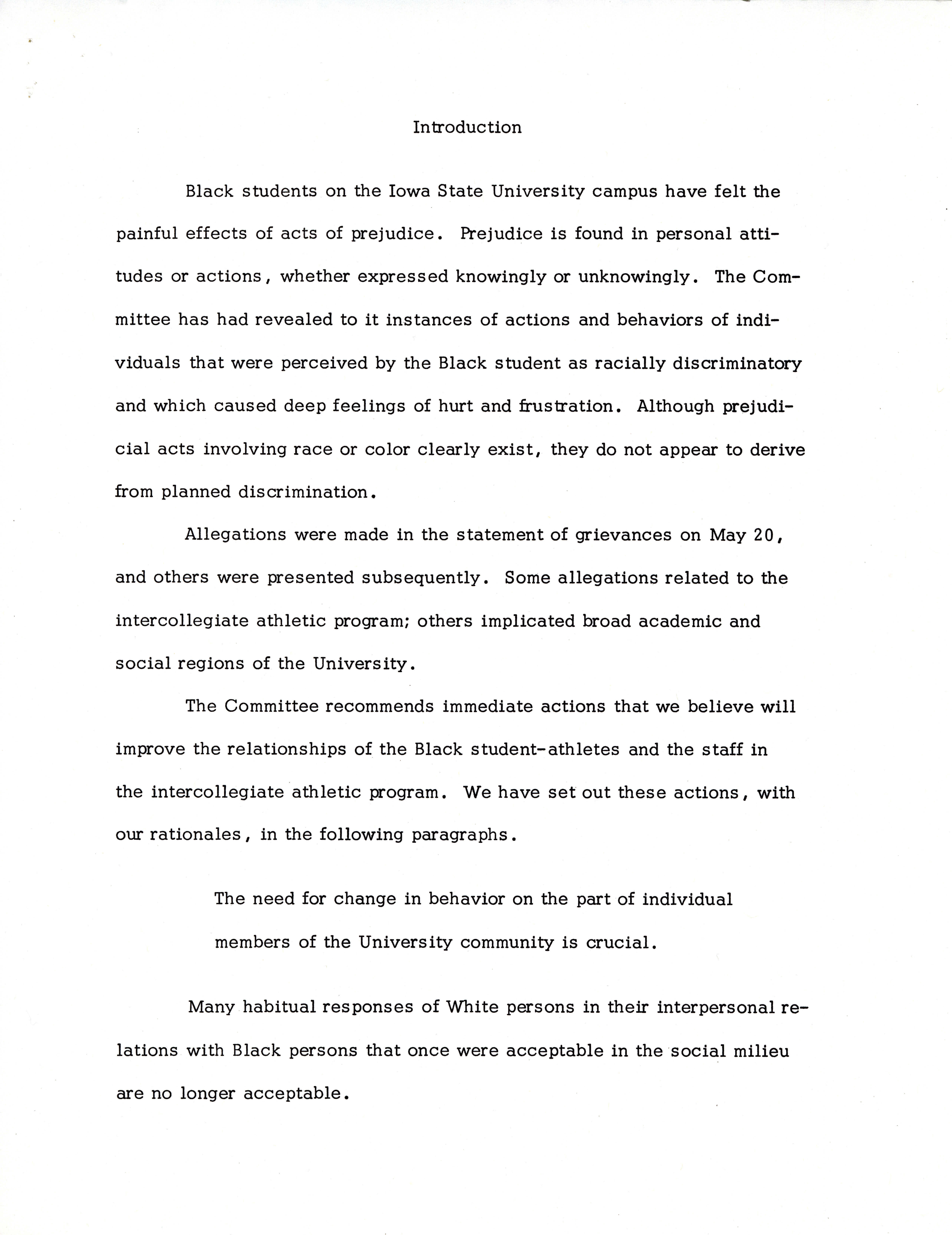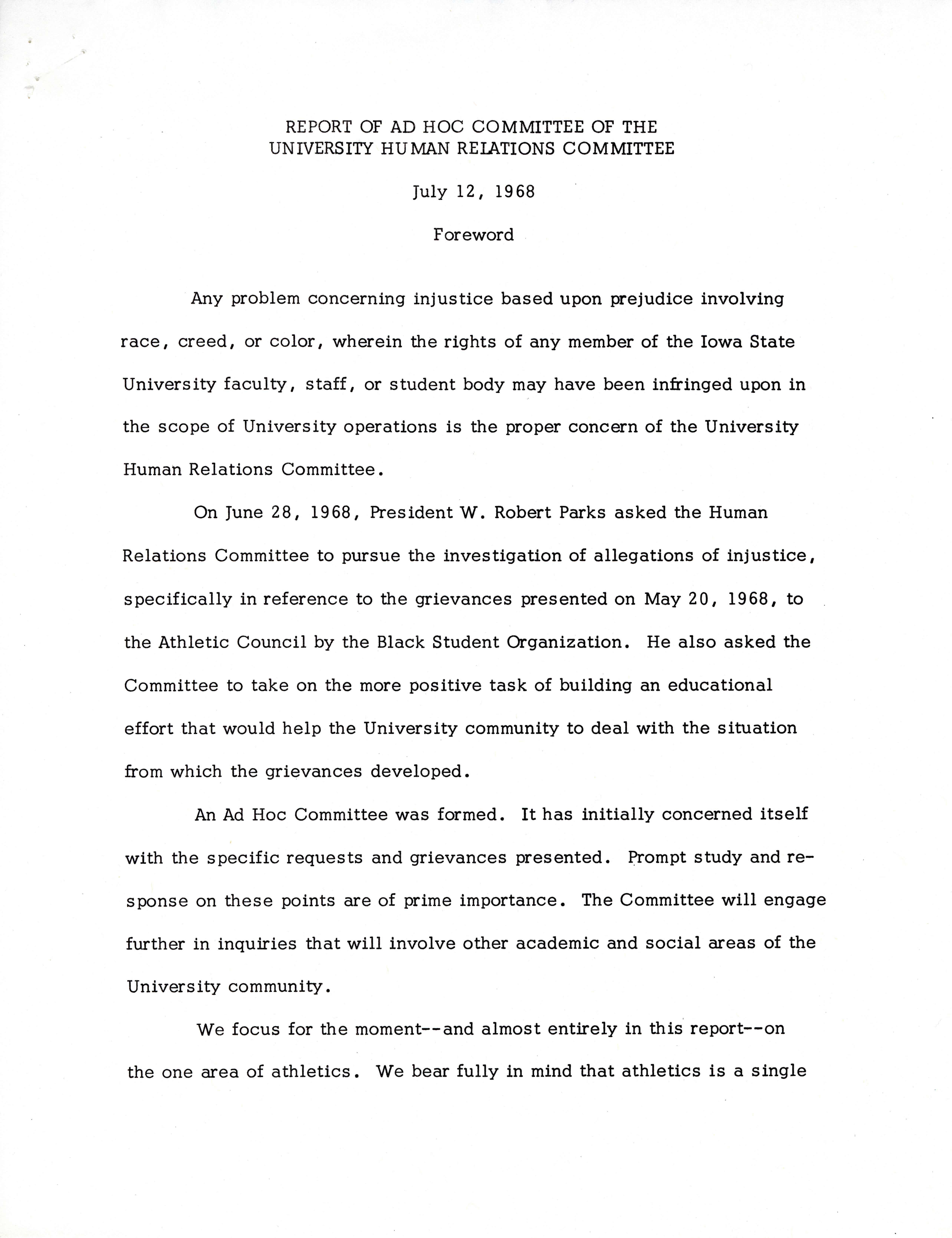- Report of ad hoc committee of the Iowa State University Human Relations Committee, July 12, 1968