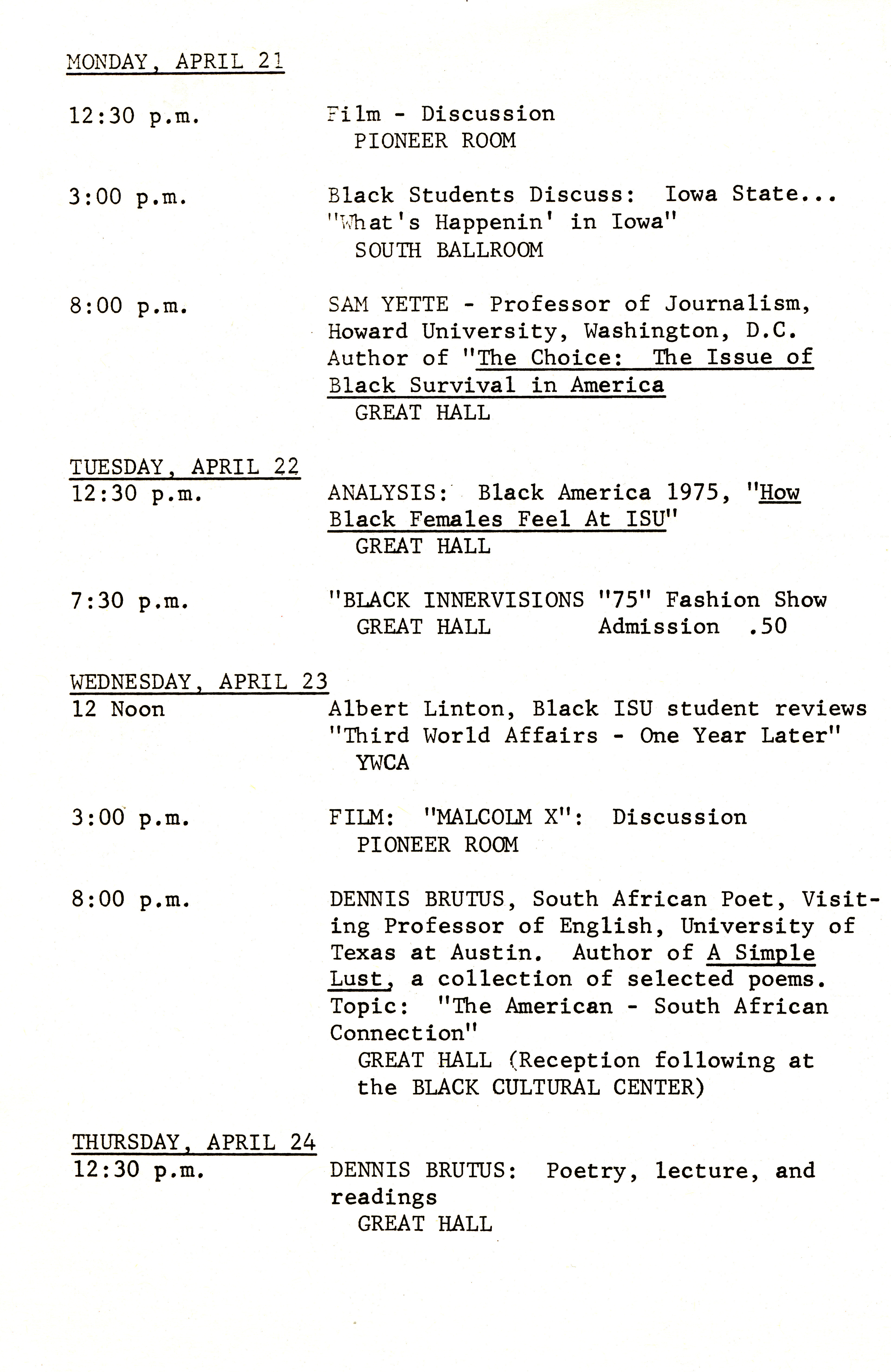 - Symbiosis? Black Students and Iowa State: schedule of events