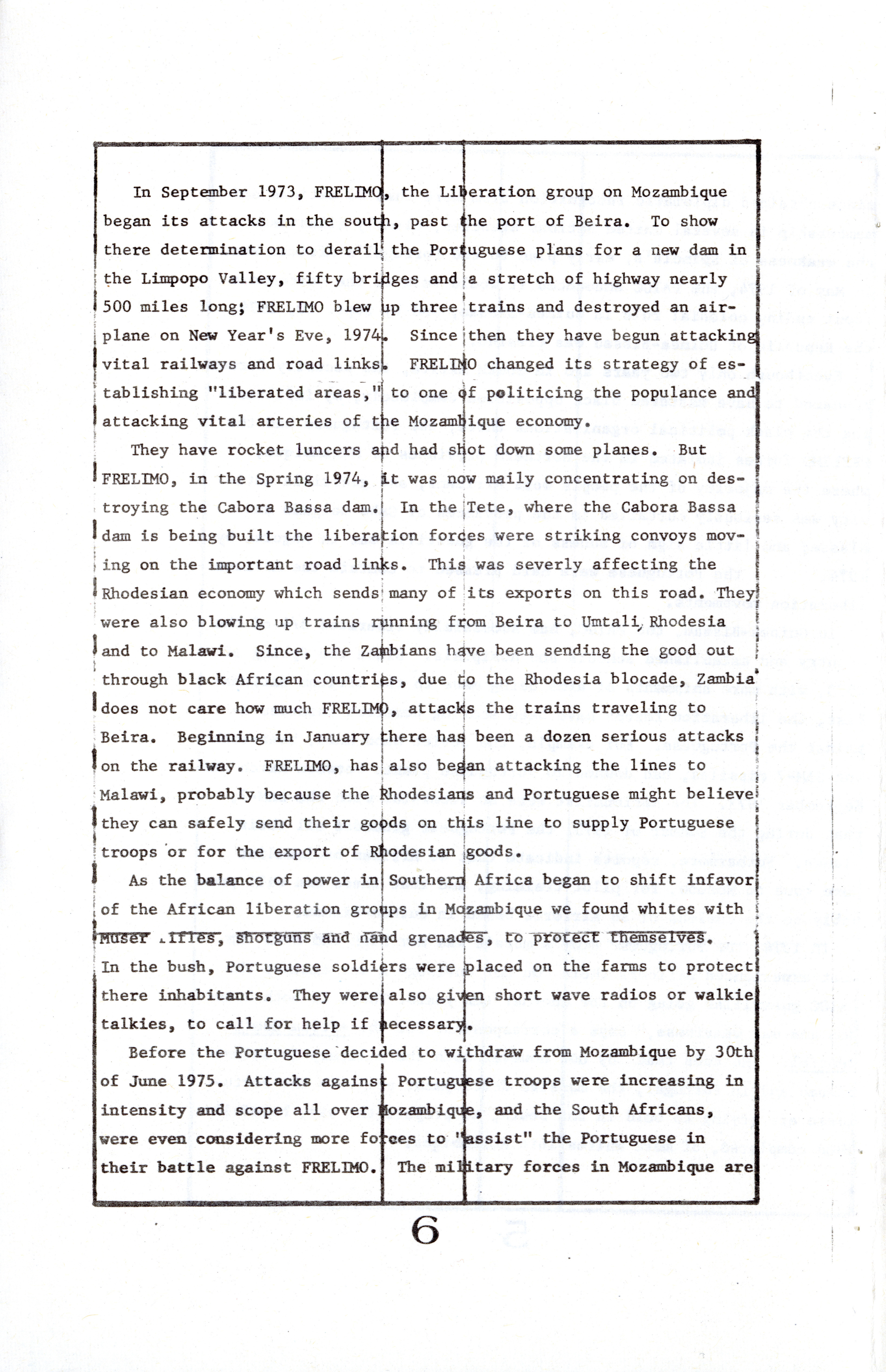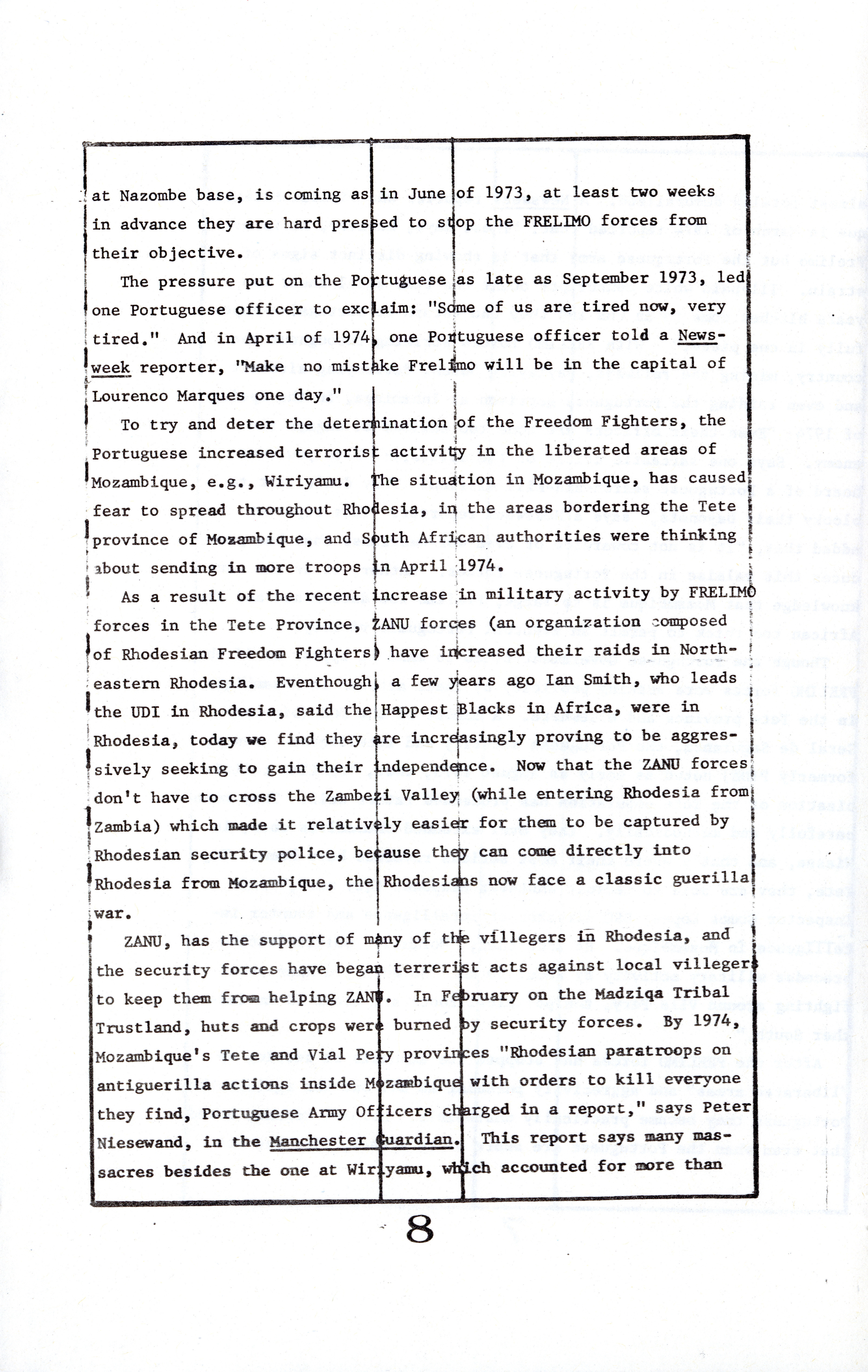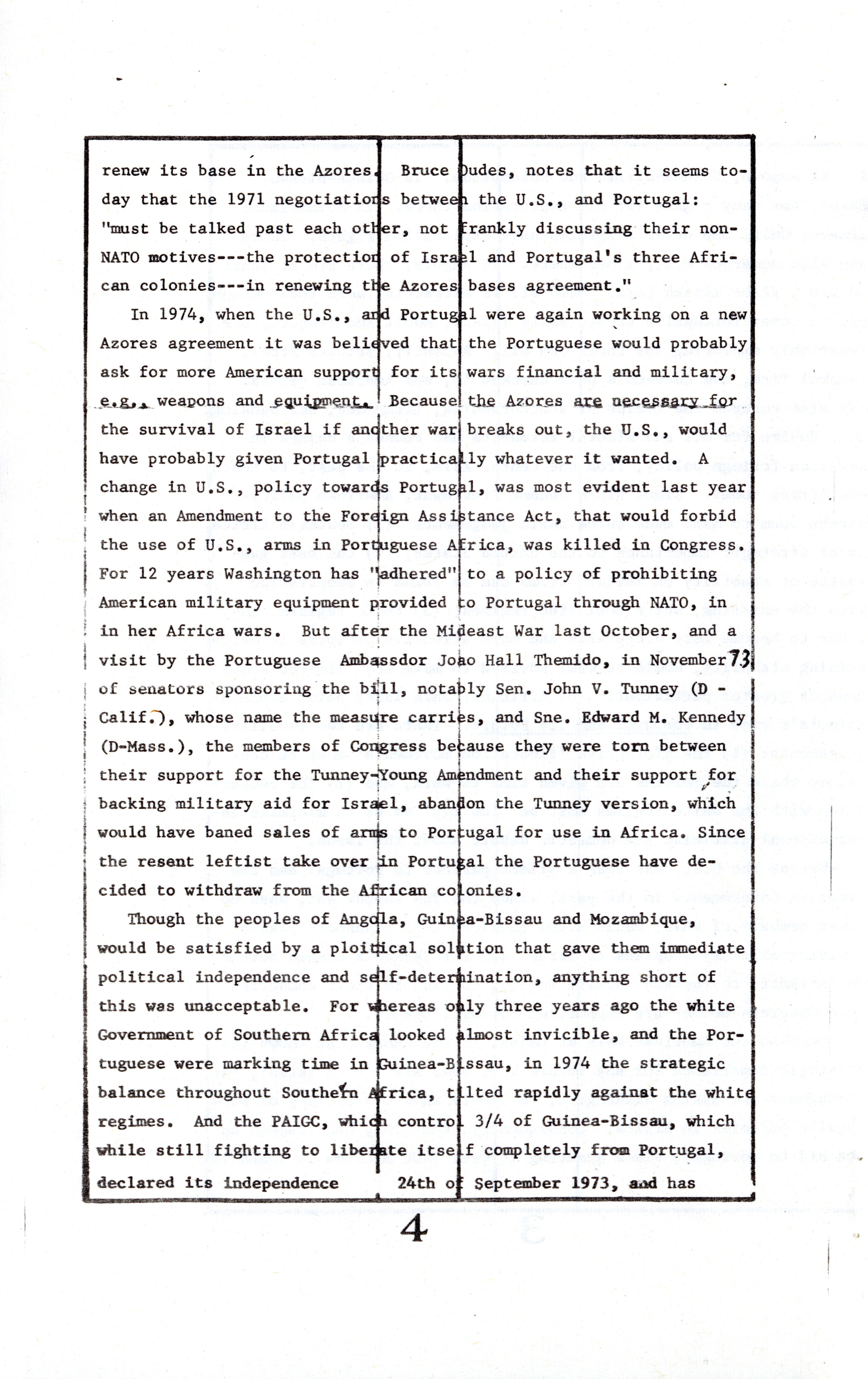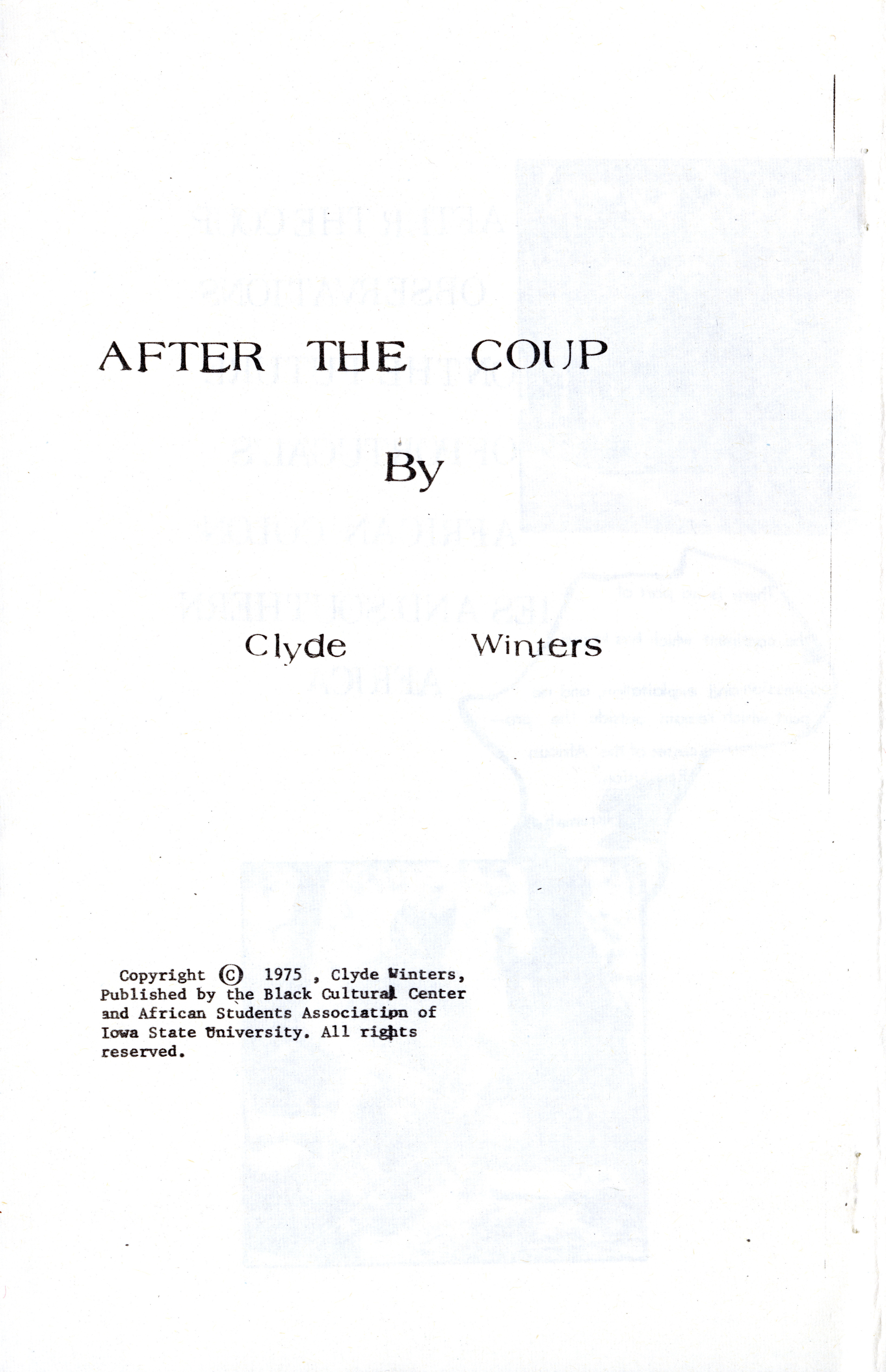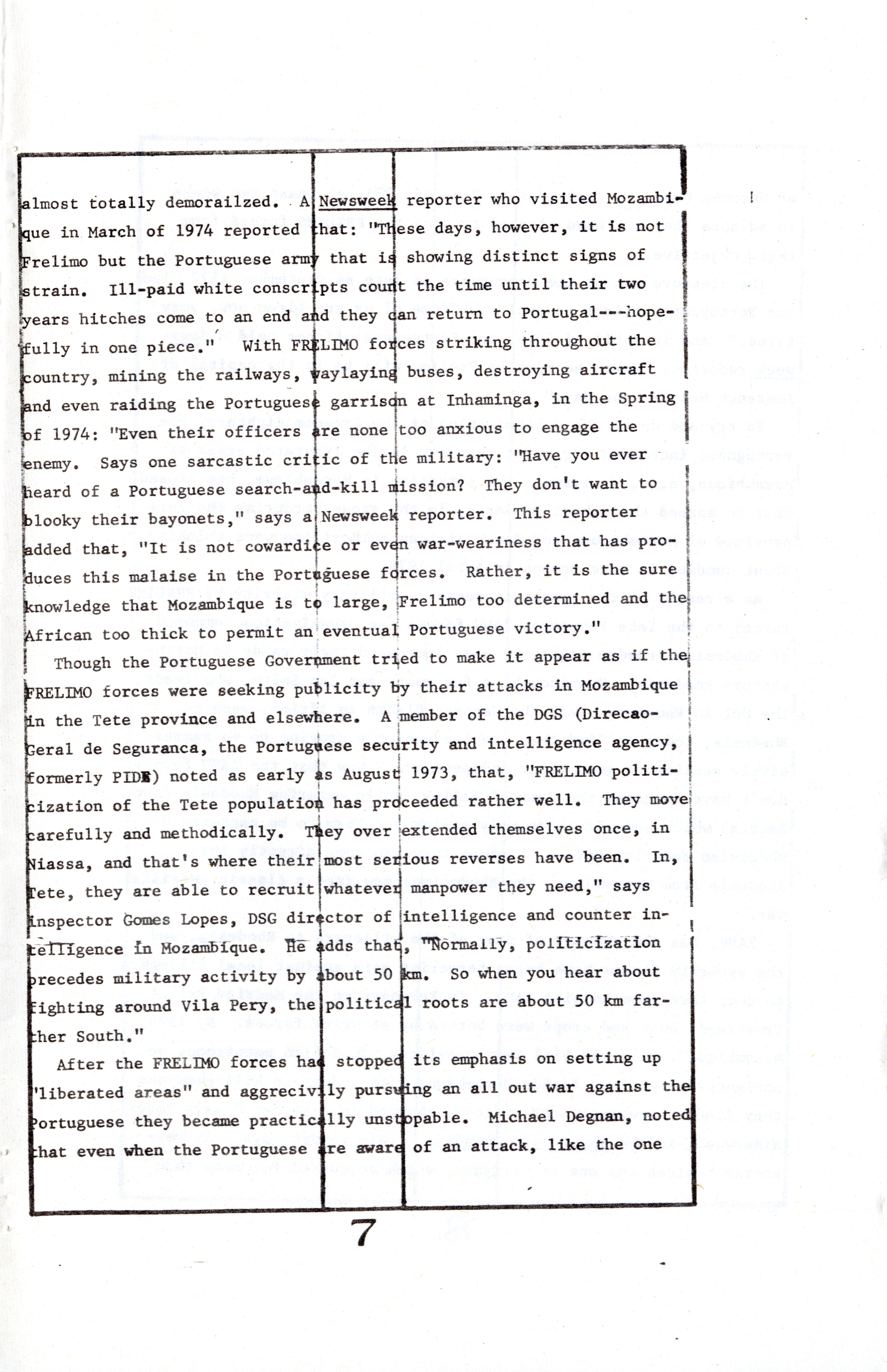 - "After the coup: observations on the future of Portugal's African colonies and Southern Africa", Iowa State University Multicultural Student Organizations Collection, Iowa State University Library Digital Collections