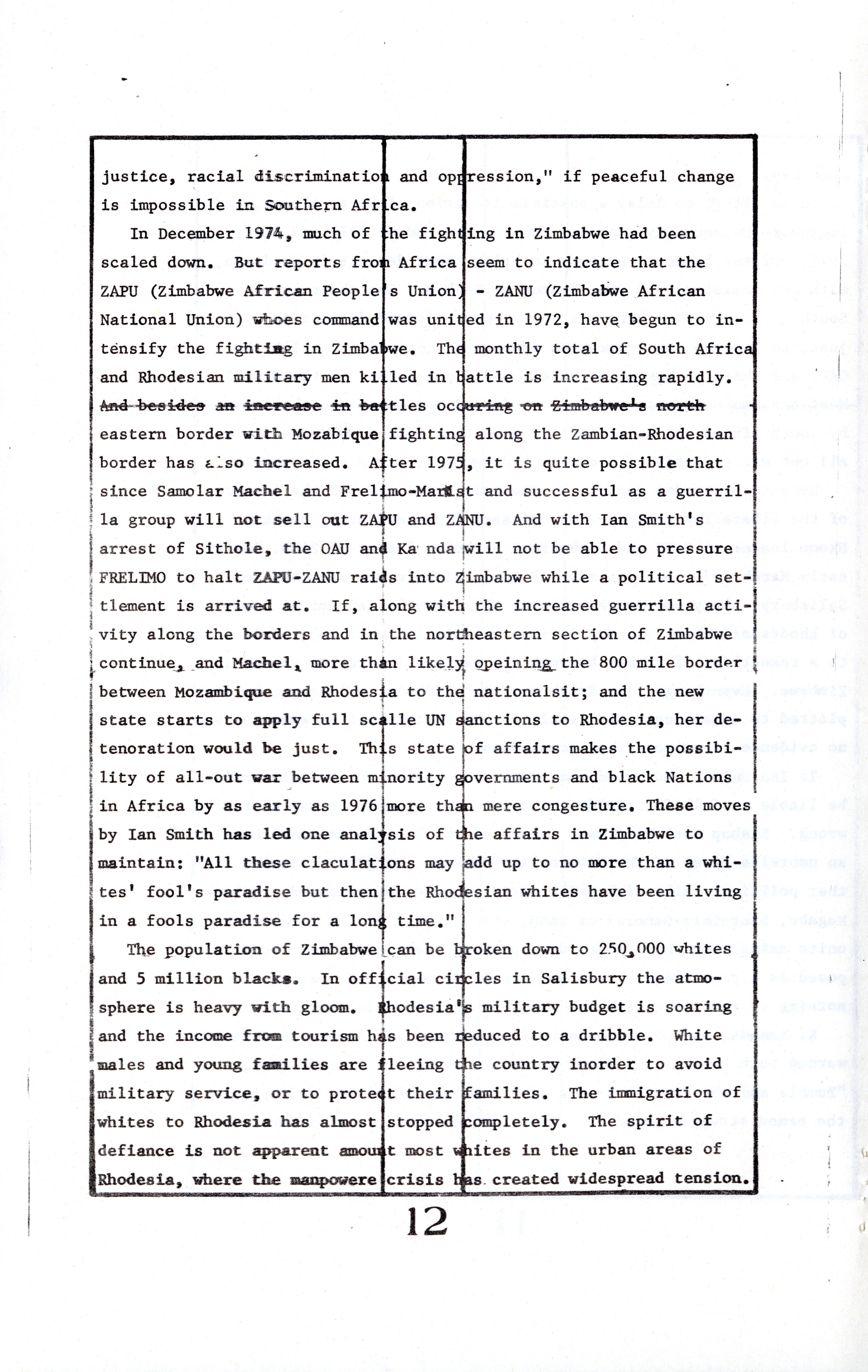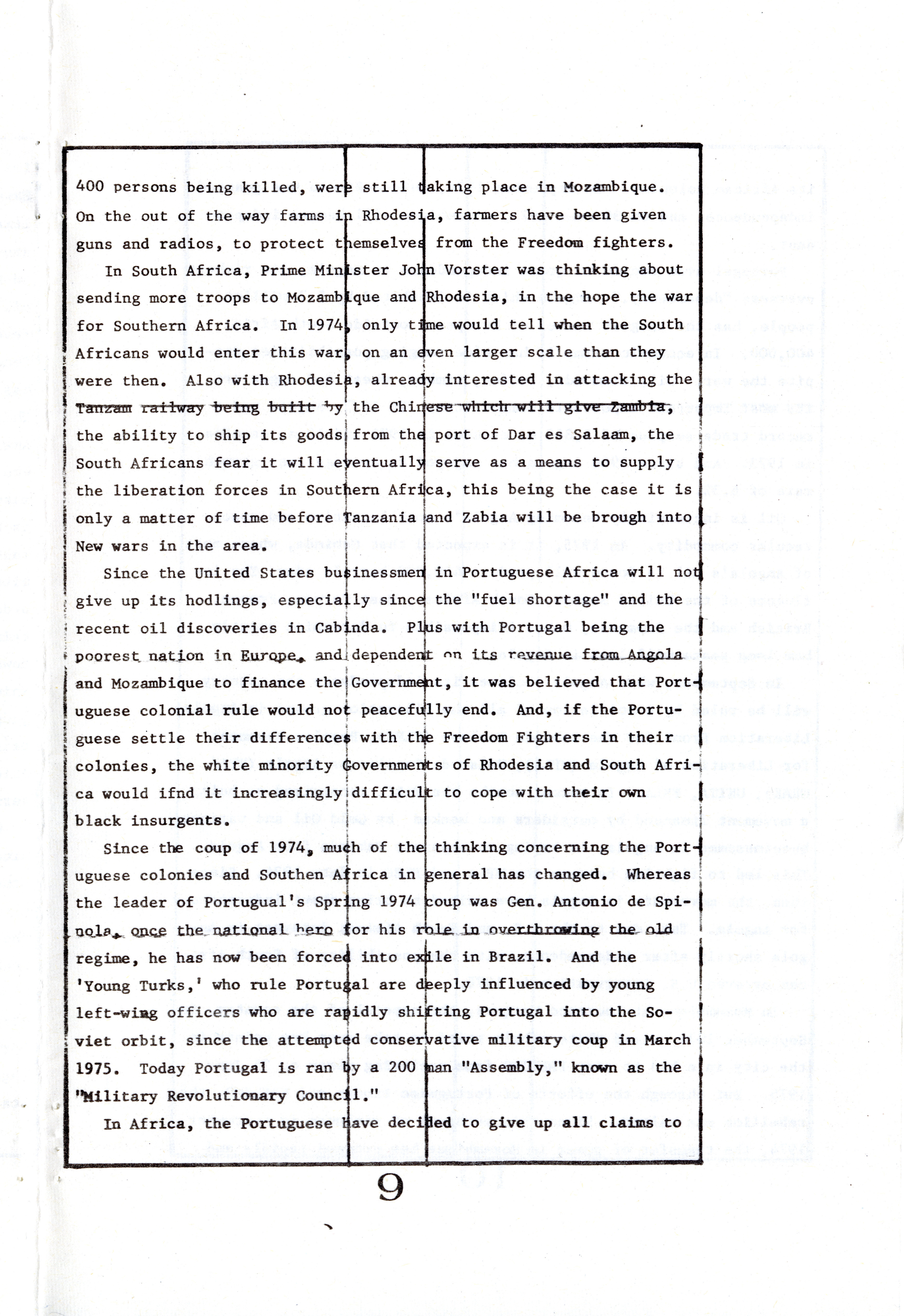 - Editorial written on the future of Portugal's African colonies and southern Africa after the coup in Portugal.