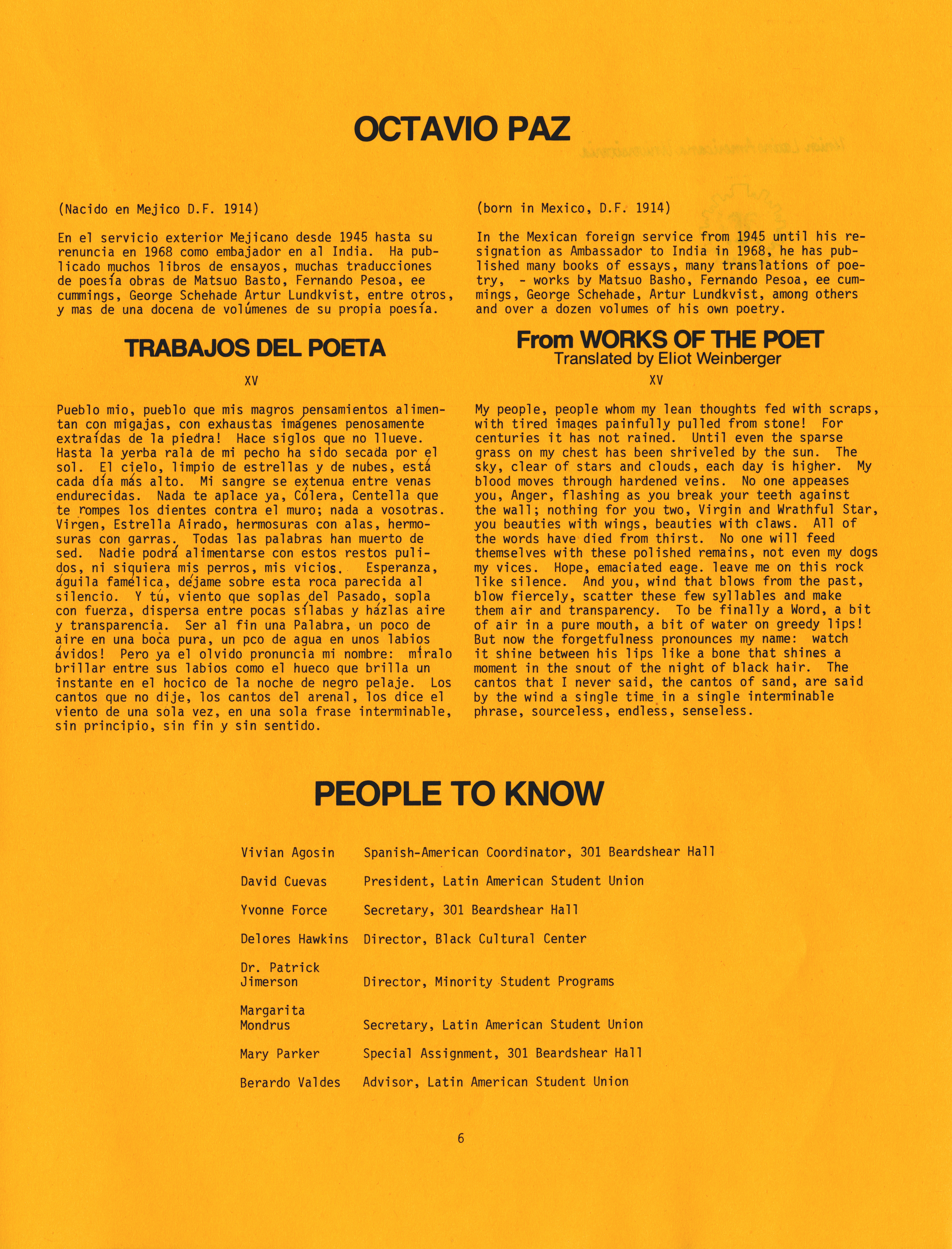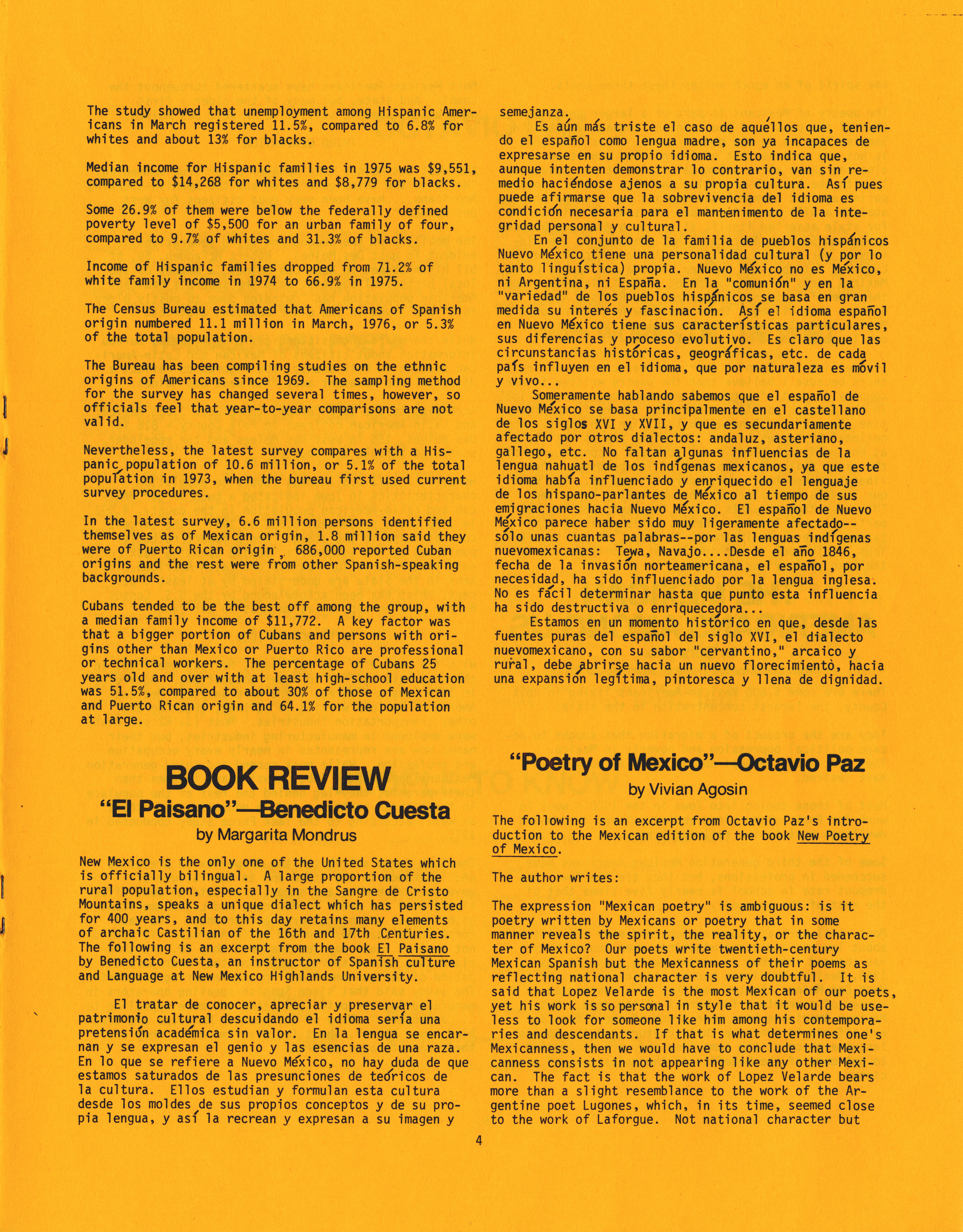 - Las Noticias--Latin American Student Union newsletter, Winter 1977