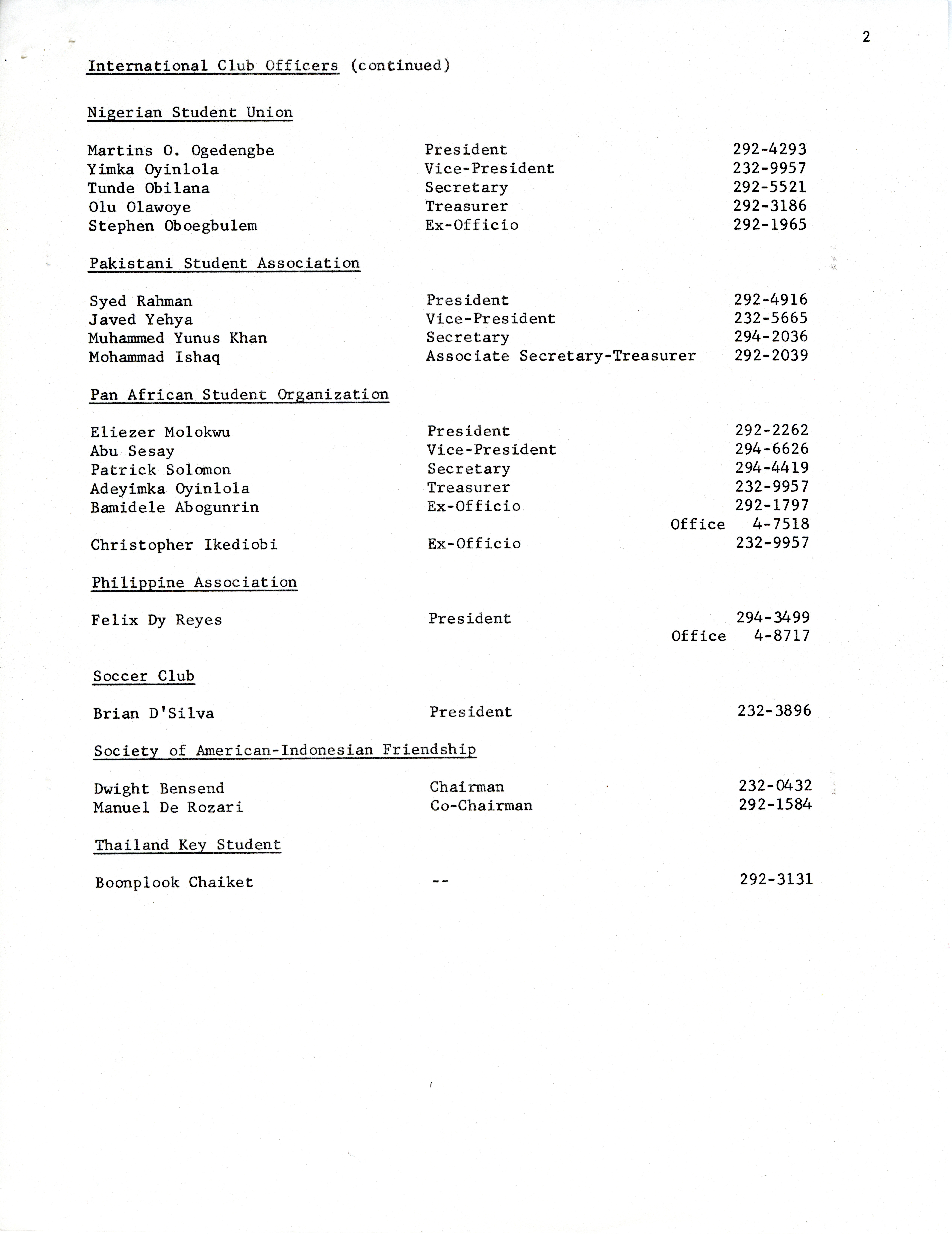 - "List of international club officers", Iowa State University Multicultural Student Organizations Collection, Iowa State University Library Digital Collections