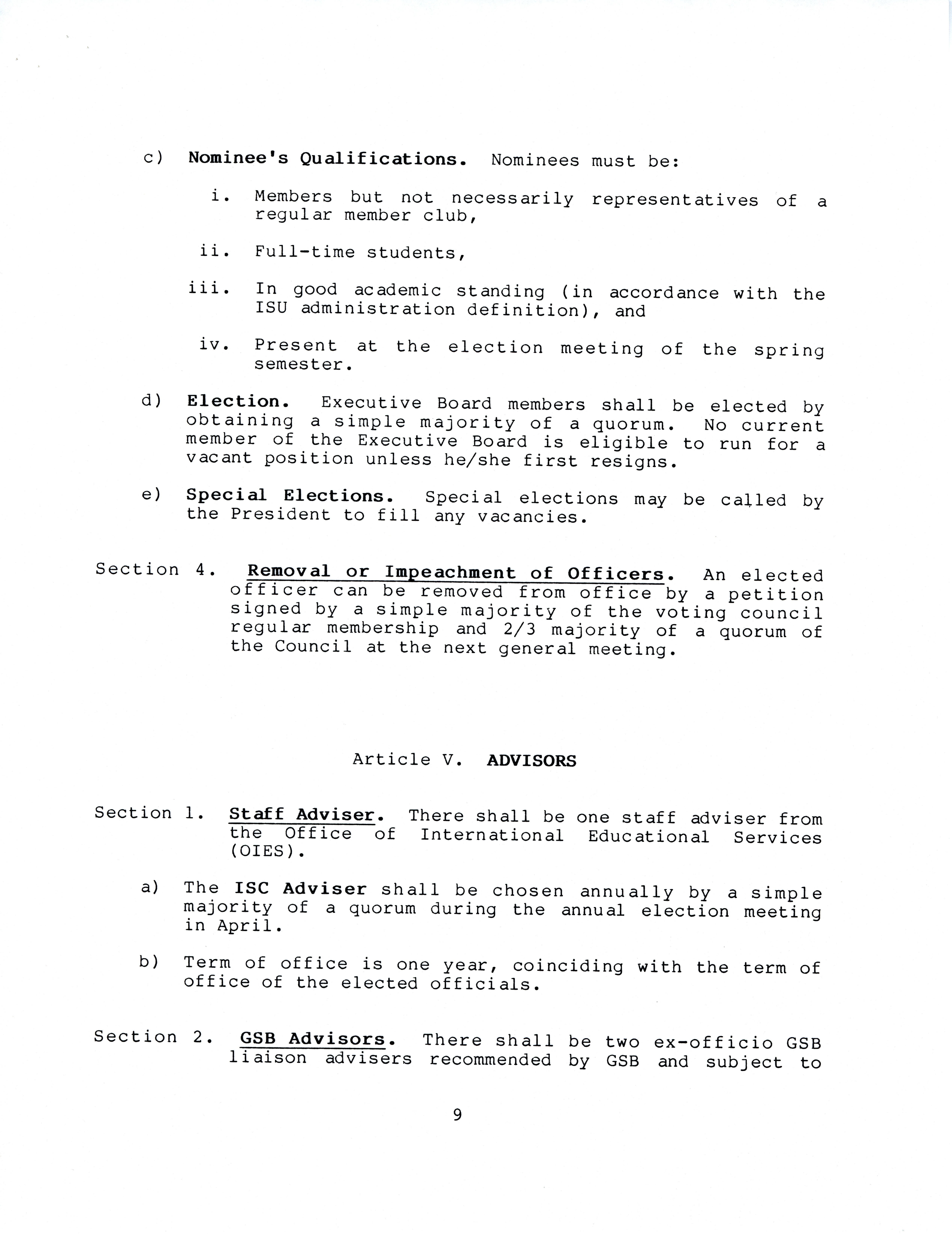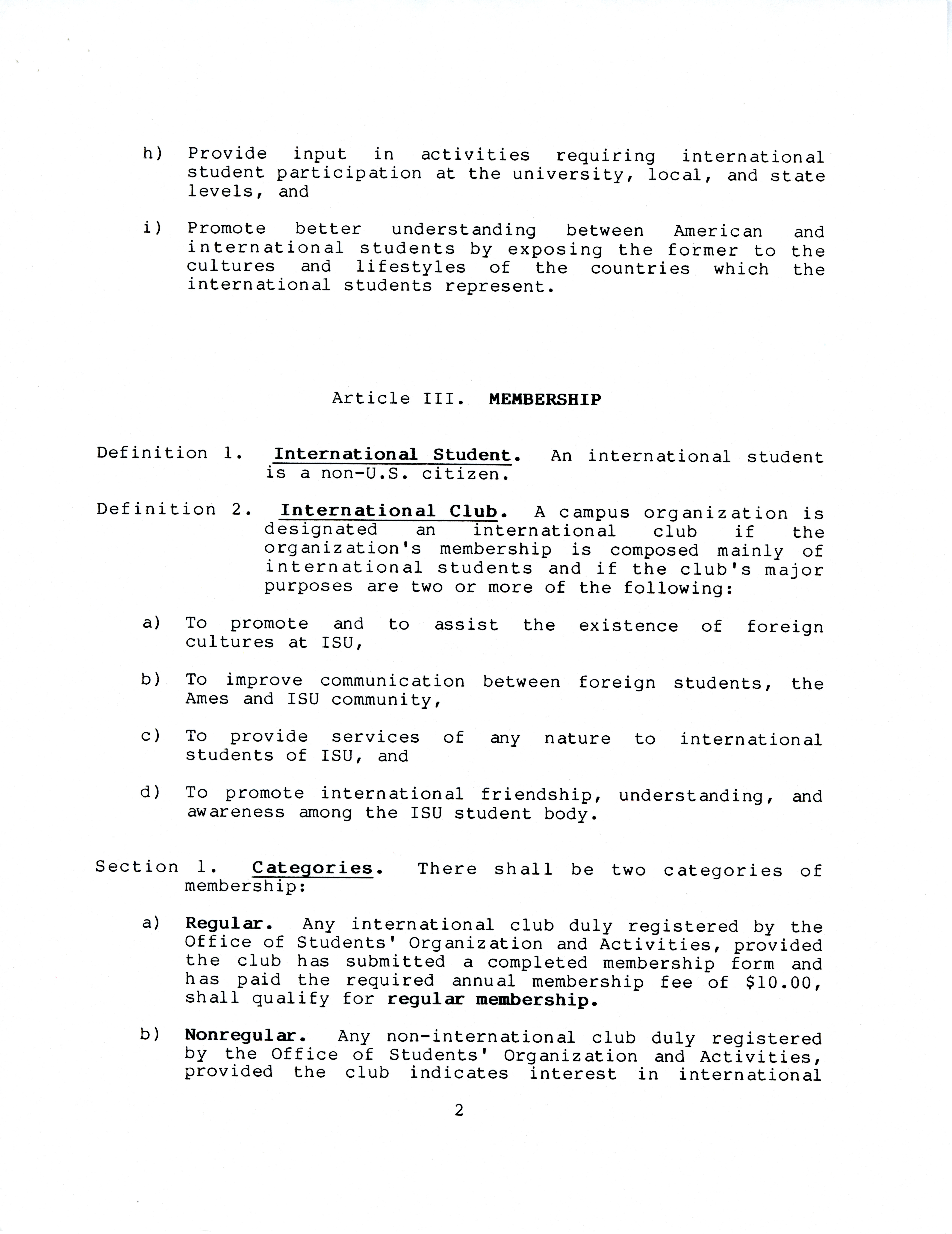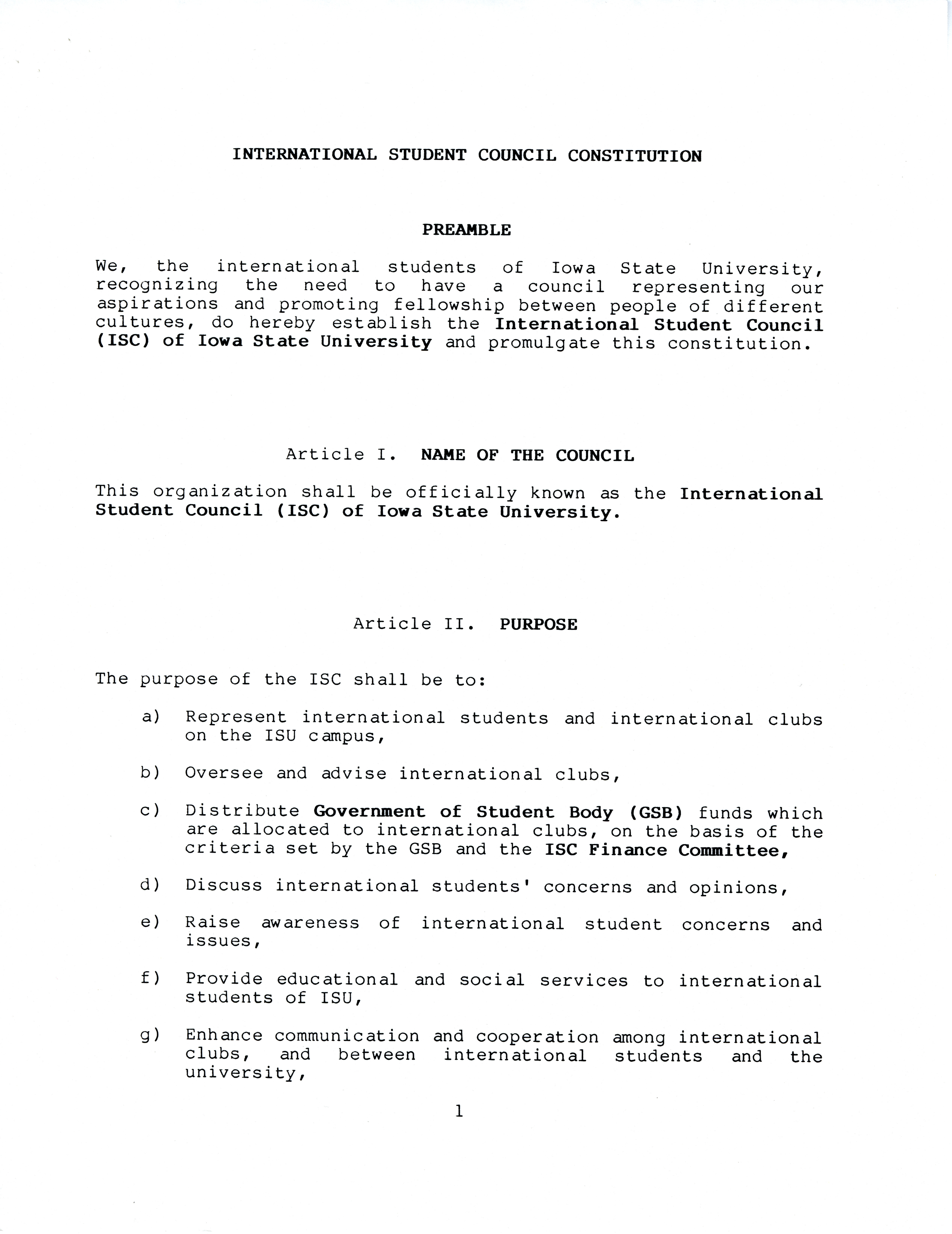 - "Constitution of the International Student Council, April 3, 1989", Iowa State University Multicultural Student Organizations Collection, Iowa State University Library Digital Collections