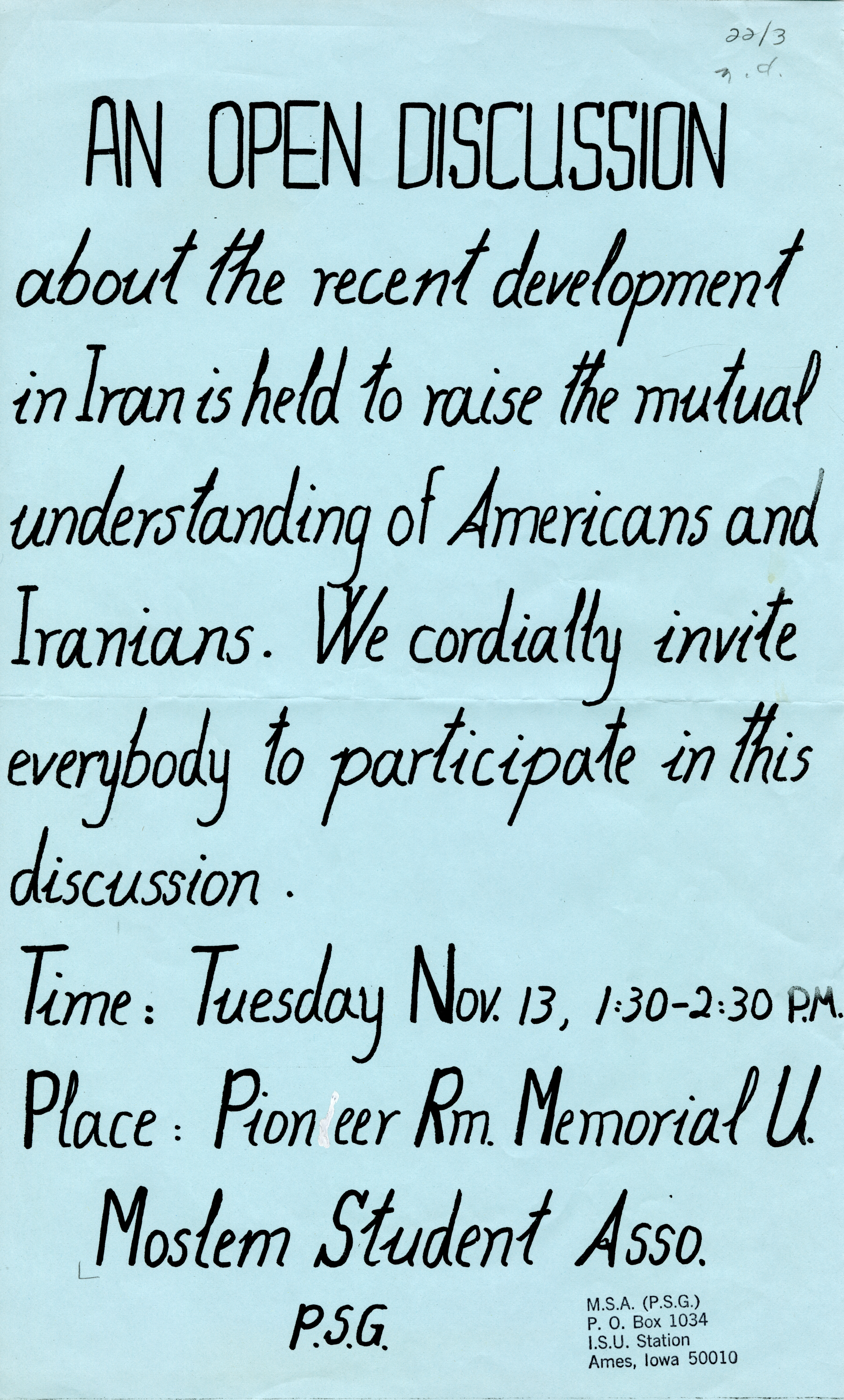 - "Open discussion announcement", Iowa State University Multicultural Student Organizations Collection, Iowa State University Library Digital Collections