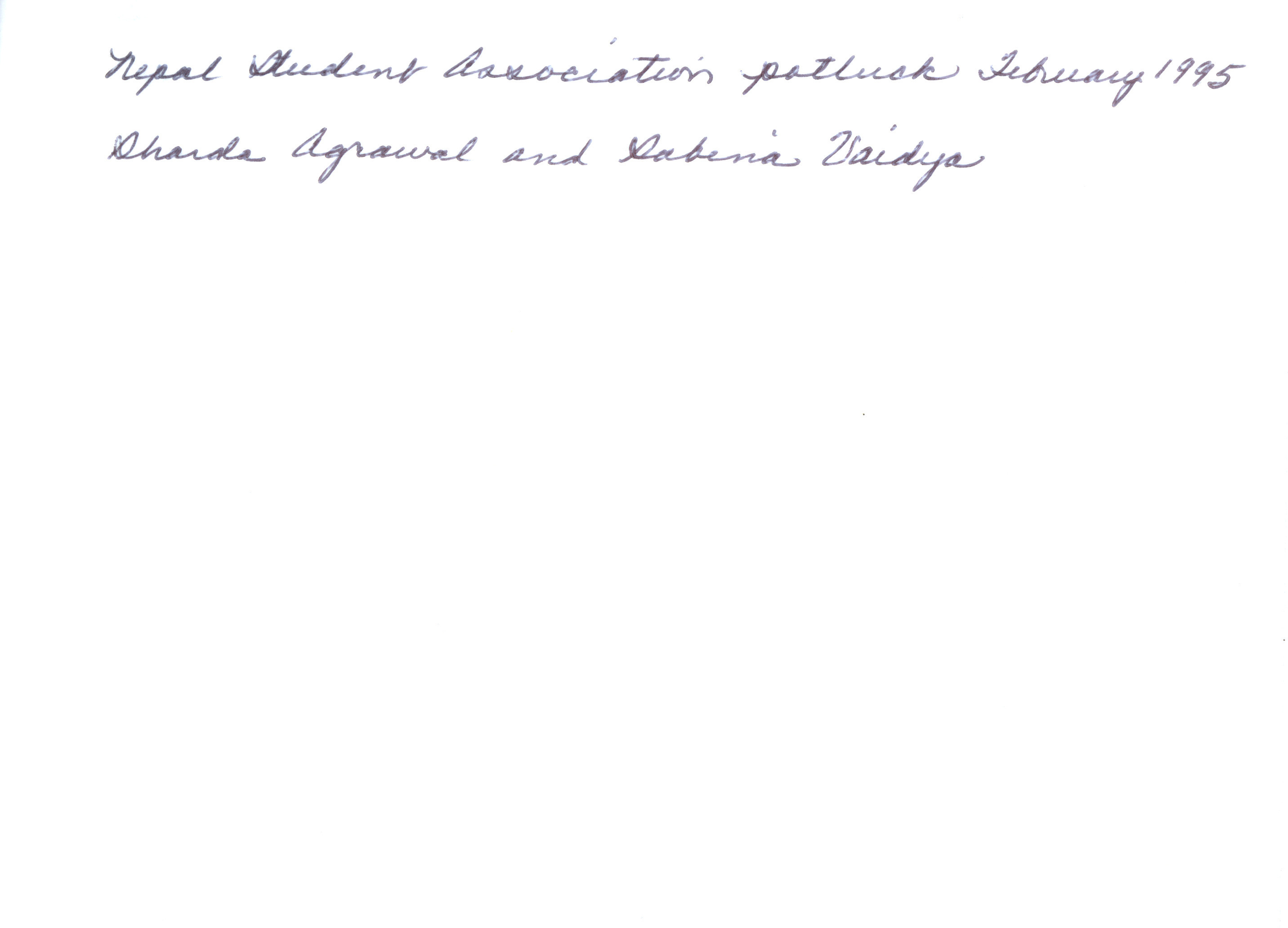 - "Photograph of Sharda Agrawal and Sabina Vaidya at the Nepal Student Association potluck", Iowa State University Multicultural Student Organizations Collection, Iowa State University Library Digital Collections