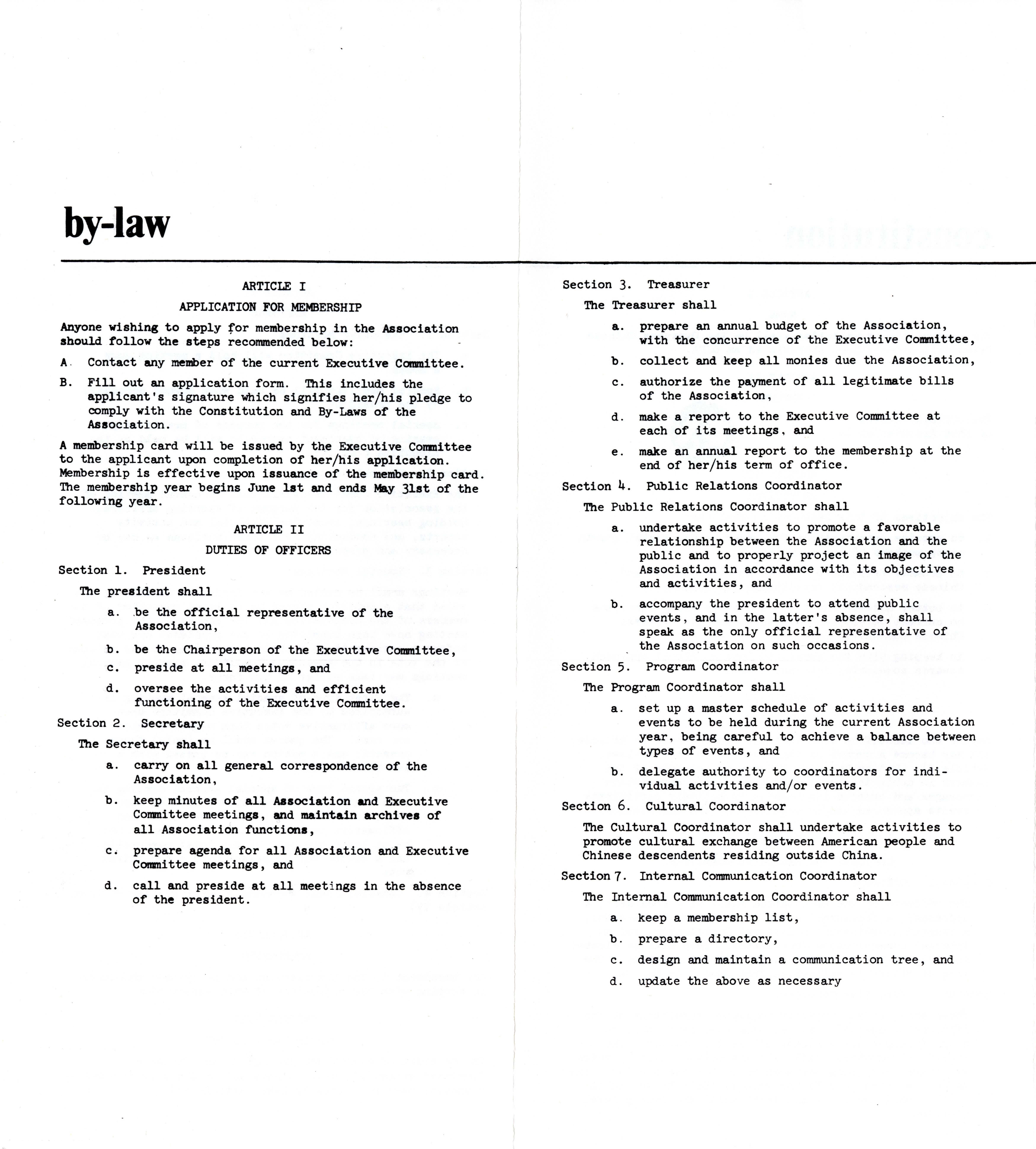 - Constitution and bylaws