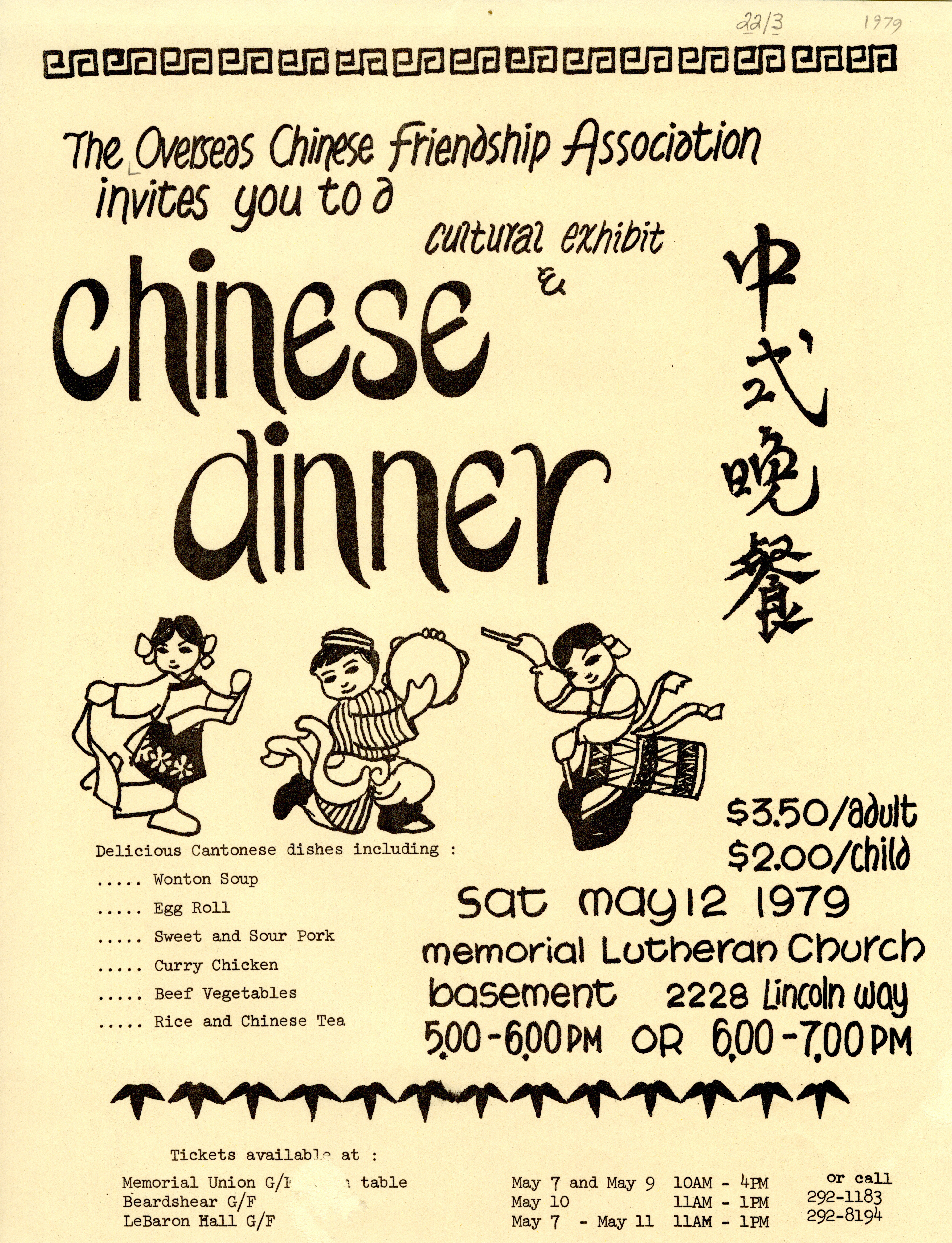 - "Cultural exhibit & Chinese dinner", Iowa State University Multicultural Student Organizations Collection, Iowa State University Library Digital Collections