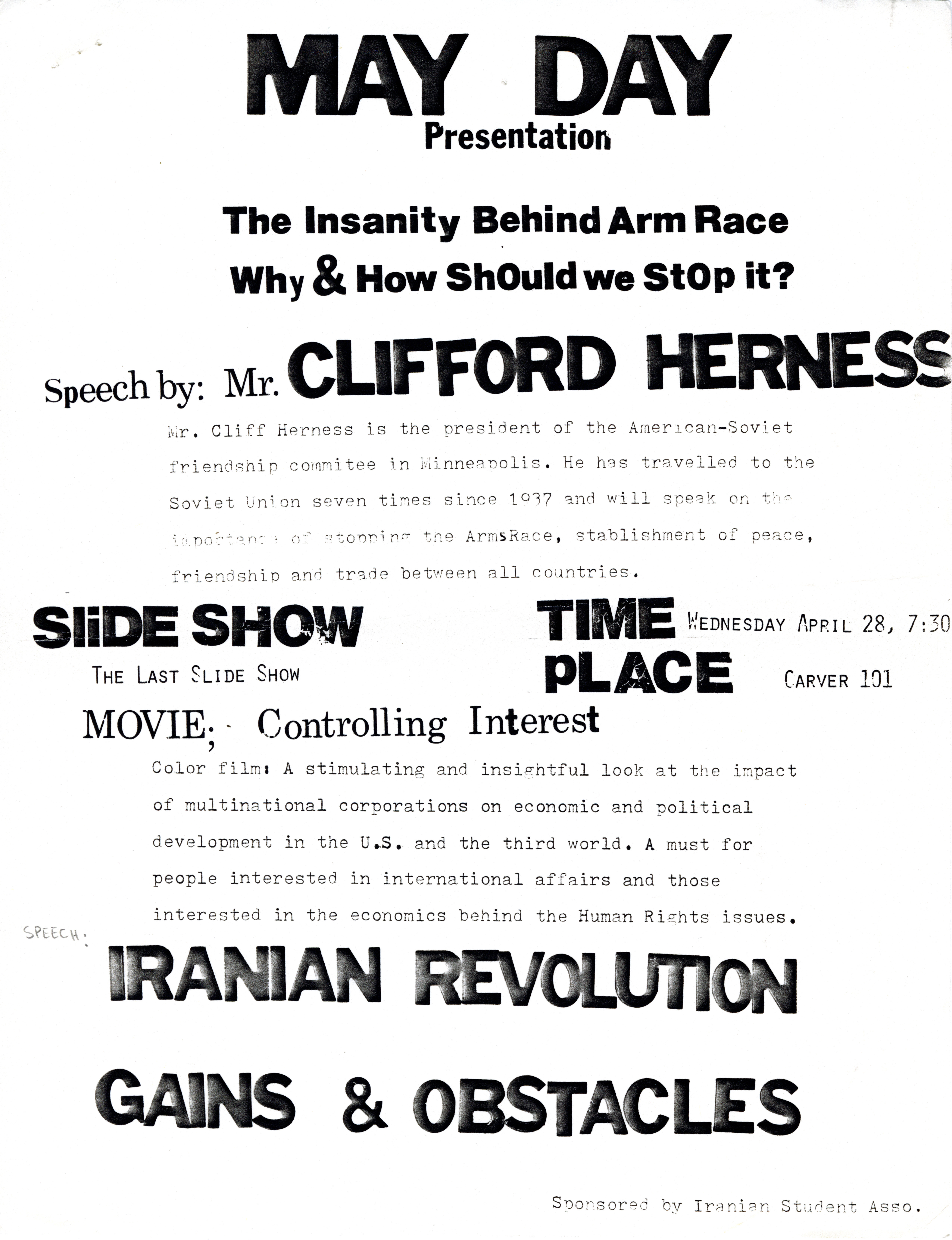 - Speeches, slide show, and movie sponsored by Iranian Student Association.
