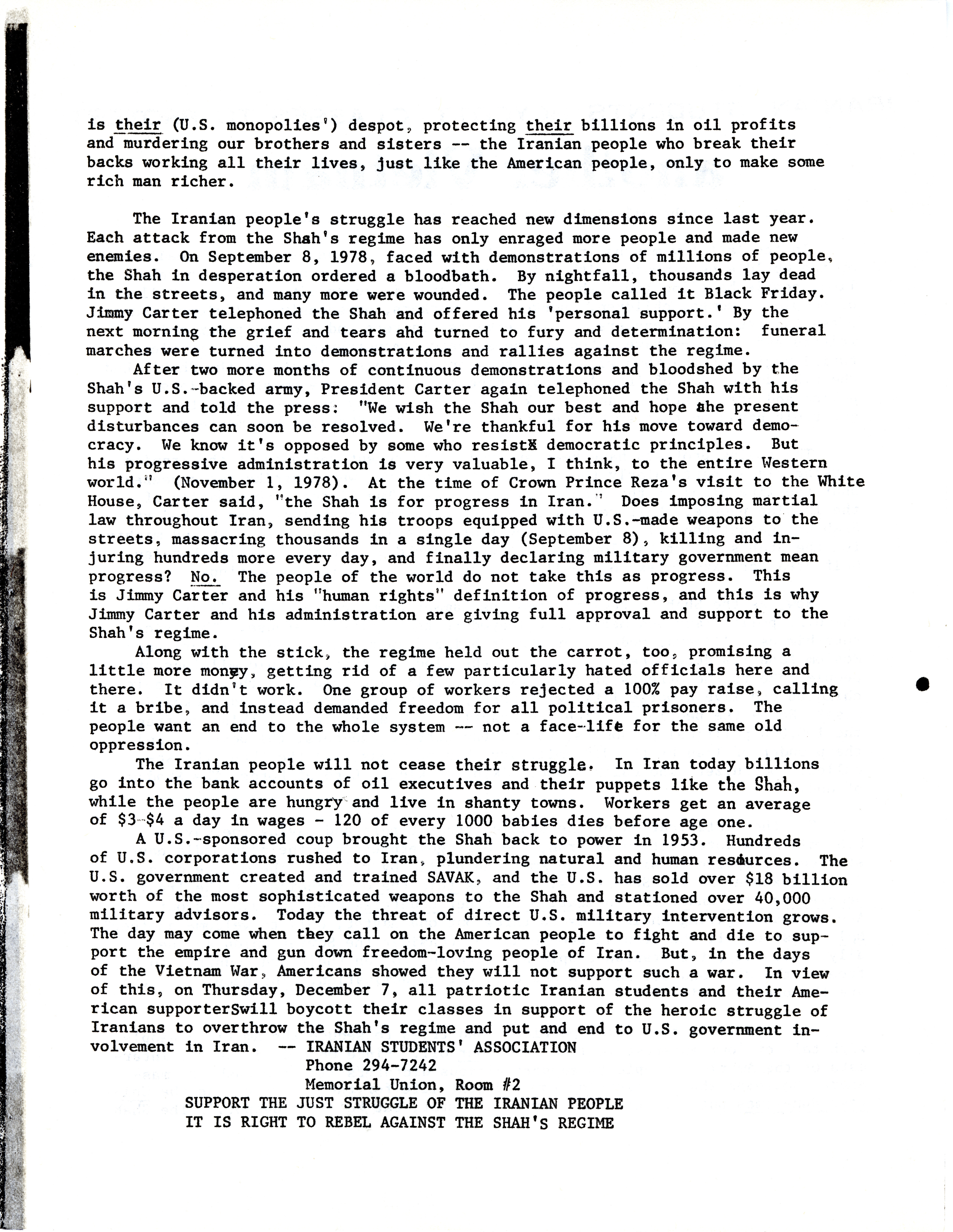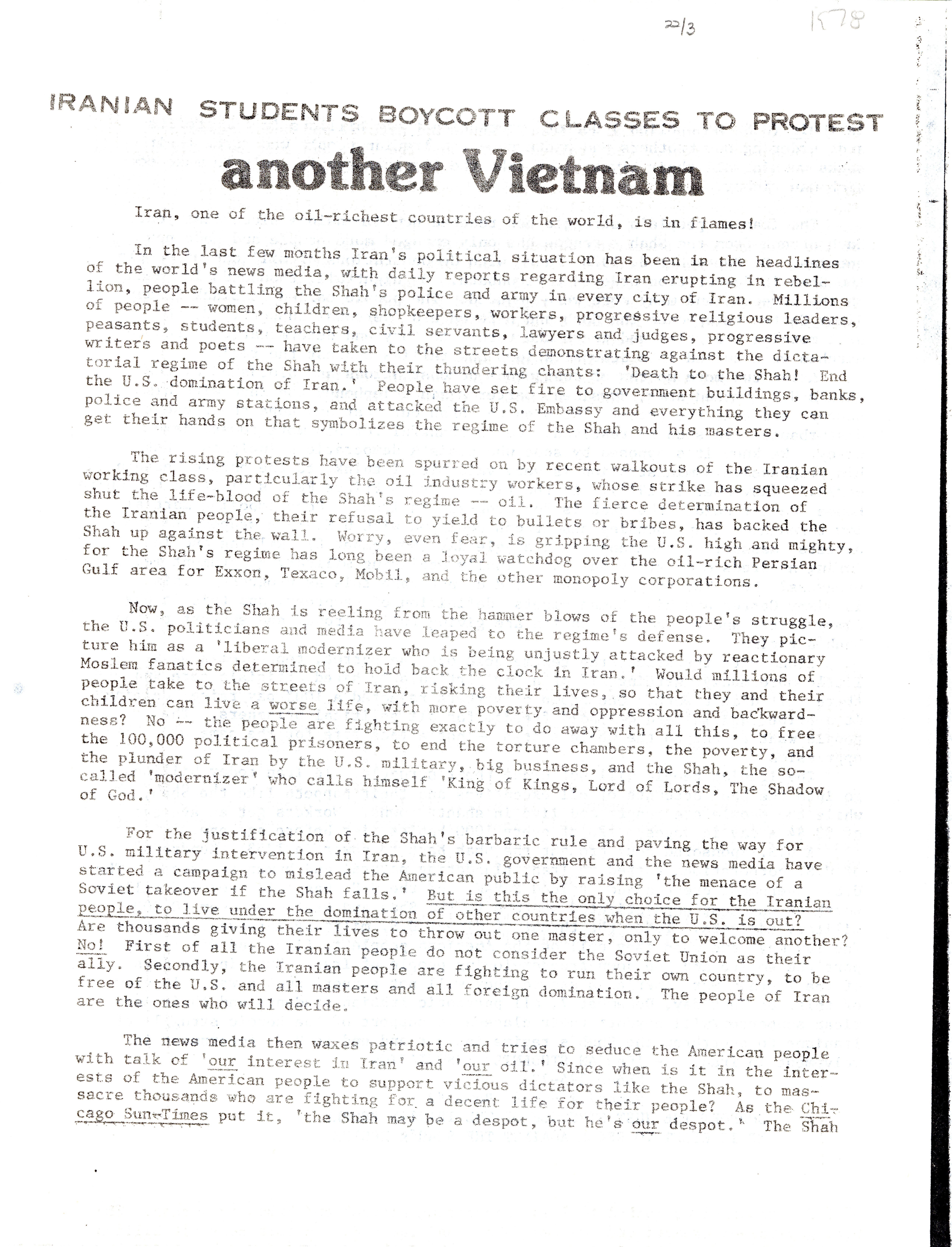 - Press release stating the reasons why Iranian students were holding a boycott of classes as a way of protest.