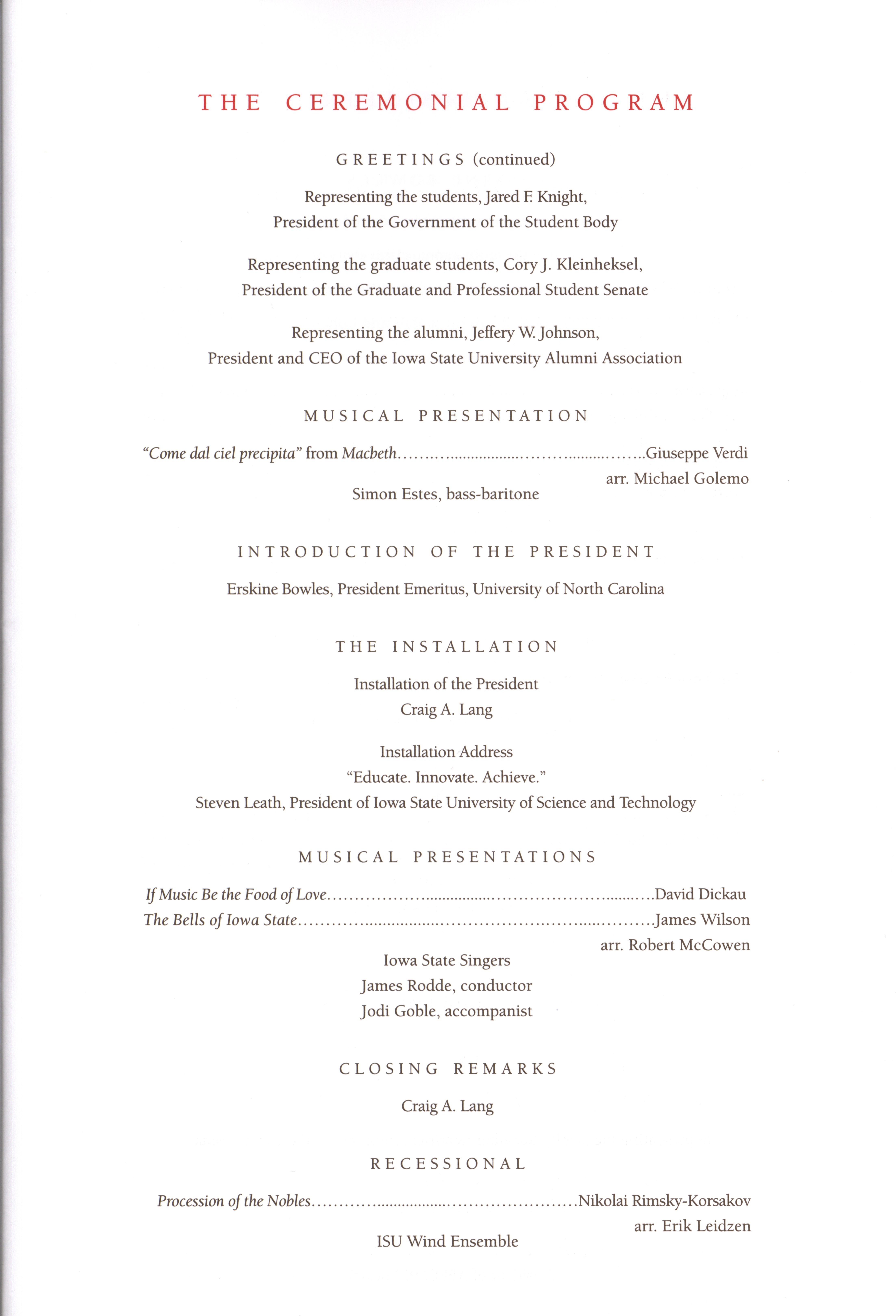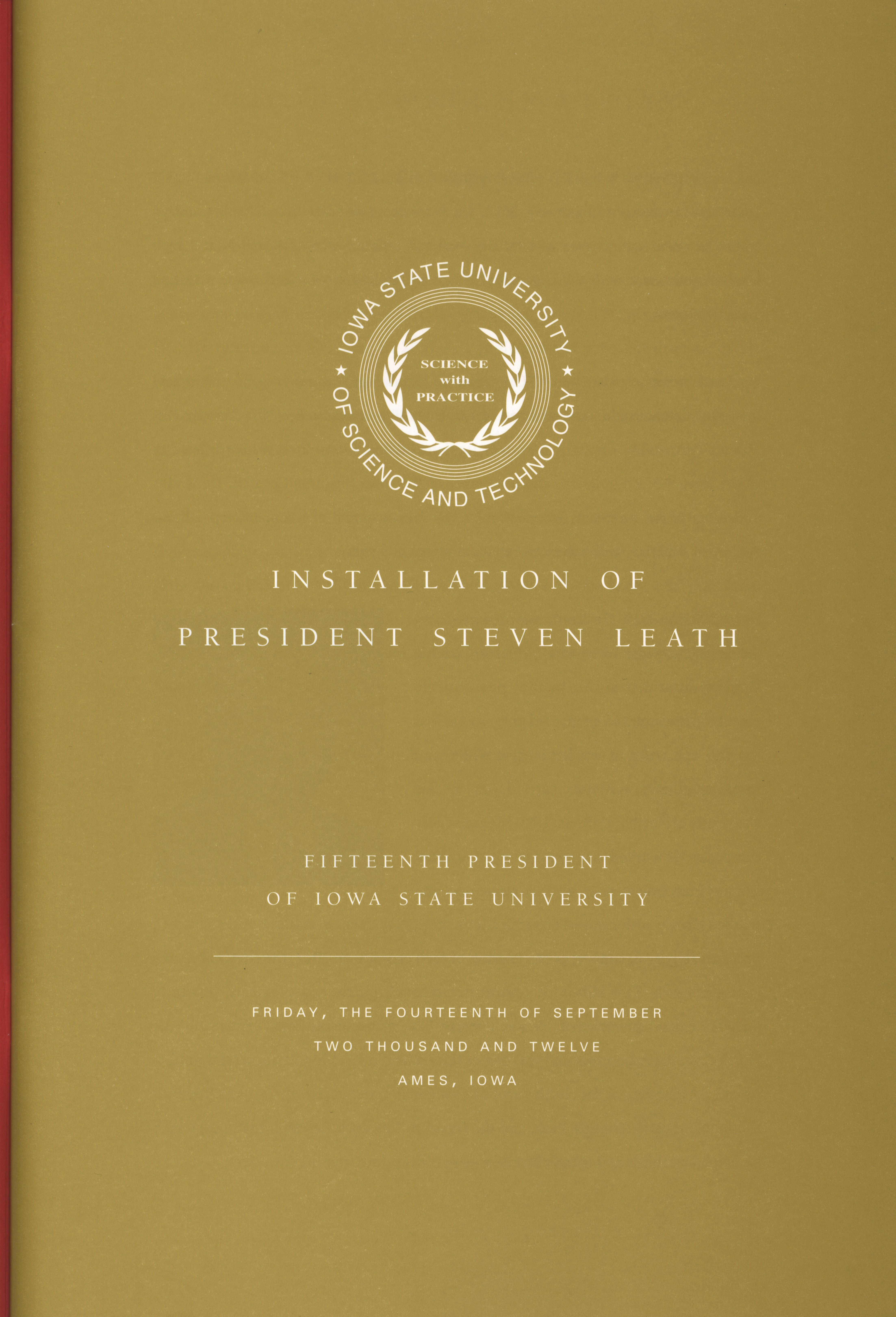 - Program prepared for the installation of Steven Leath as the fifteenth president of Iowa State University on September 14, 2012.