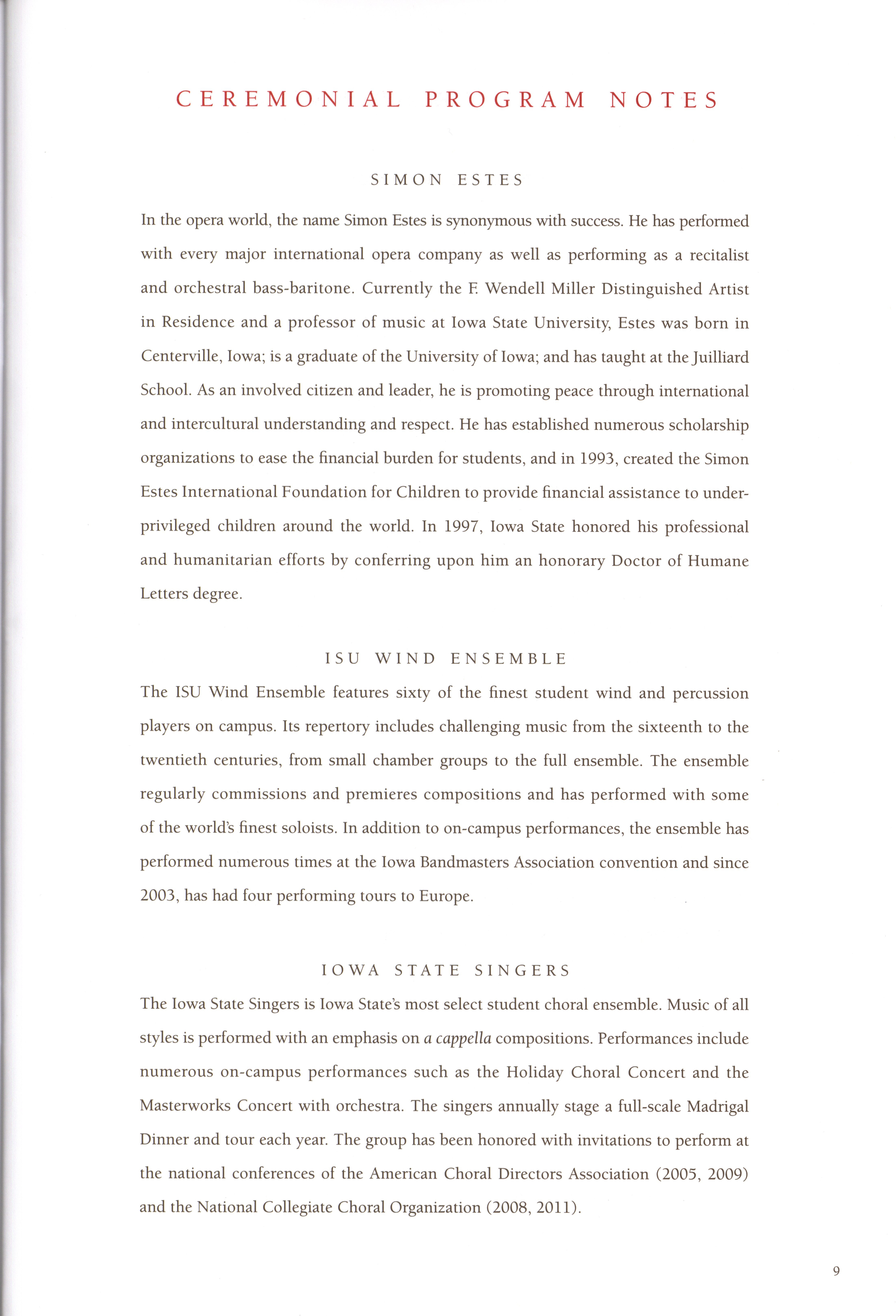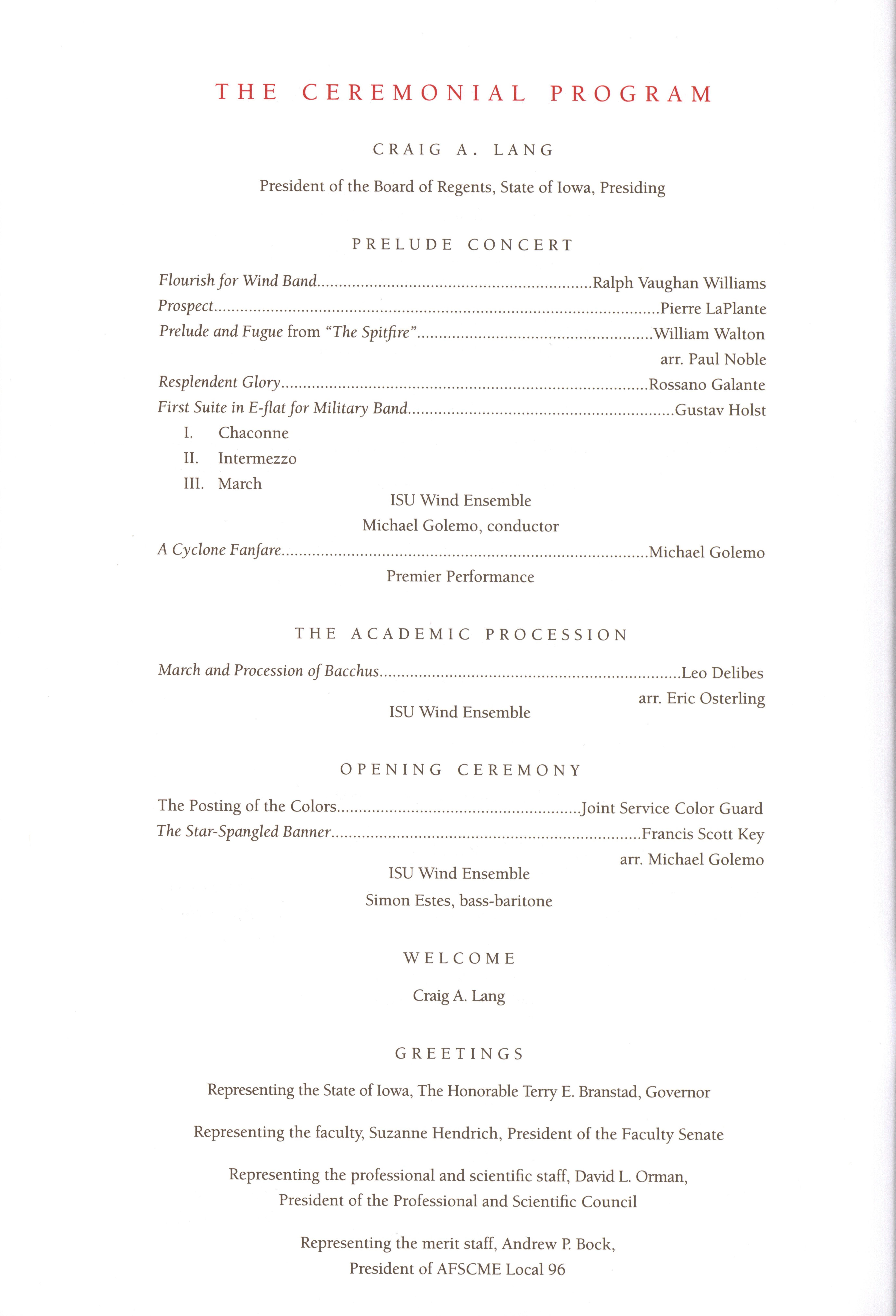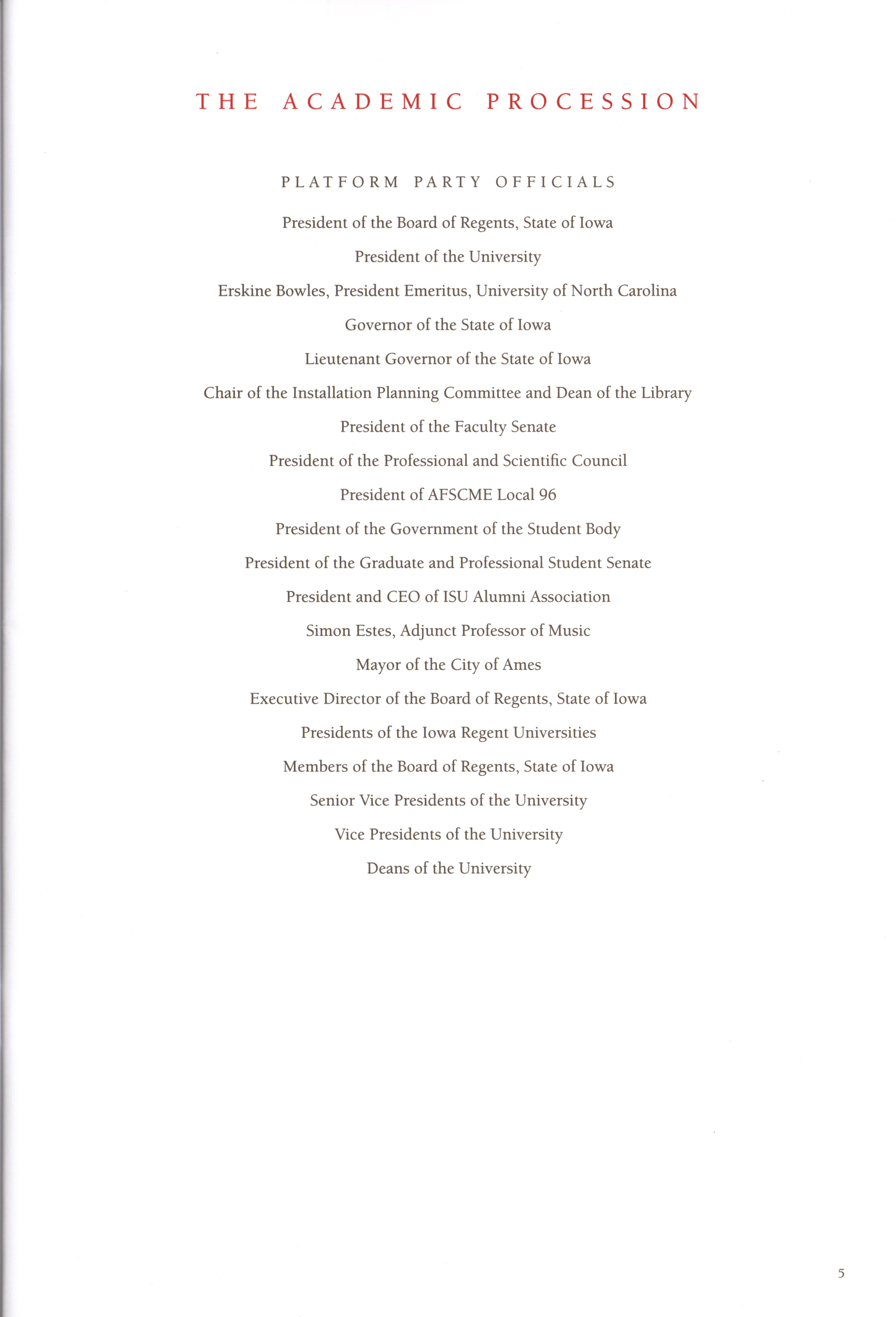 - "Program for the installation of Steven Leath as fifteenth president of Iowa State University, September 14, 2012", Iowa State University Presidents Collection, Iowa State University Library Digital Collections