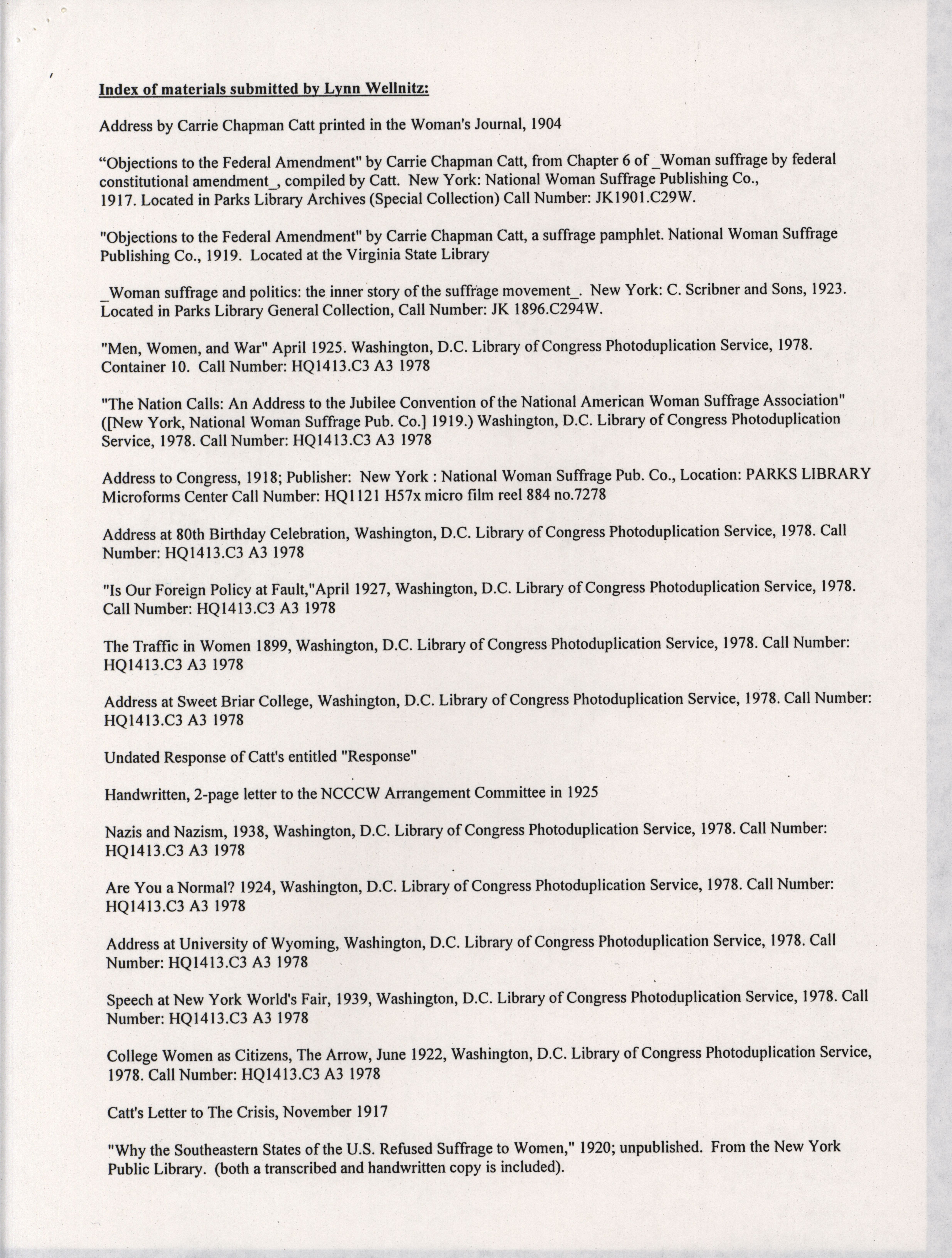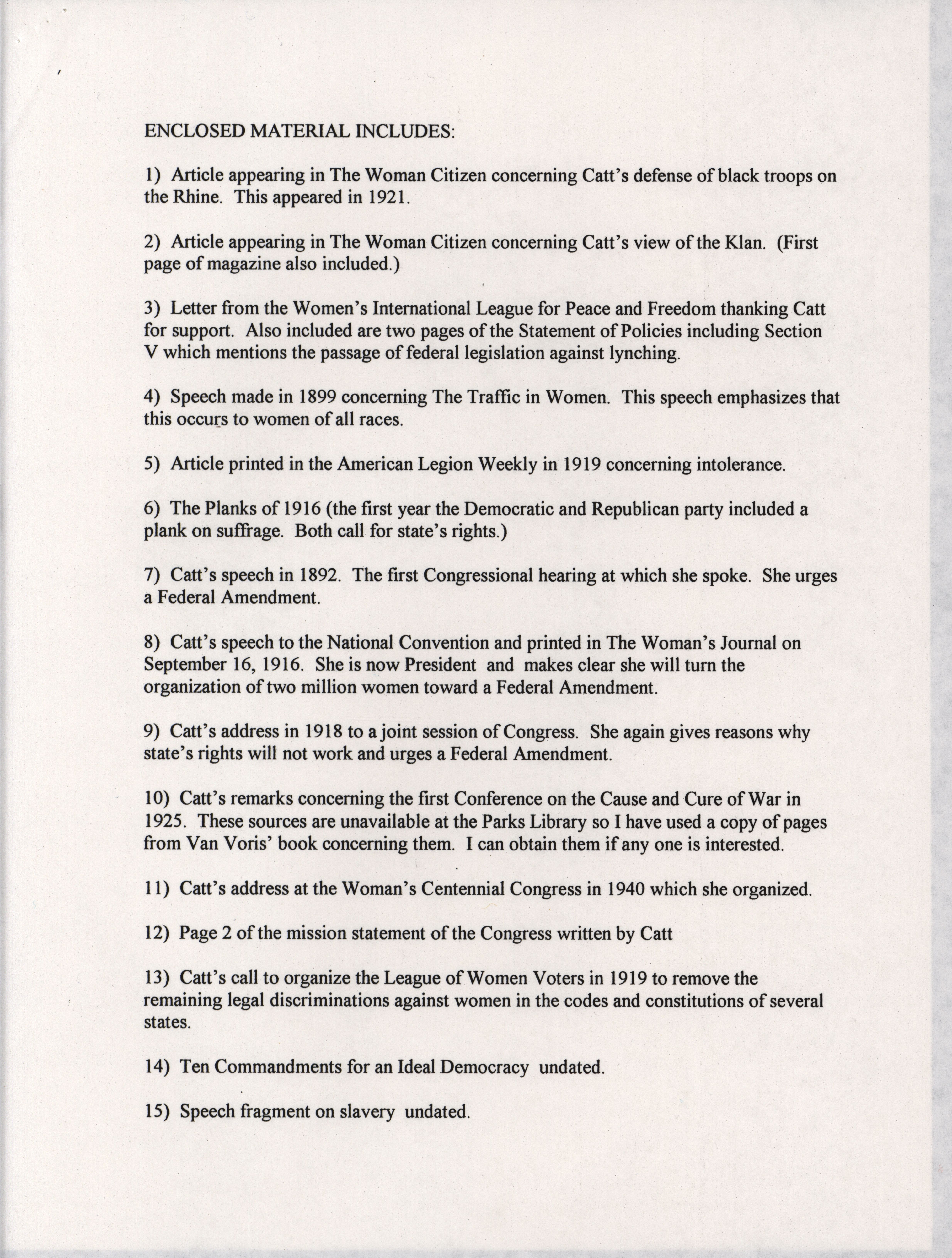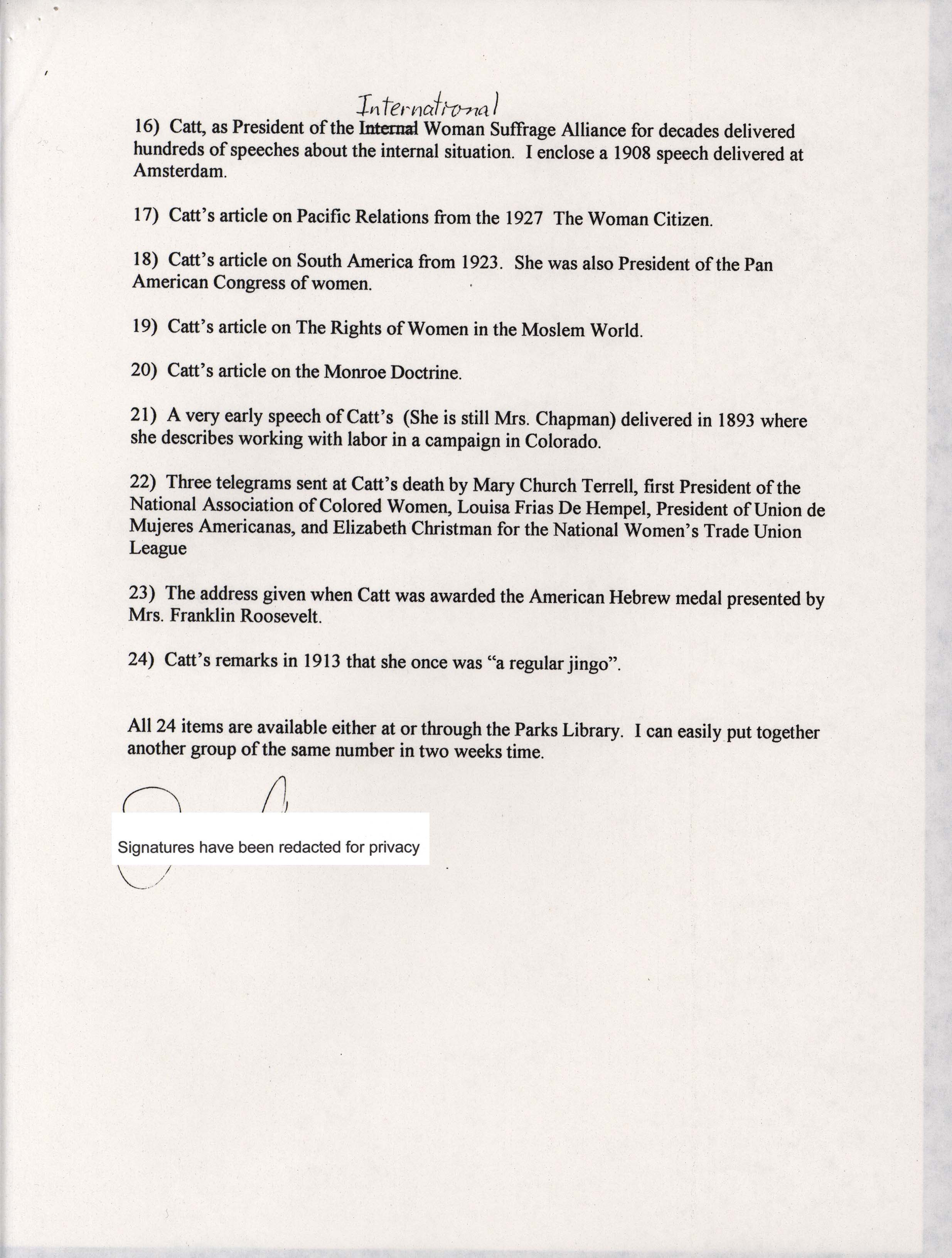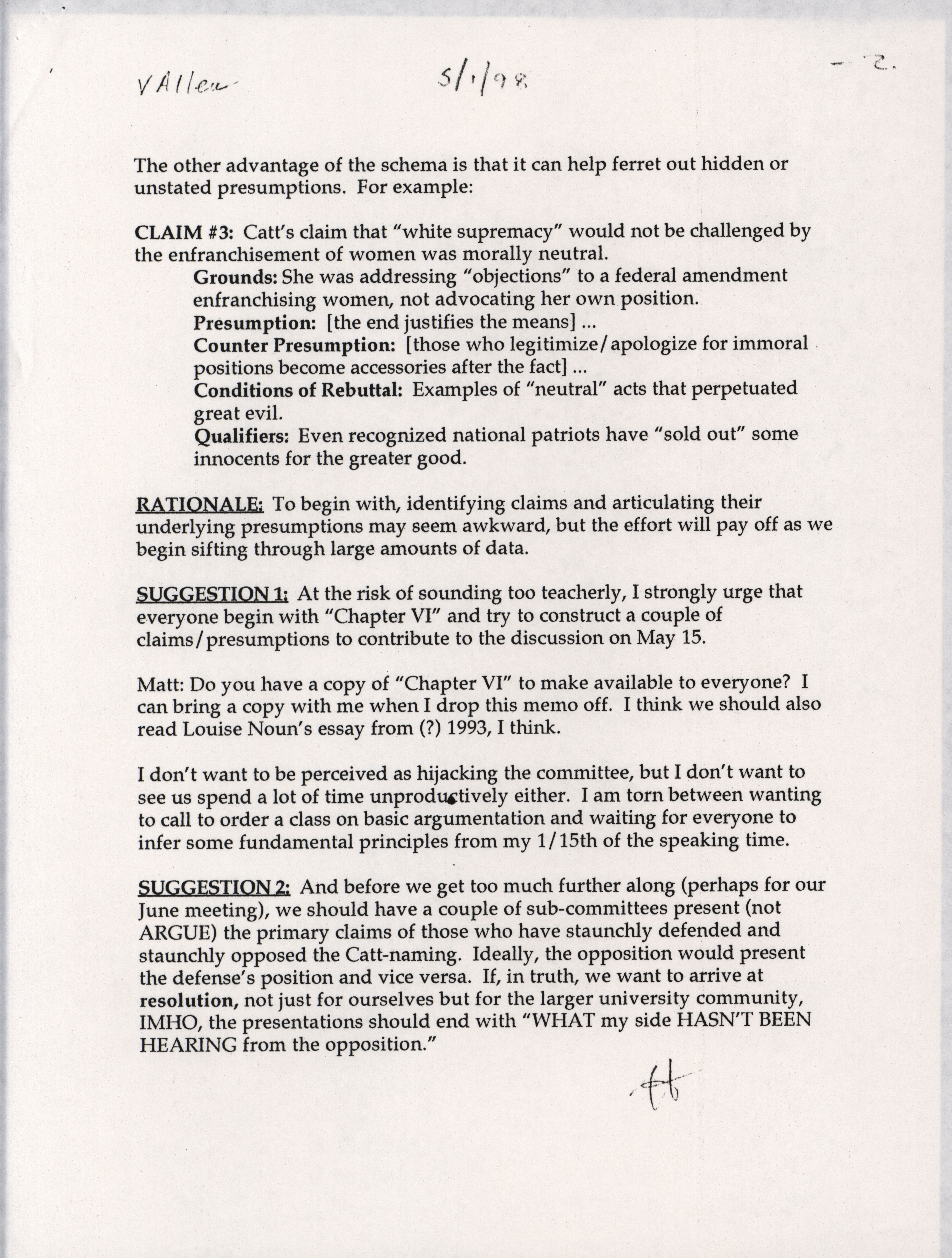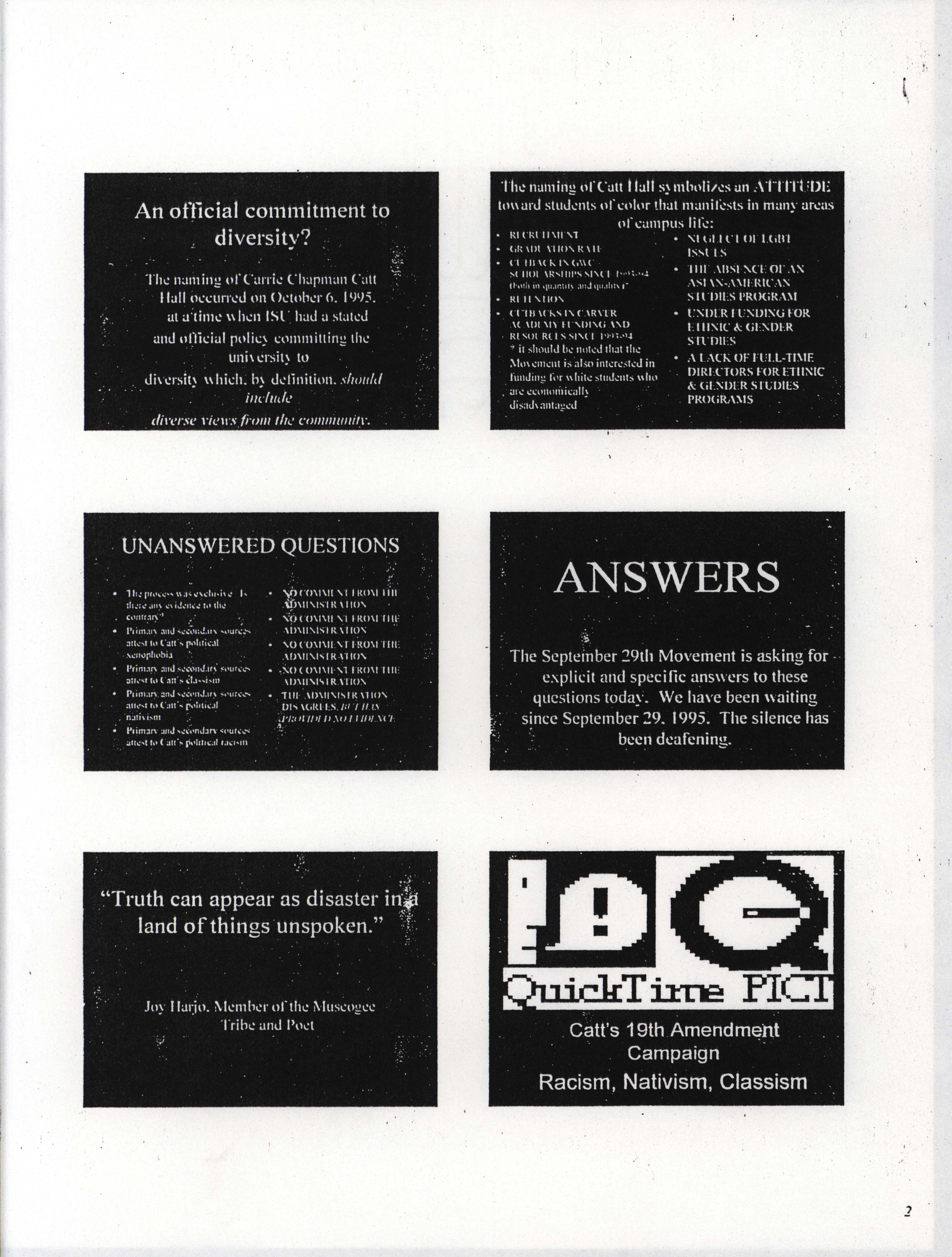 - "Memorandum with enclosures from Matt Ostanik to Catt Review Committee; May 6, 1998", September 29th Movement Collection, Iowa State University Library Digital Collections