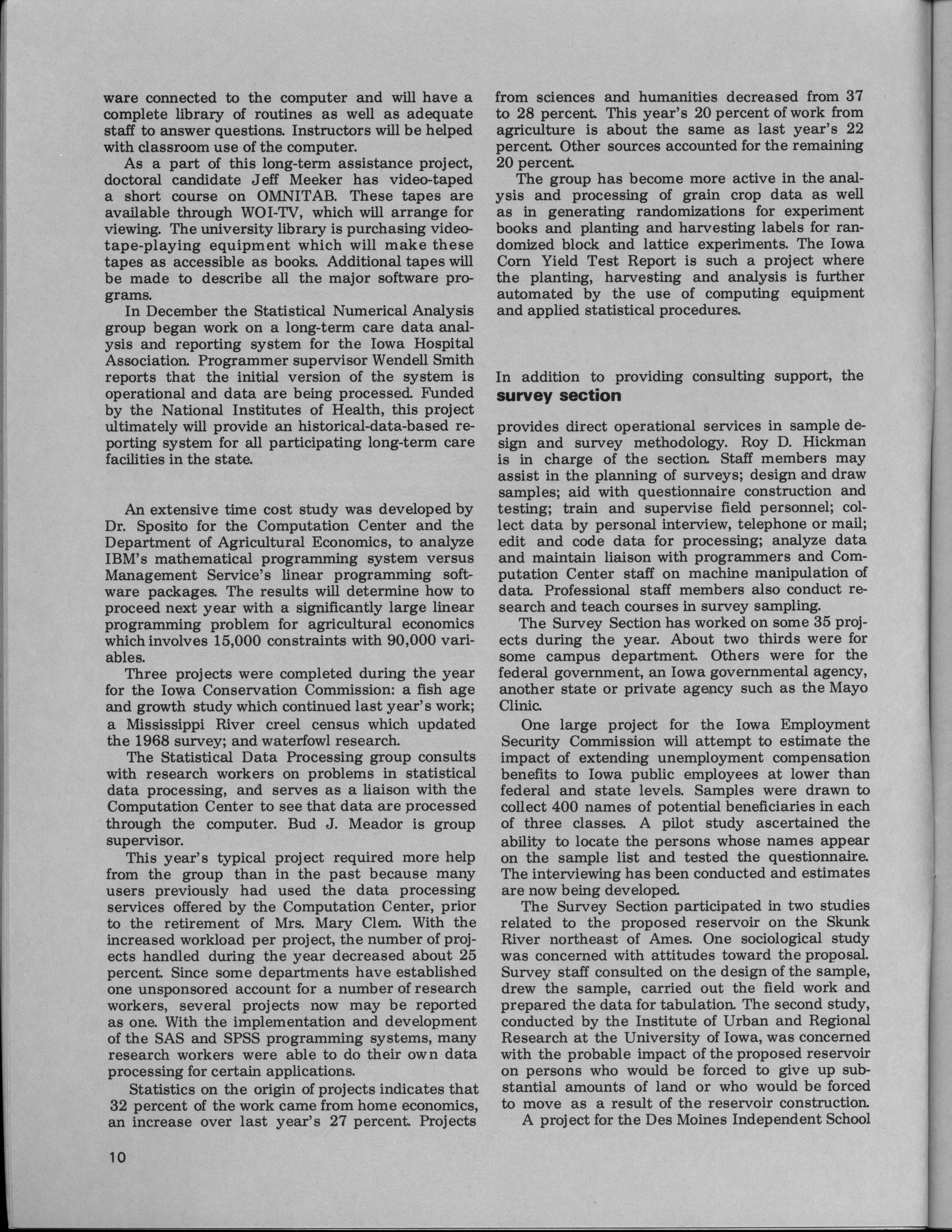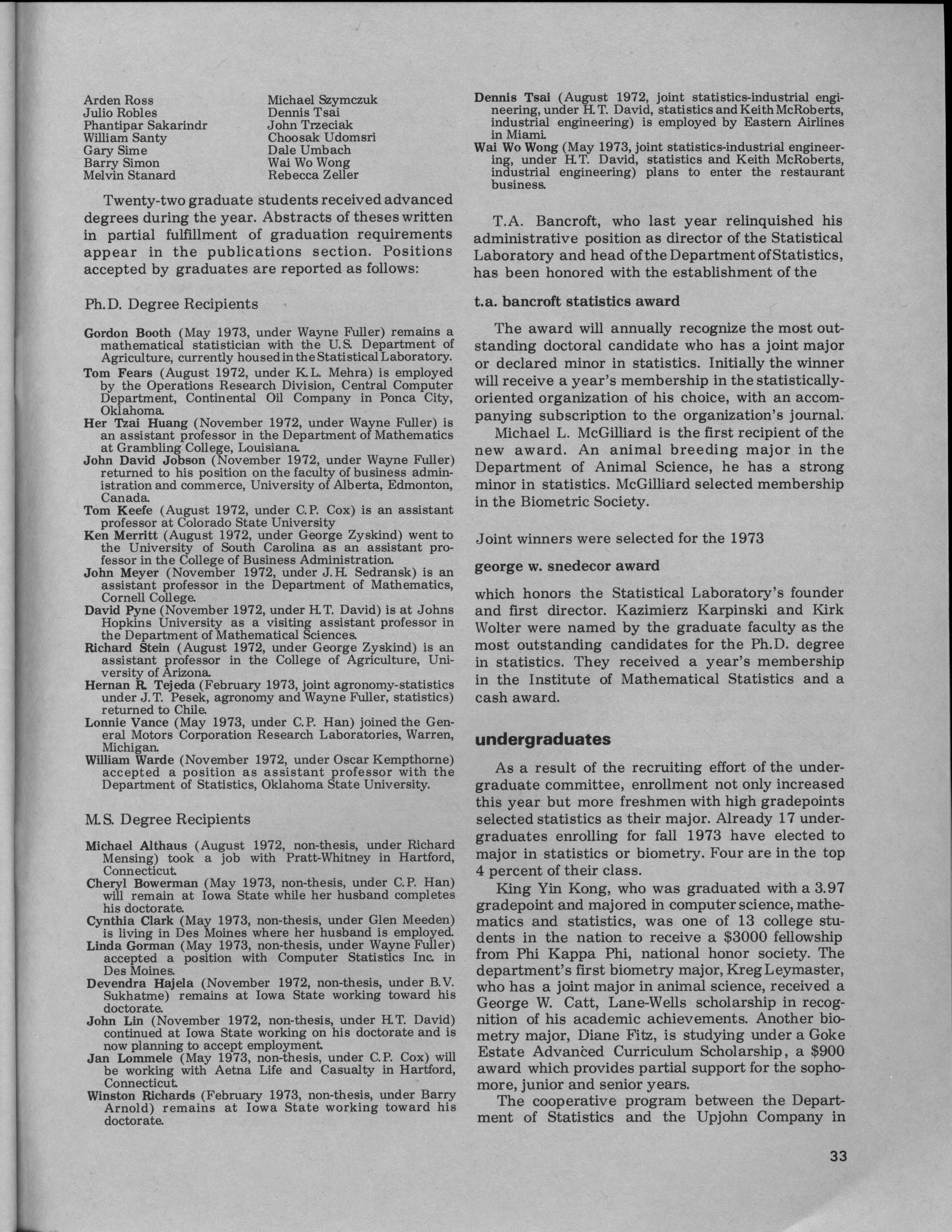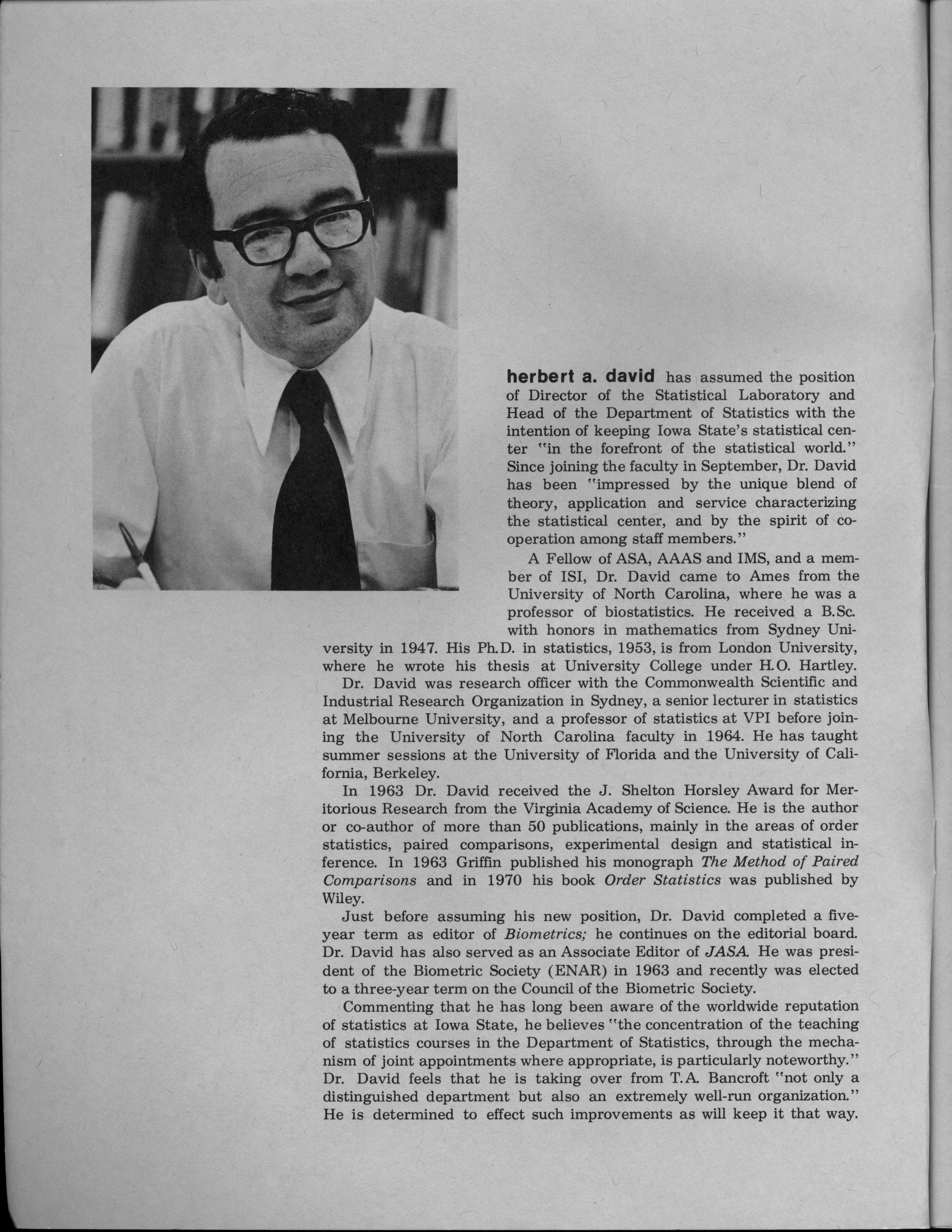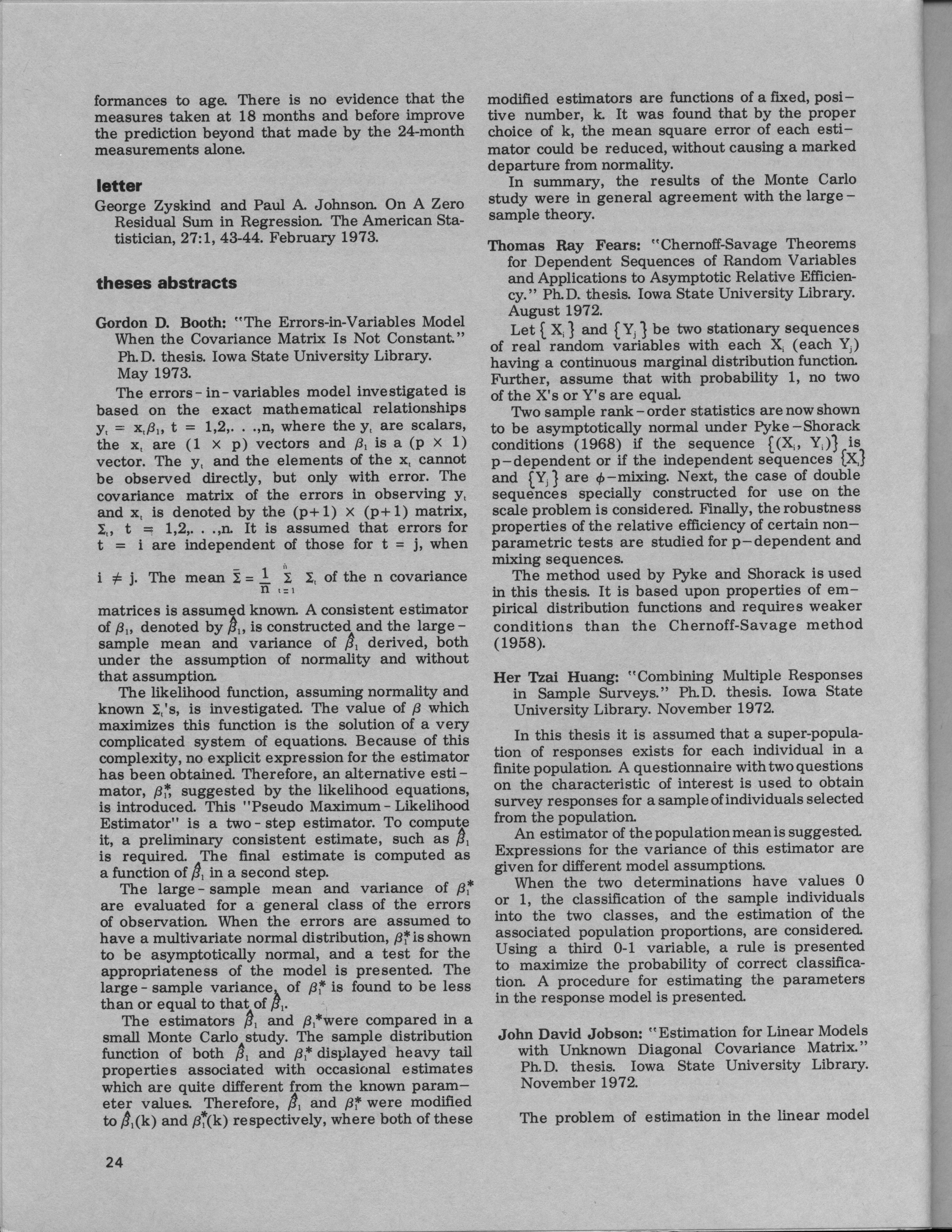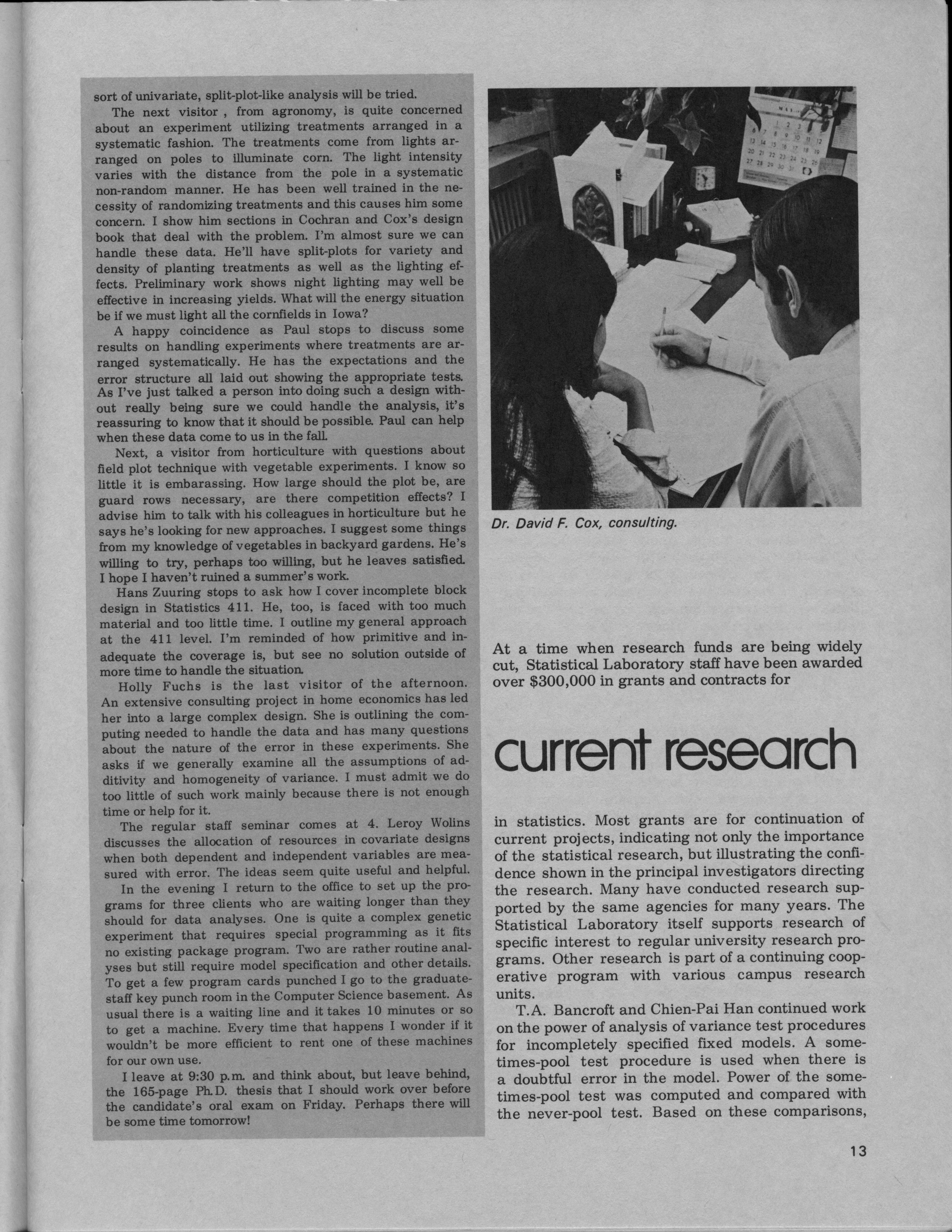 - "Statistical Laboratory Annual Report, July 1, 1972 to June 30, 1973", Iowa State University Statistical Laboratory Annual Reports, Iowa State University Library Digital Collections