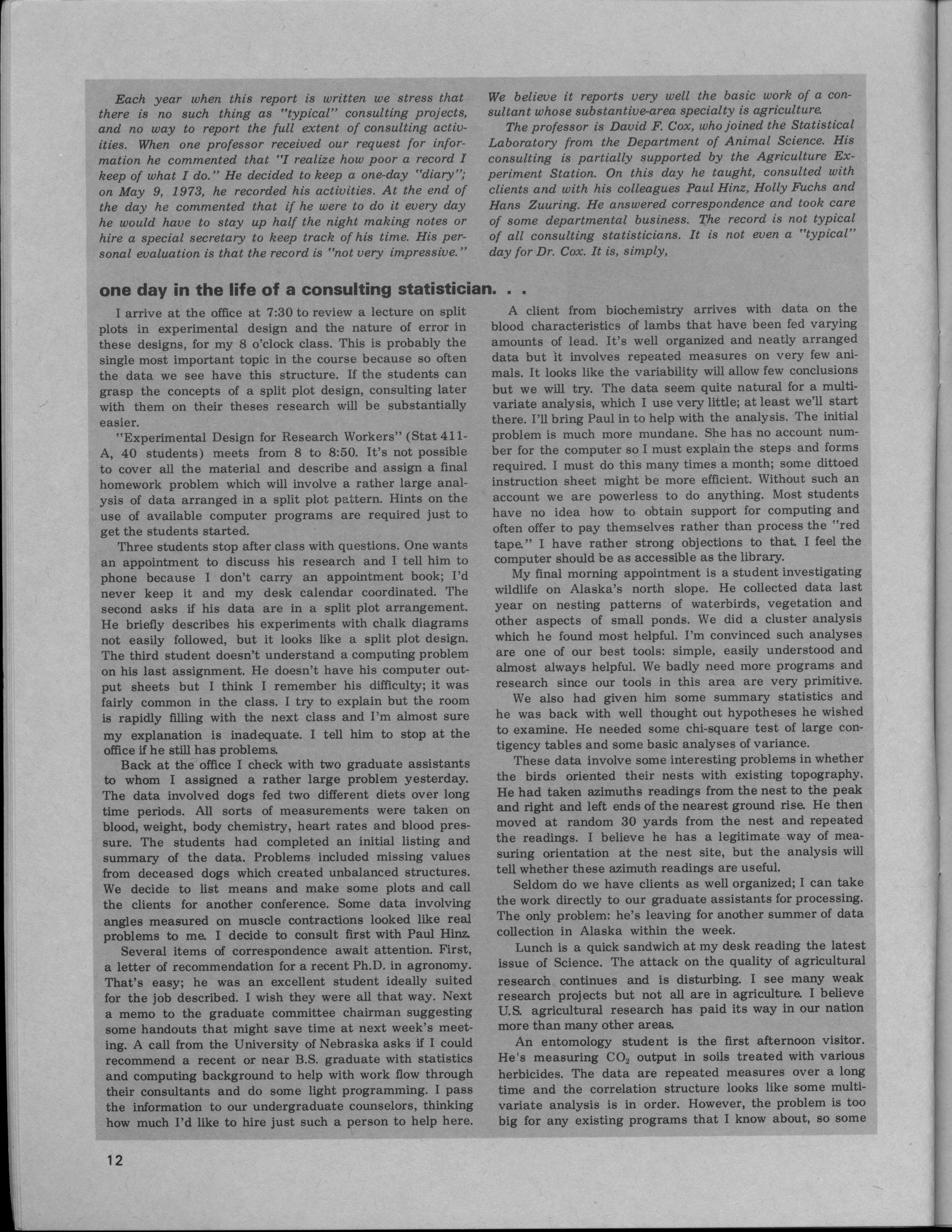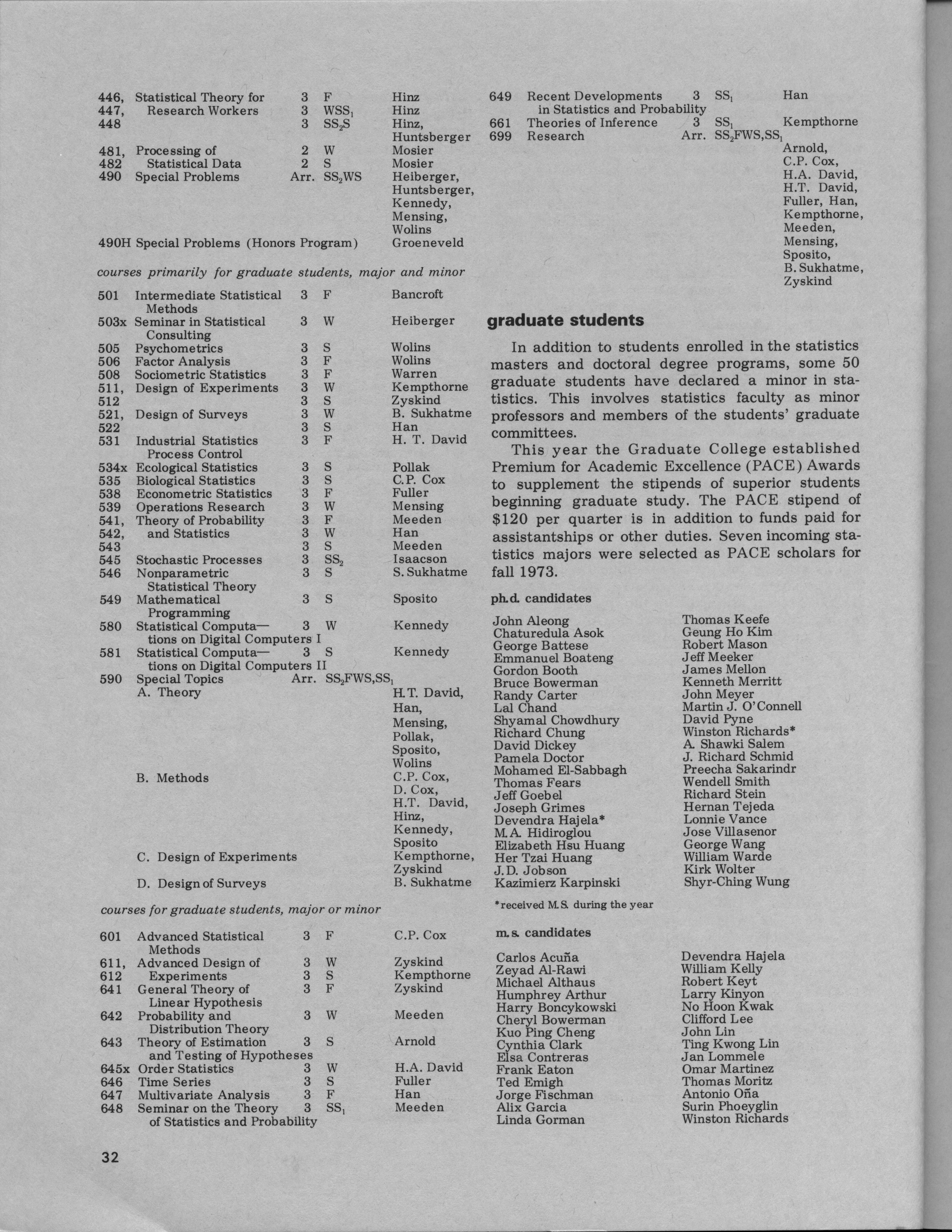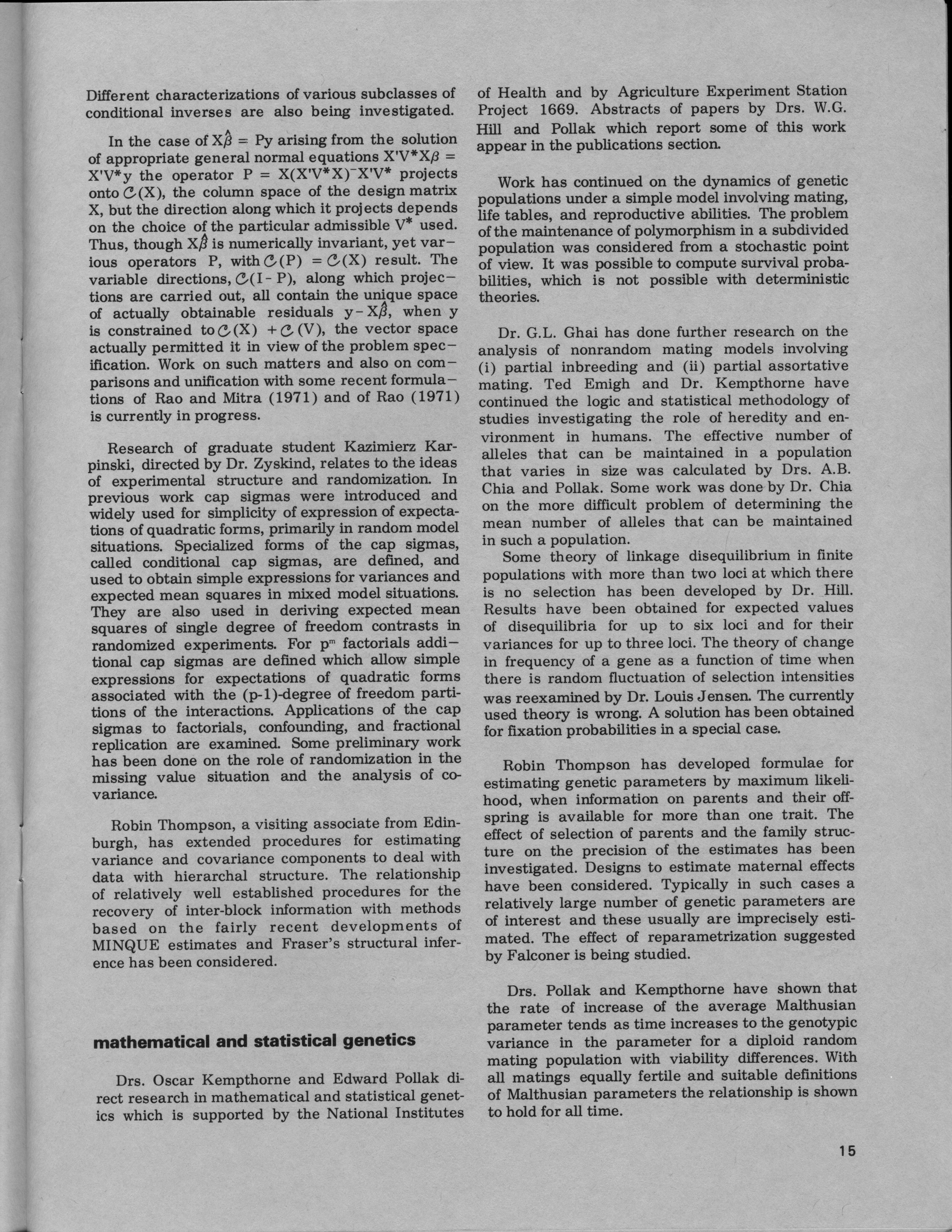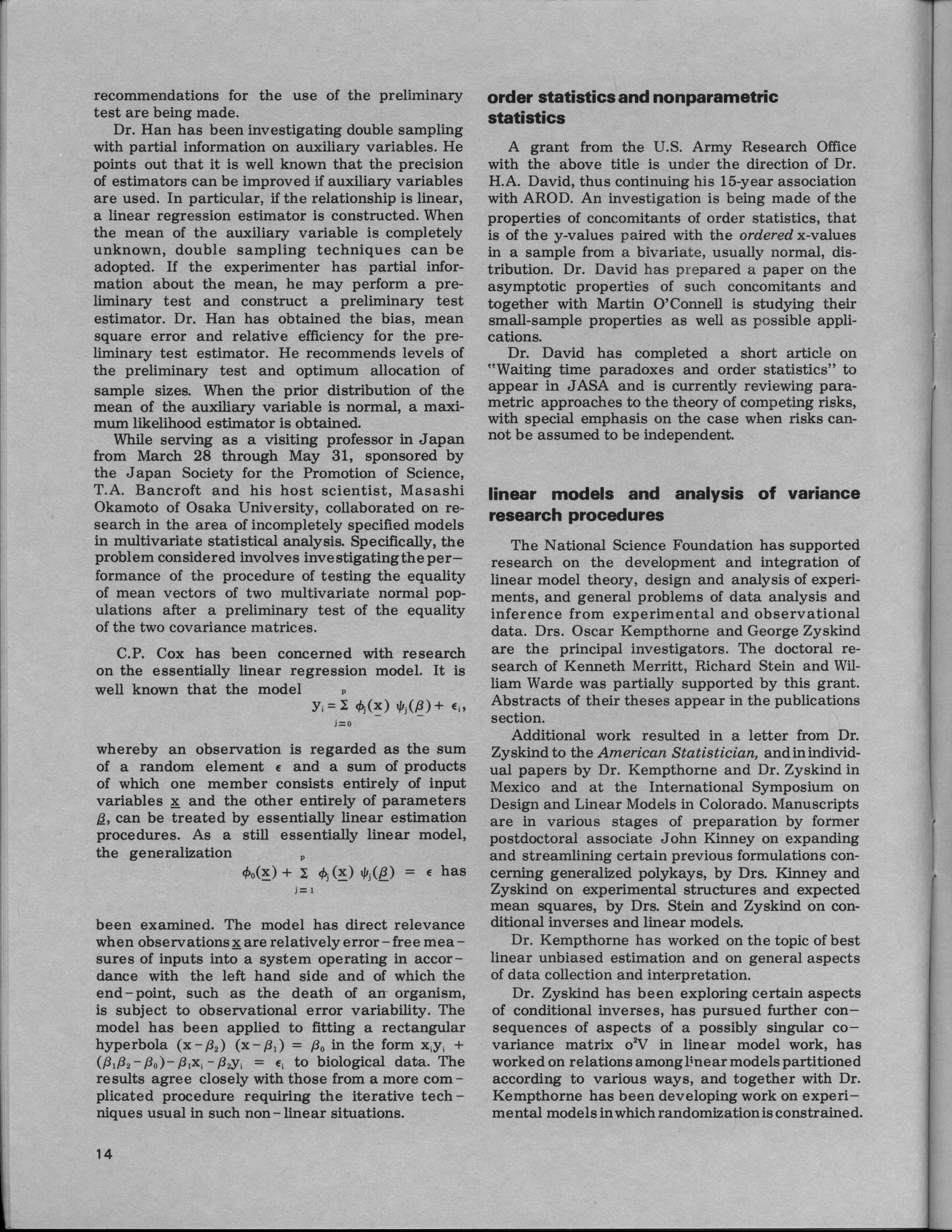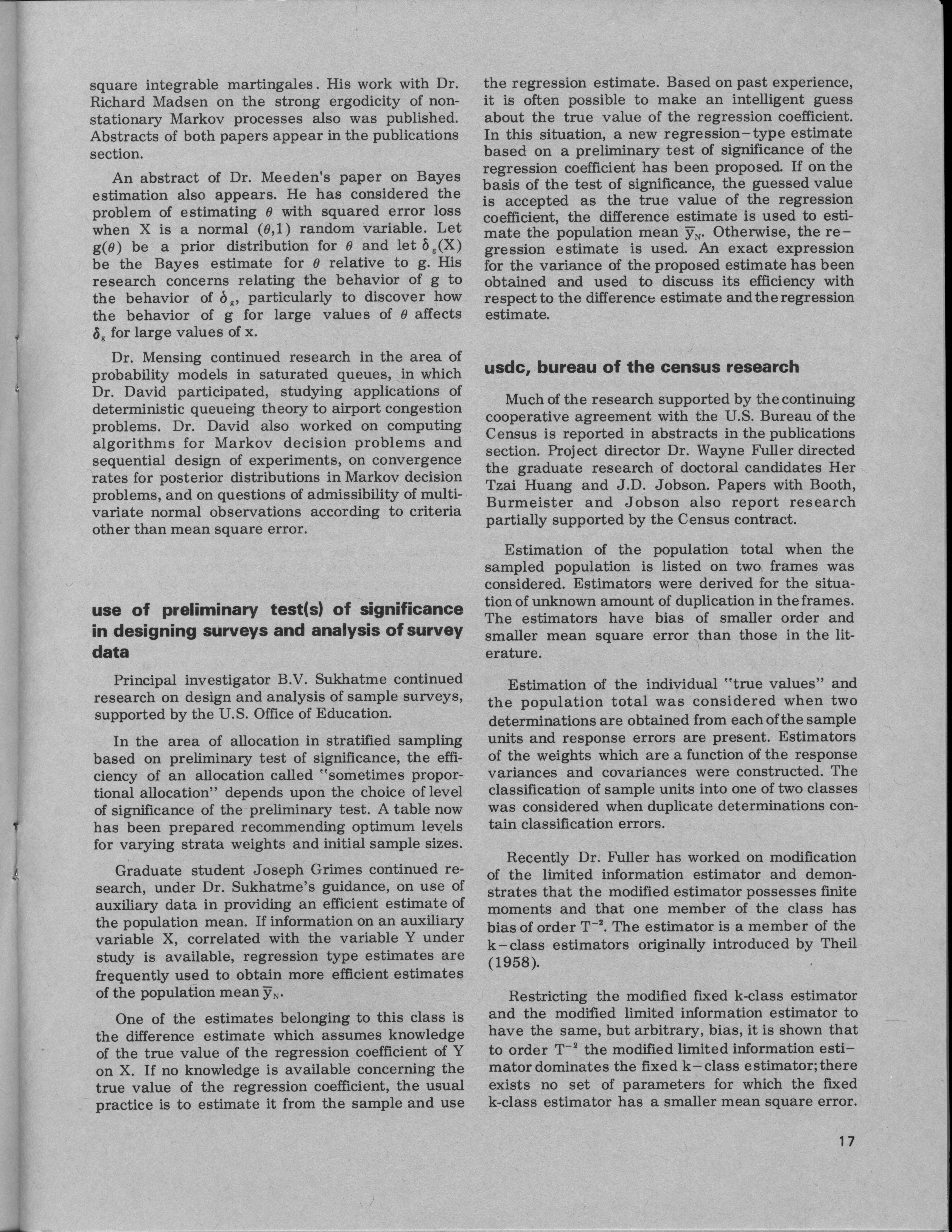 - "Statistical Laboratory Annual Report, July 1, 1972 to June 30, 1973", Iowa State University Statistical Laboratory Annual Reports, Iowa State University Library Digital Collections