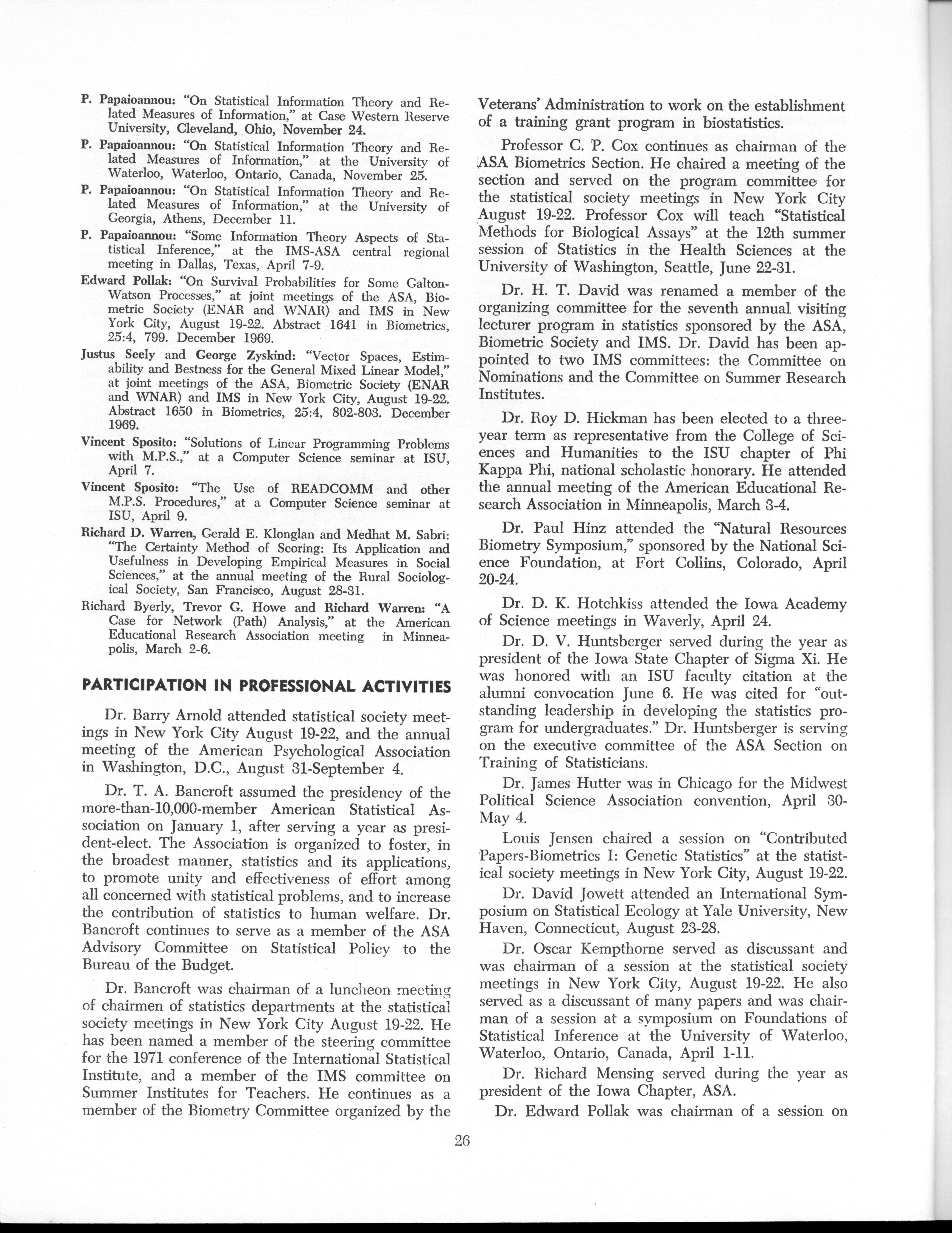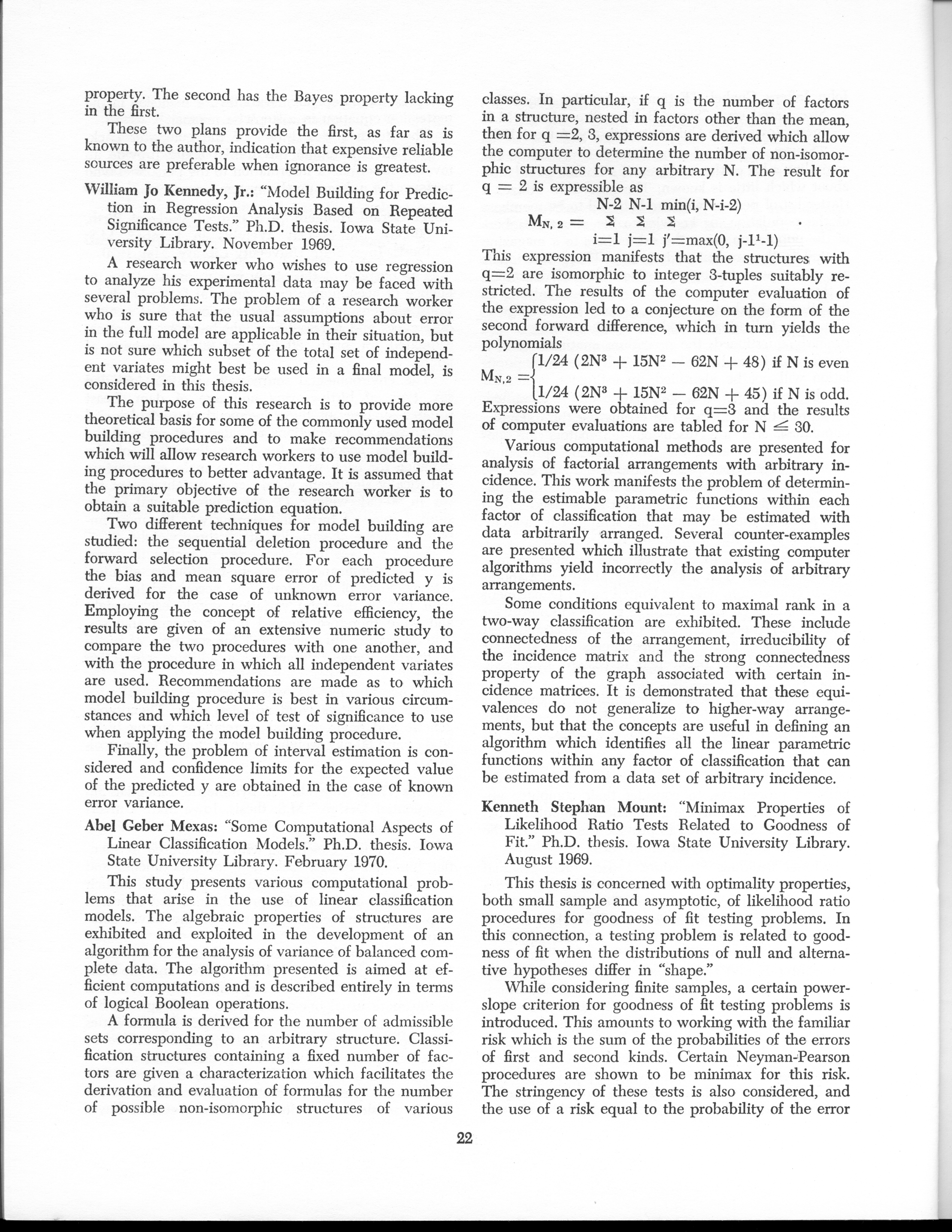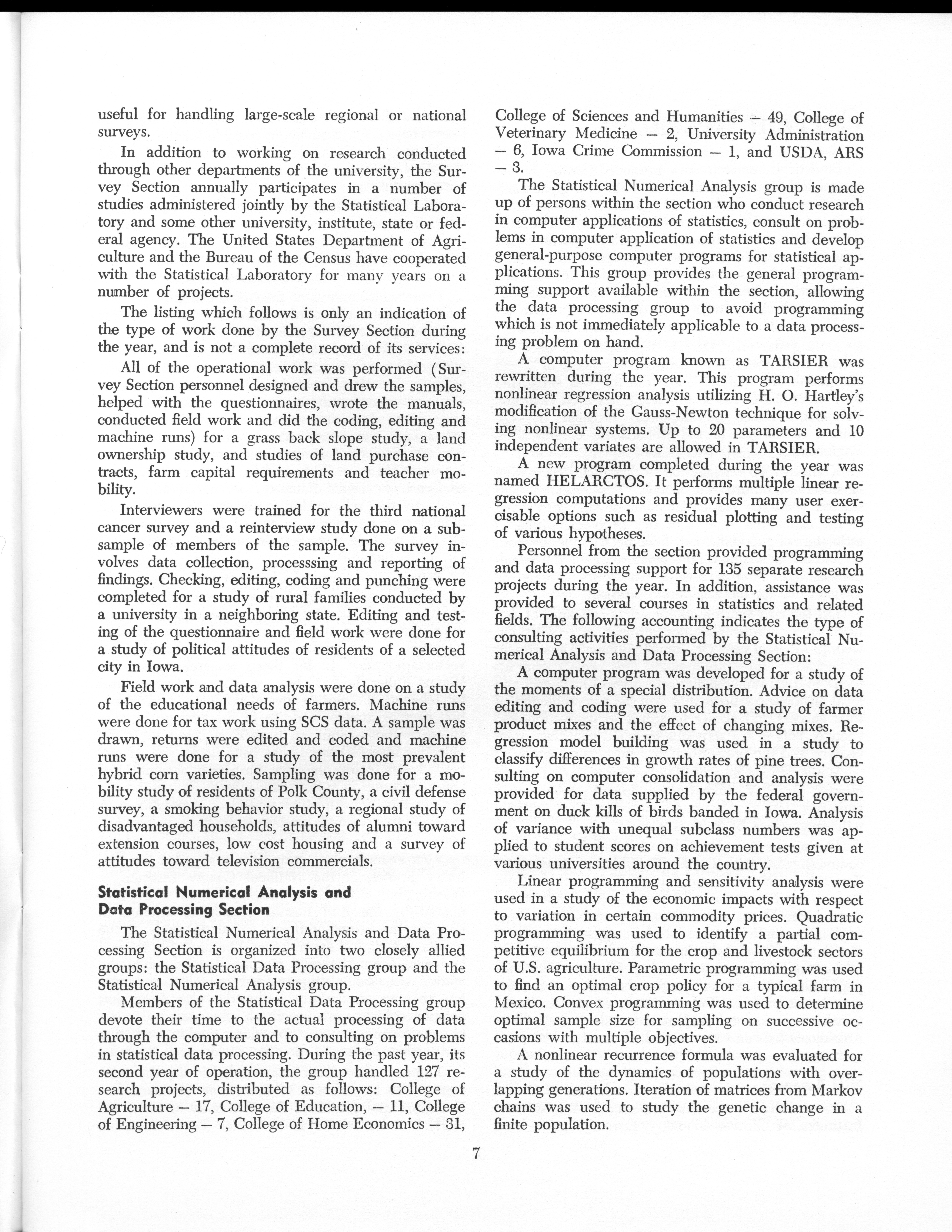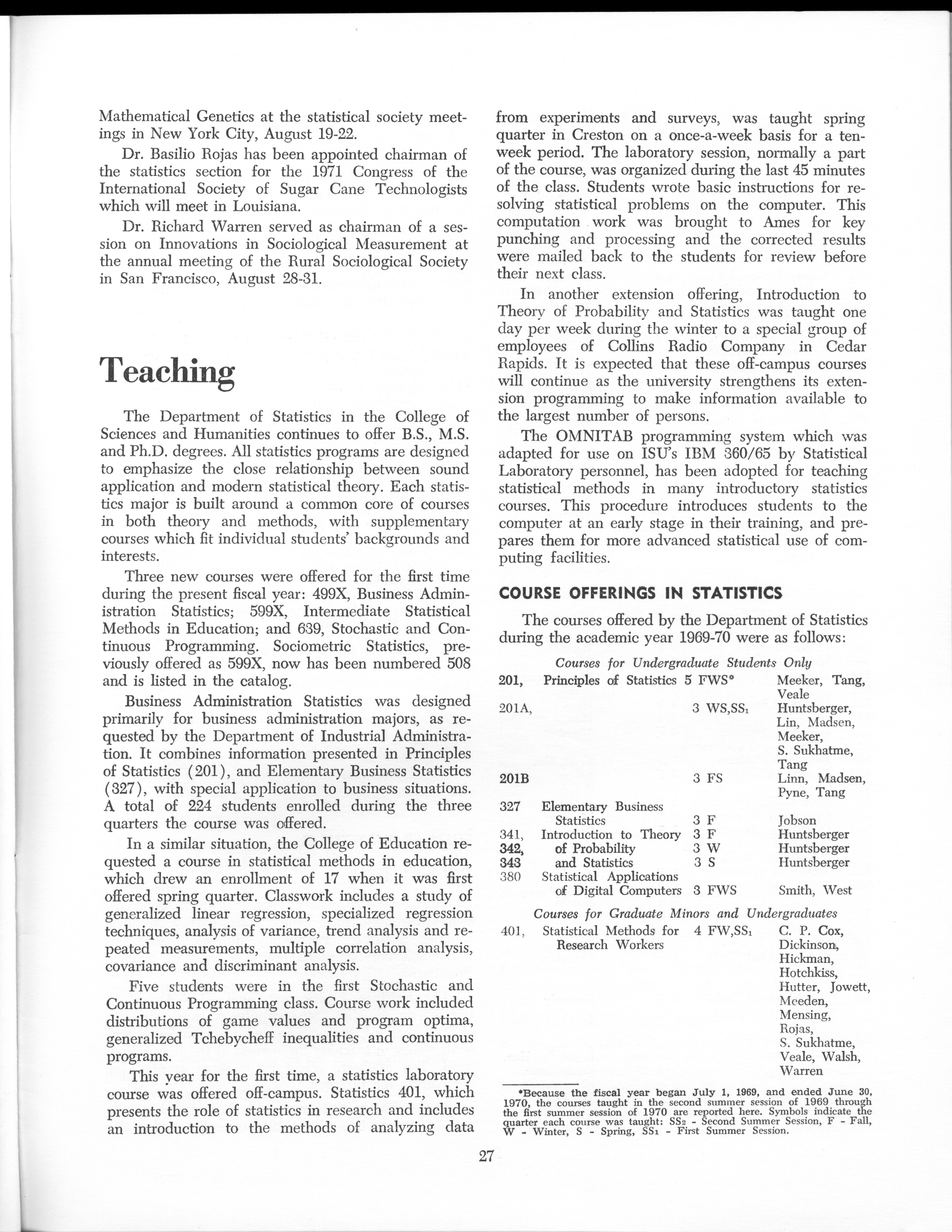 - "Statistical Laboratory Annual Report, July 1, 1969 to June 30, 1970", Iowa State University Statistical Laboratory Annual Reports, Iowa State University Library Digital Collections