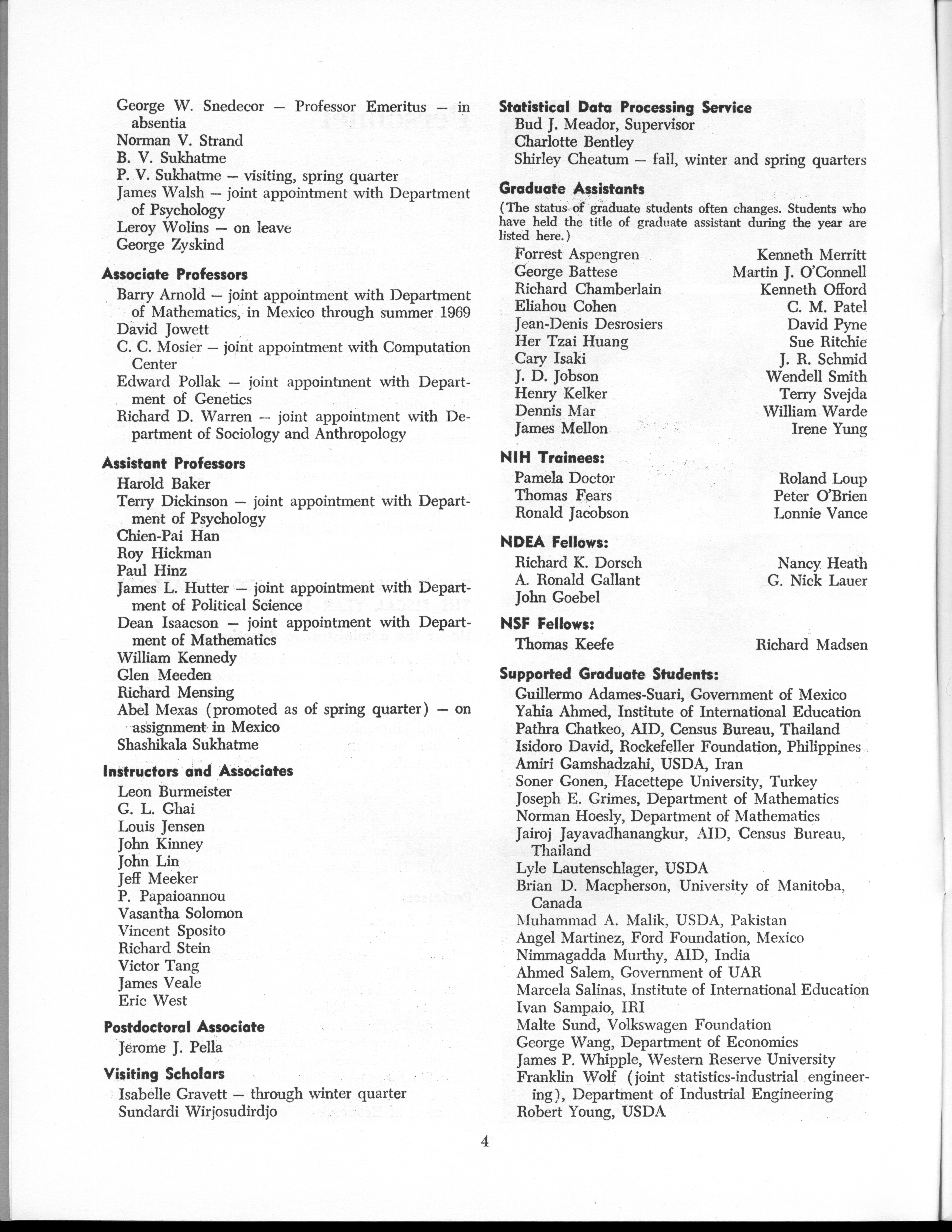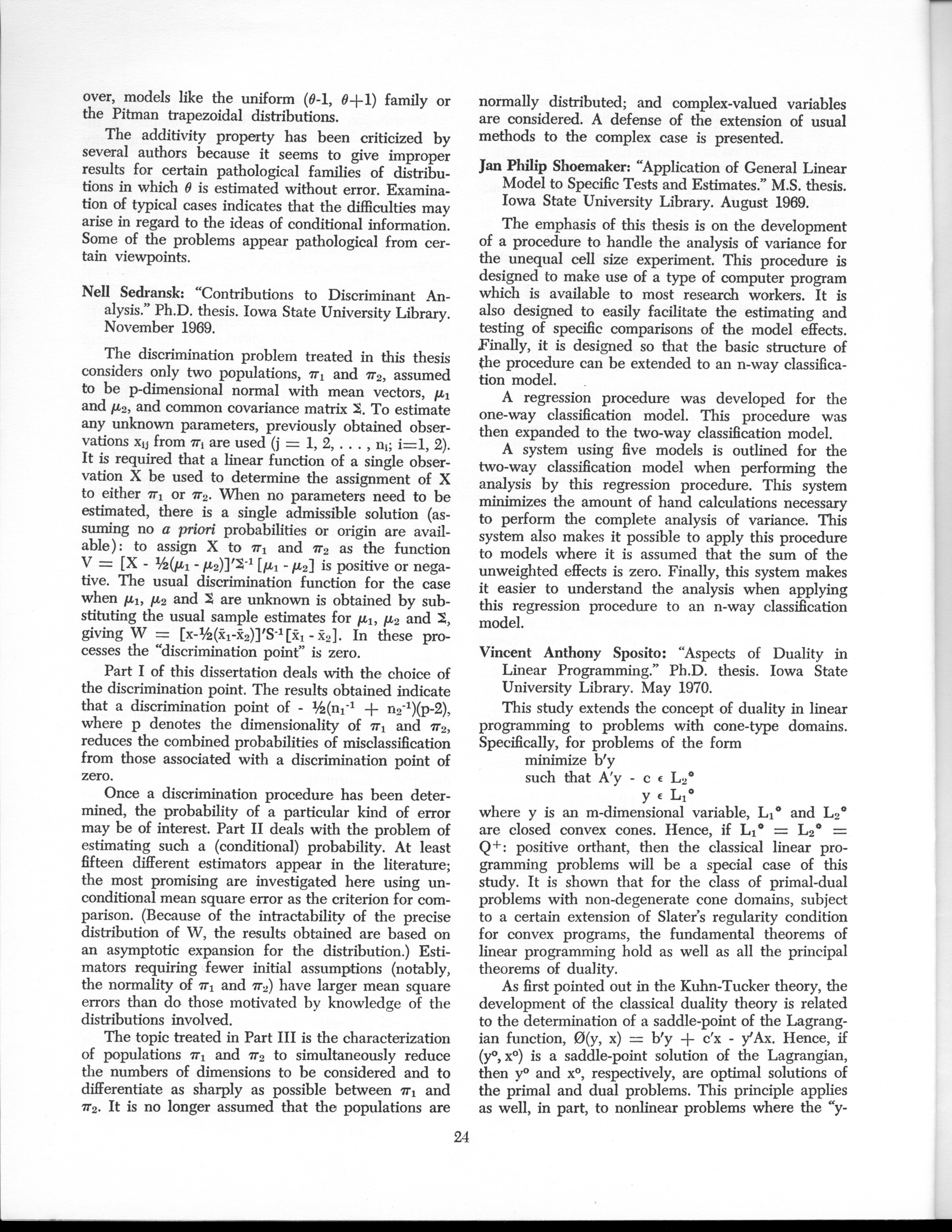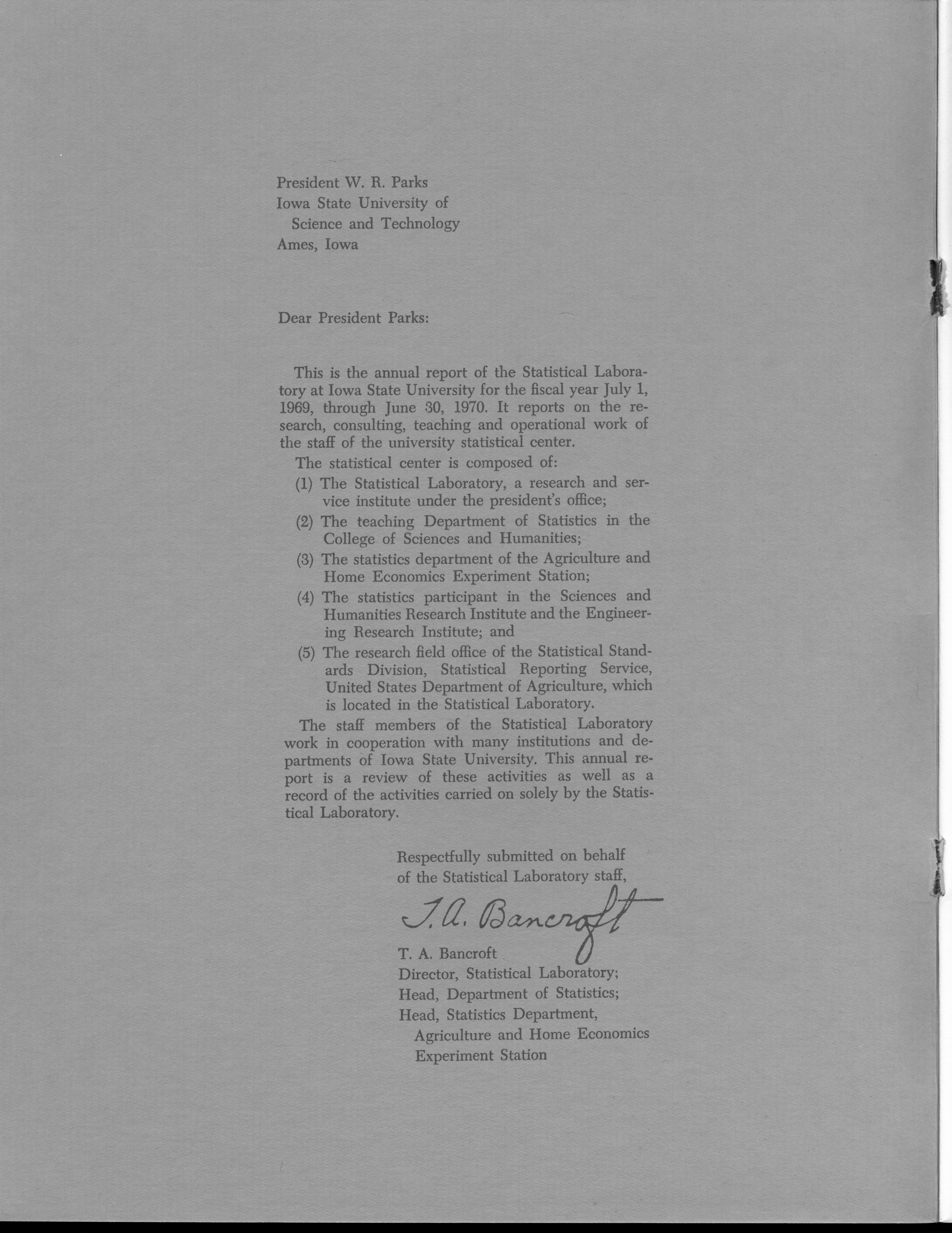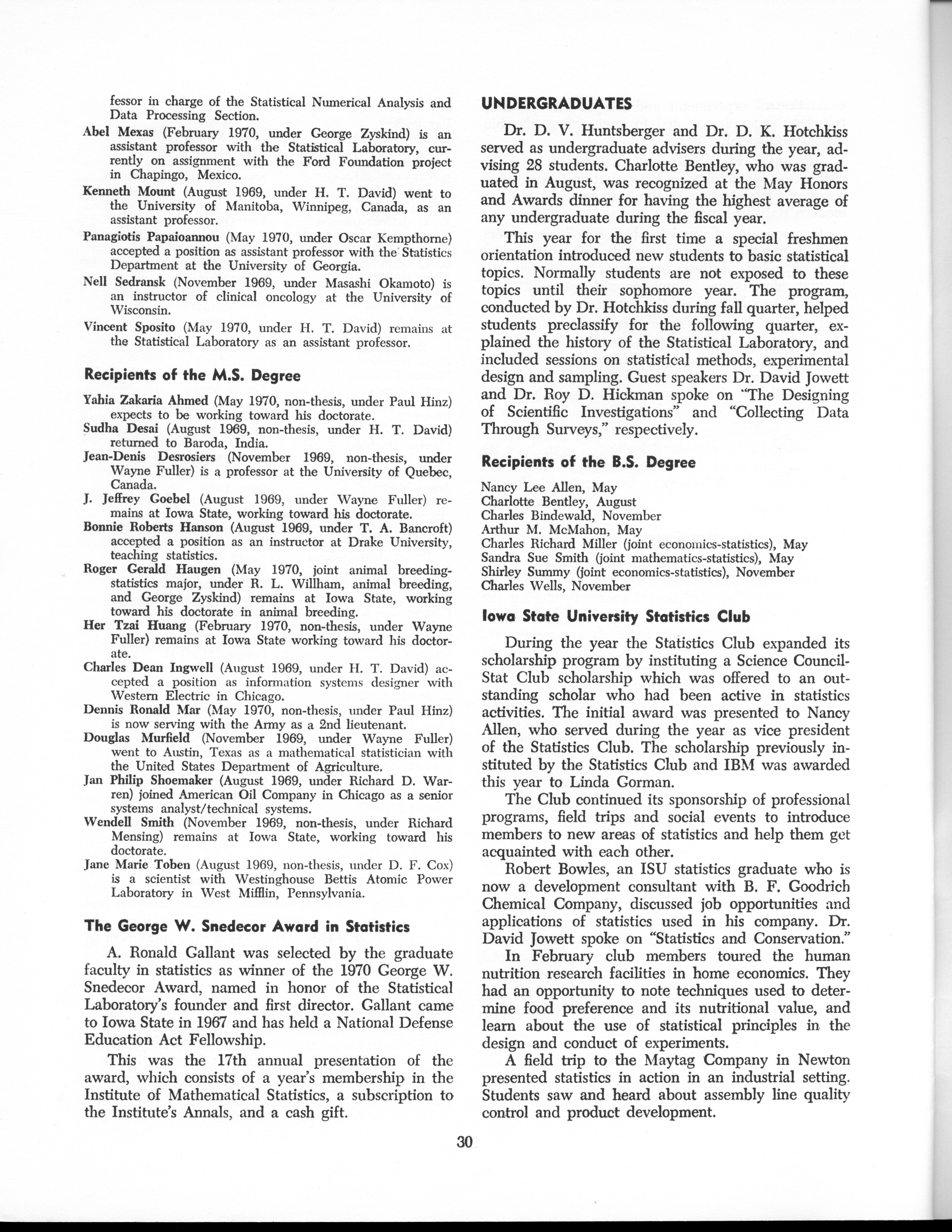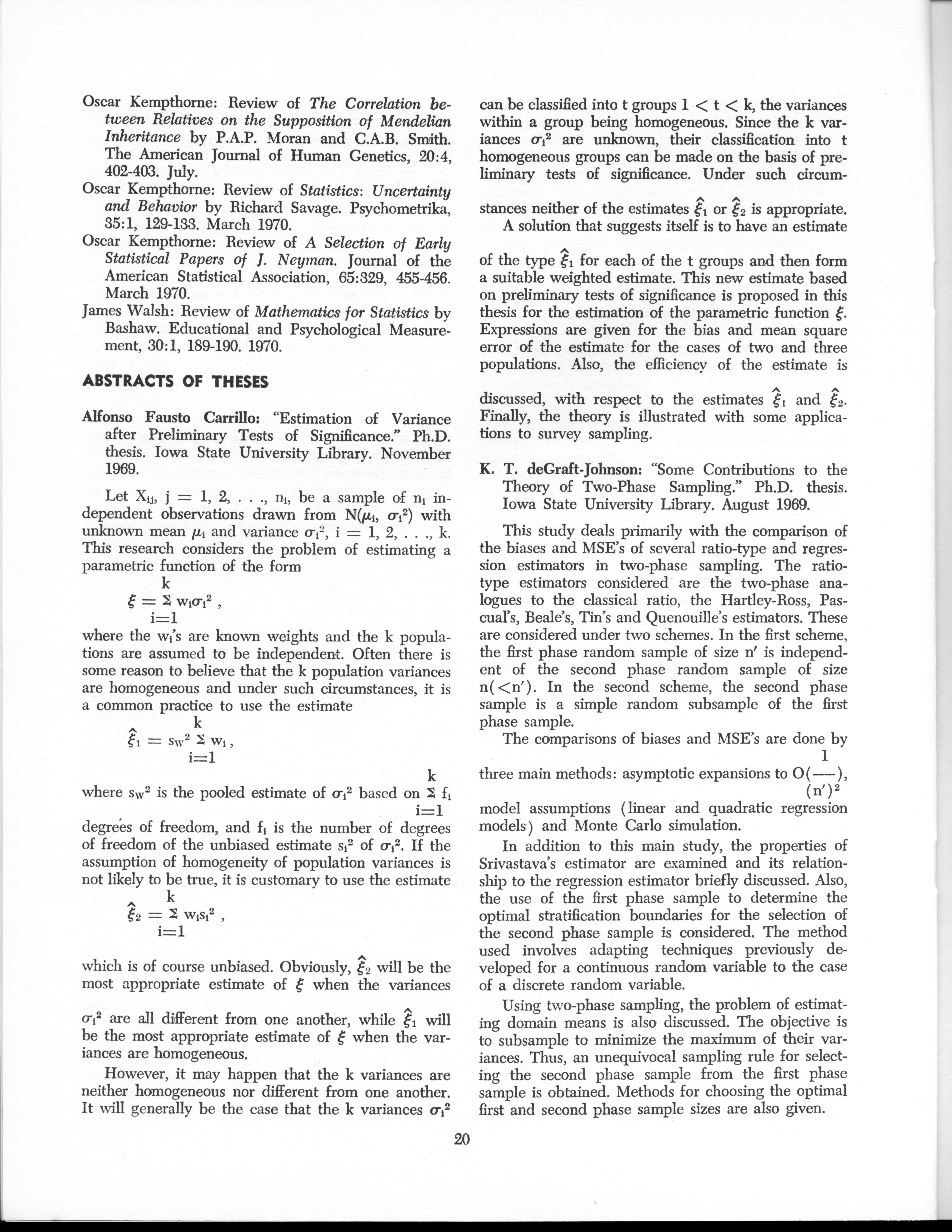- "Statistical Laboratory Annual Report, July 1, 1969 to June 30, 1970", Iowa State University Statistical Laboratory Annual Reports, Iowa State University Library Digital Collections