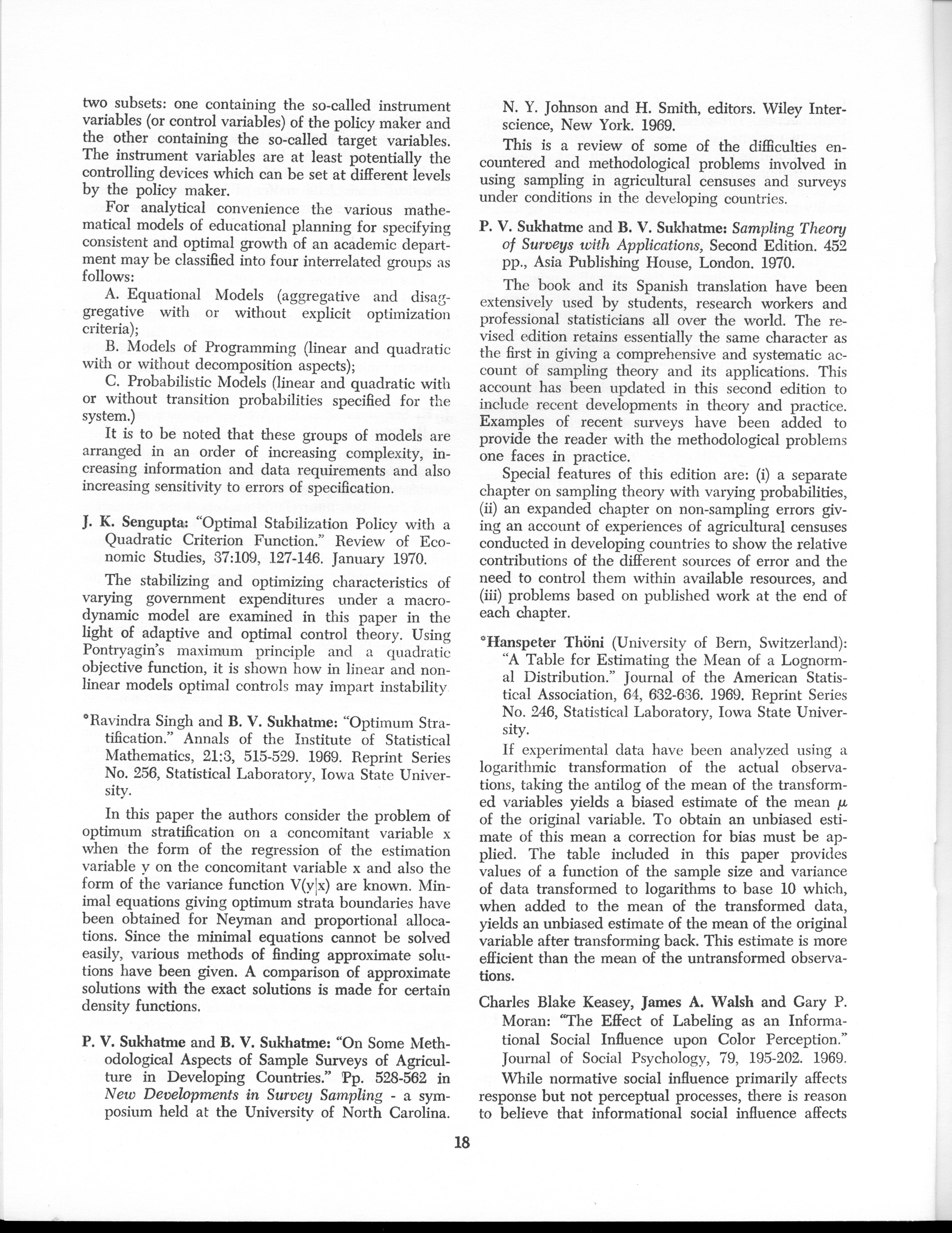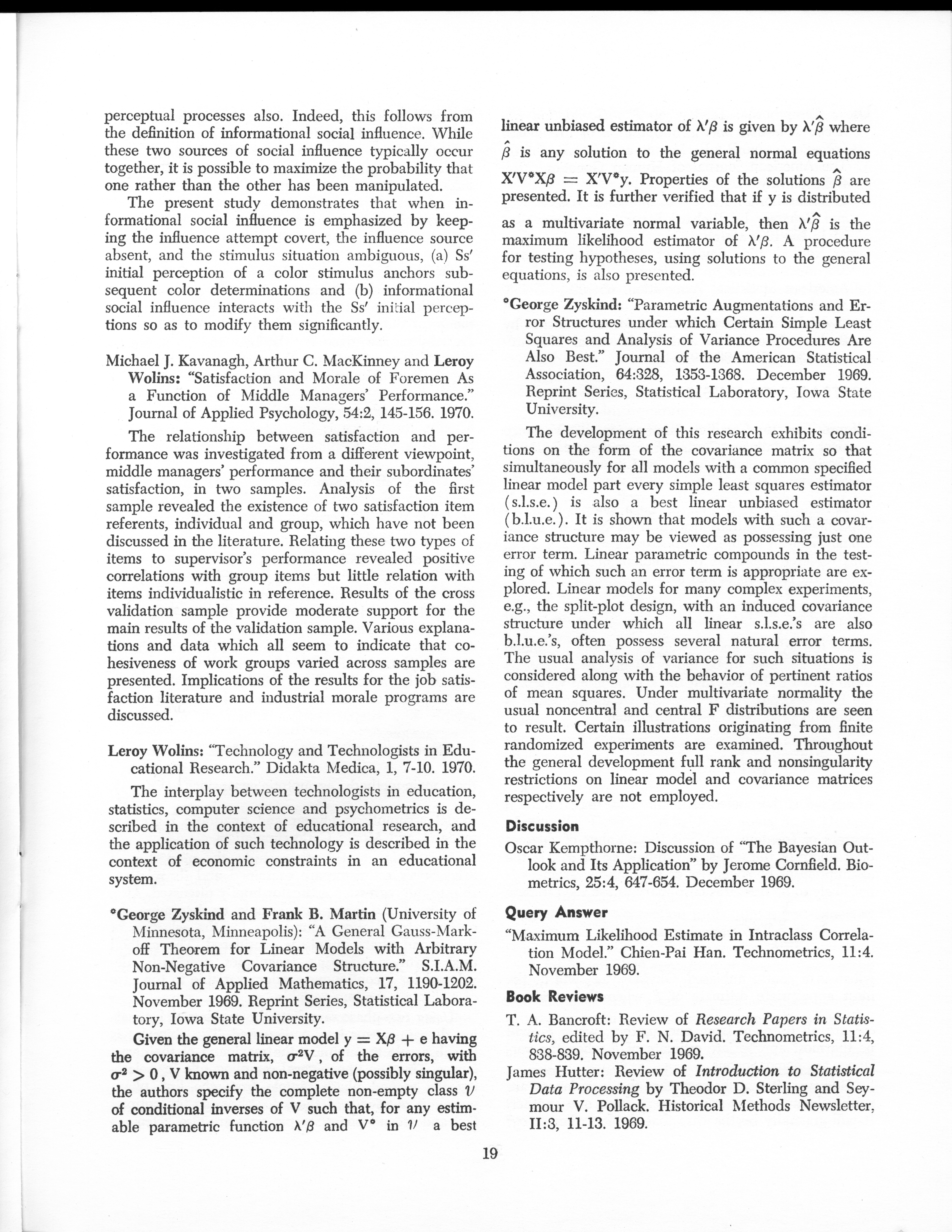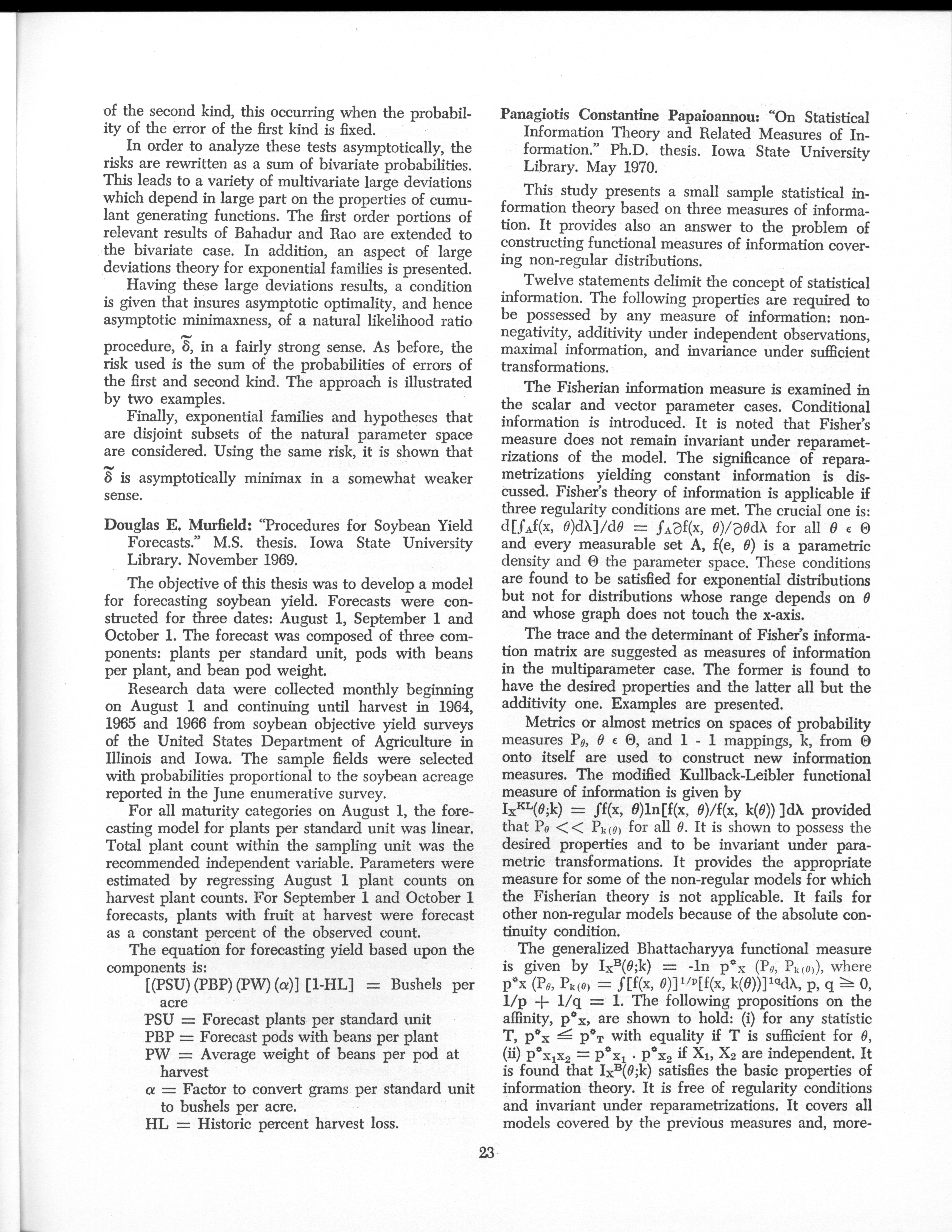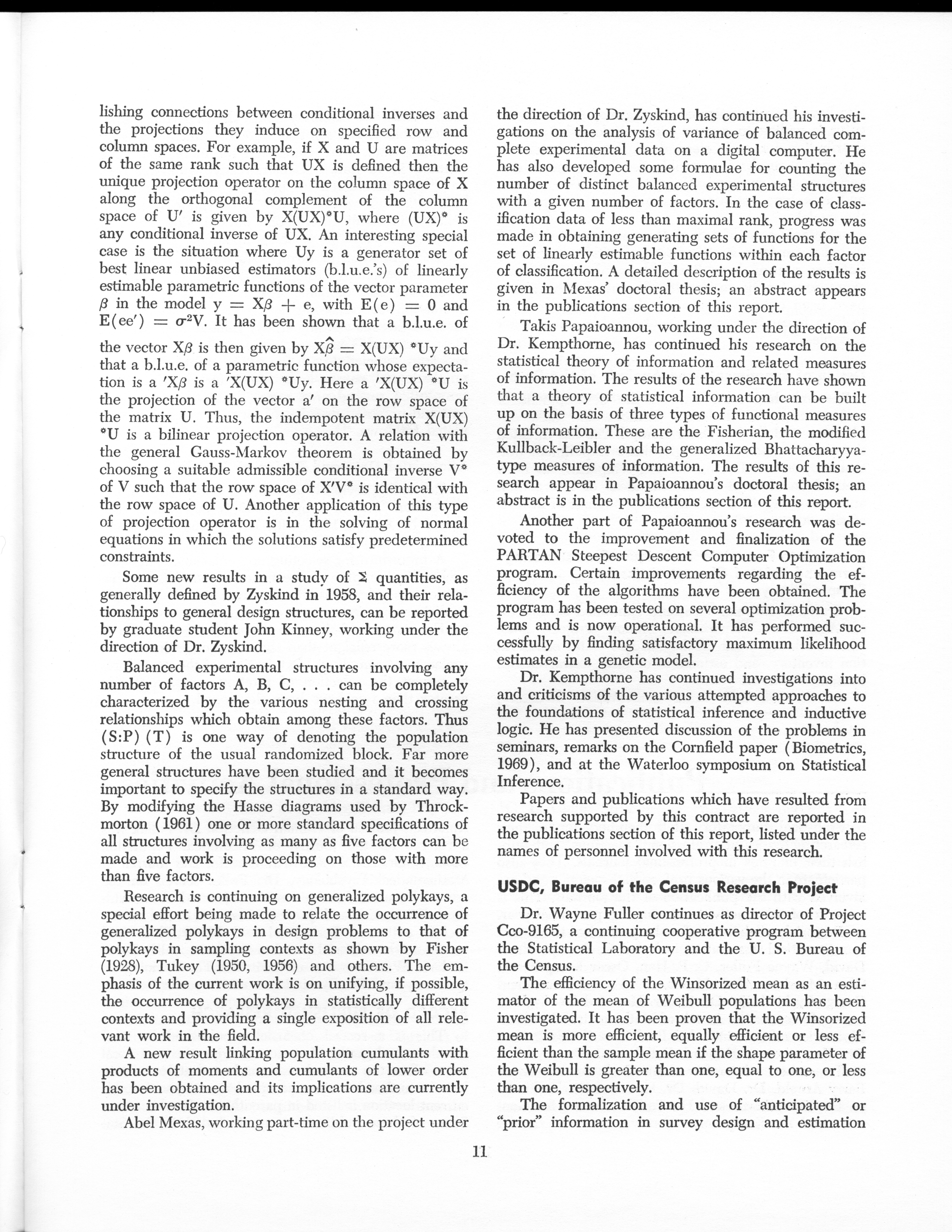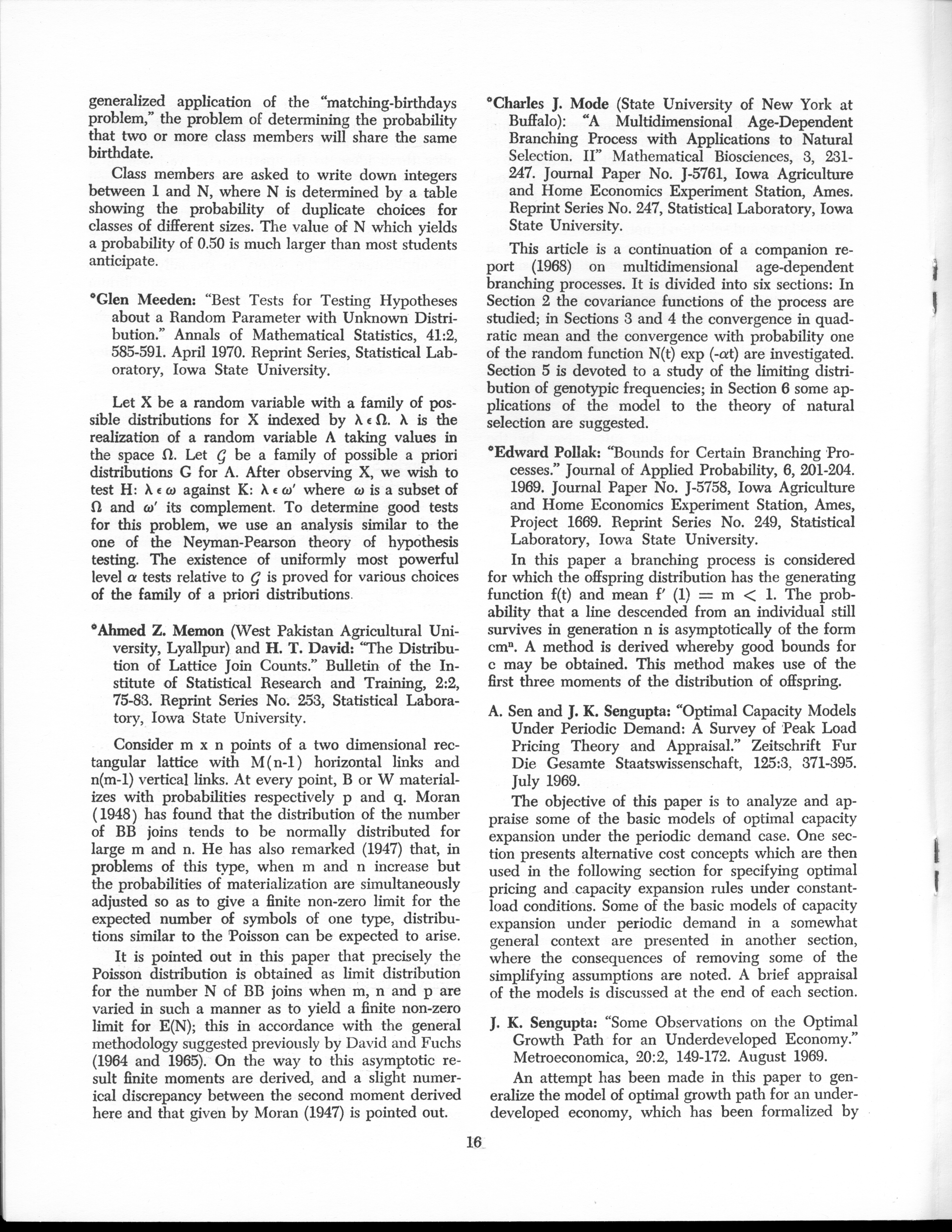 - "Statistical Laboratory Annual Report, July 1, 1969 to June 30, 1970", Iowa State University Statistical Laboratory Annual Reports, Iowa State University Library Digital Collections