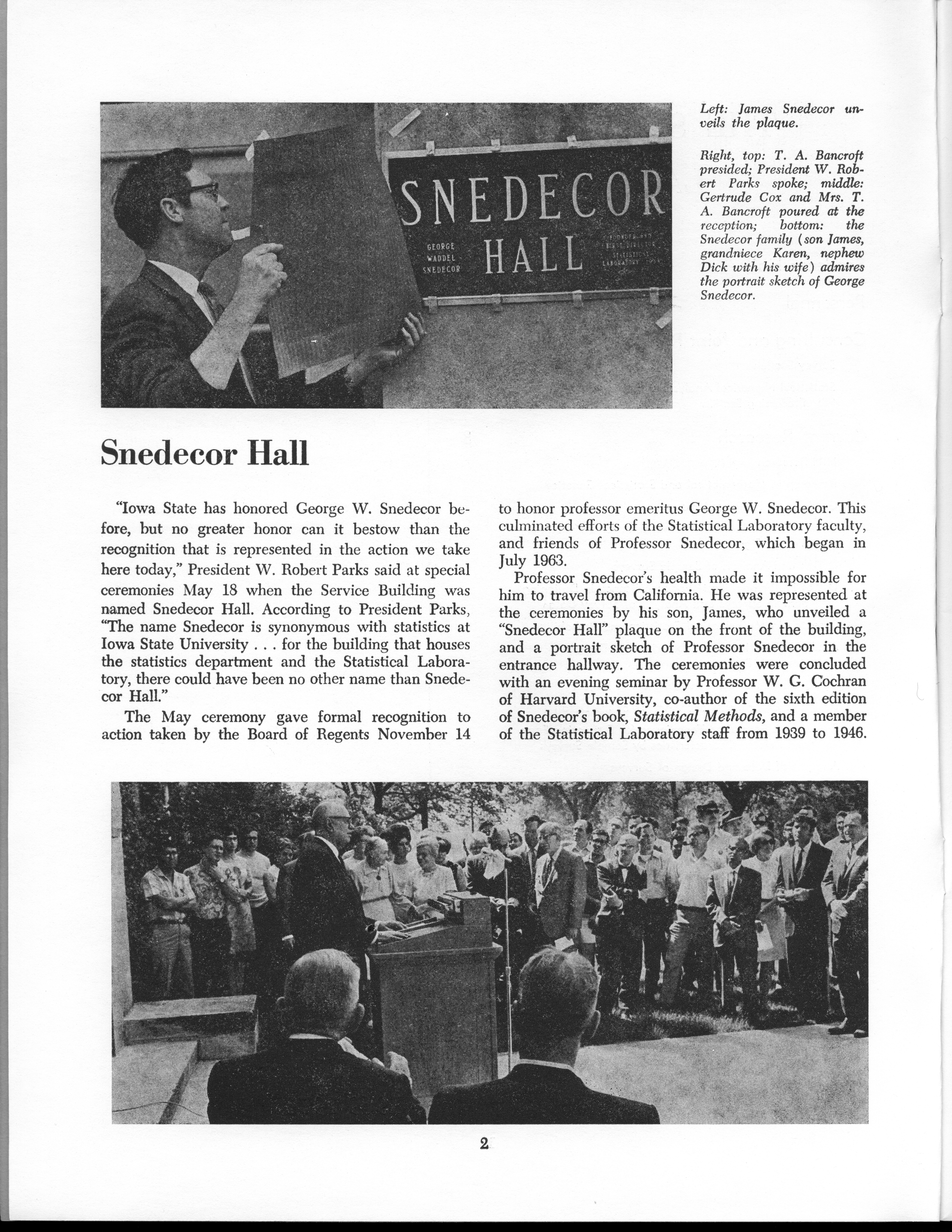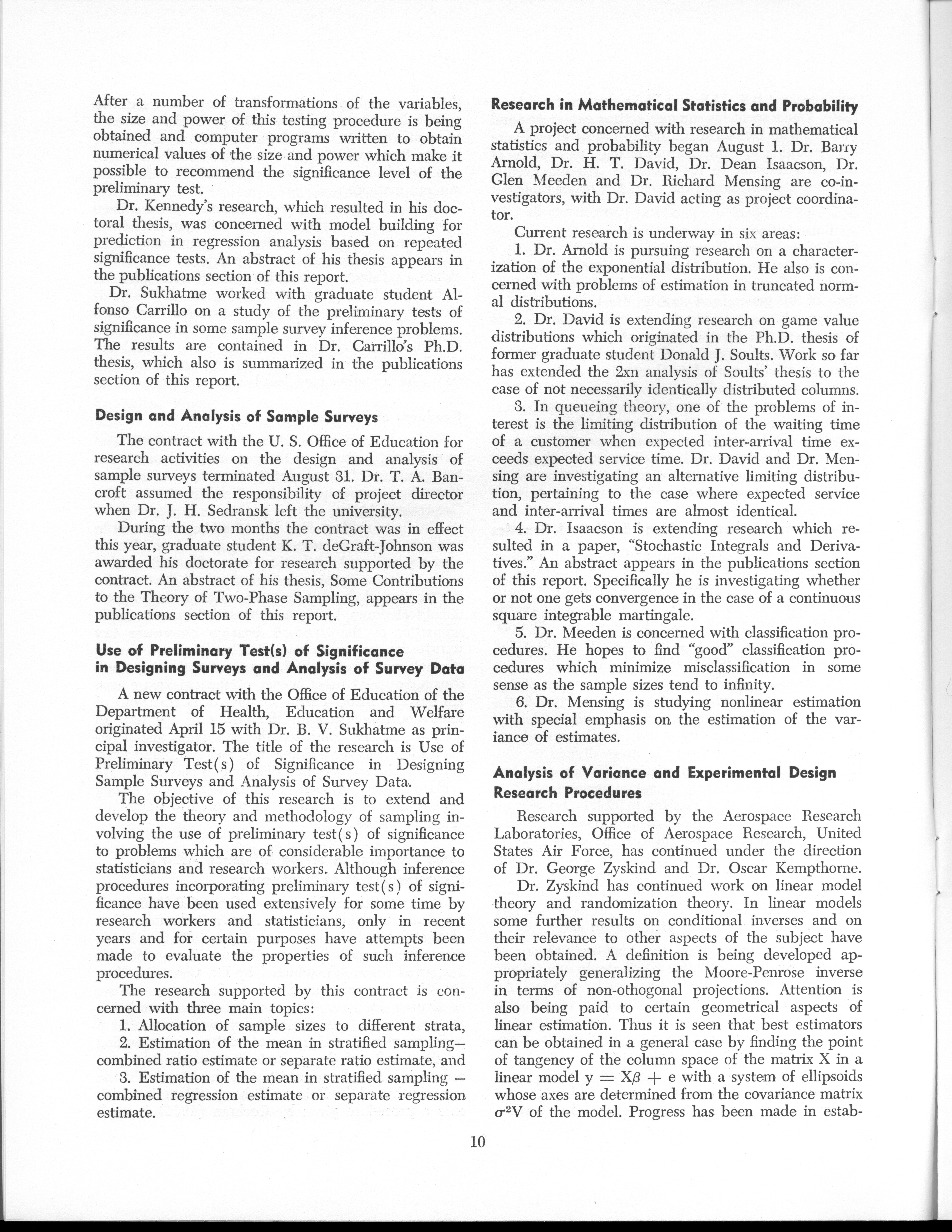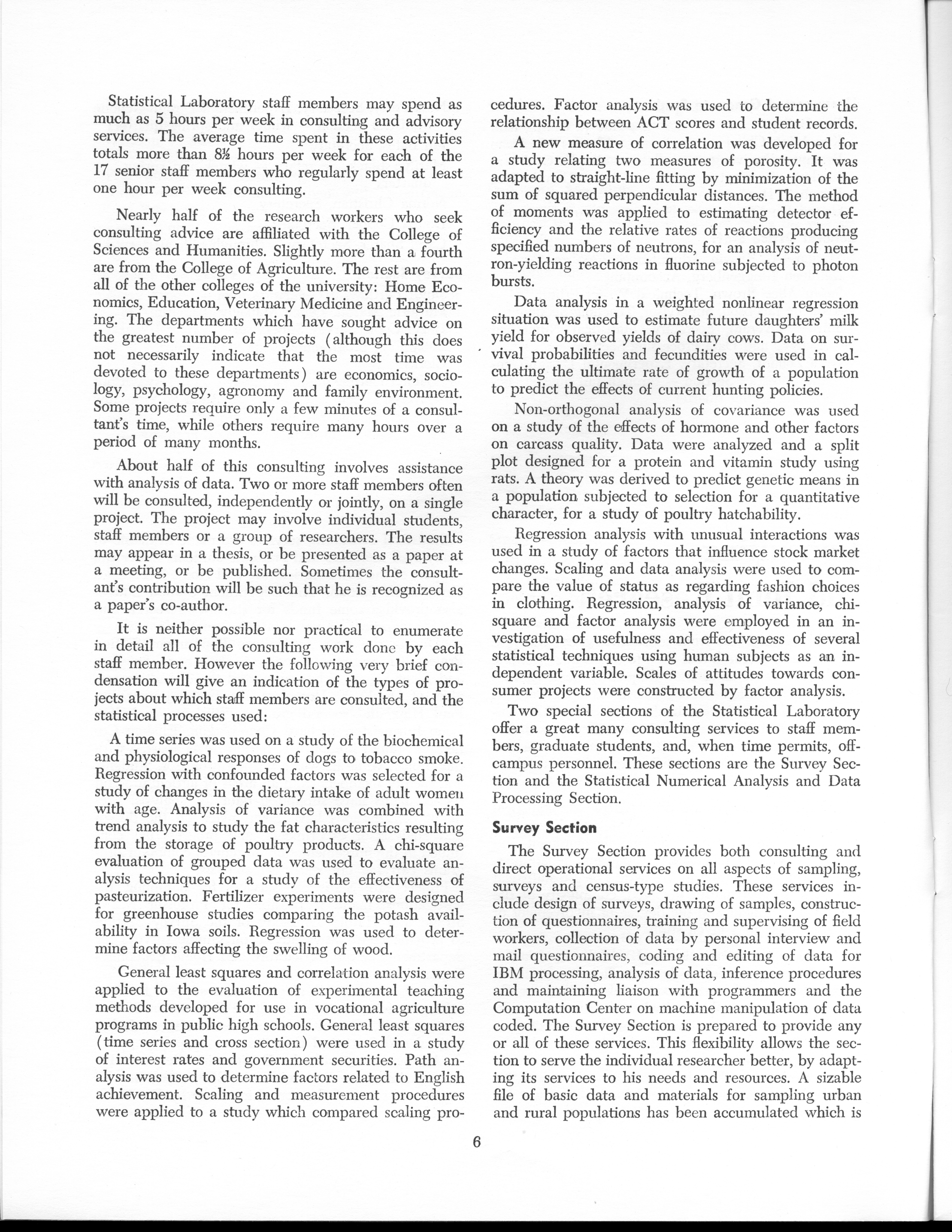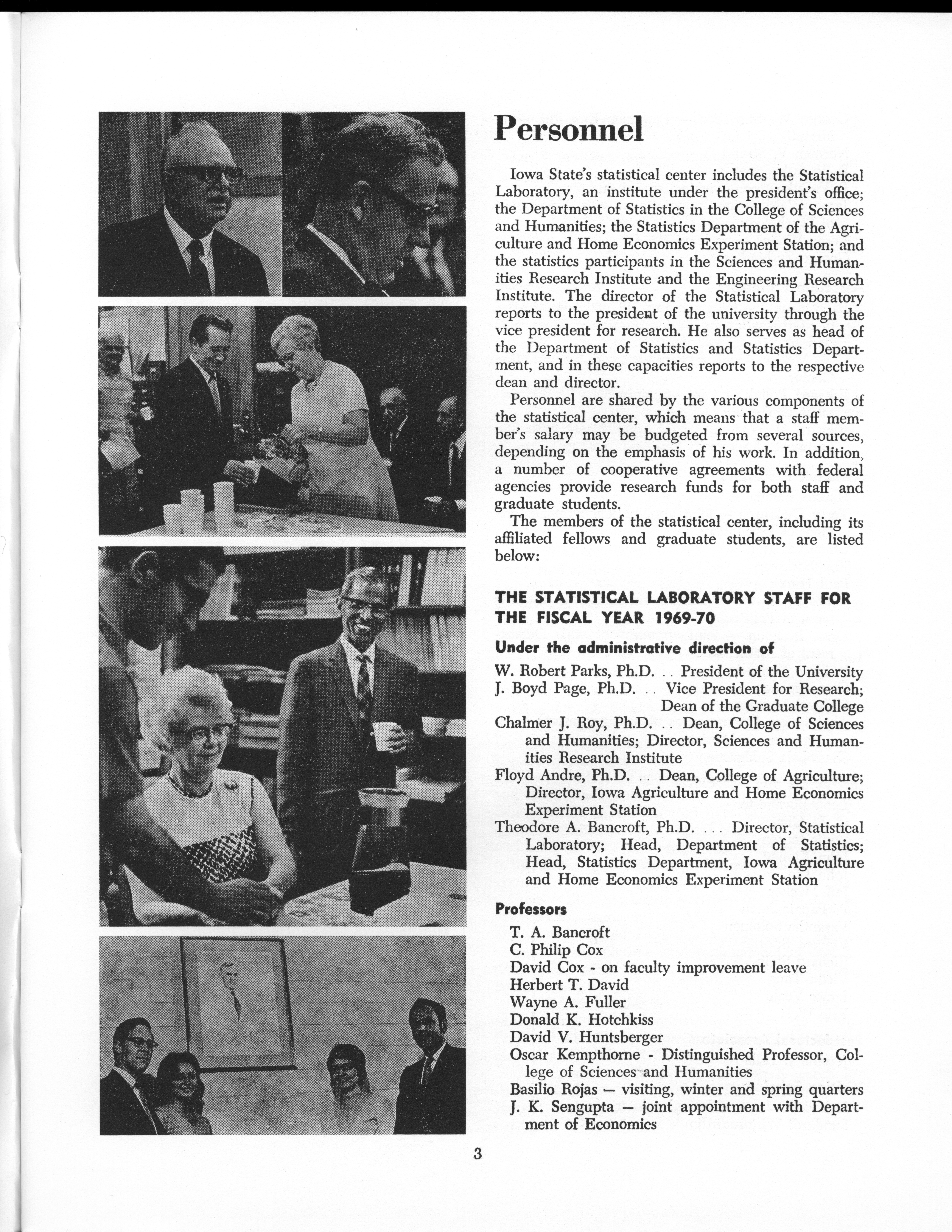 - Contents: Snedecor Hall -- Personnel -- Consulting and Joint Research -- Current Research -- Publications and Professional Activities -- Teaching
