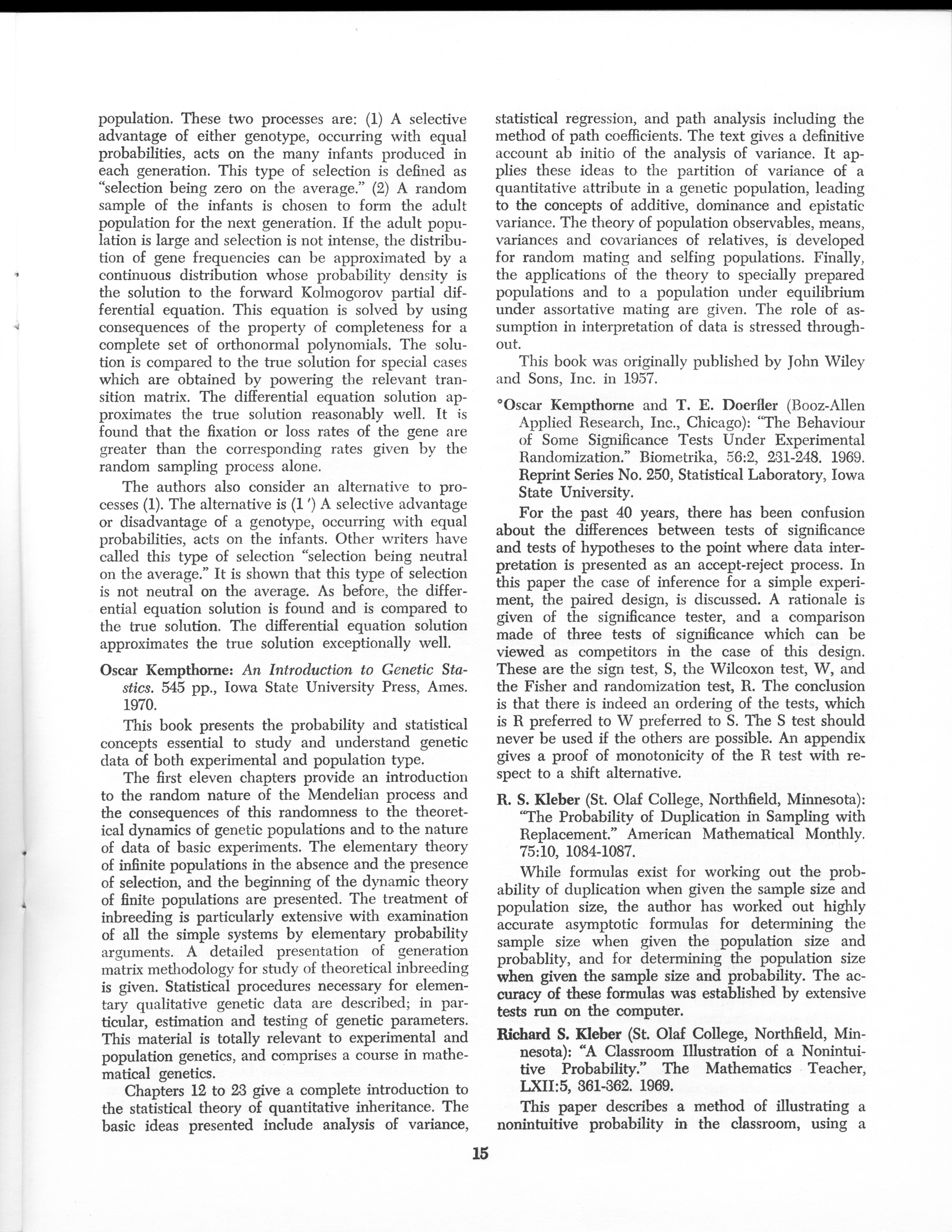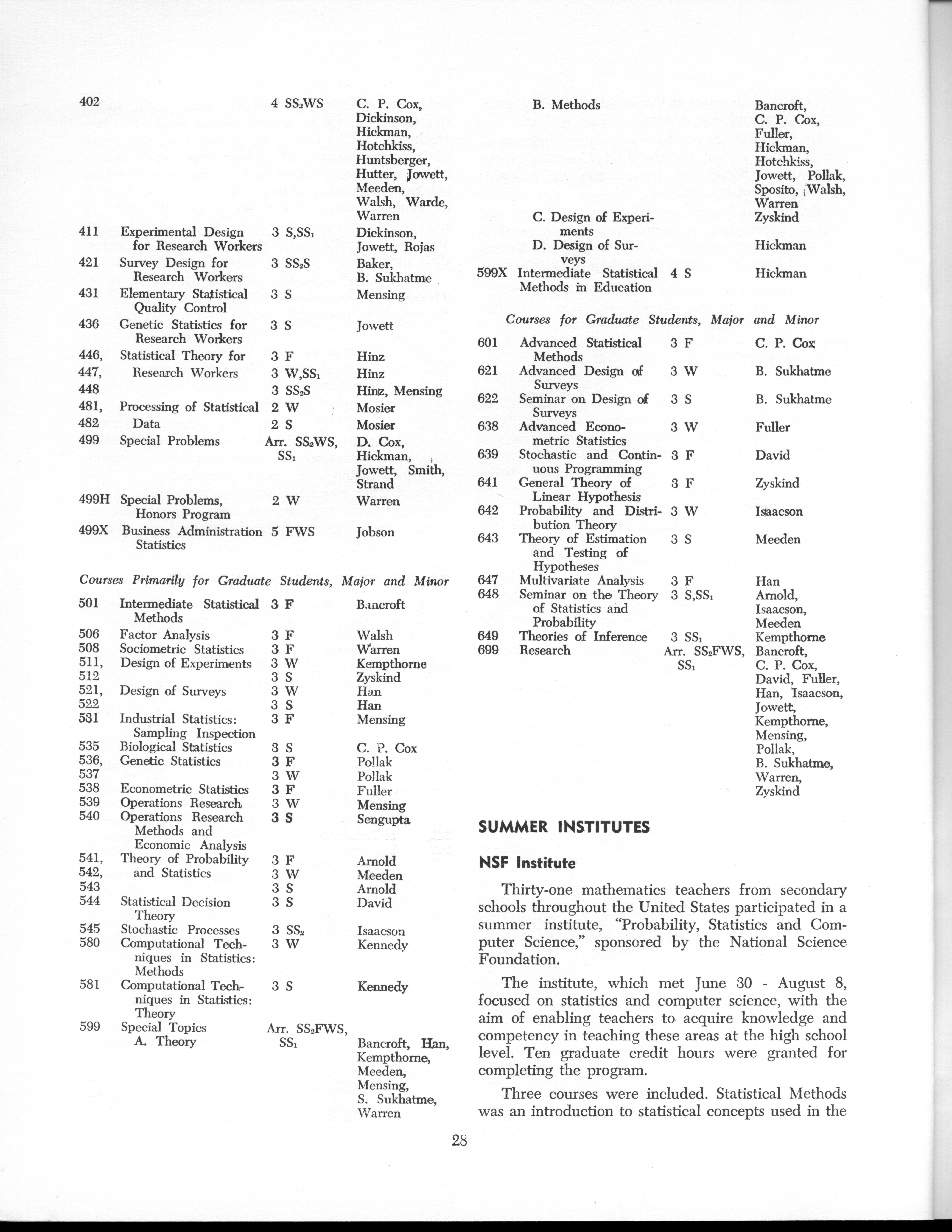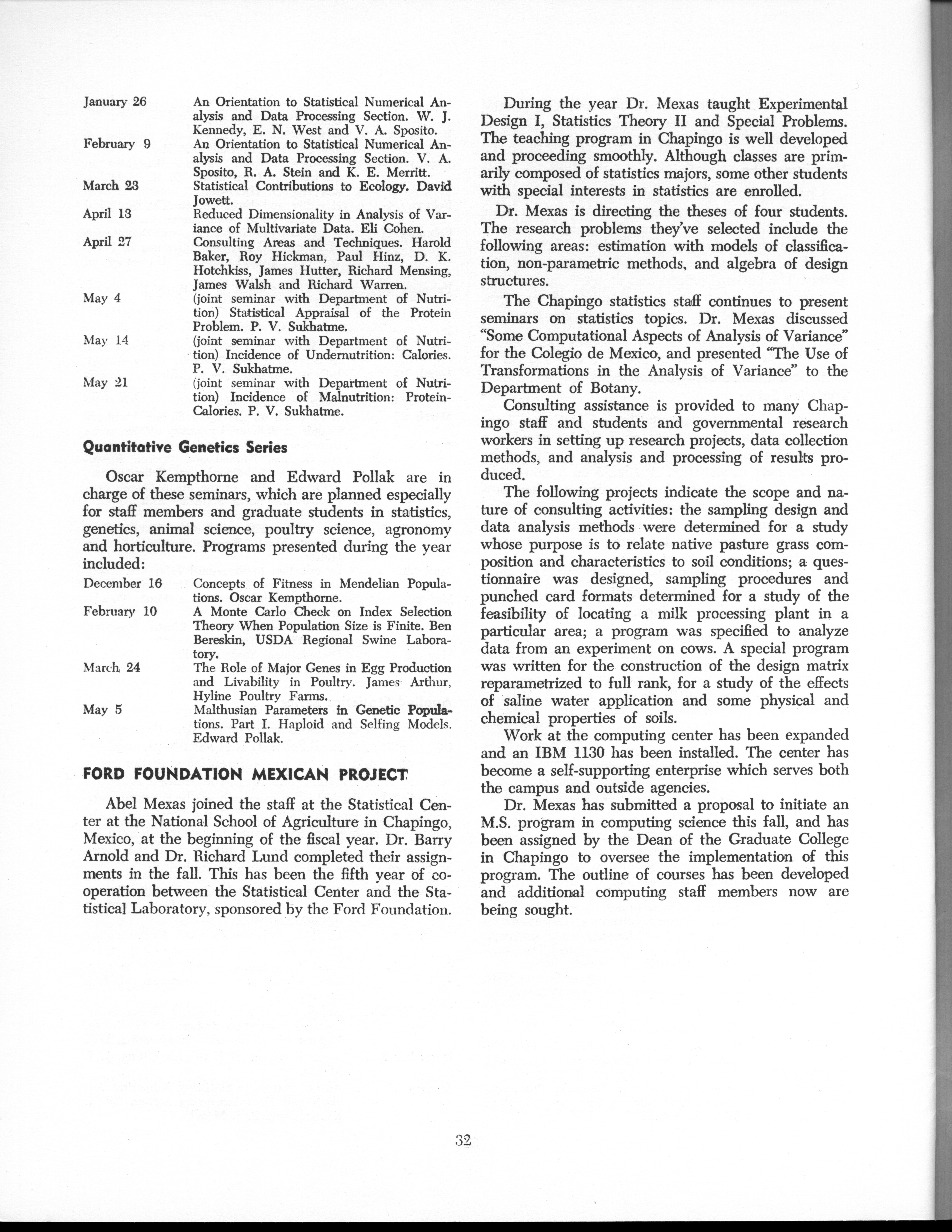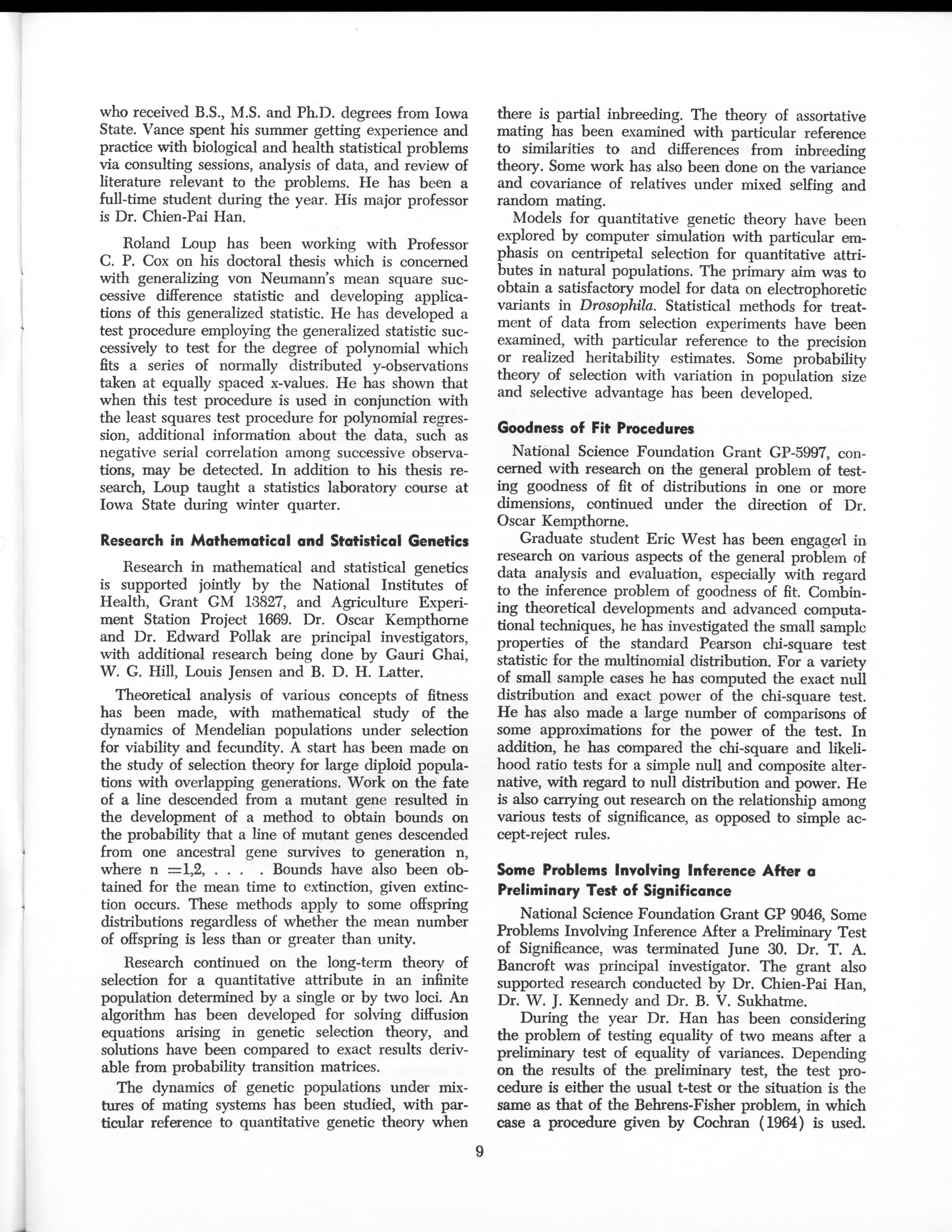- Contents: Snedecor Hall -- Personnel -- Consulting and Joint Research -- Current Research -- Publications and Professional Activities -- Teaching