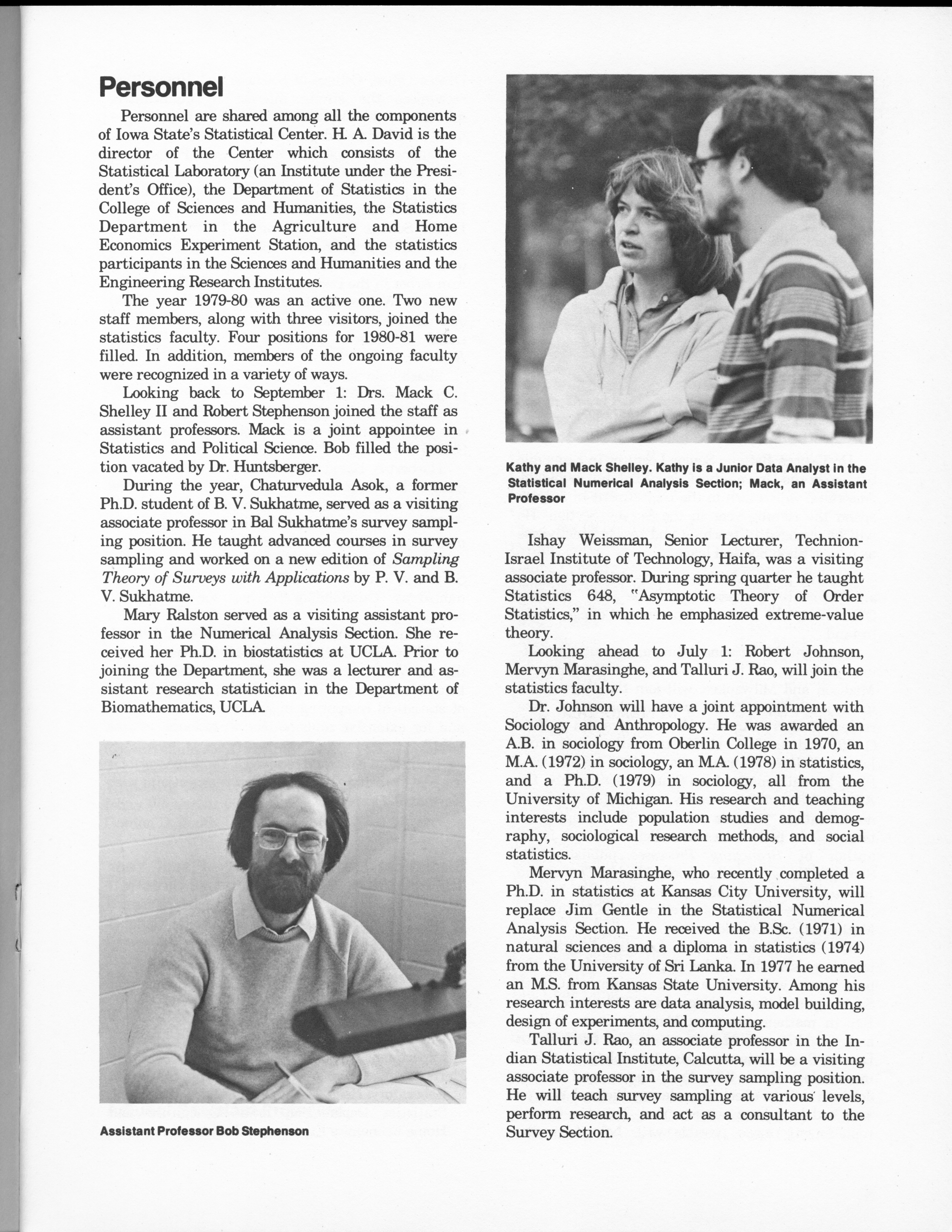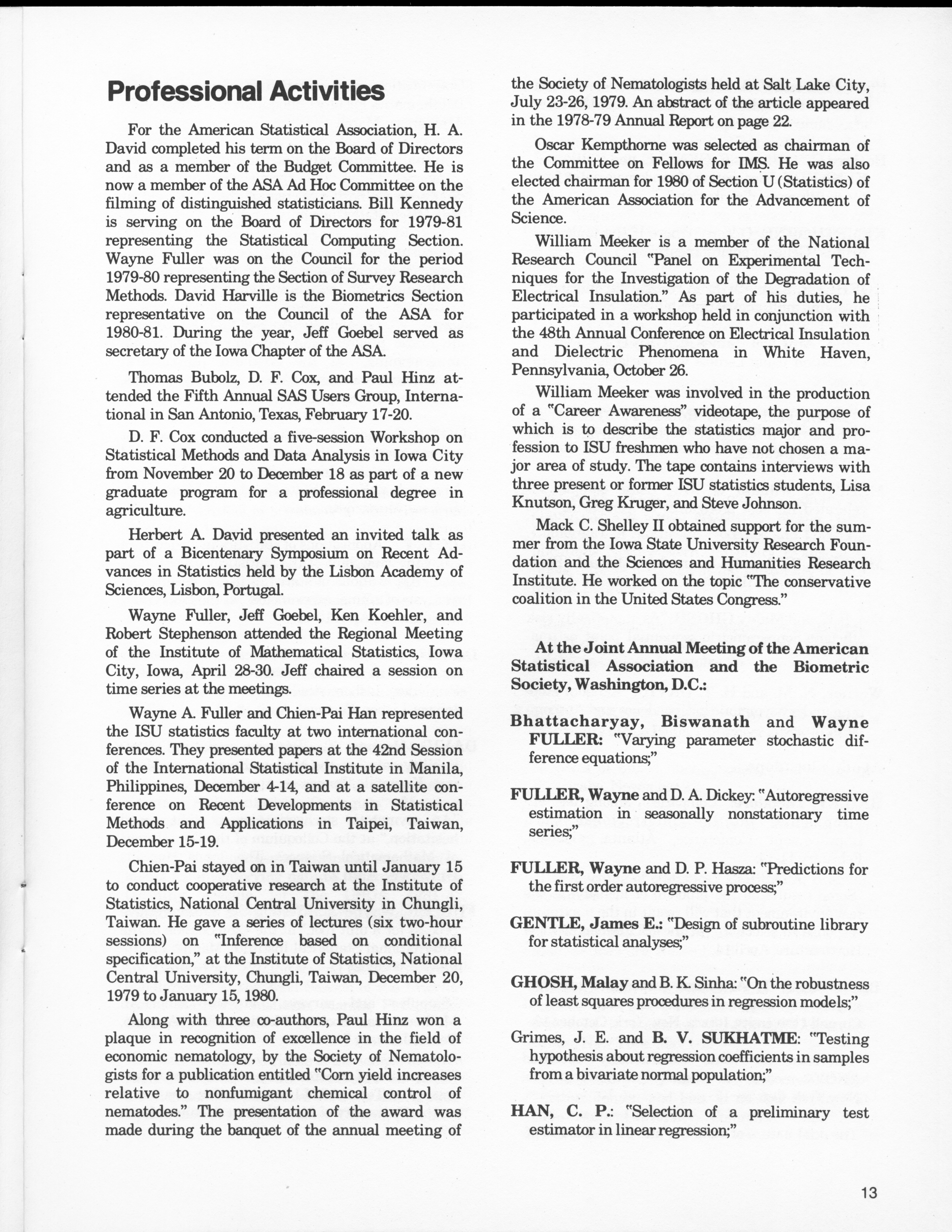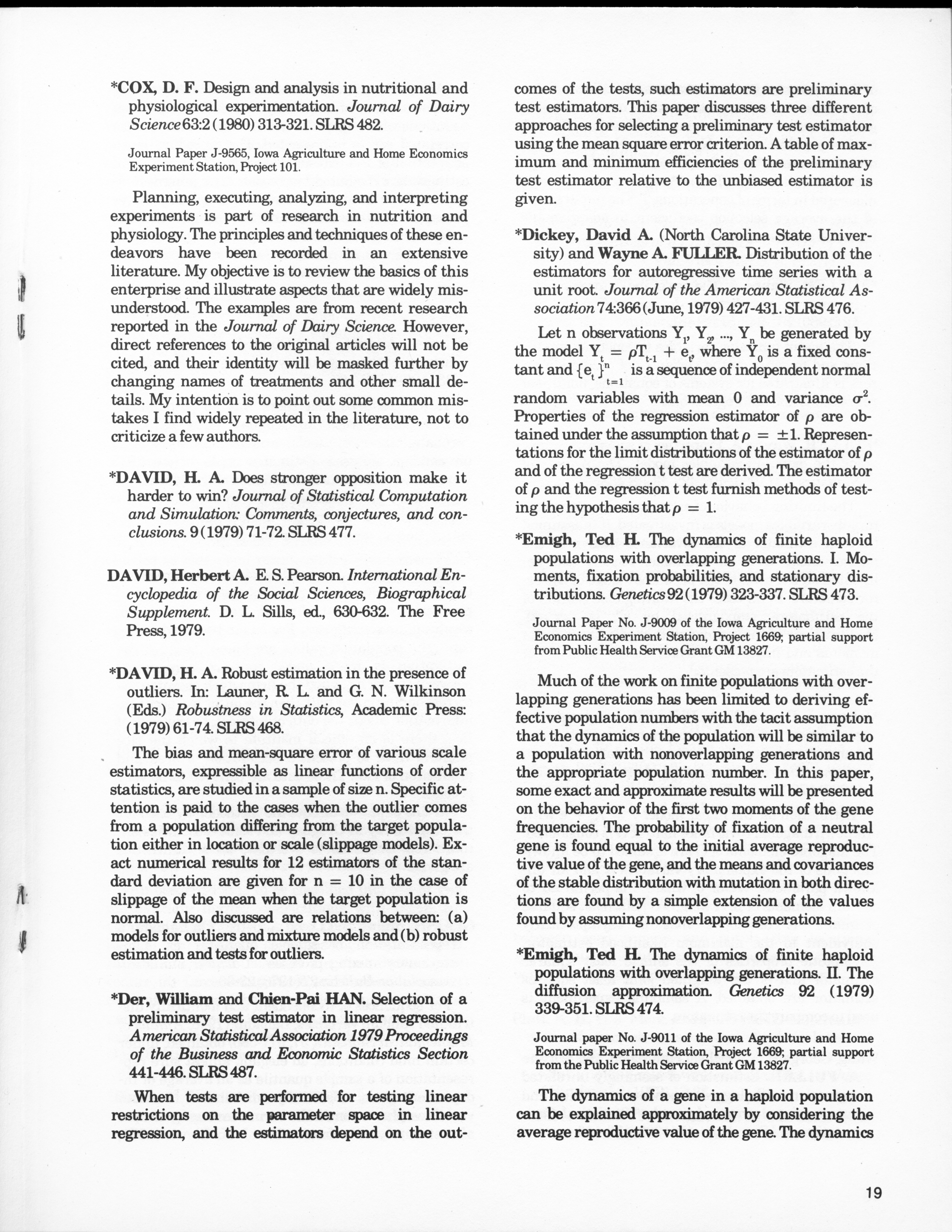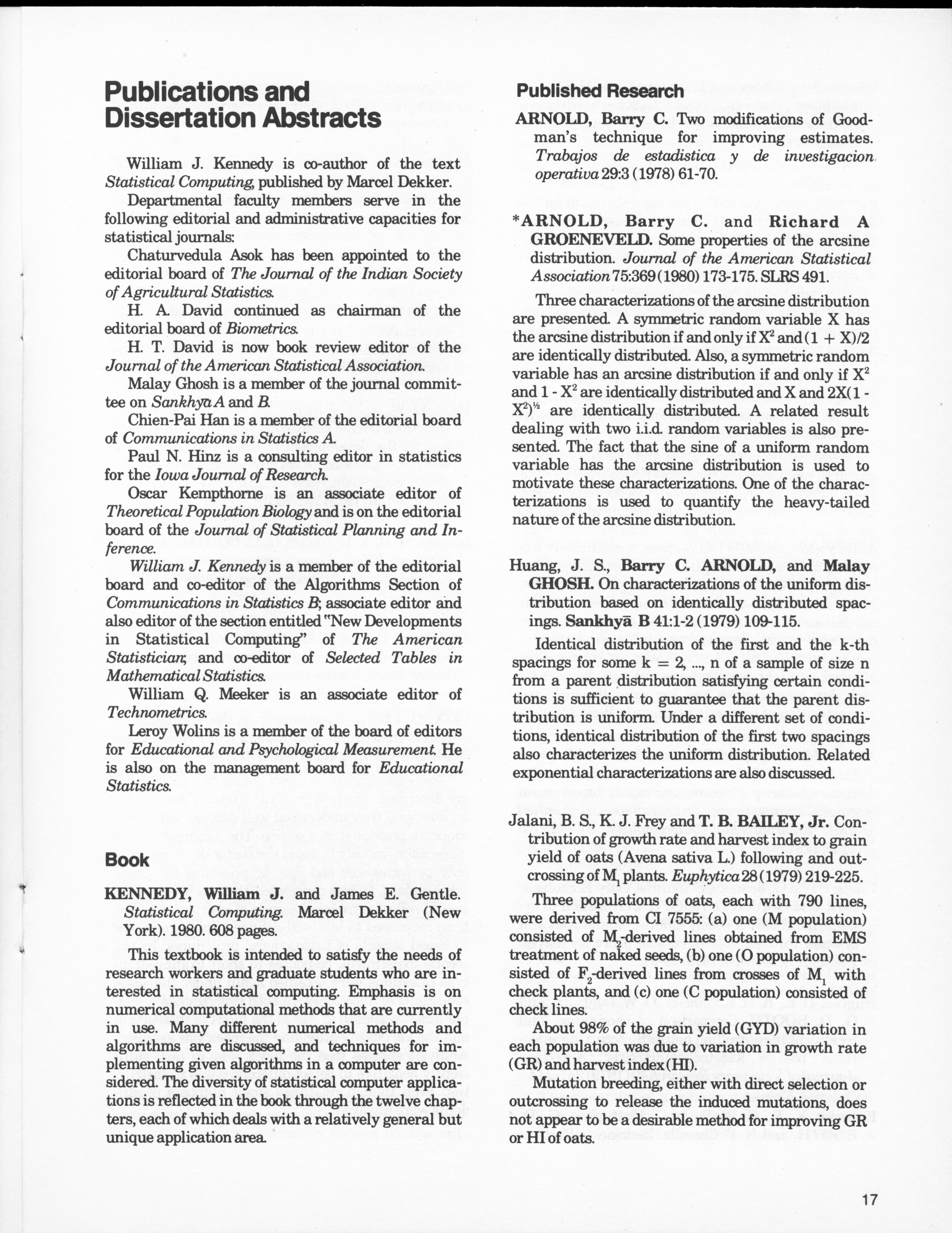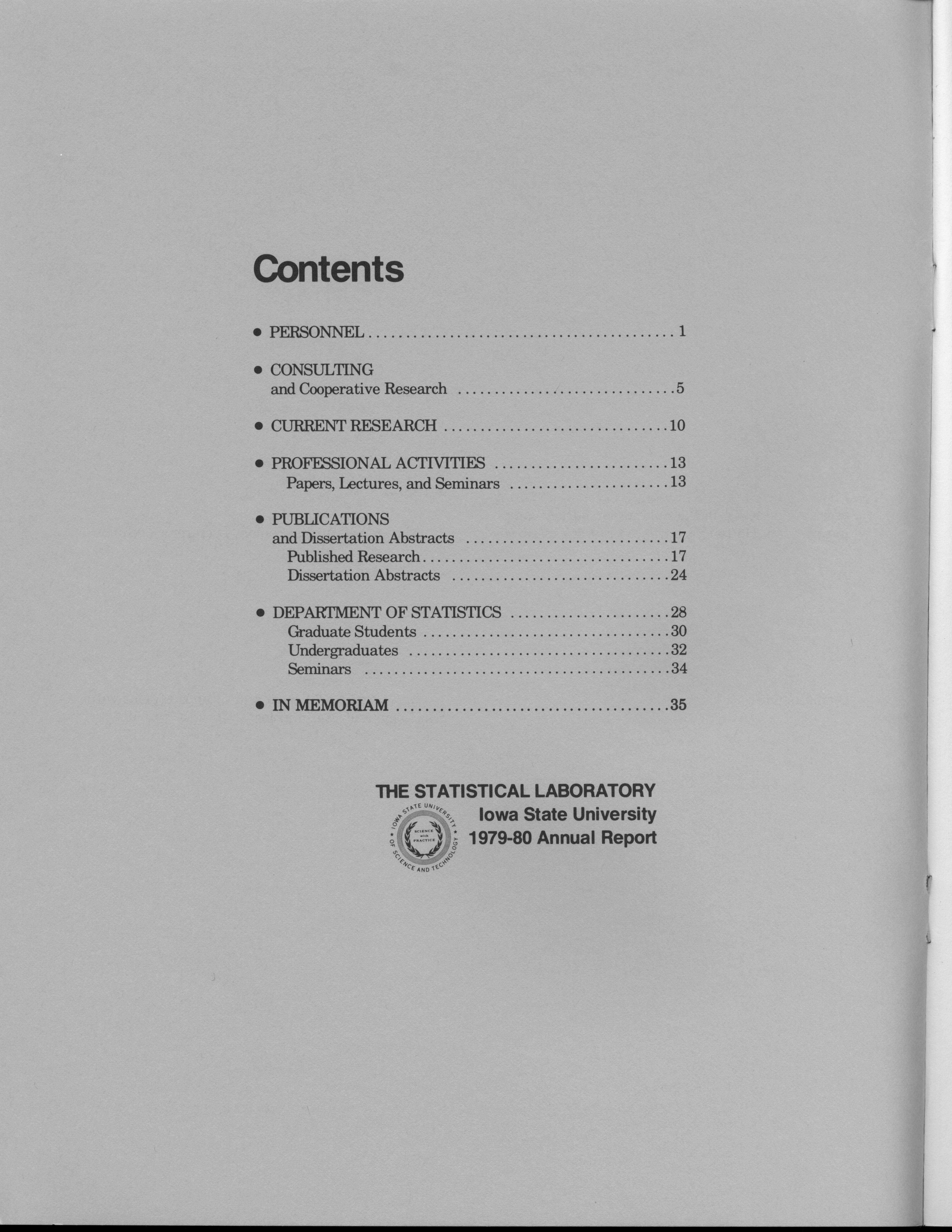 - "Statistical Laboratory Annual Report, July 1, 1979 to June 30, 1980", Iowa State University Statistical Laboratory Annual Reports, Iowa State University Library Digital Collections