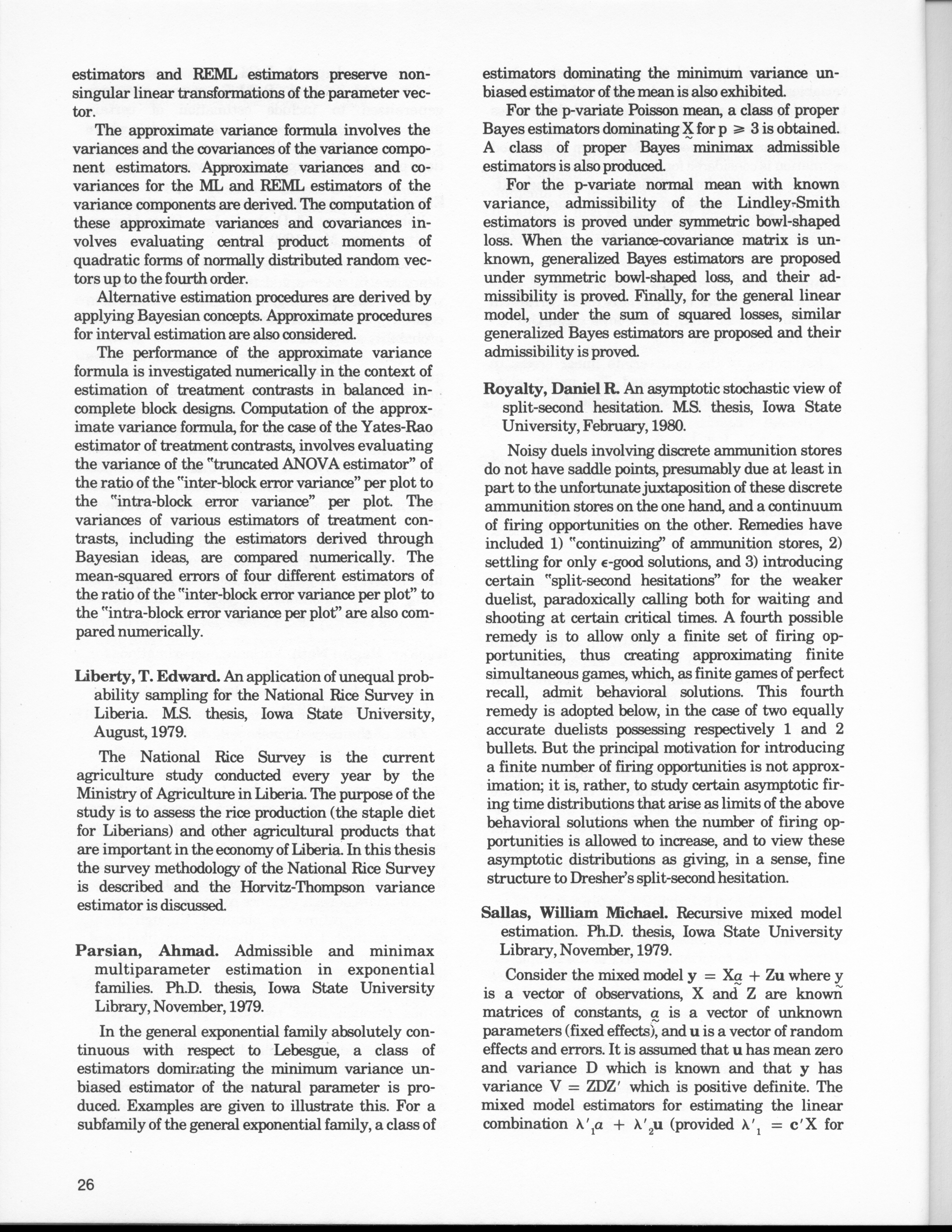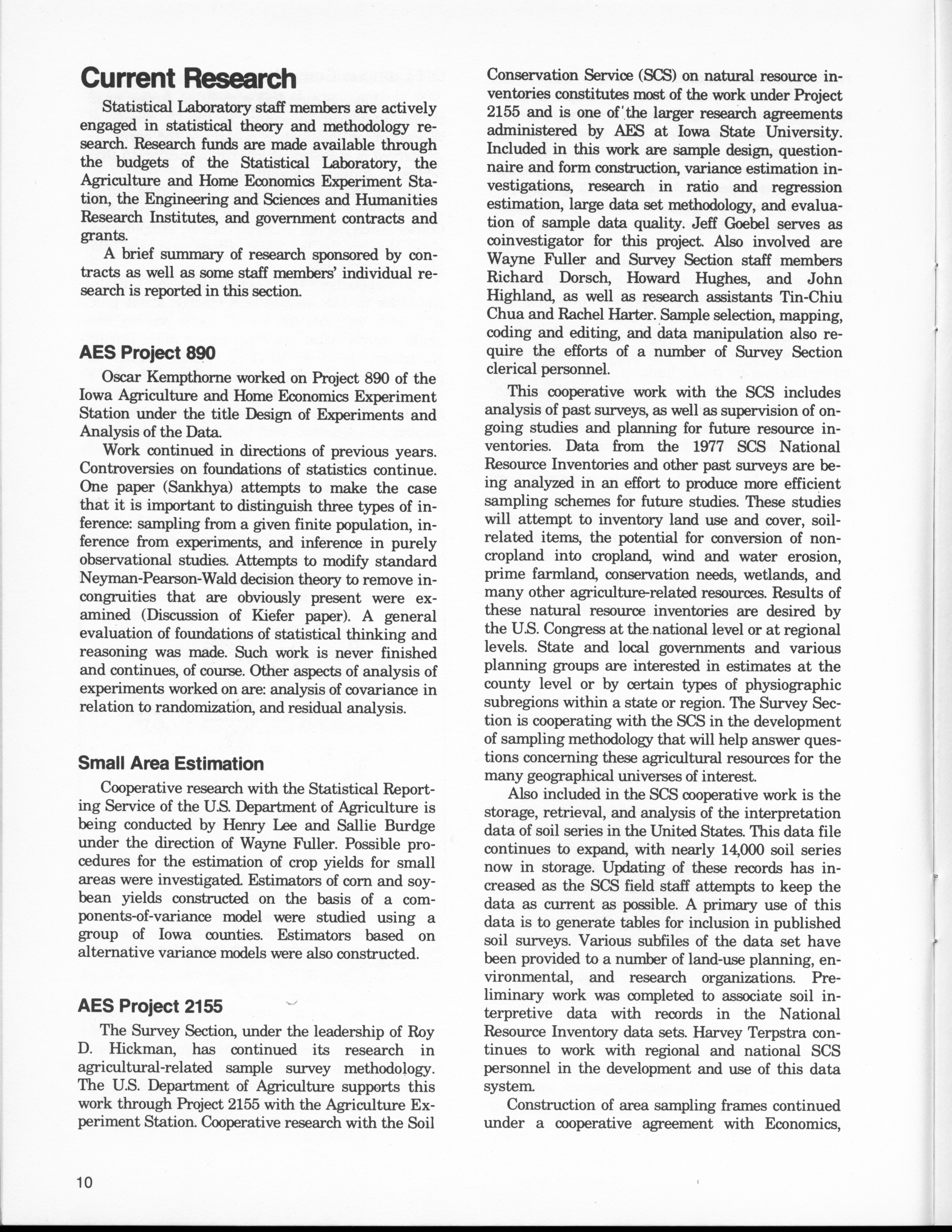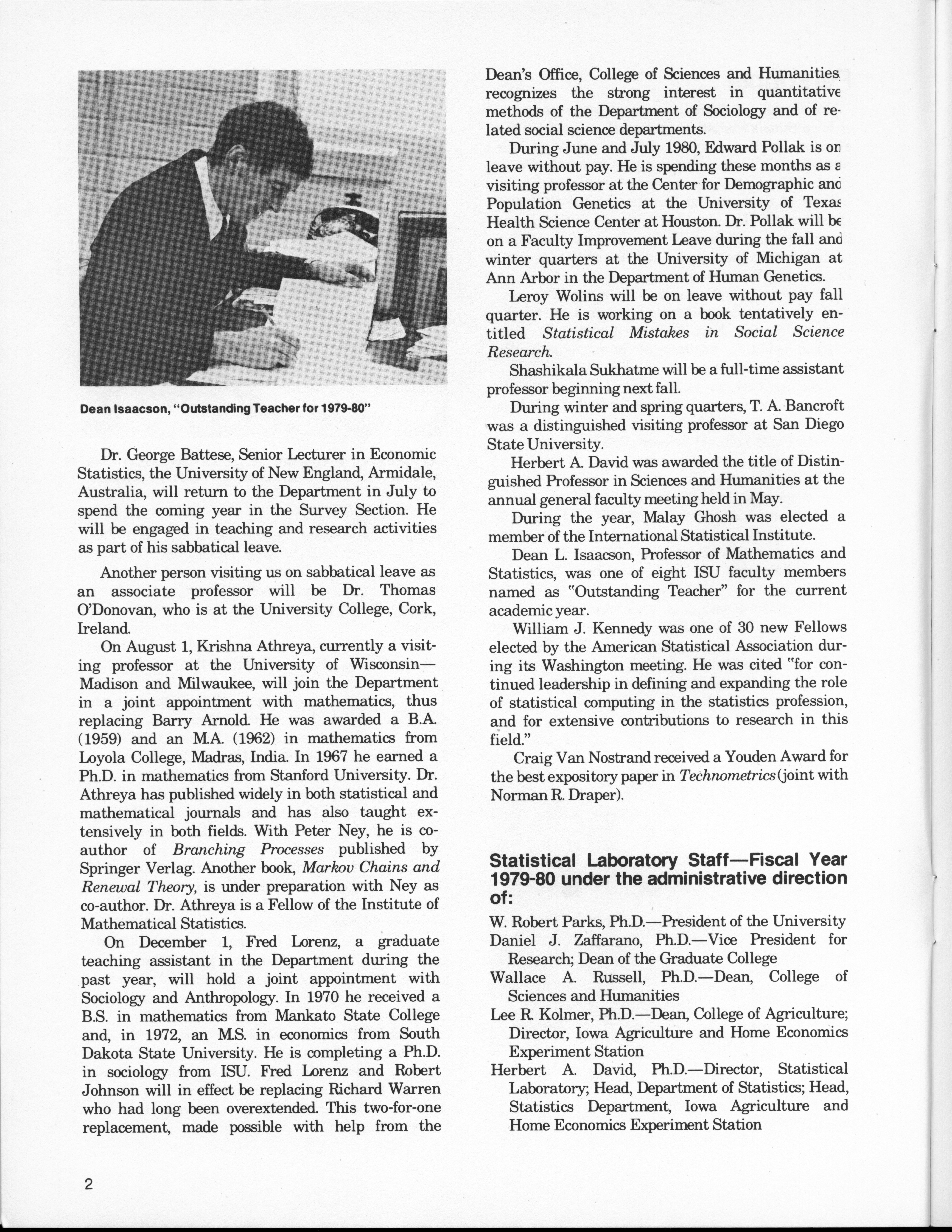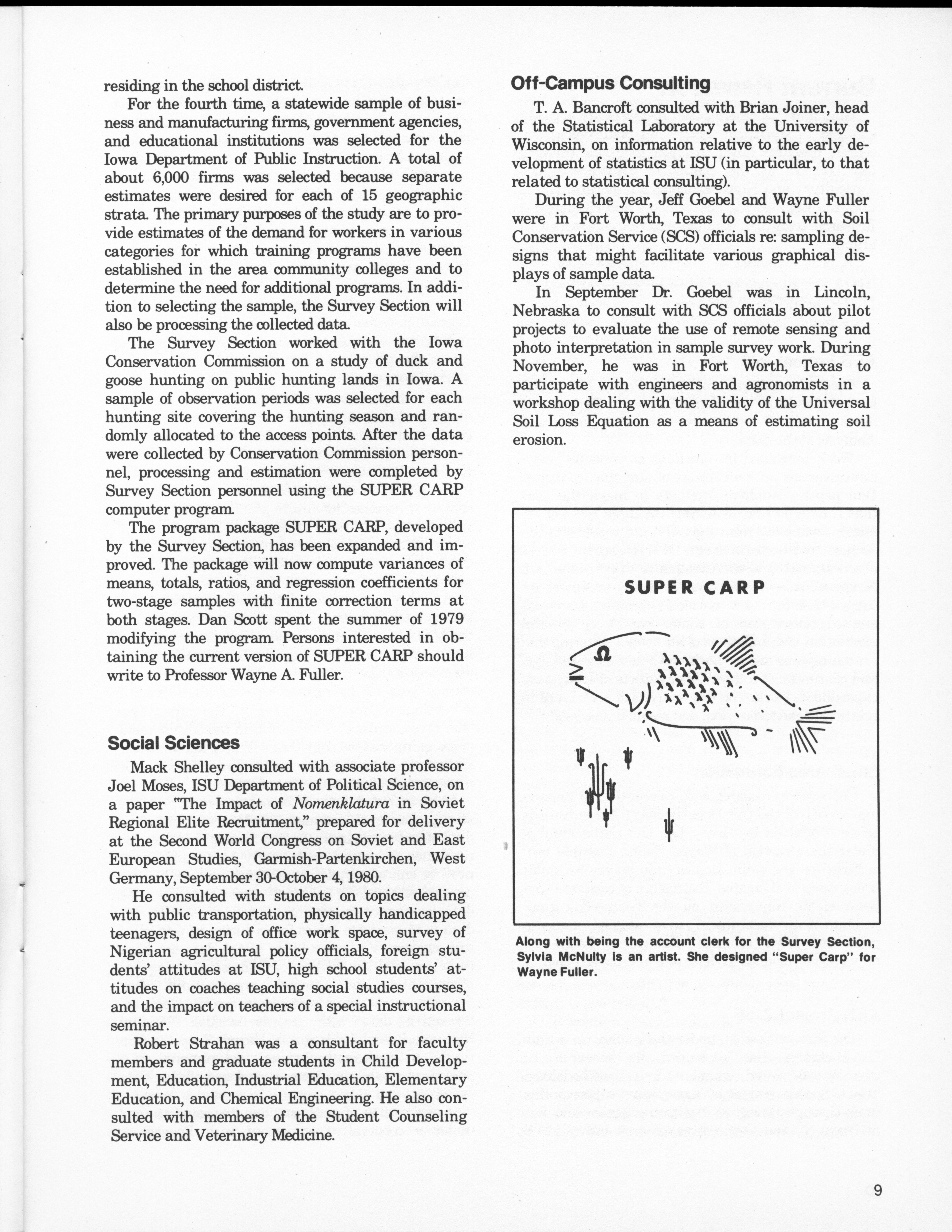 - "Statistical Laboratory Annual Report, July 1, 1979 to June 30, 1980", Iowa State University Statistical Laboratory Annual Reports, Iowa State University Library Digital Collections