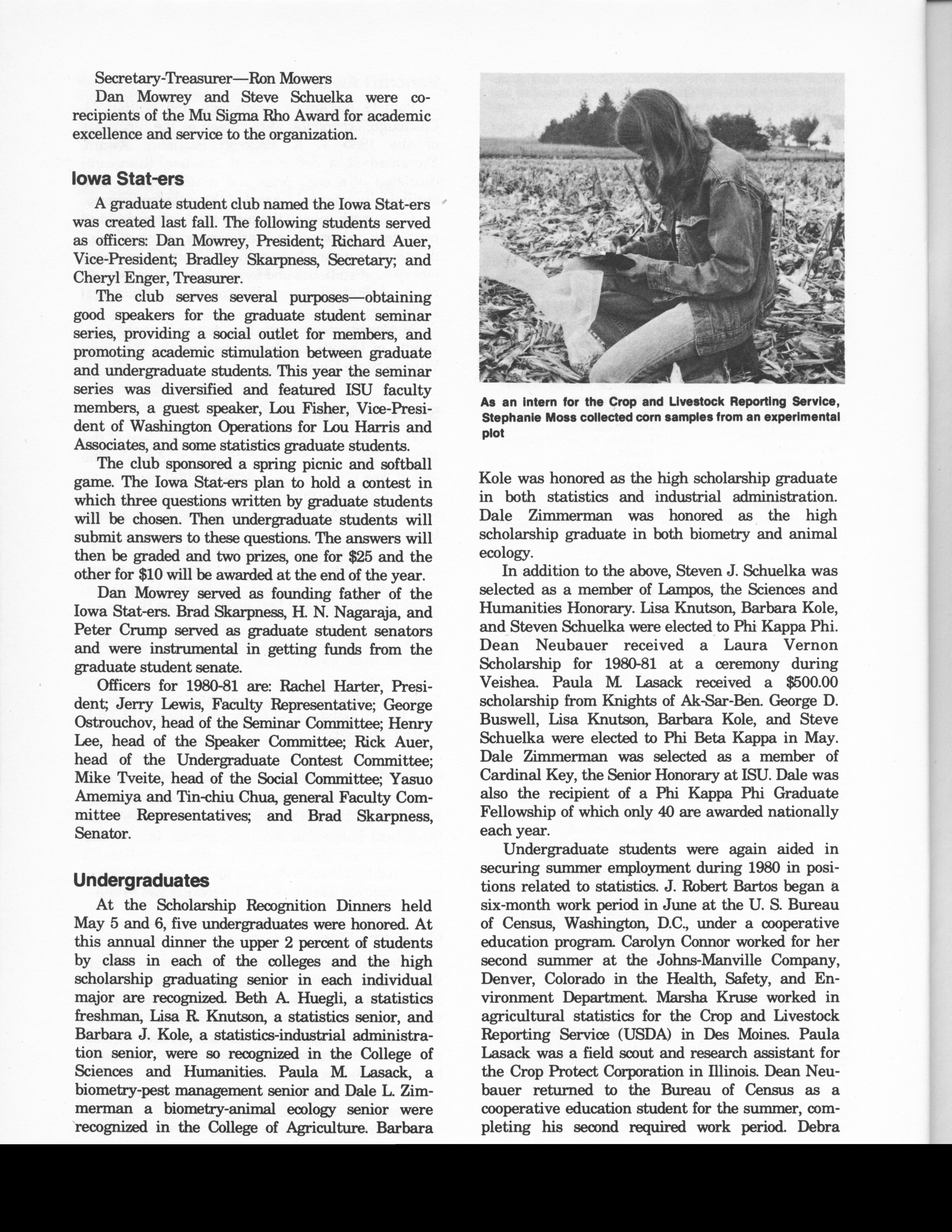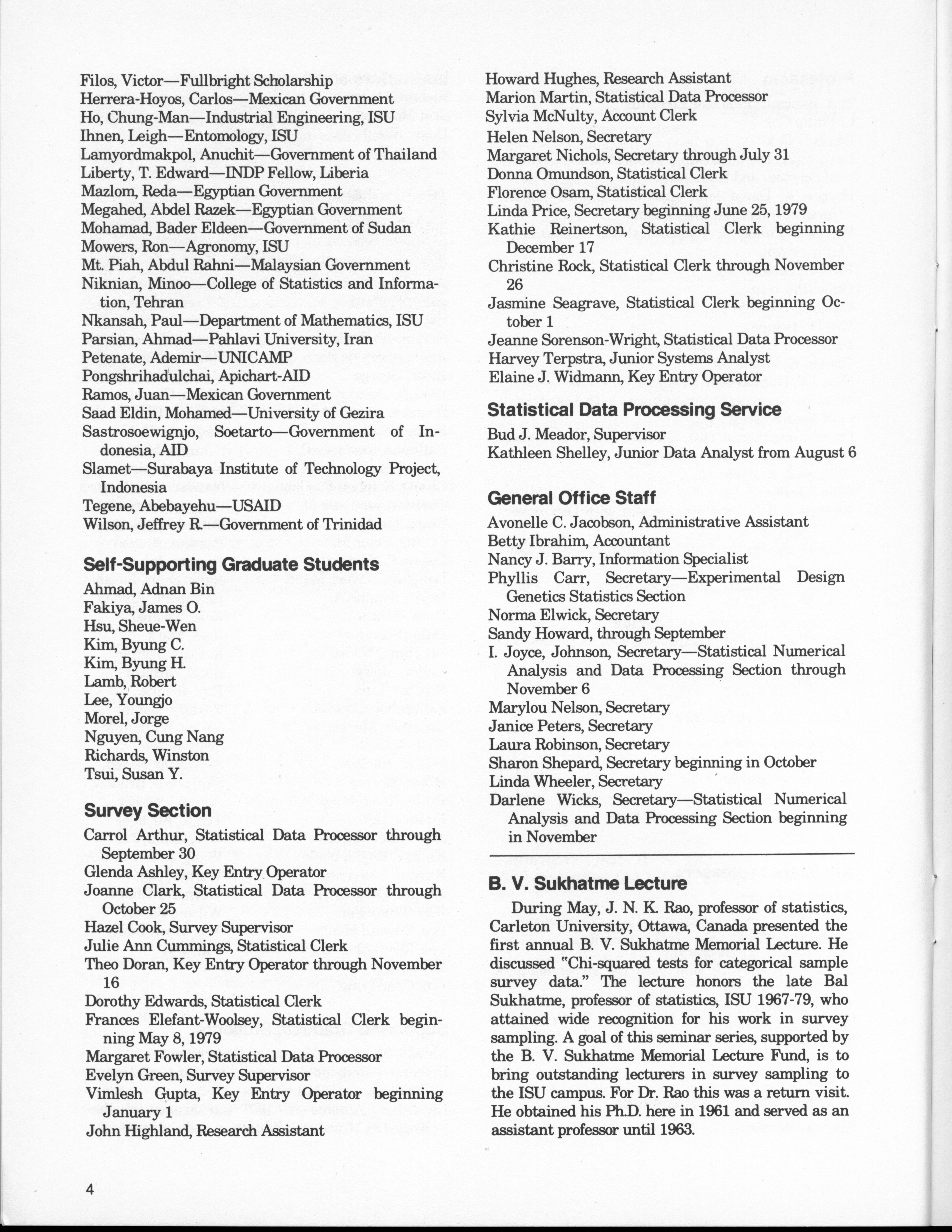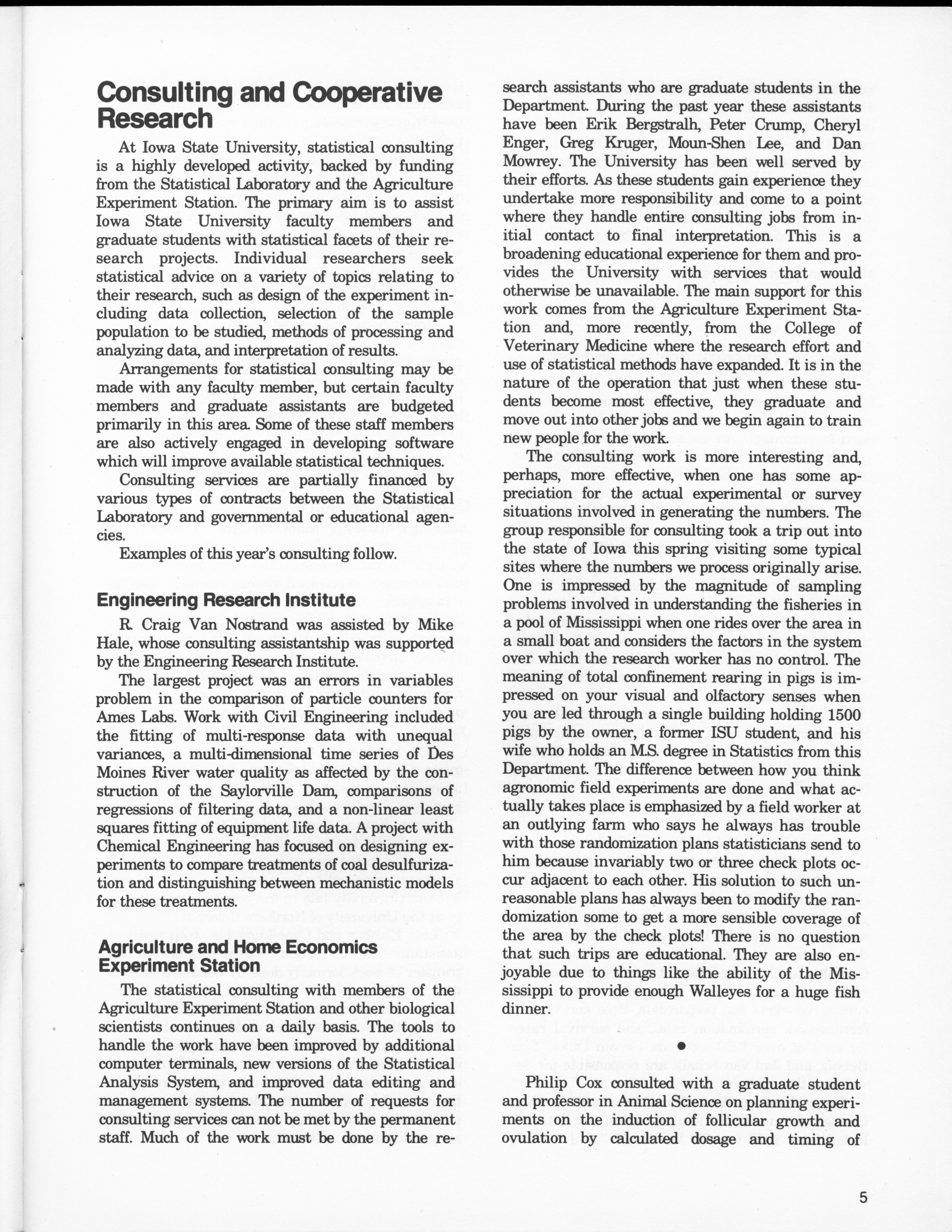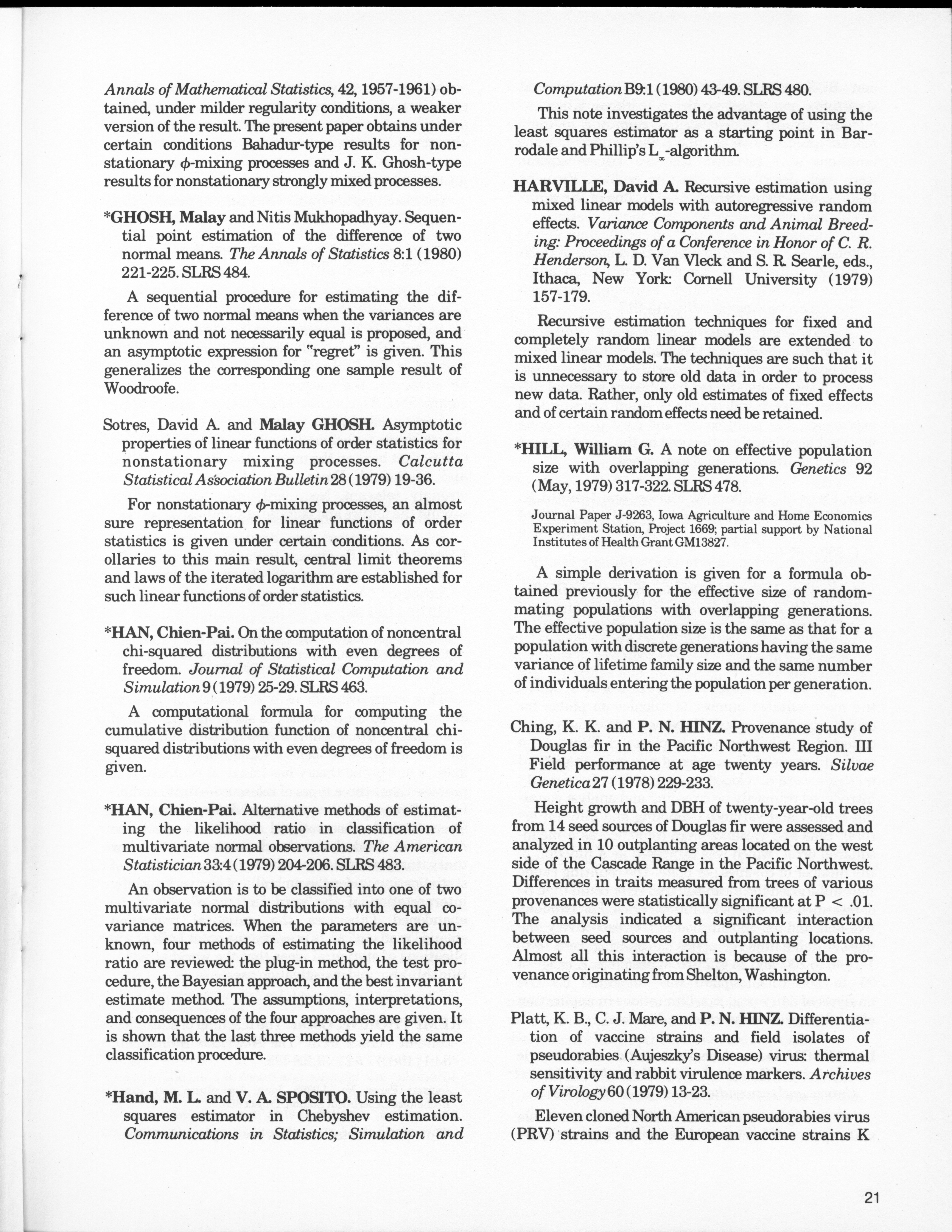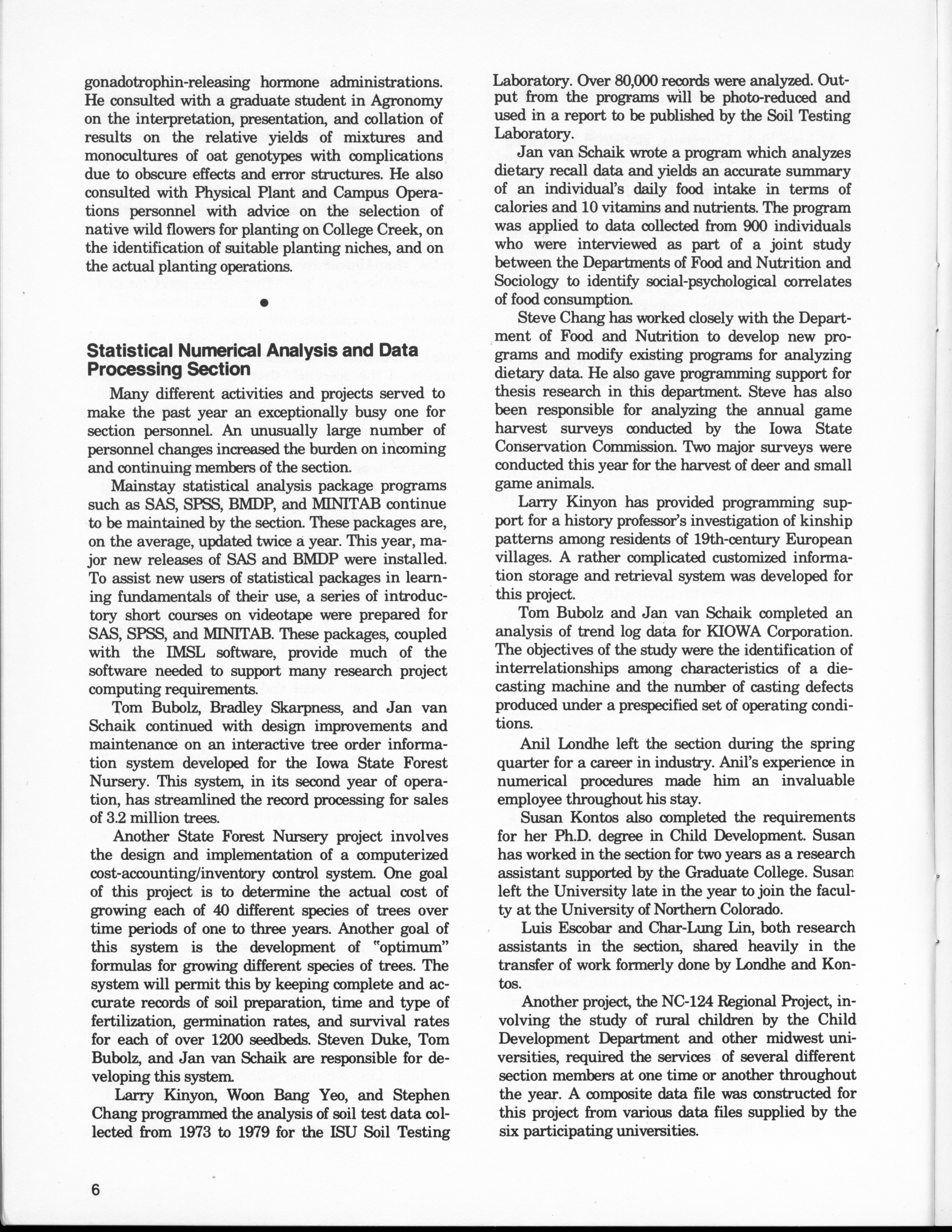 - "Statistical Laboratory Annual Report, July 1, 1979 to June 30, 1980", Iowa State University Statistical Laboratory Annual Reports, Iowa State University Library Digital Collections
