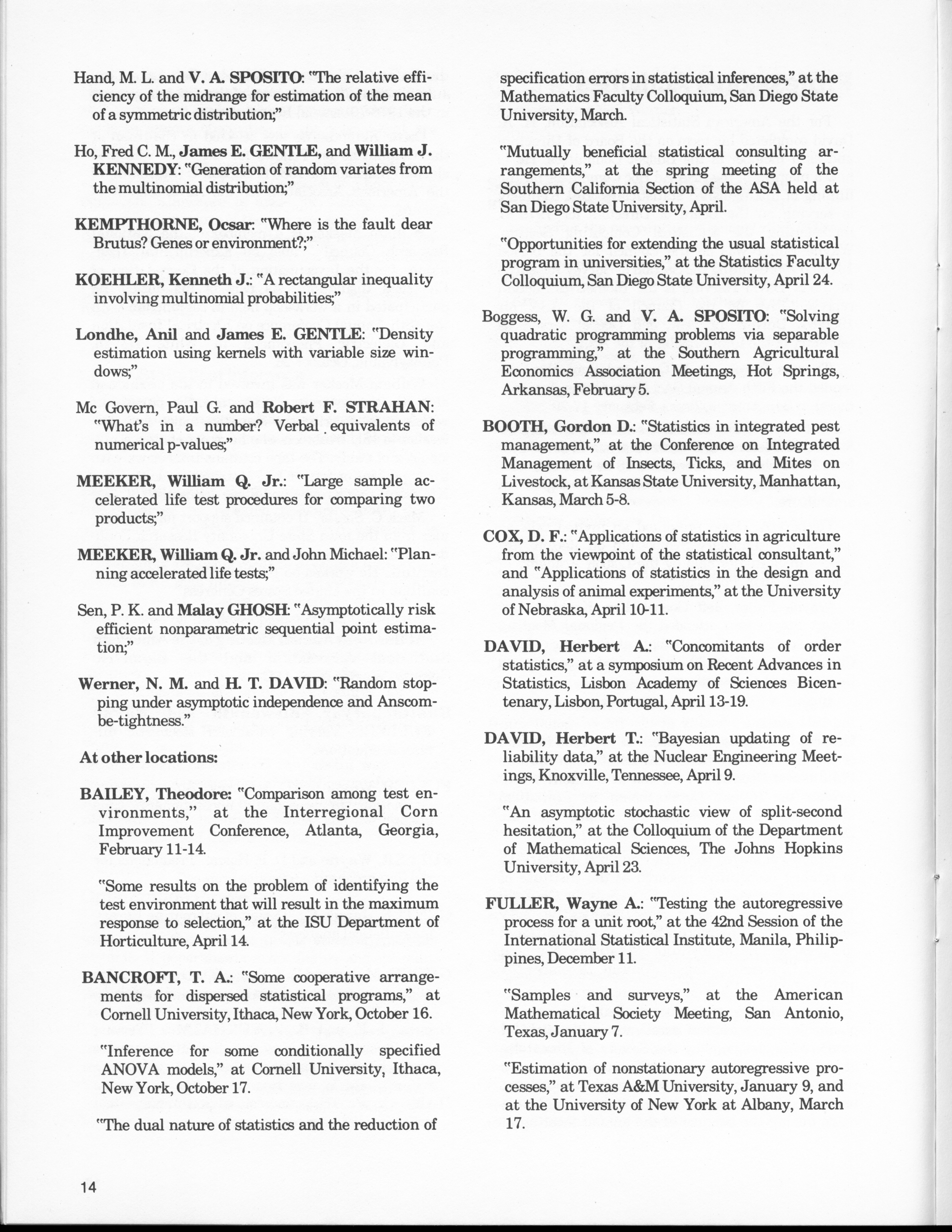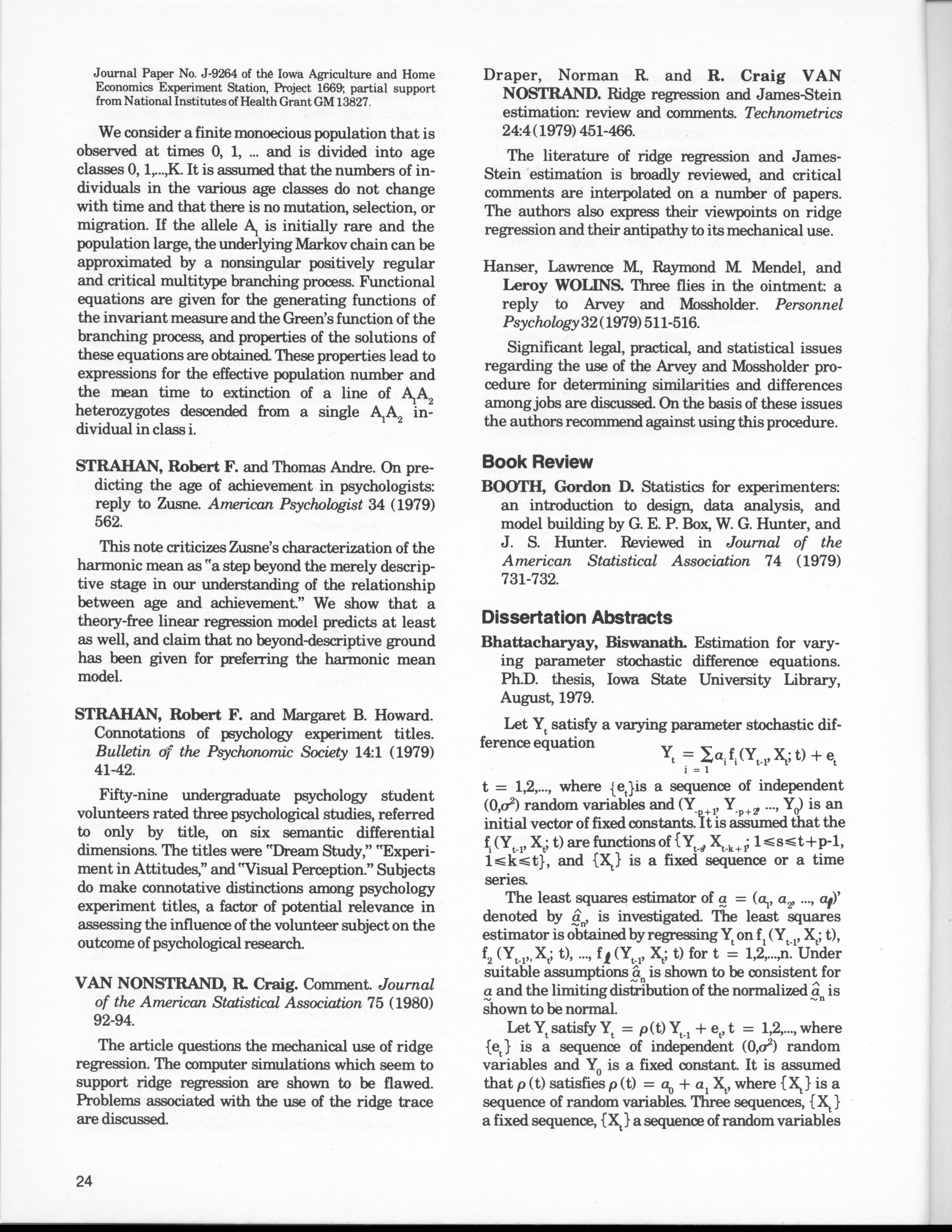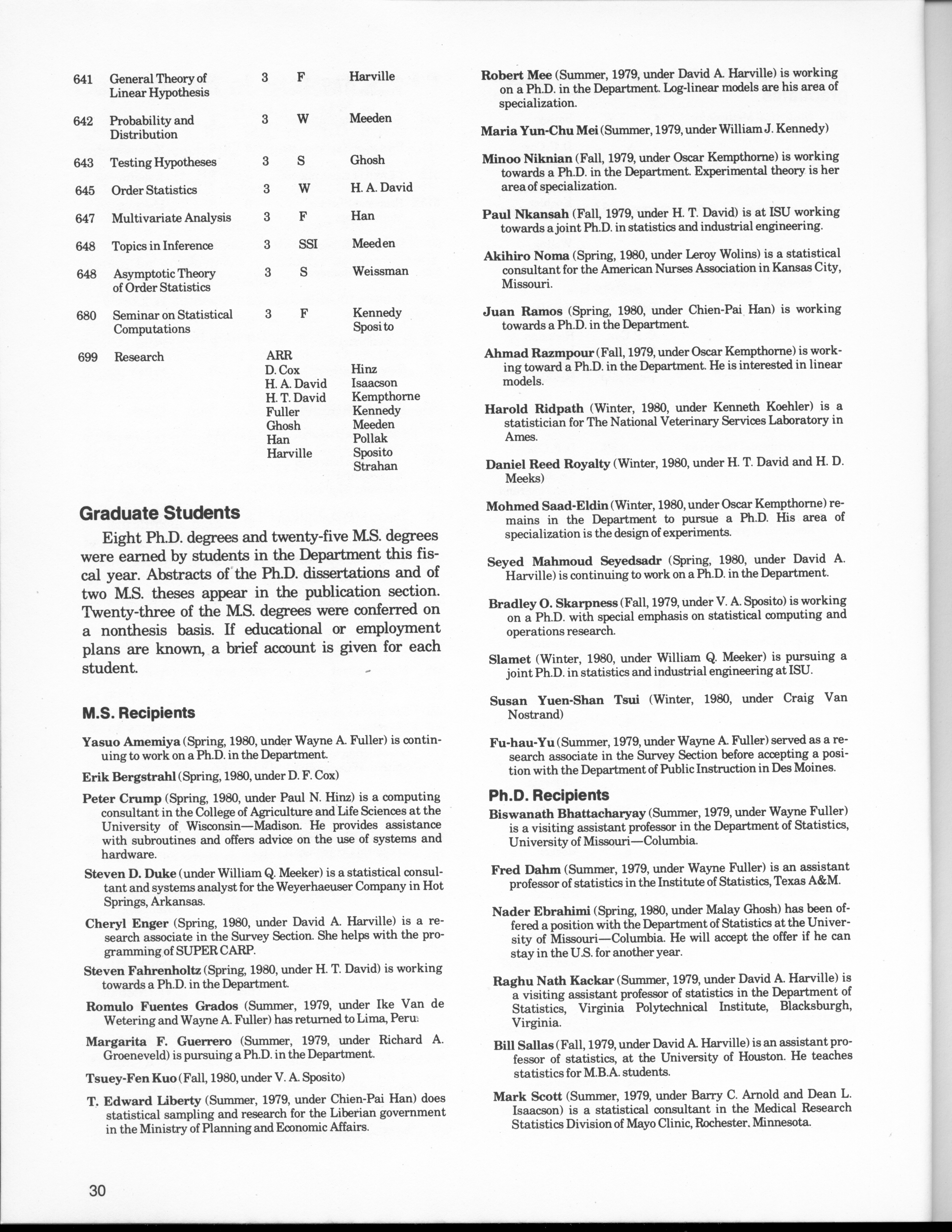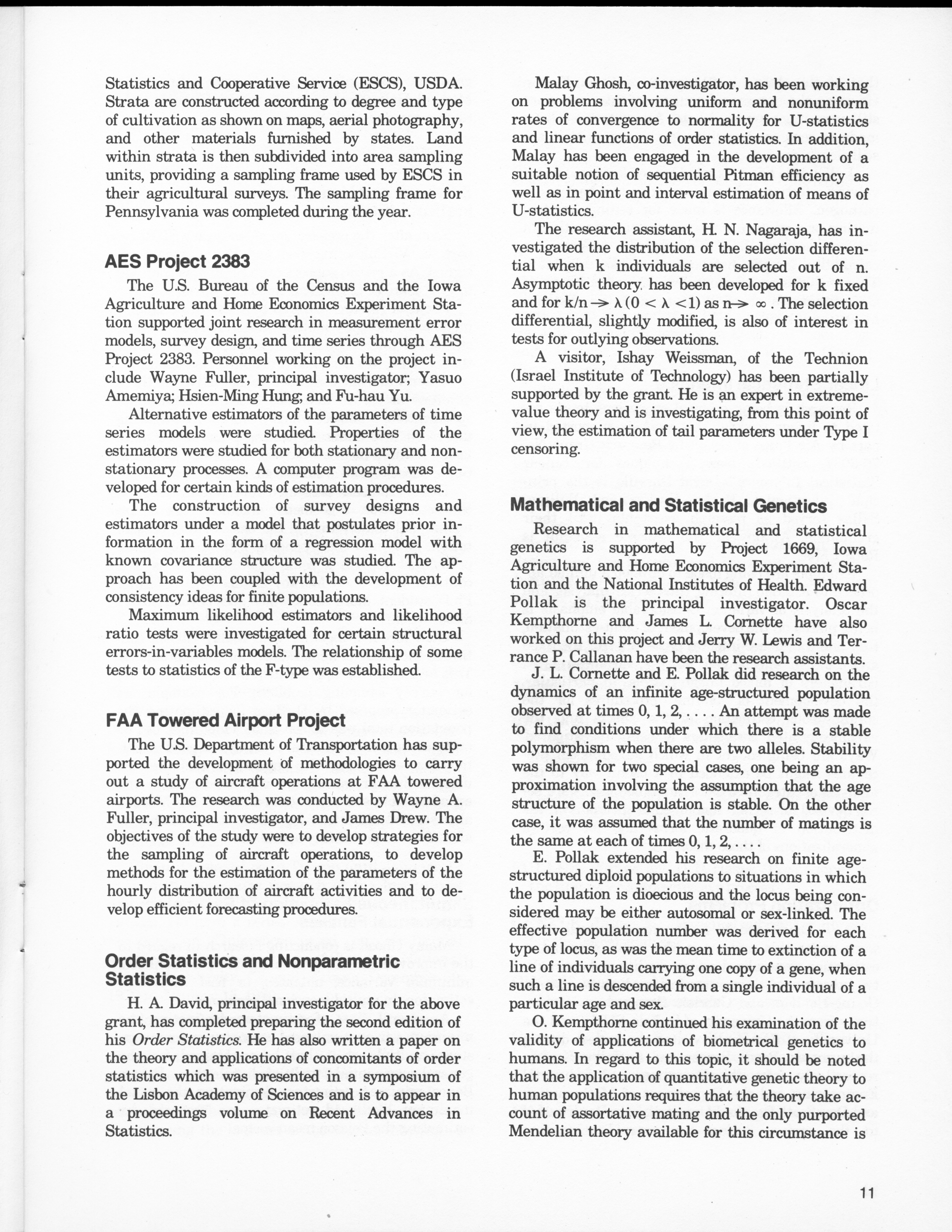 - "Statistical Laboratory Annual Report, July 1, 1979 to June 30, 1980", Iowa State University Statistical Laboratory Annual Reports, Iowa State University Library Digital Collections