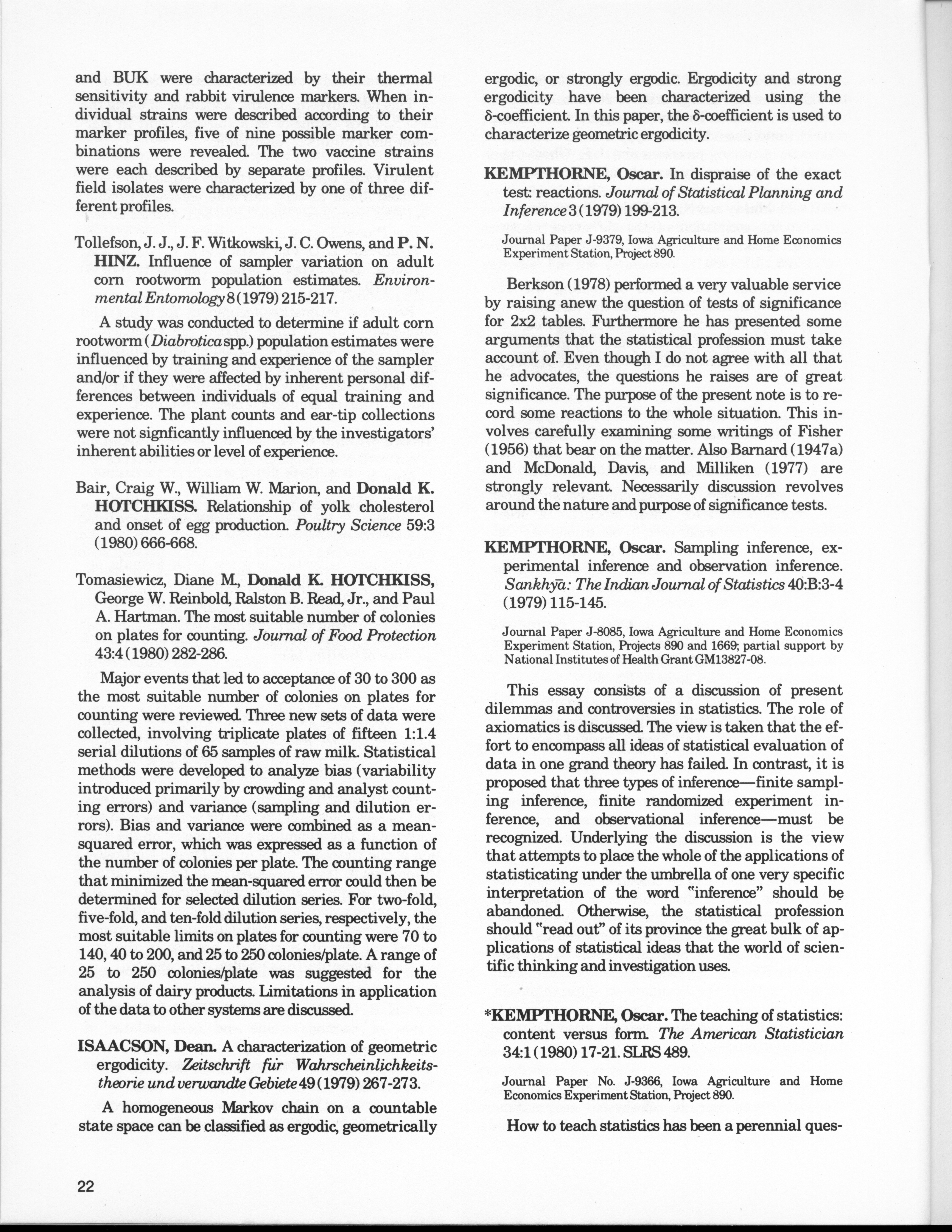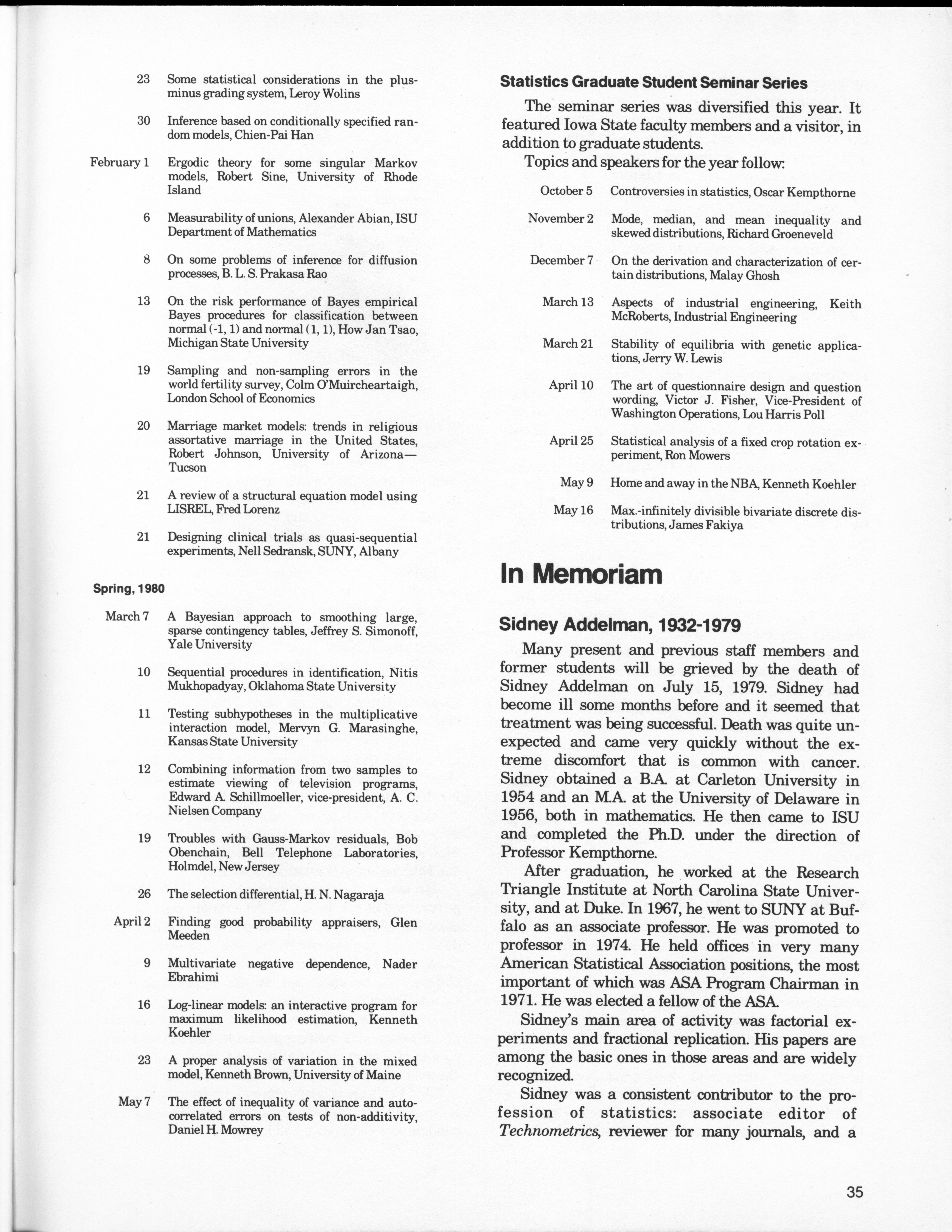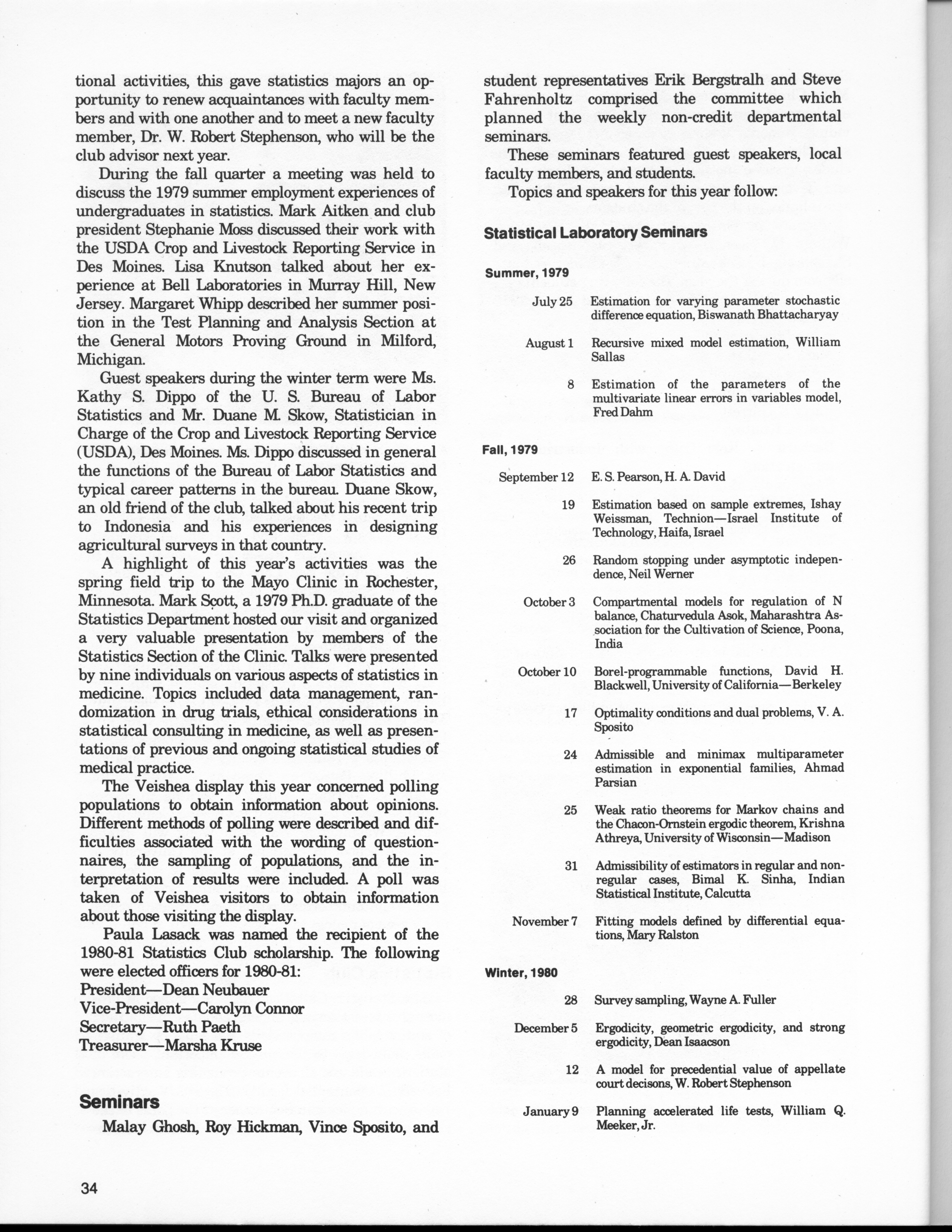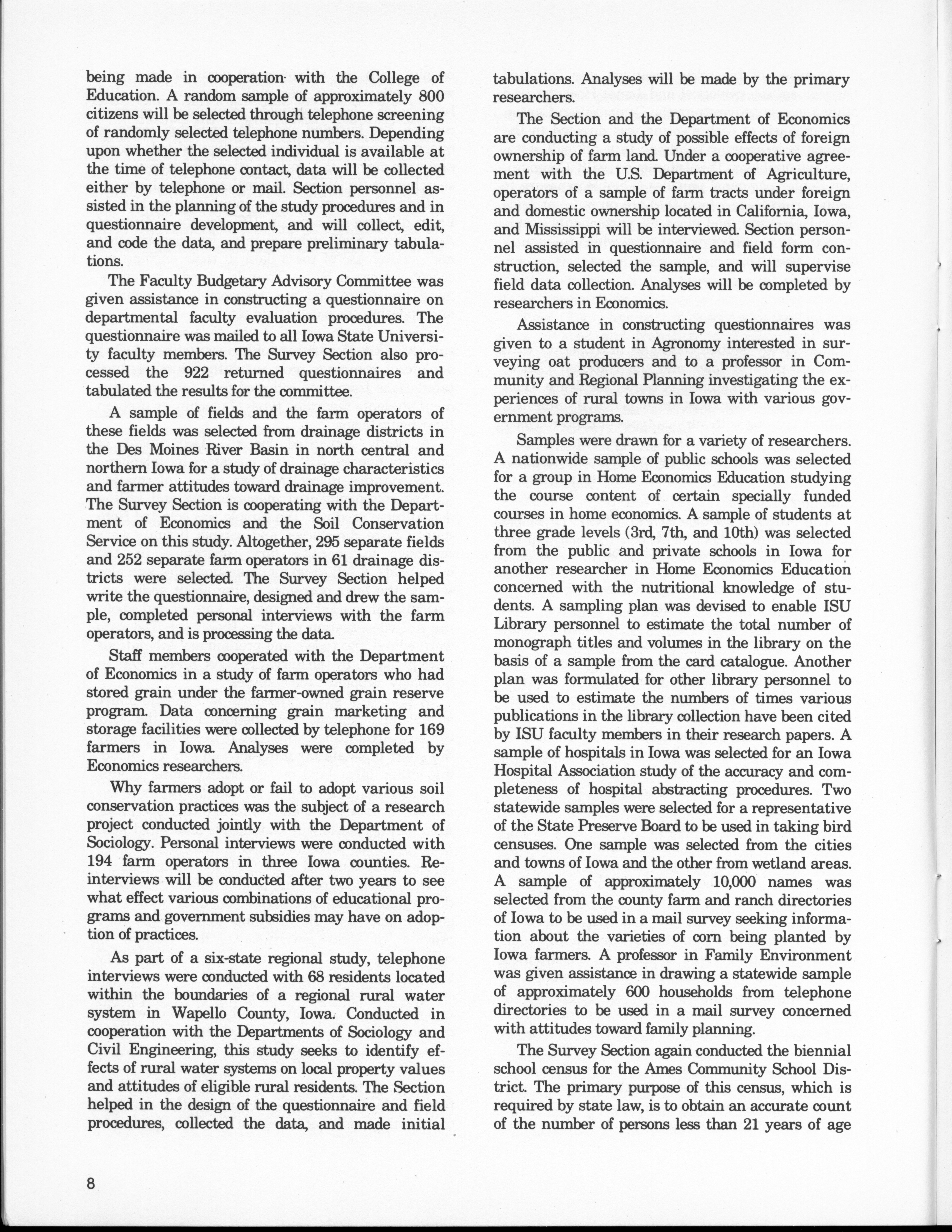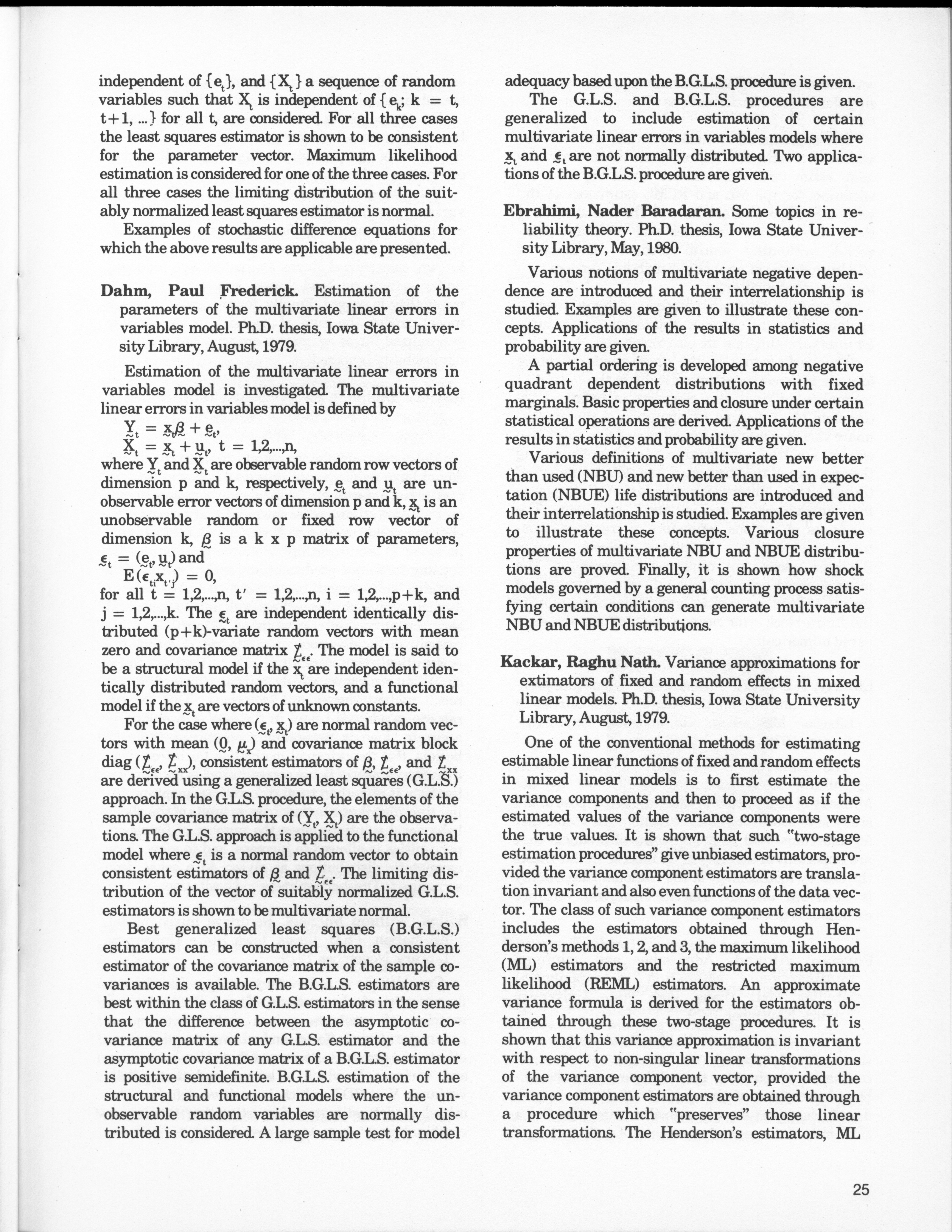 - "Statistical Laboratory Annual Report, July 1, 1979 to June 30, 1980", Iowa State University Statistical Laboratory Annual Reports, Iowa State University Library Digital Collections