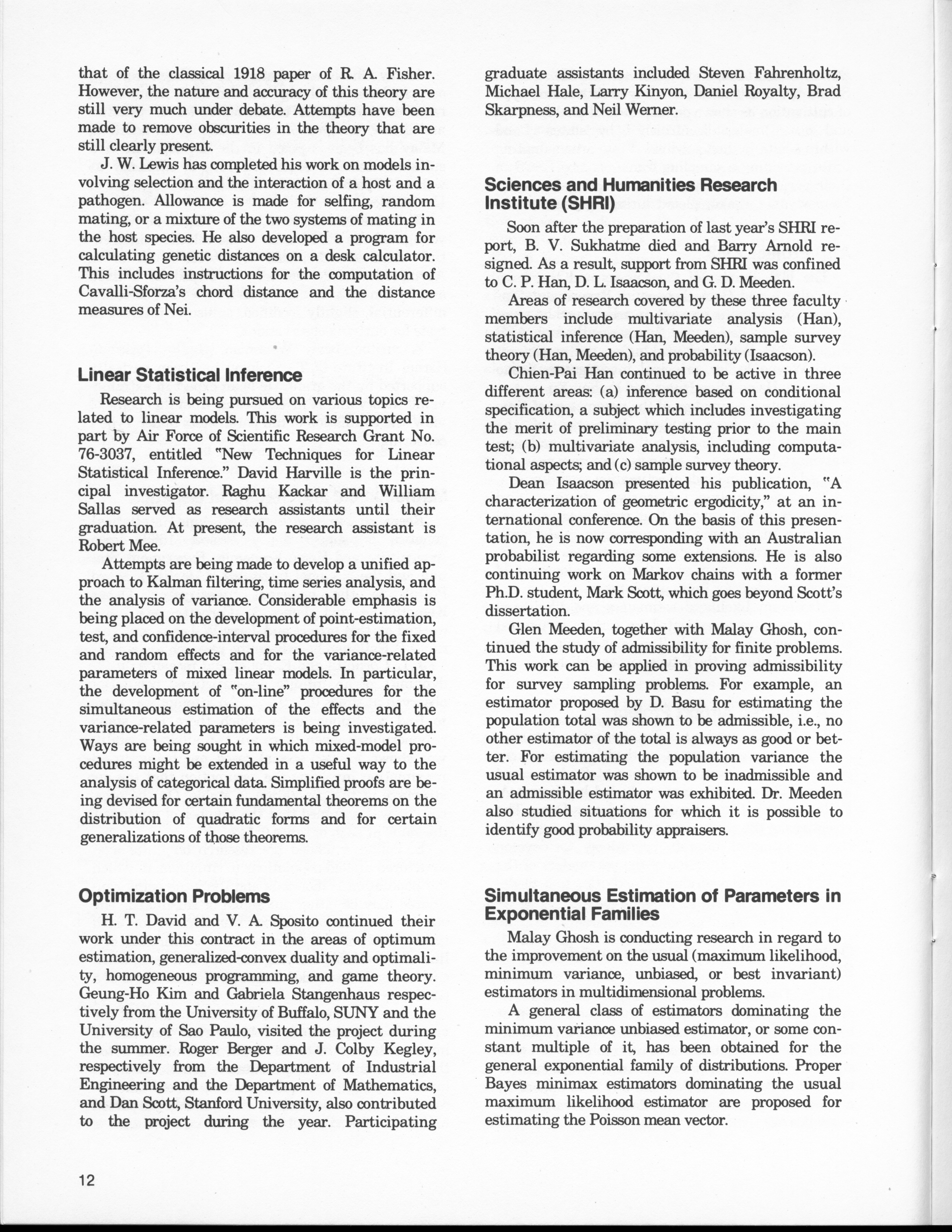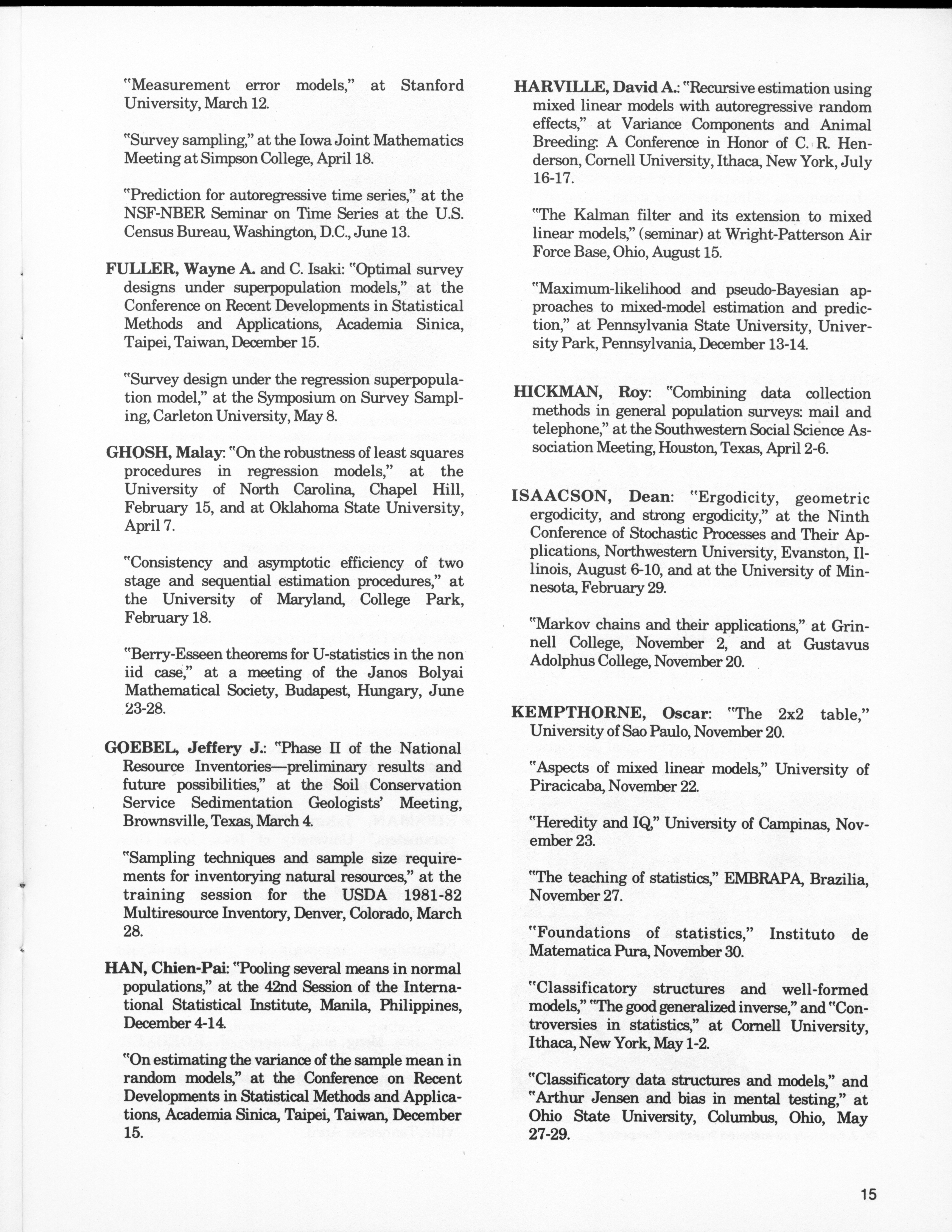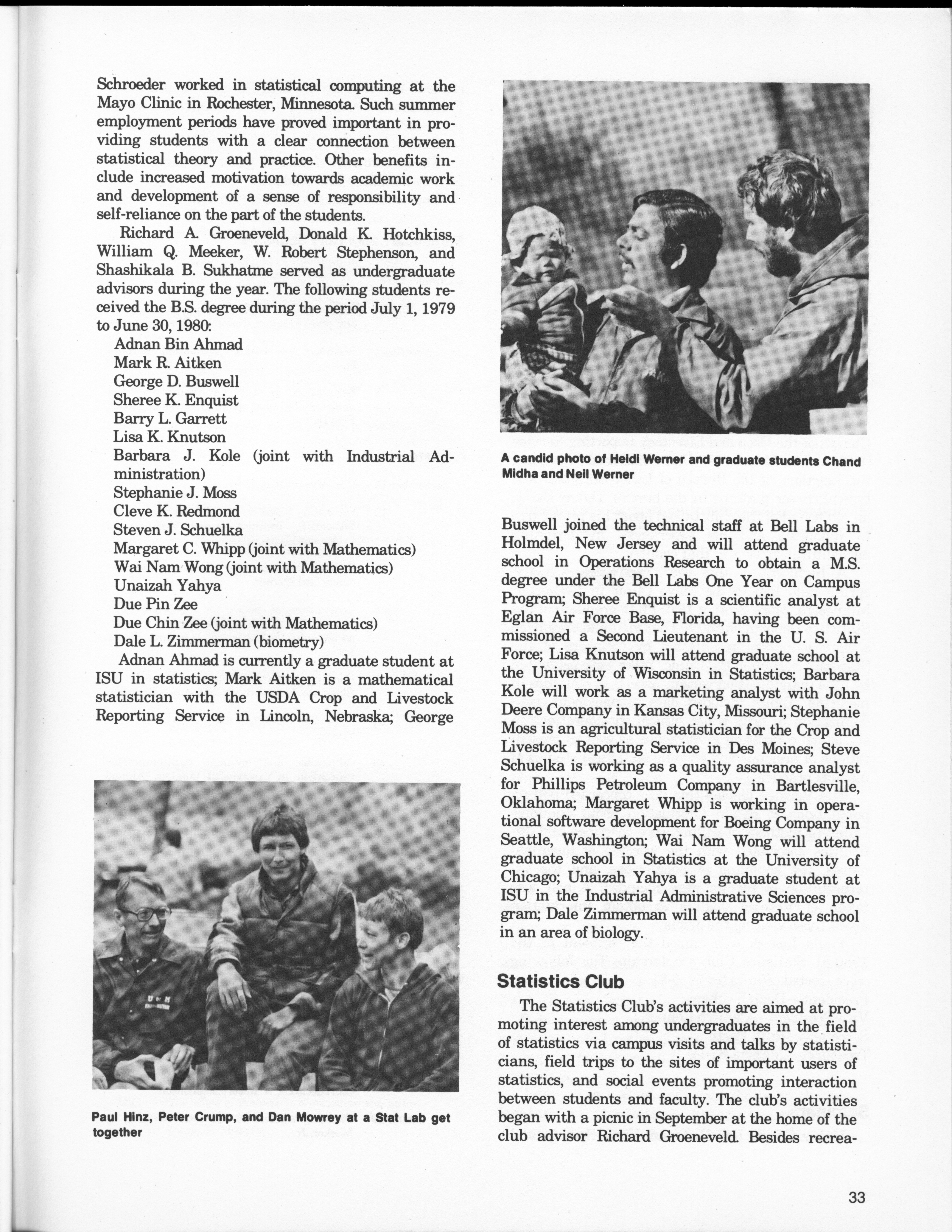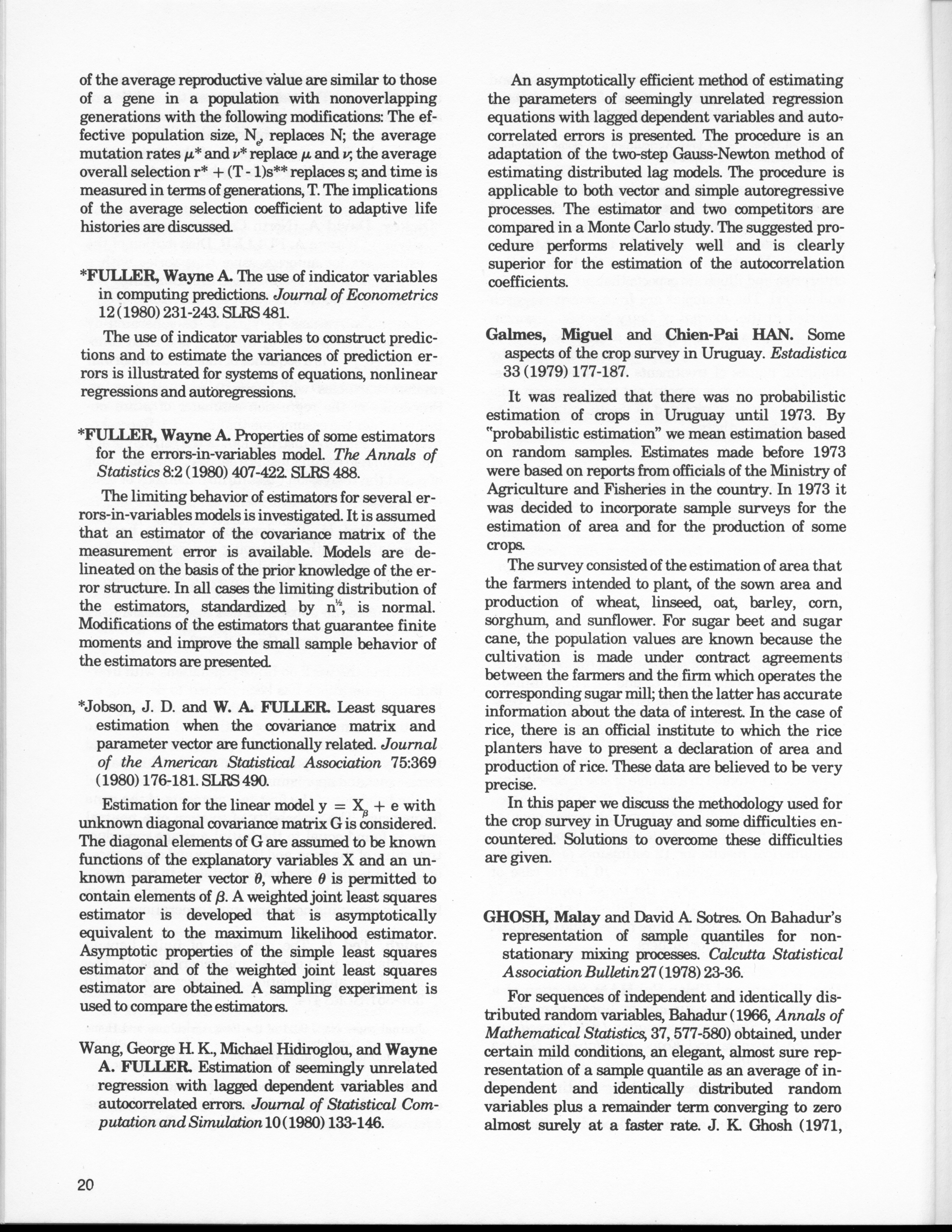 - "Statistical Laboratory Annual Report, July 1, 1979 to June 30, 1980", Iowa State University Statistical Laboratory Annual Reports, Iowa State University Library Digital Collections