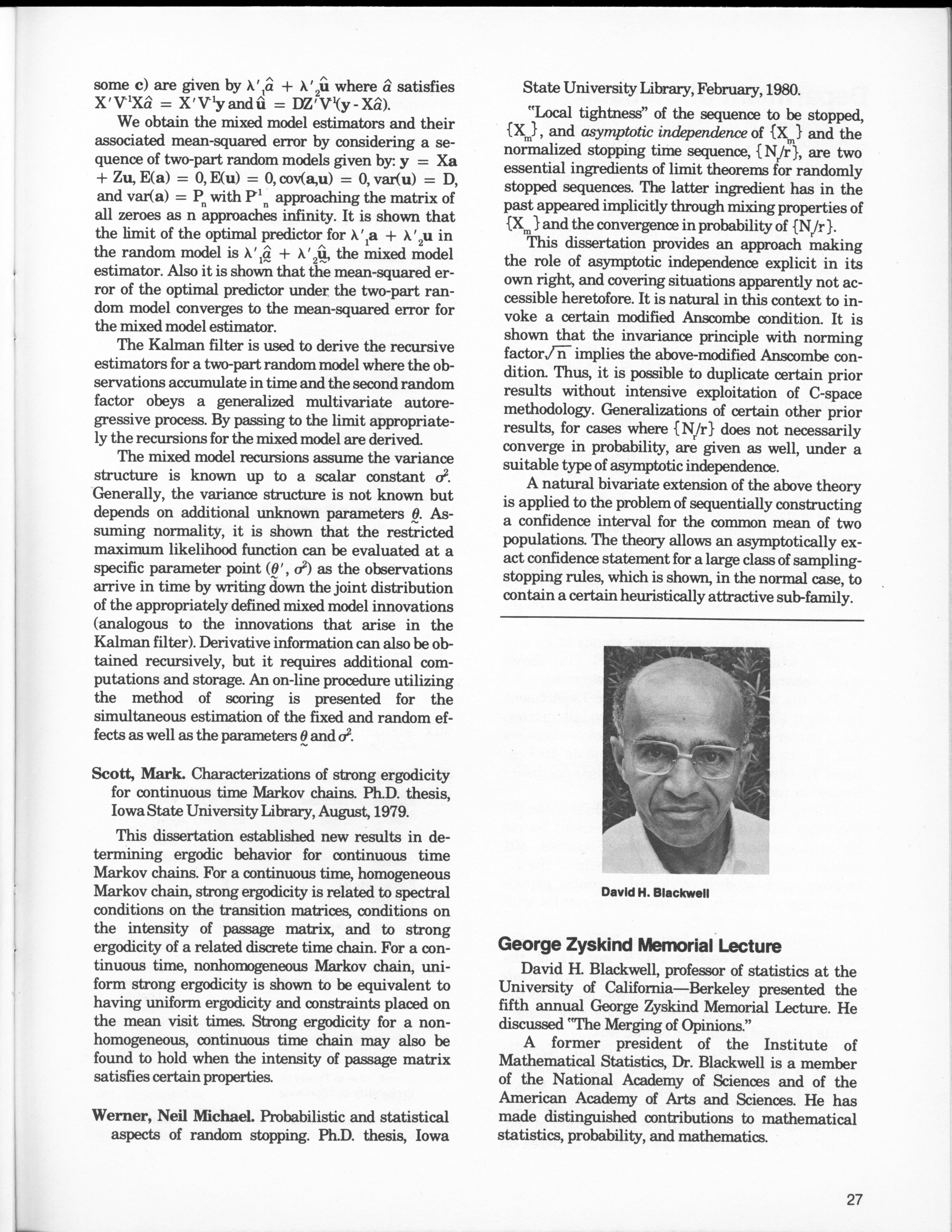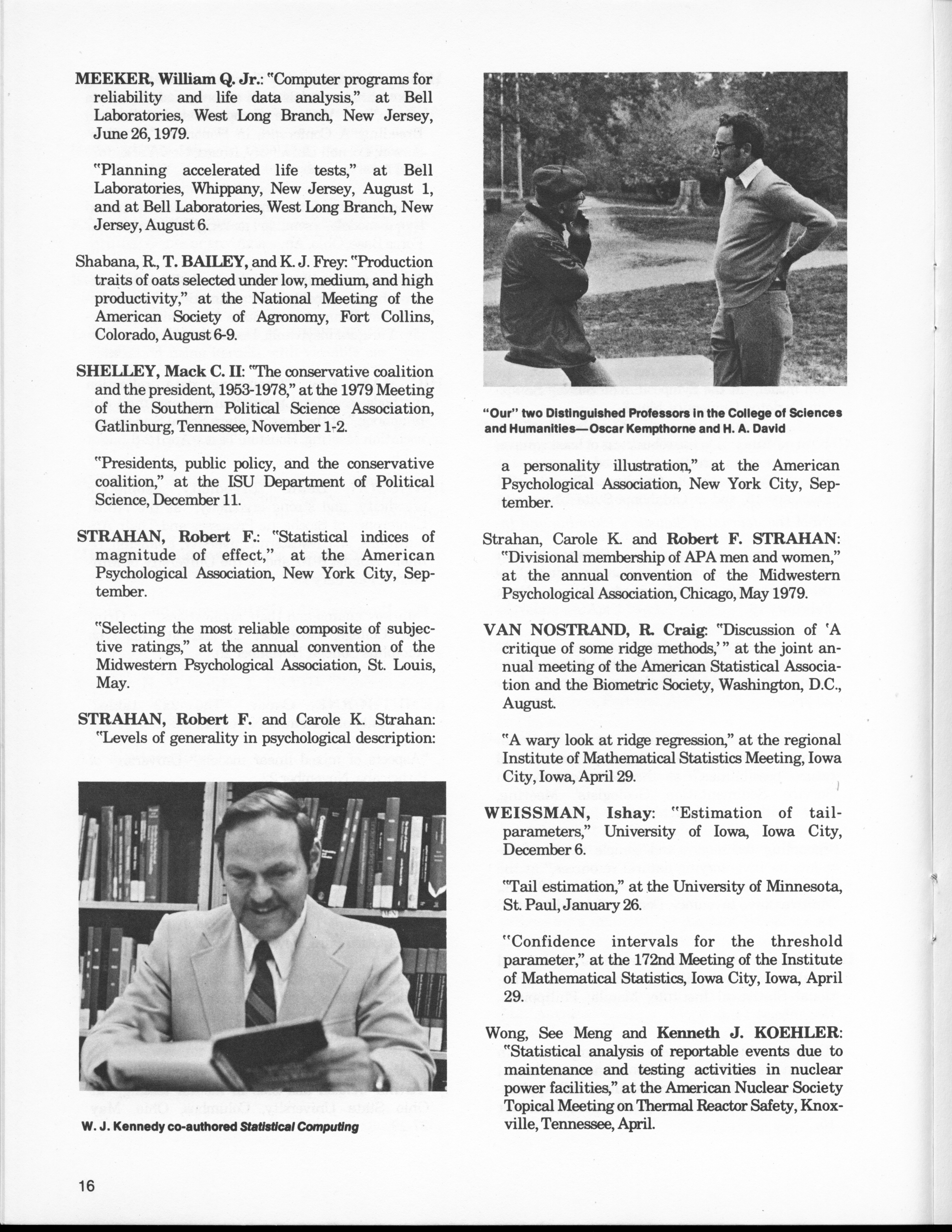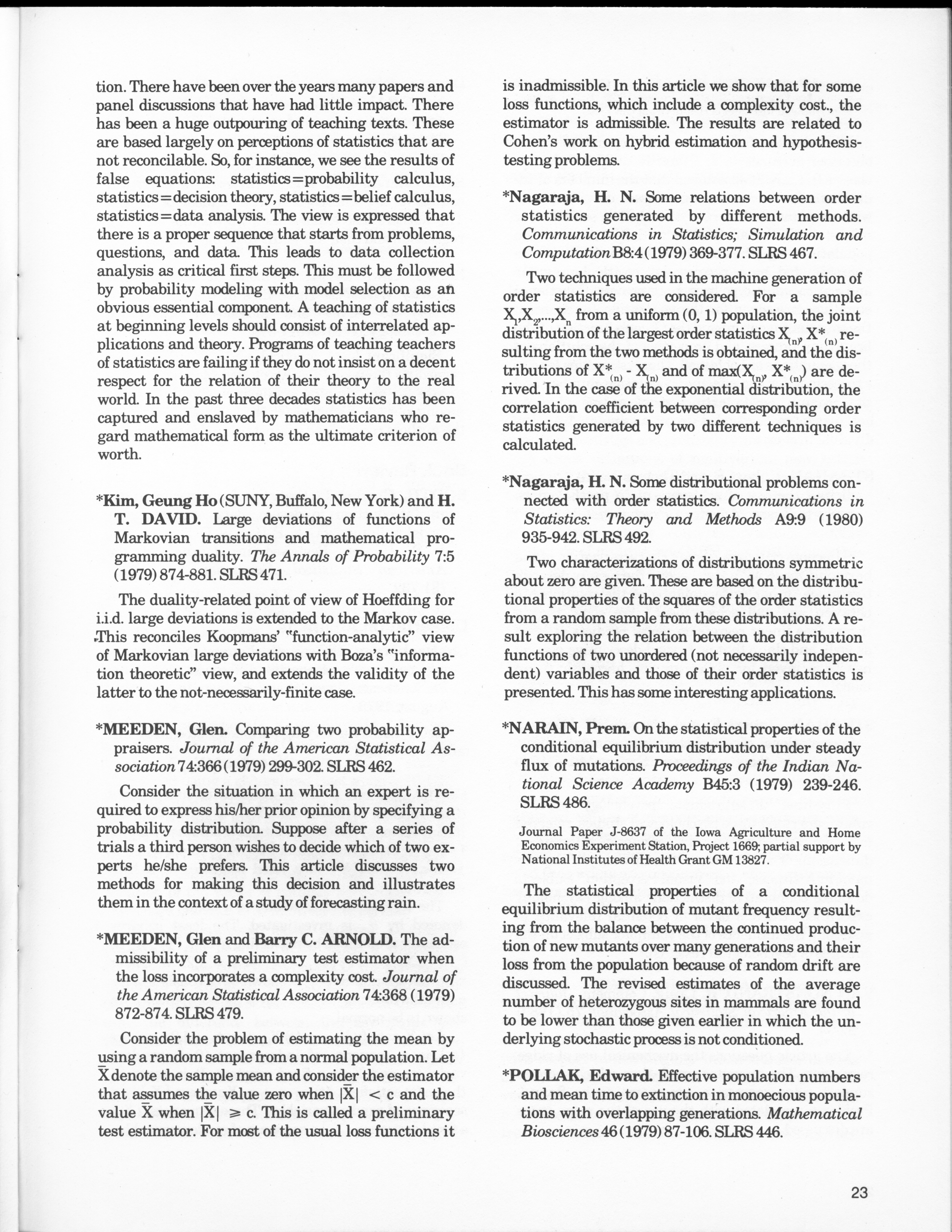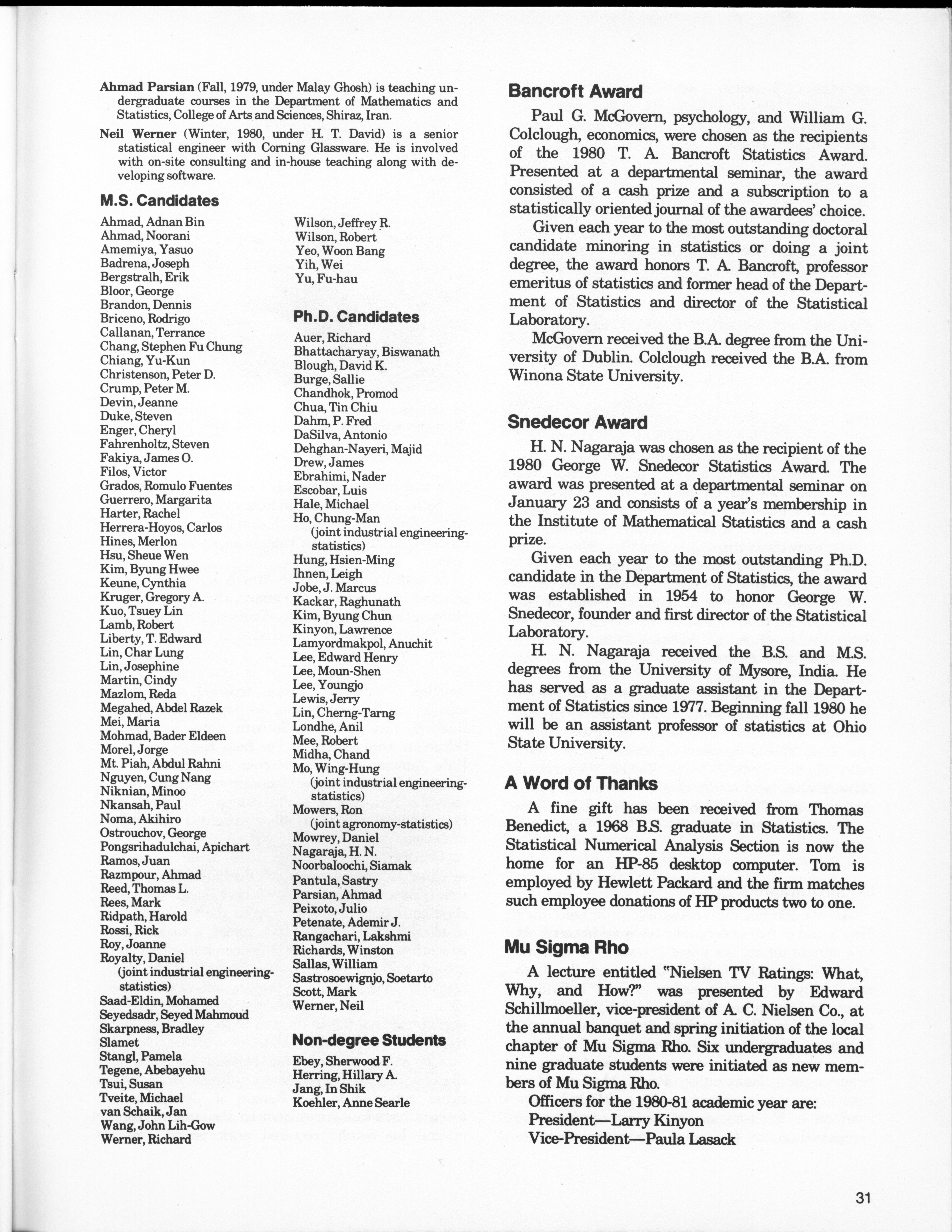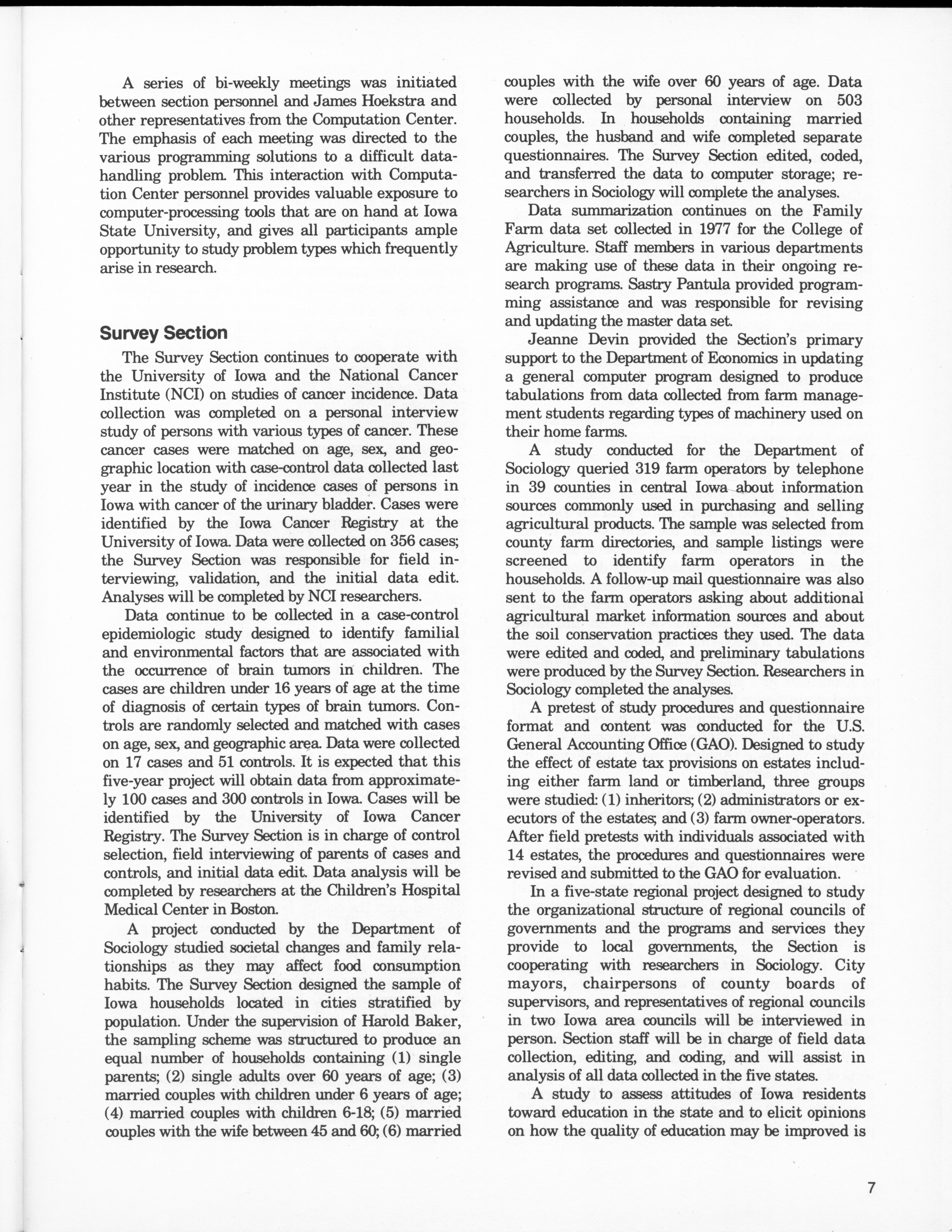- "Statistical Laboratory Annual Report, July 1, 1979 to June 30, 1980", Iowa State University Statistical Laboratory Annual Reports, Iowa State University Library Digital Collections