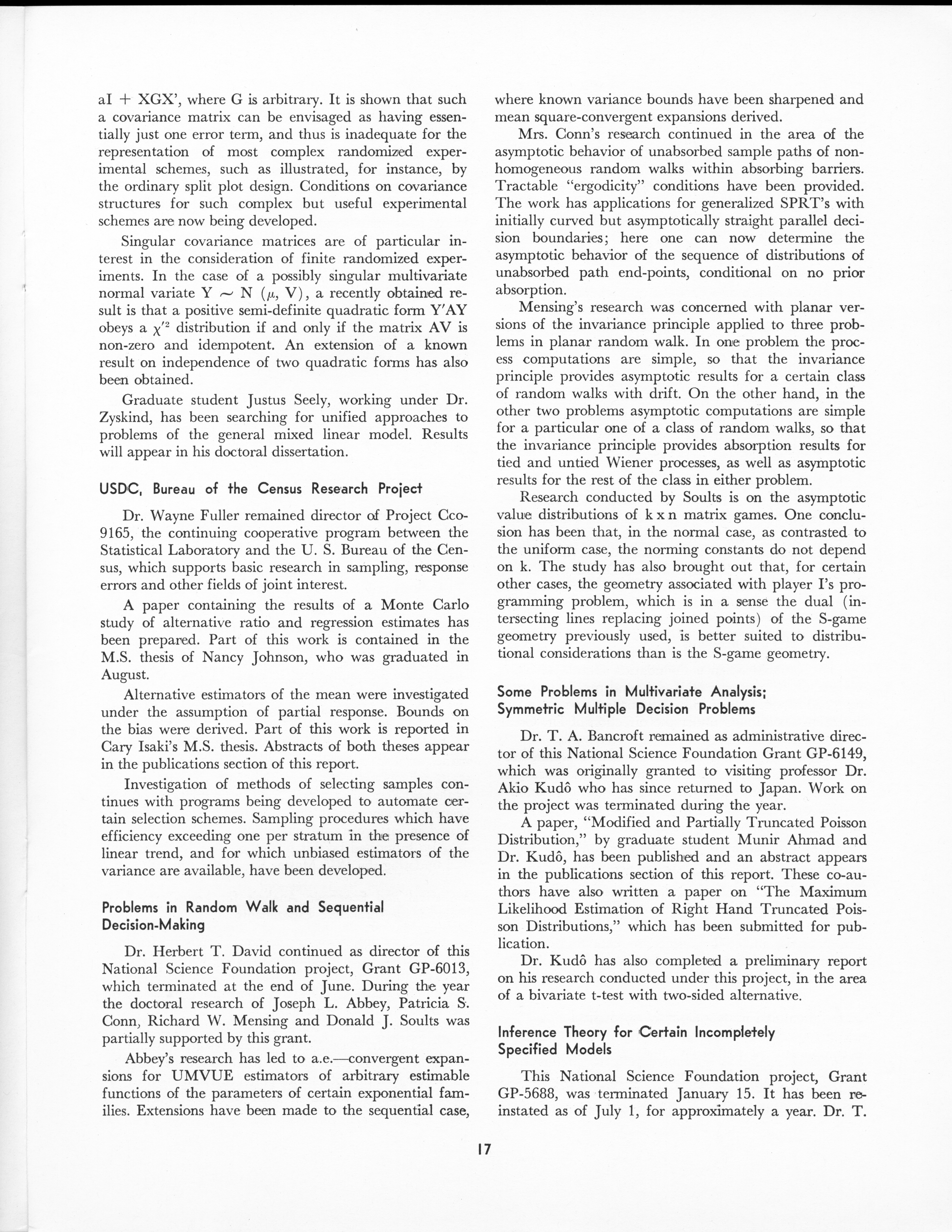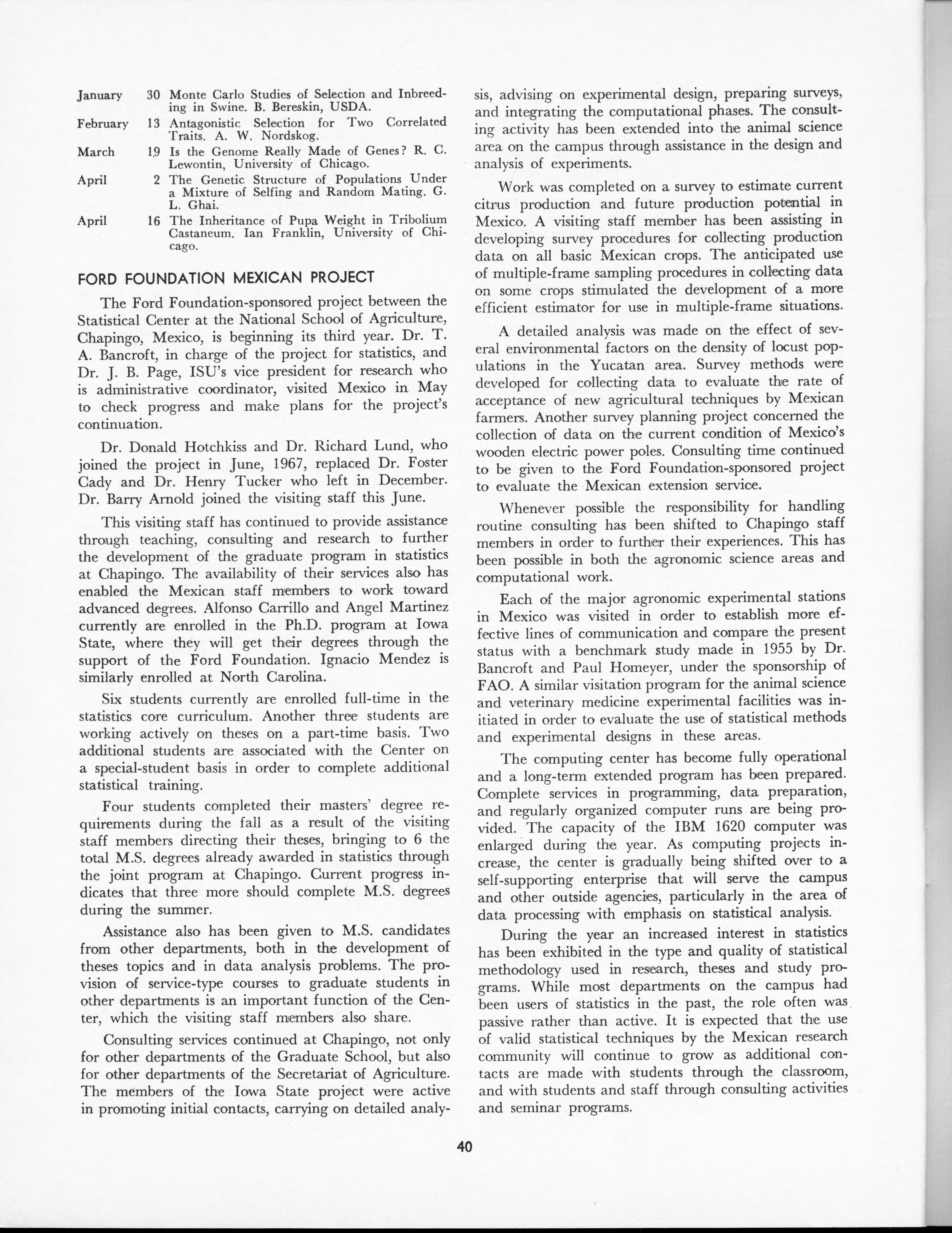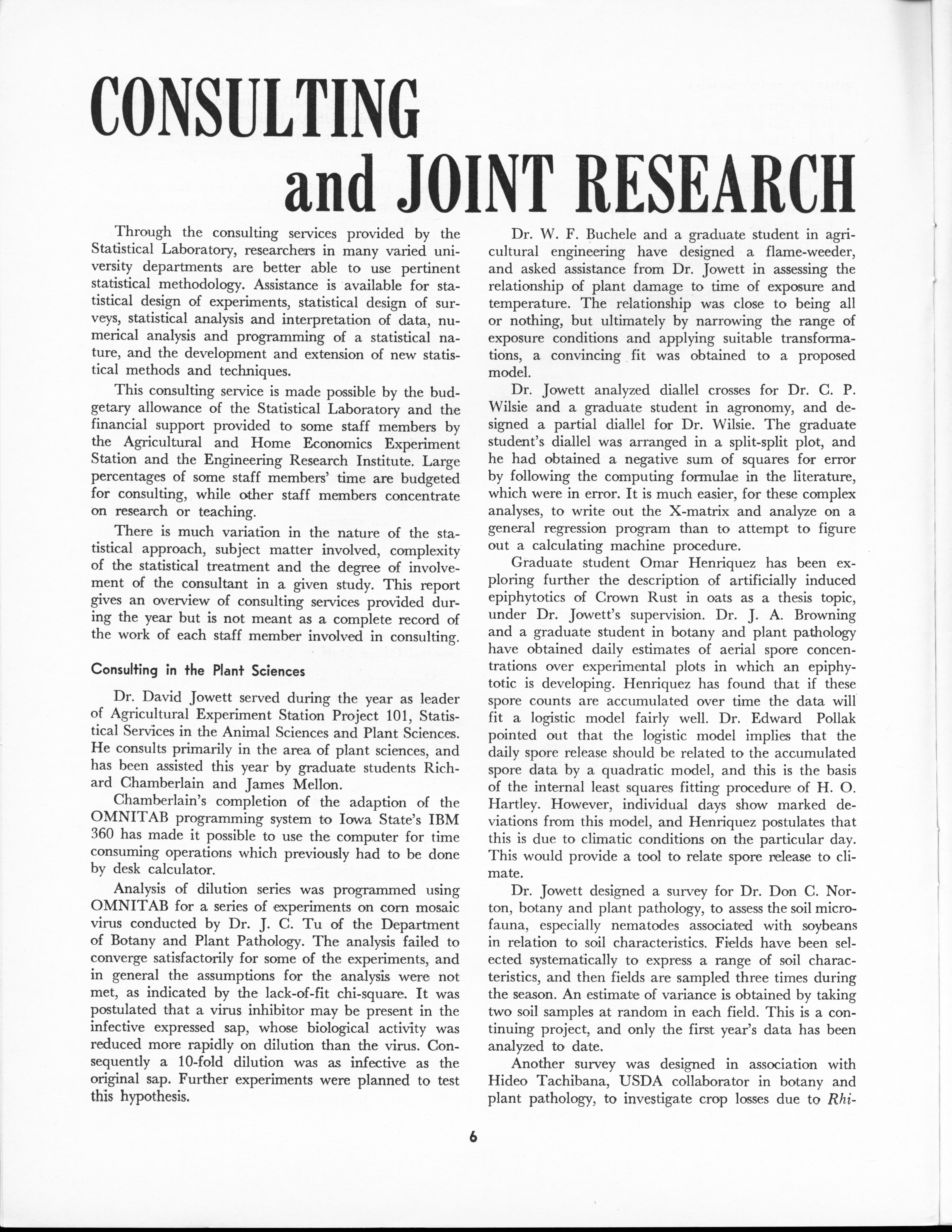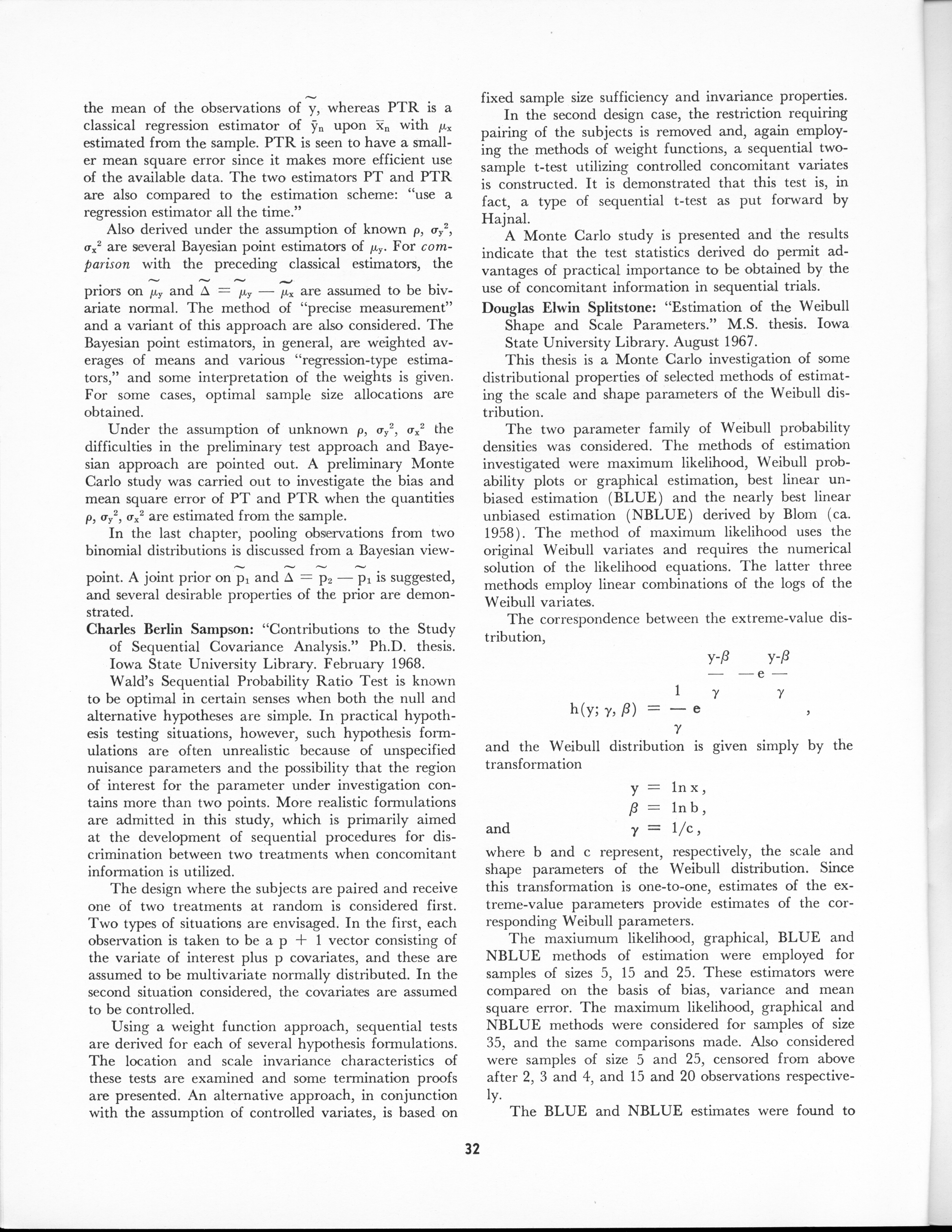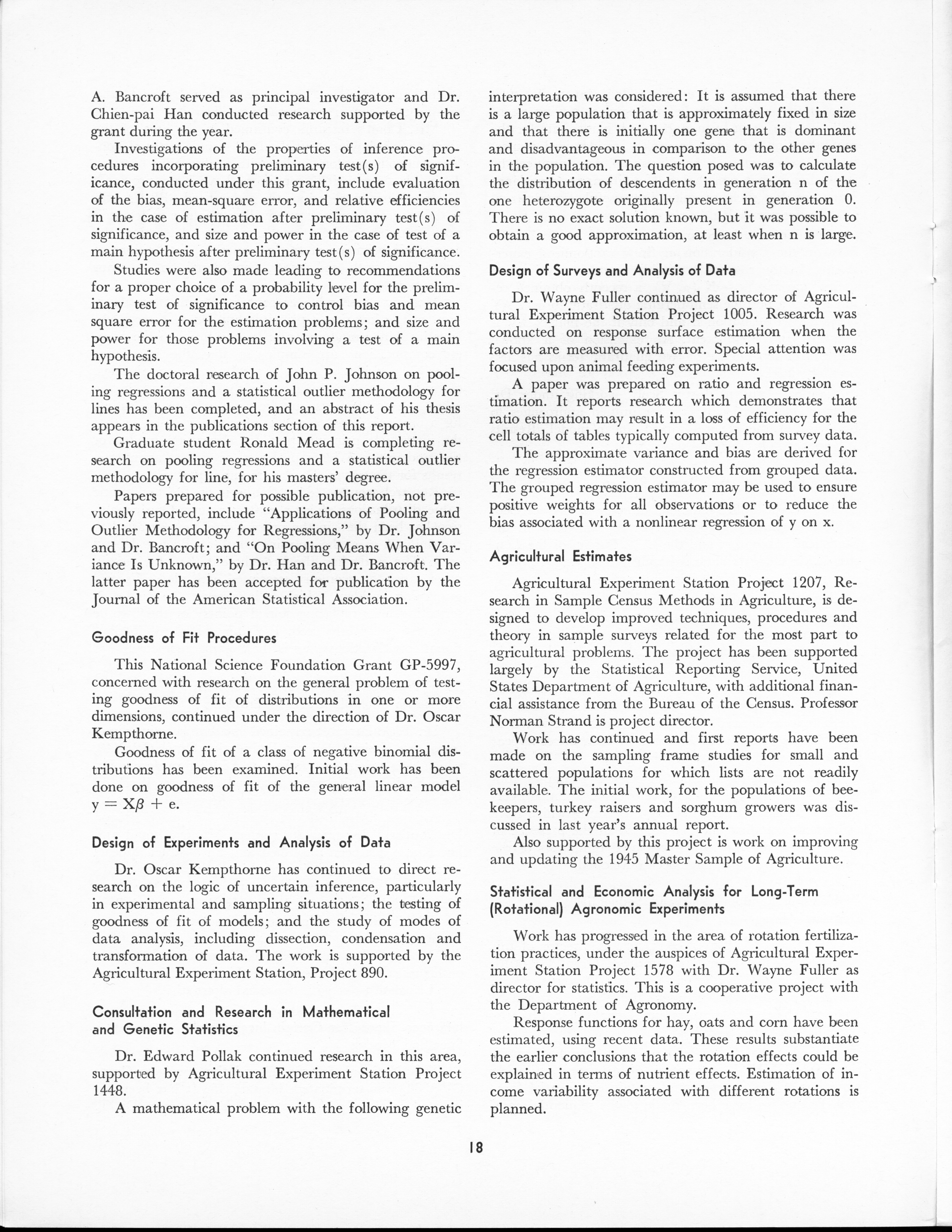 - "Statistical Laboratory Annual Report, July 1, 1967 to June 30, 1968", Iowa State University Statistical Laboratory Annual Reports, Iowa State University Library Digital Collections