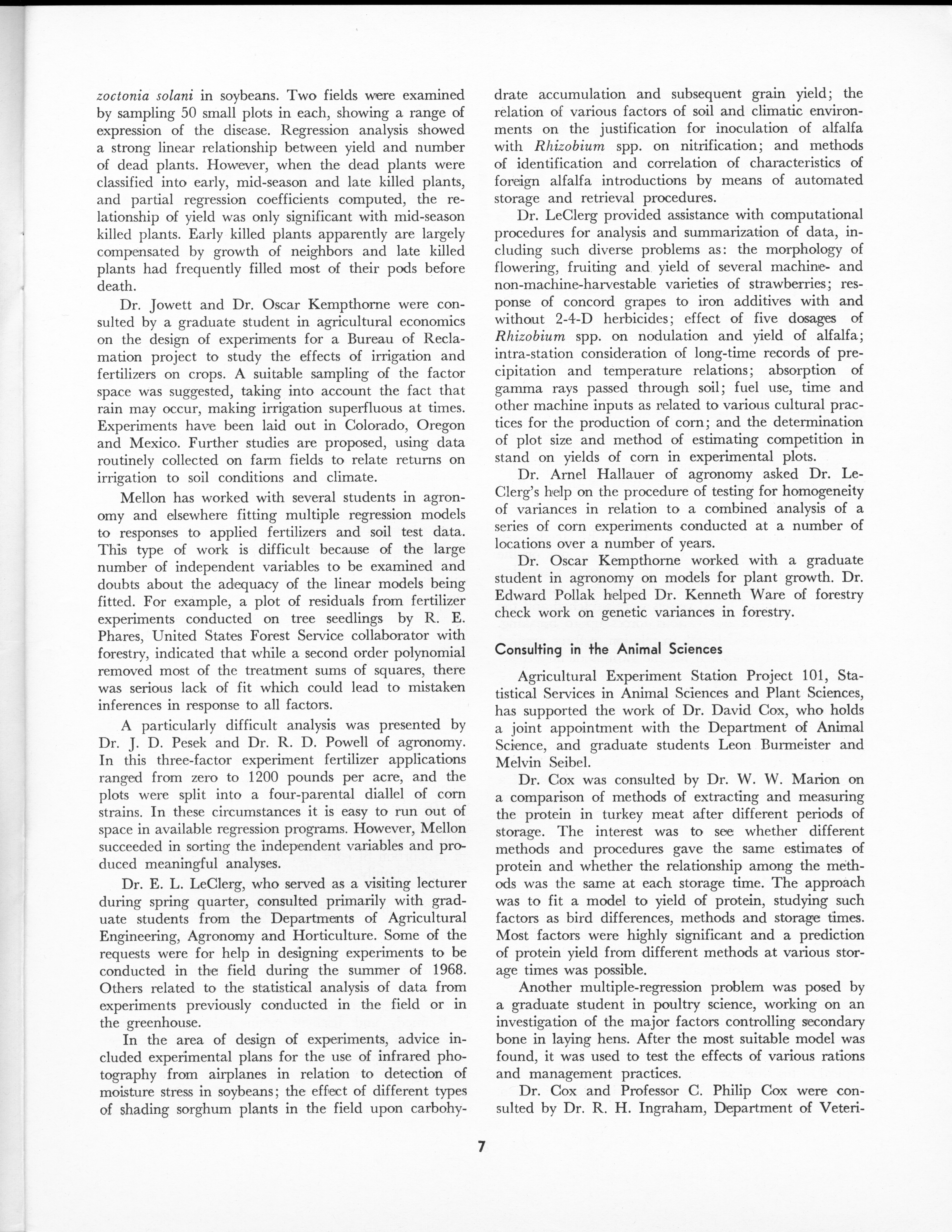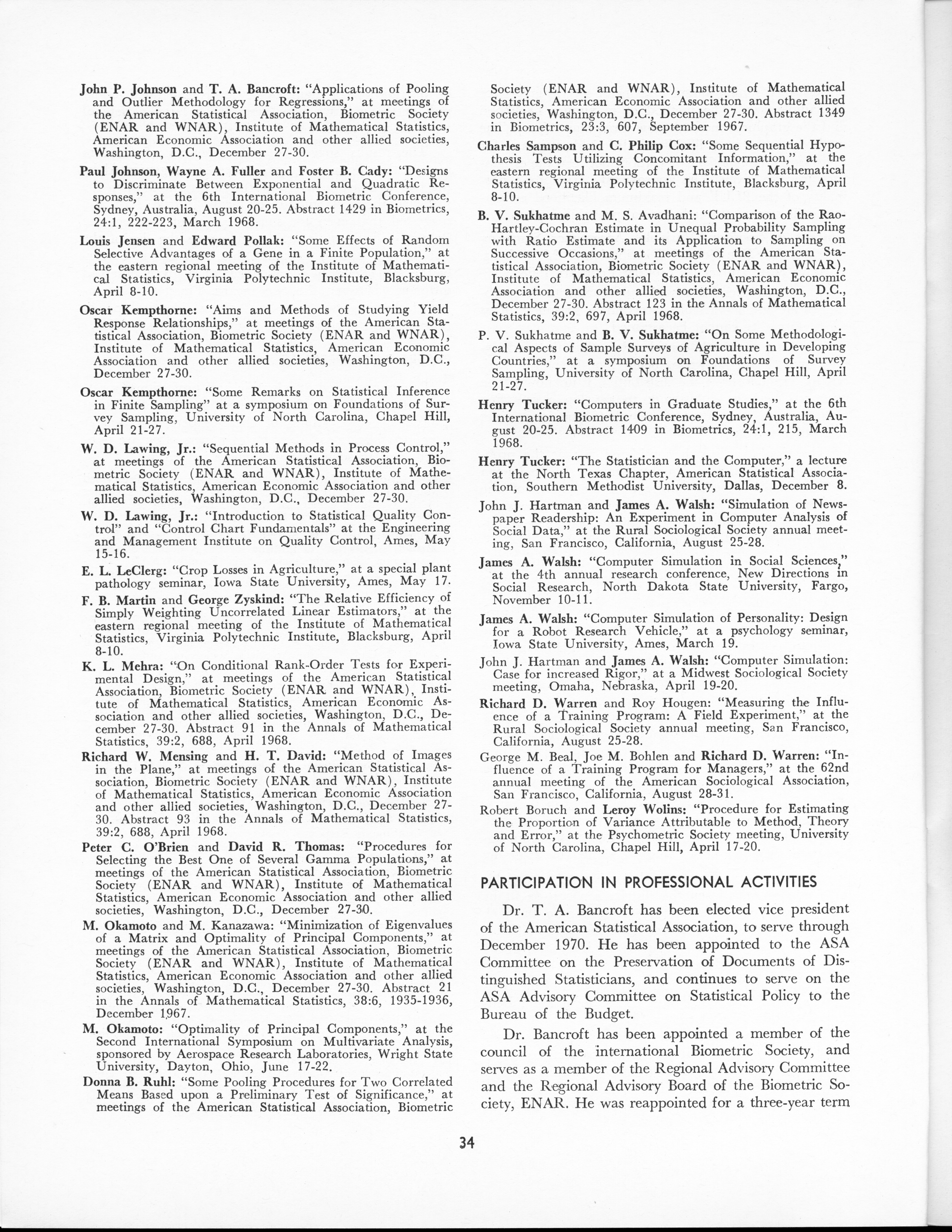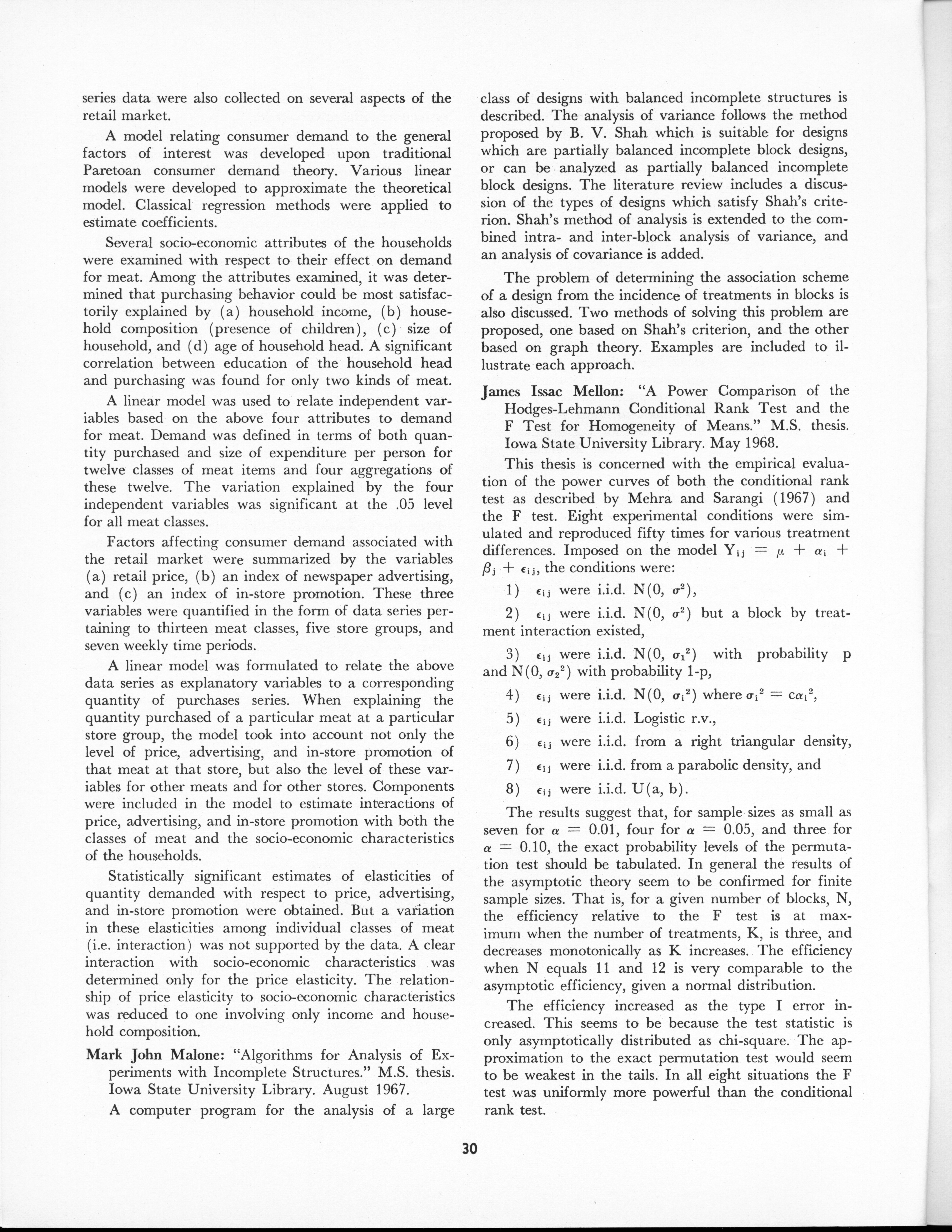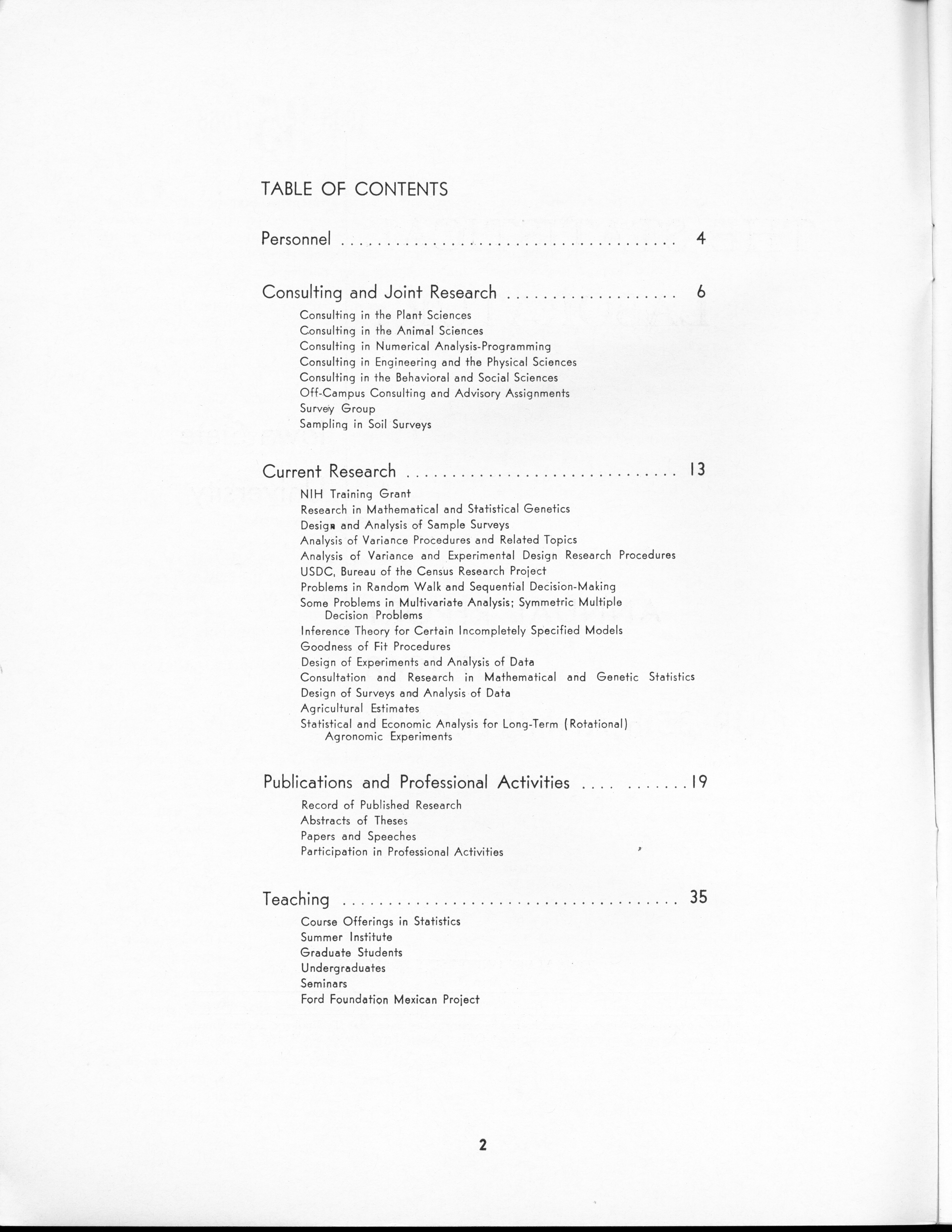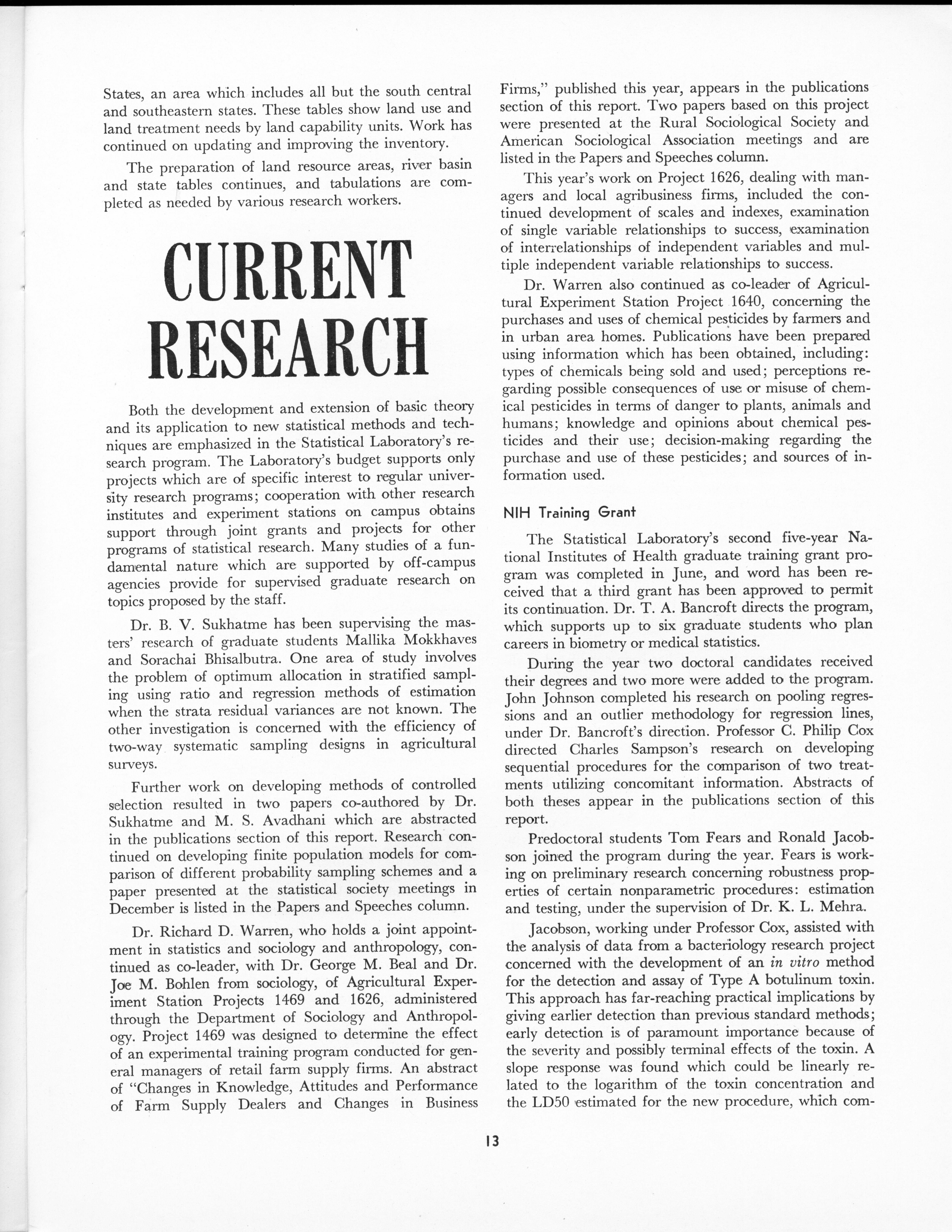 - "Statistical Laboratory Annual Report, July 1, 1967 to June 30, 1968", Iowa State University Statistical Laboratory Annual Reports, Iowa State University Library Digital Collections
