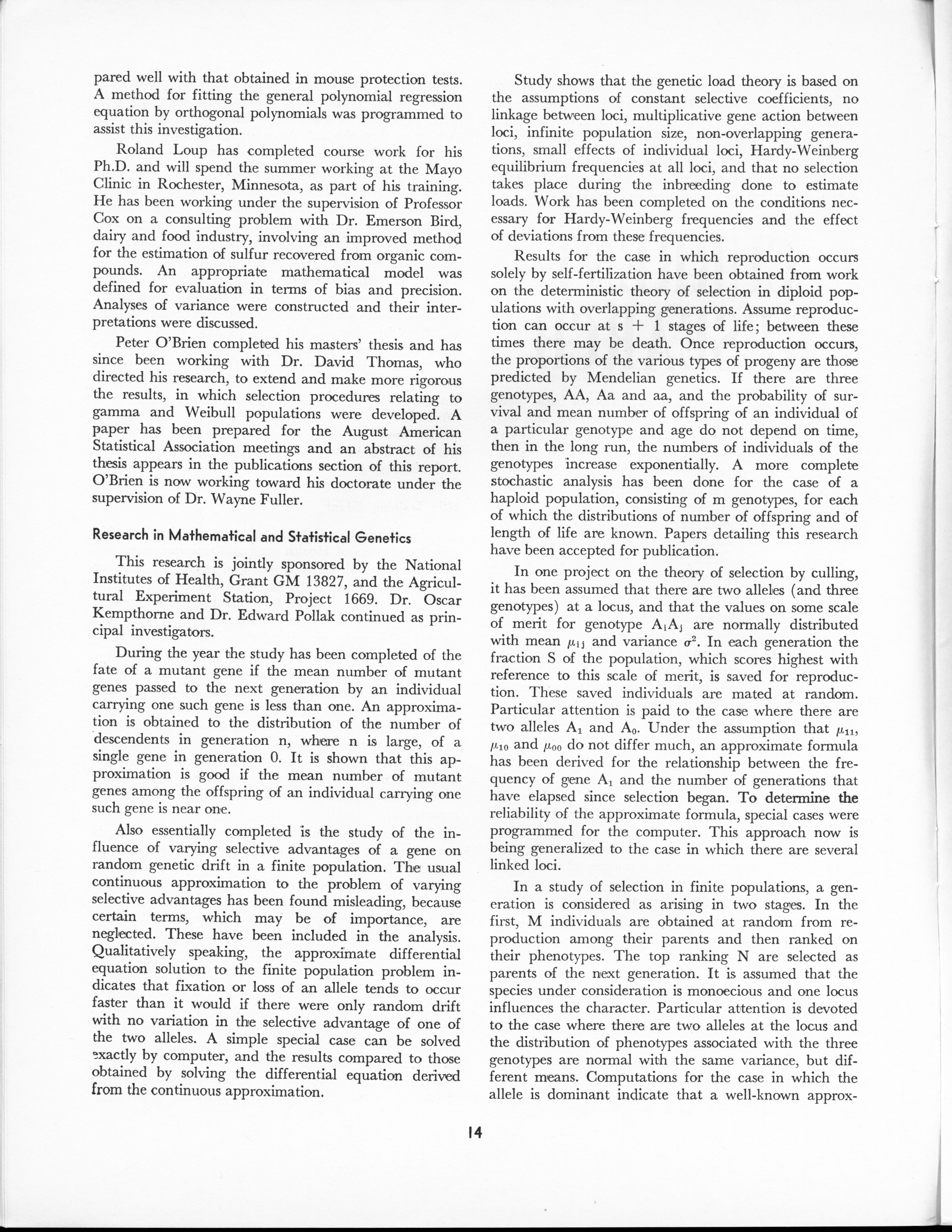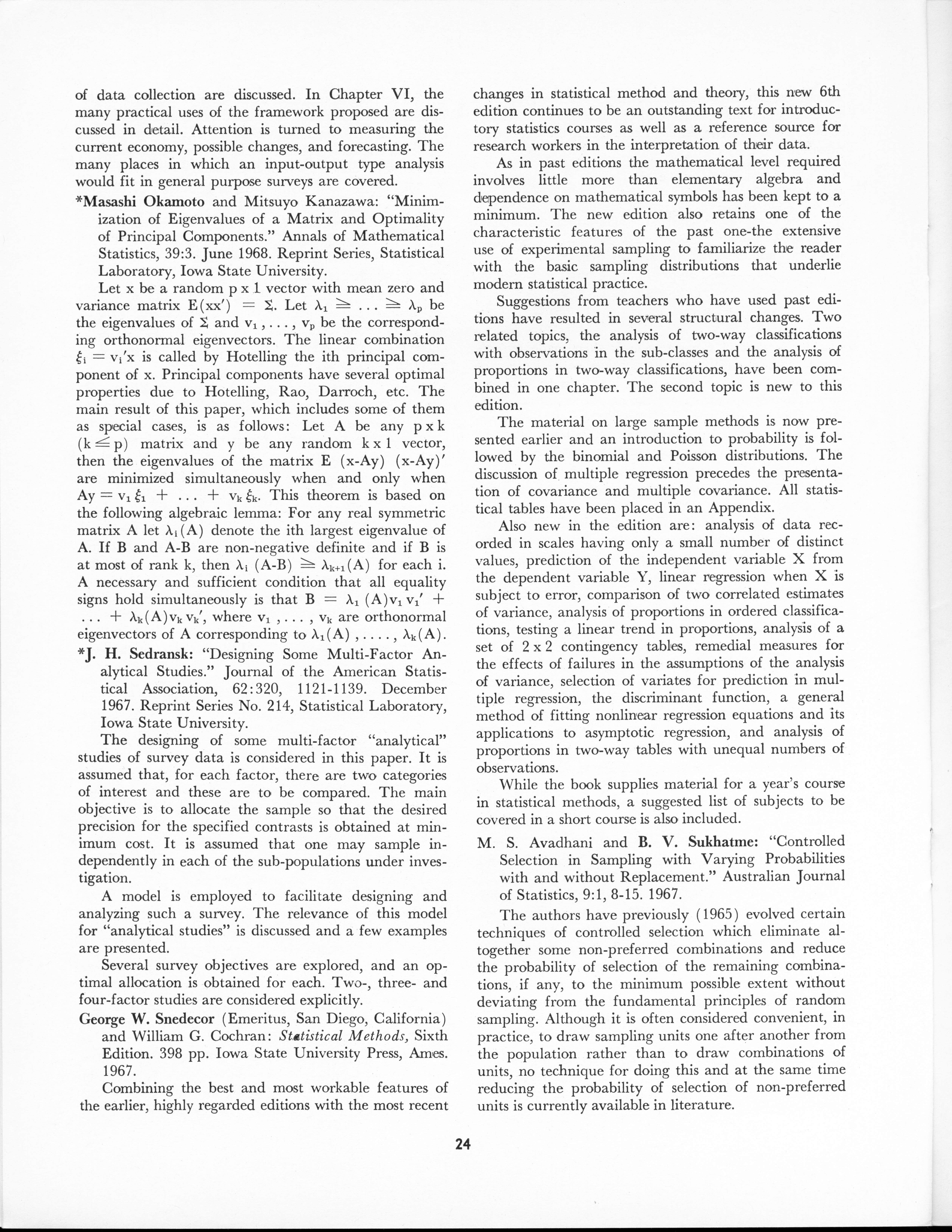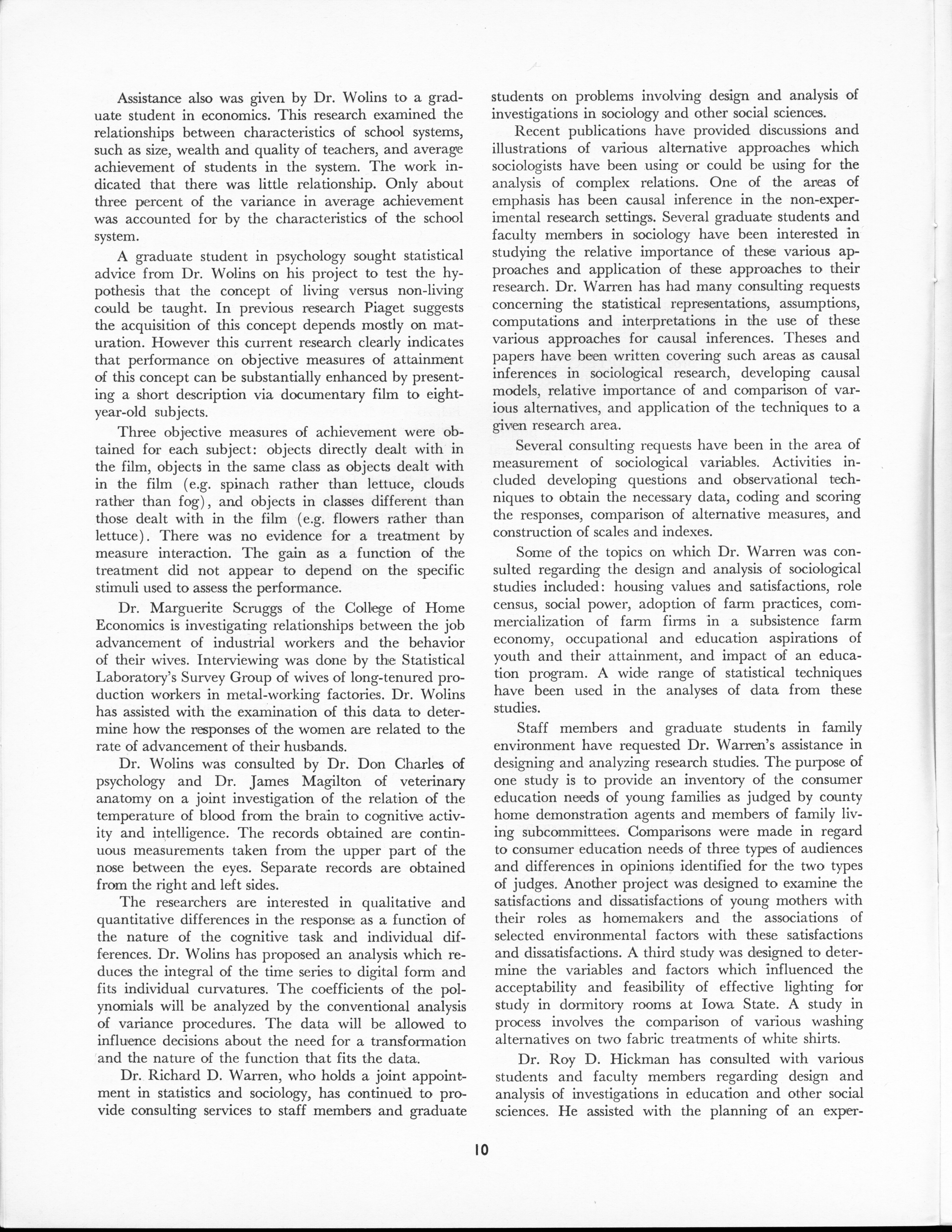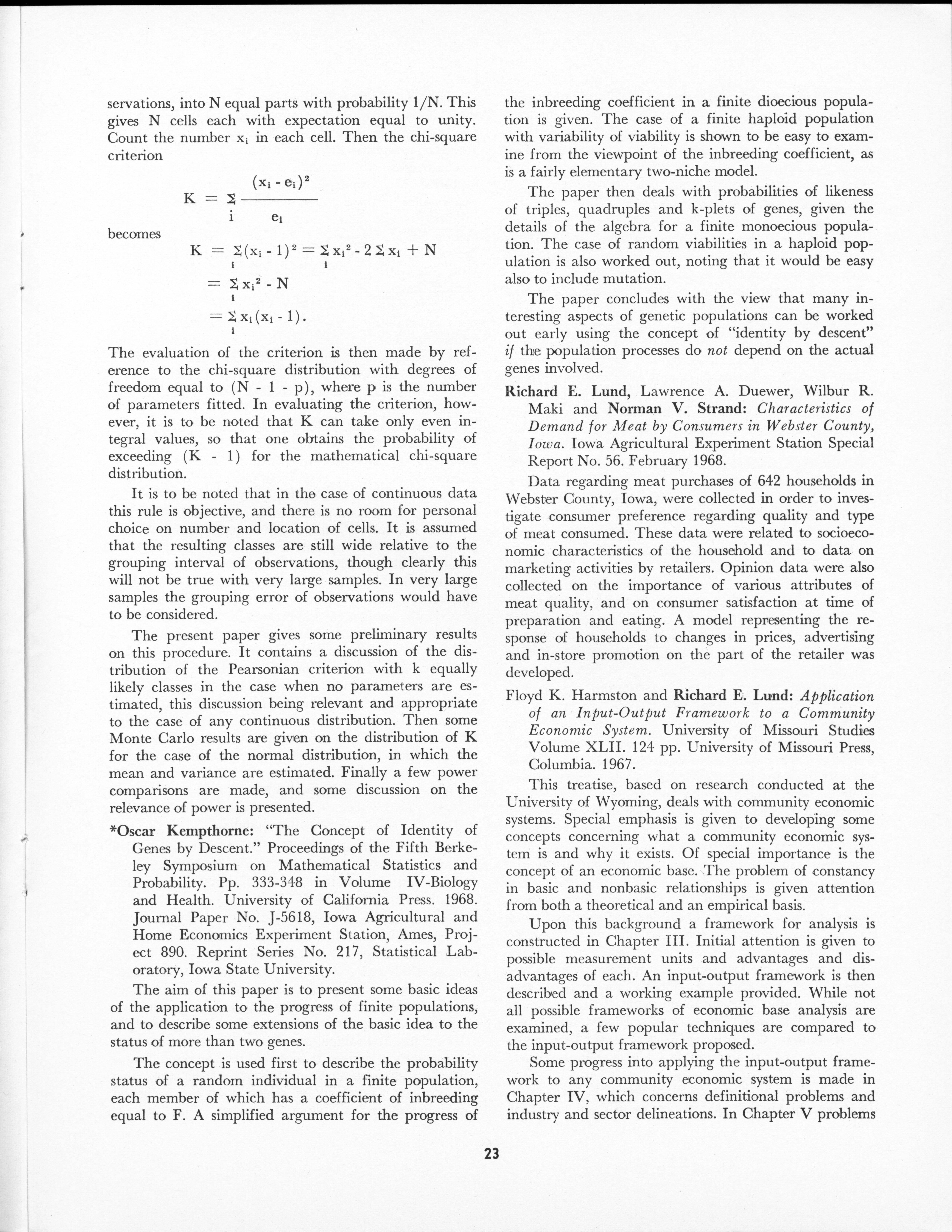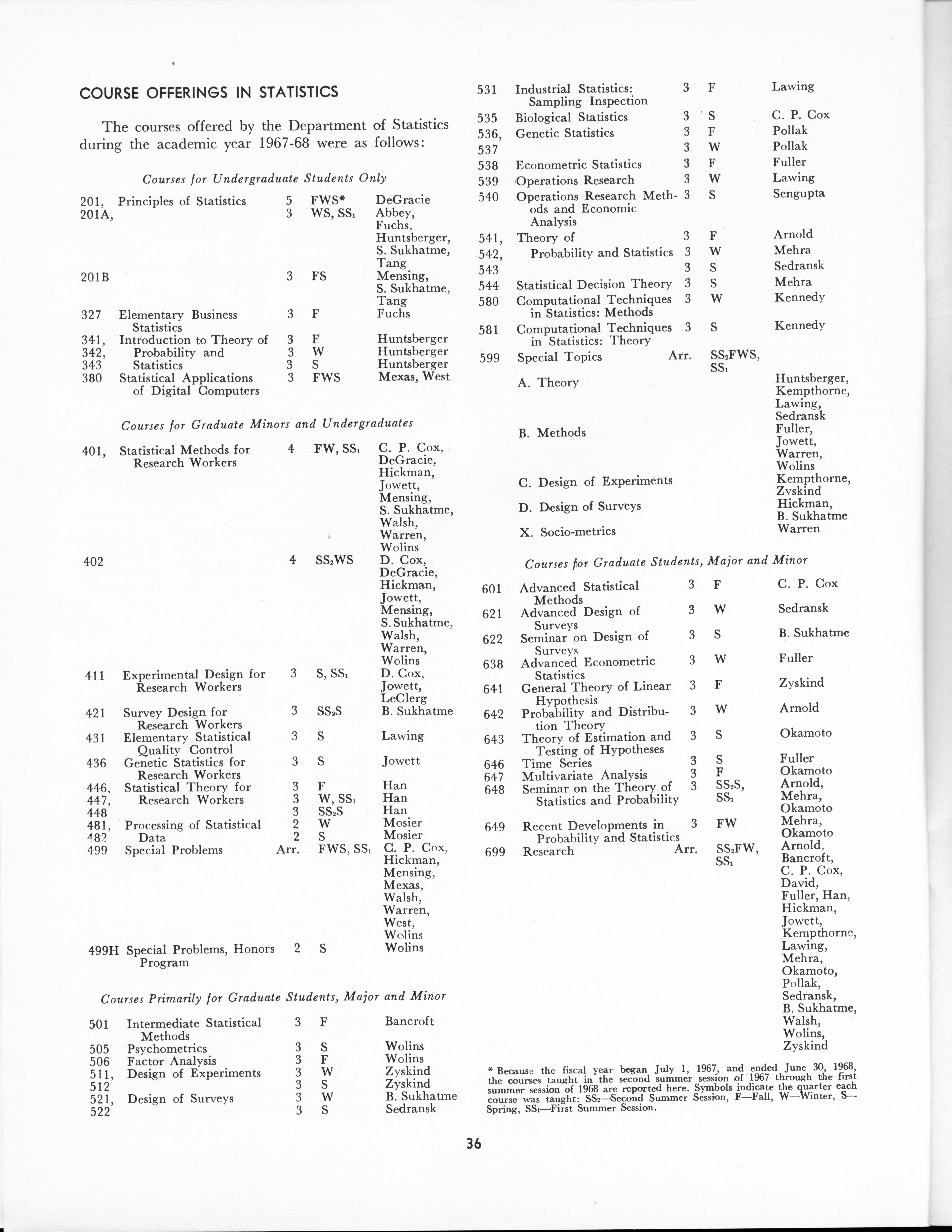 - "Statistical Laboratory Annual Report, July 1, 1967 to June 30, 1968", Iowa State University Statistical Laboratory Annual Reports, Iowa State University Library Digital Collections