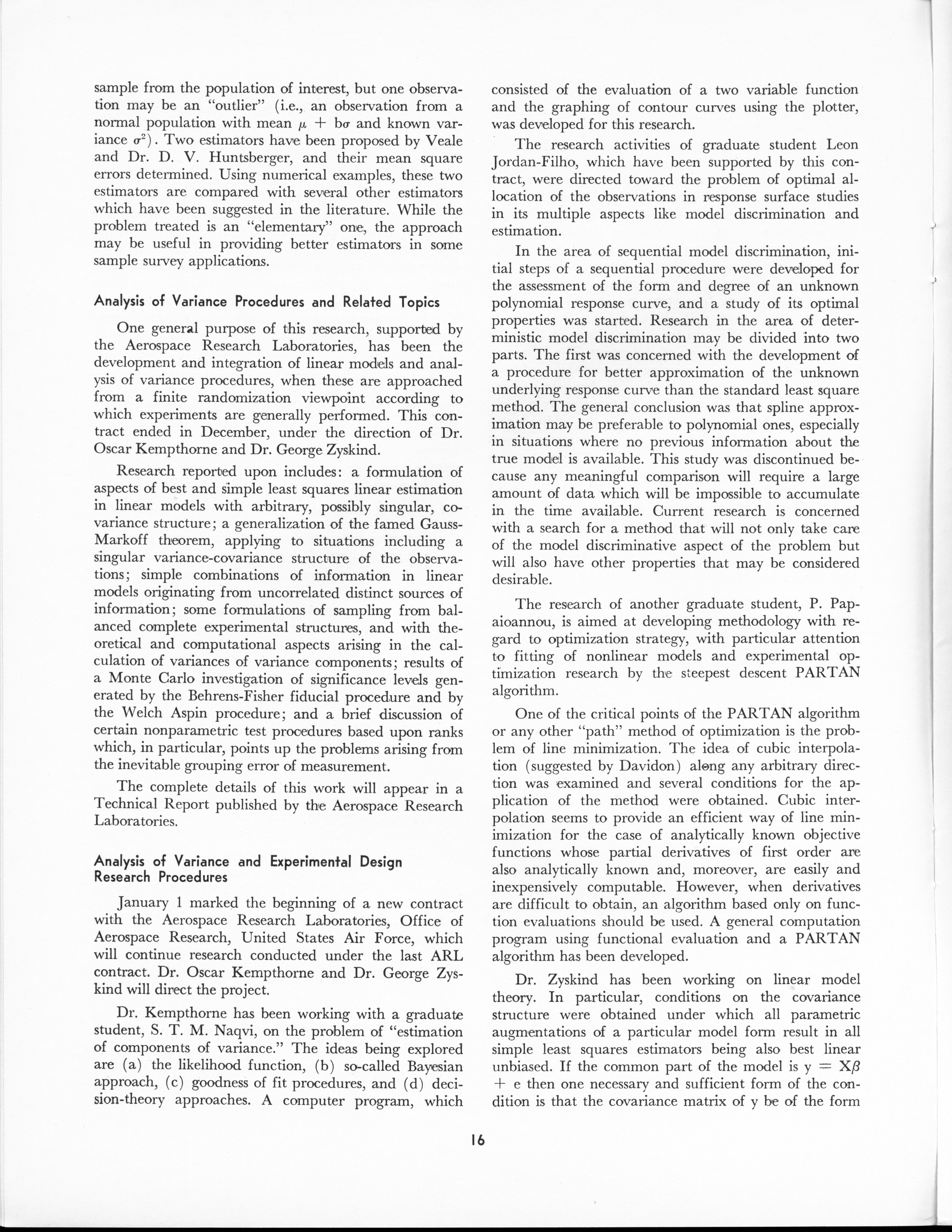 - Contents: Personnel -- Consulting and Joint Research -- Current Research -- Publications and Professional Activities -- Teaching
