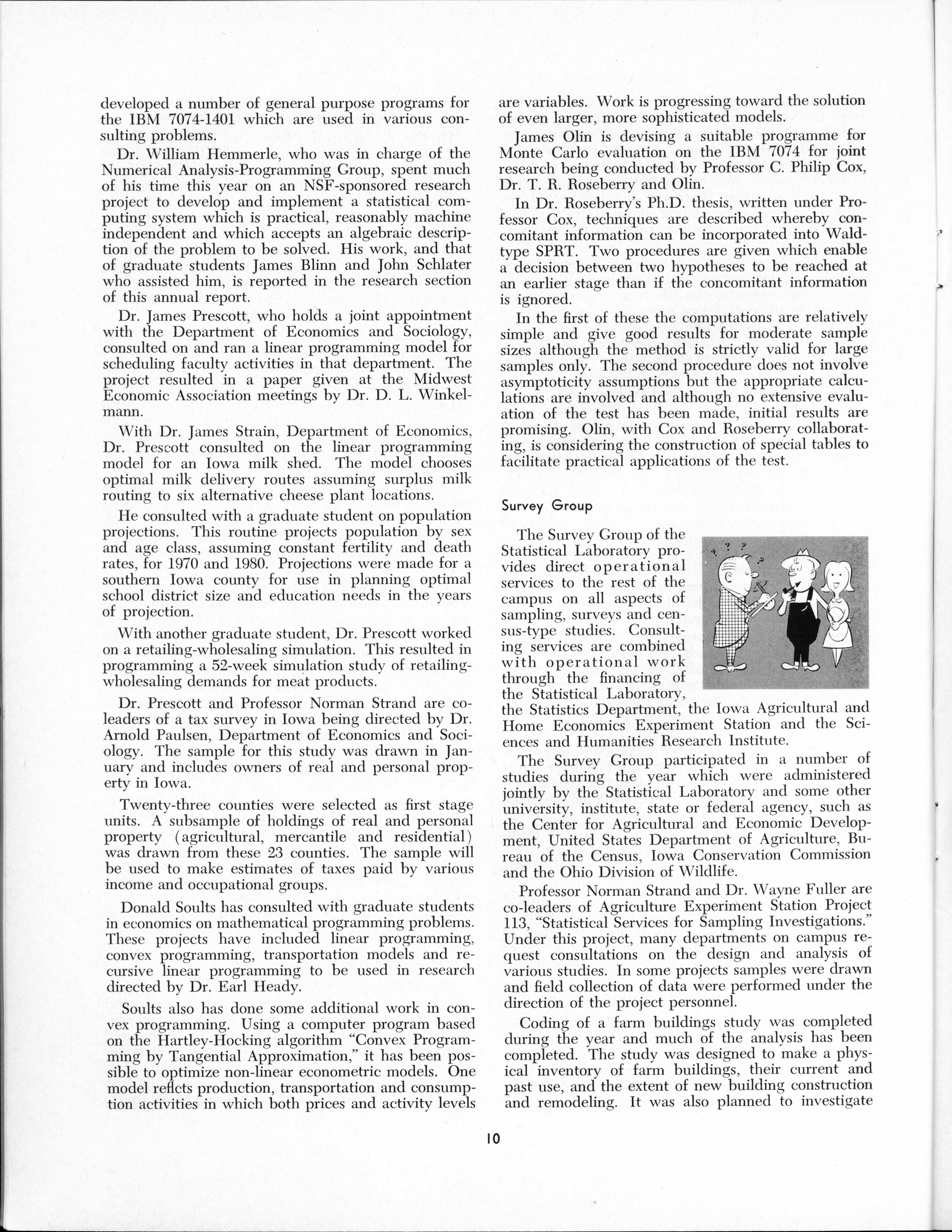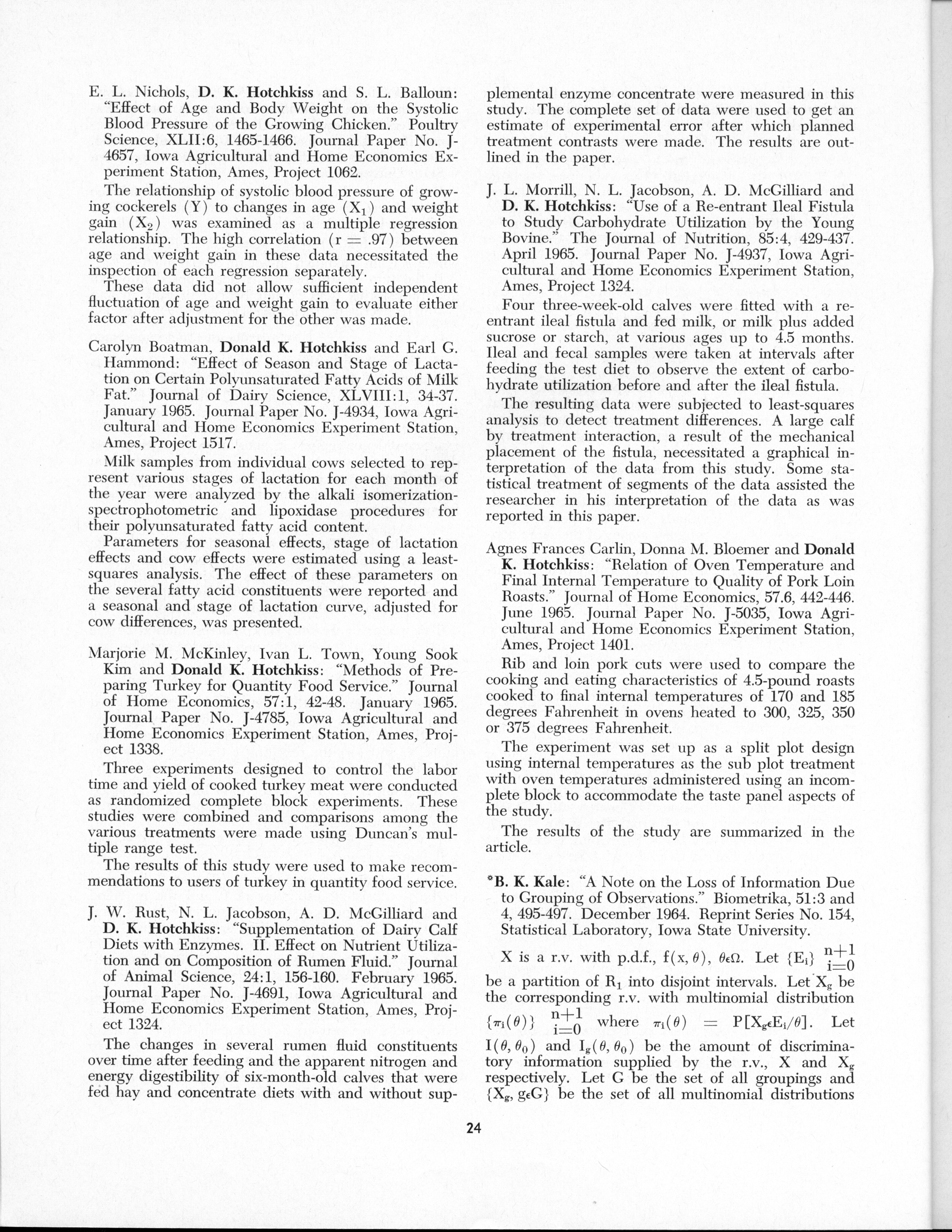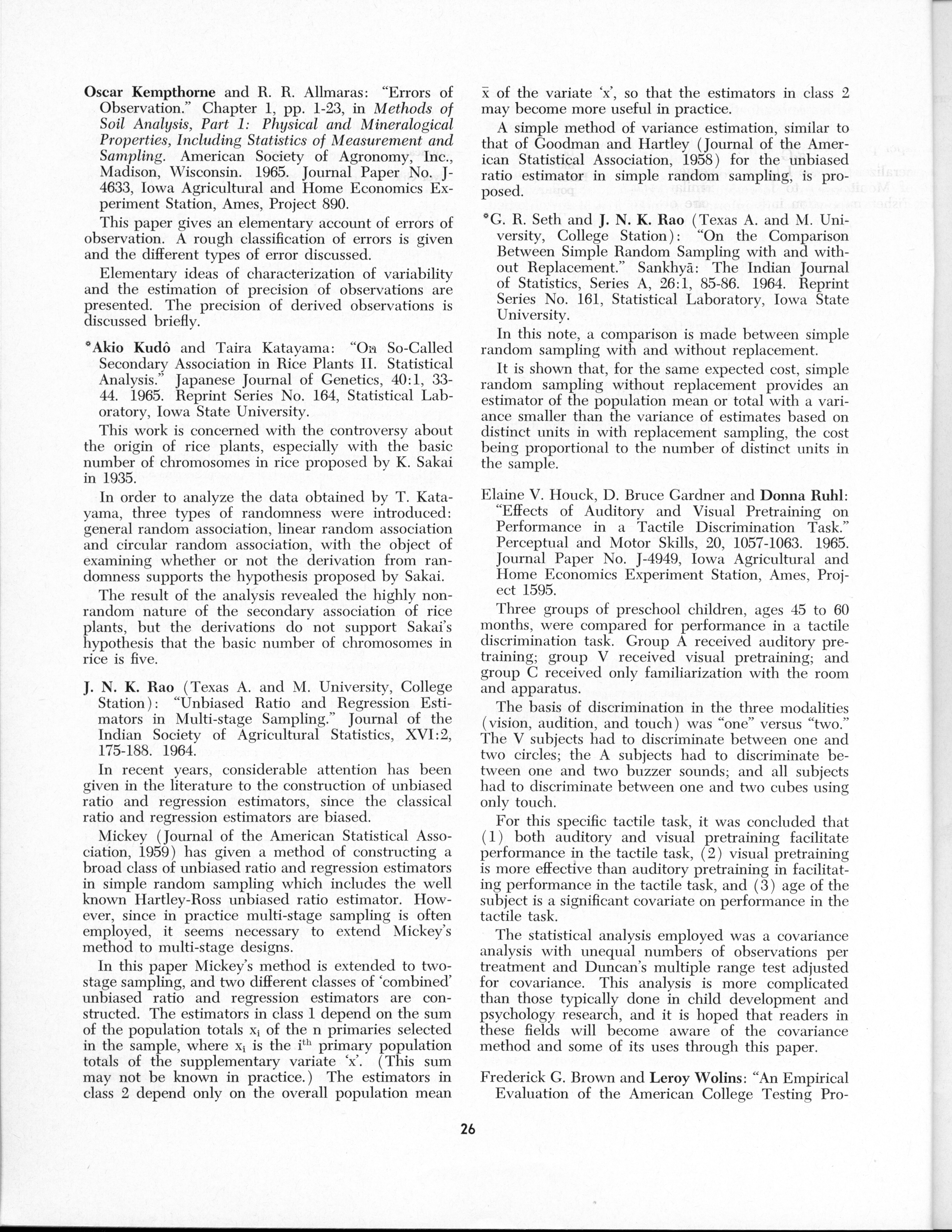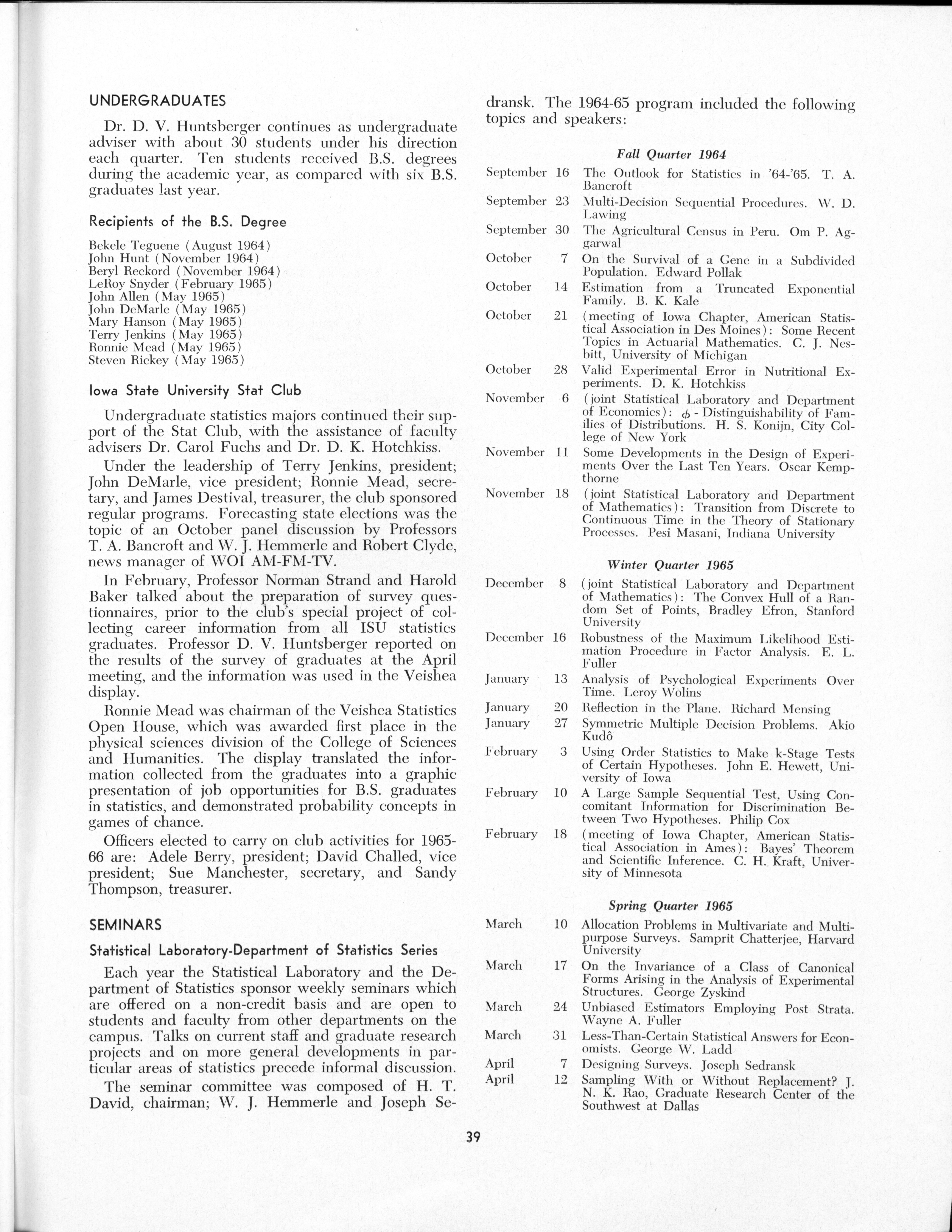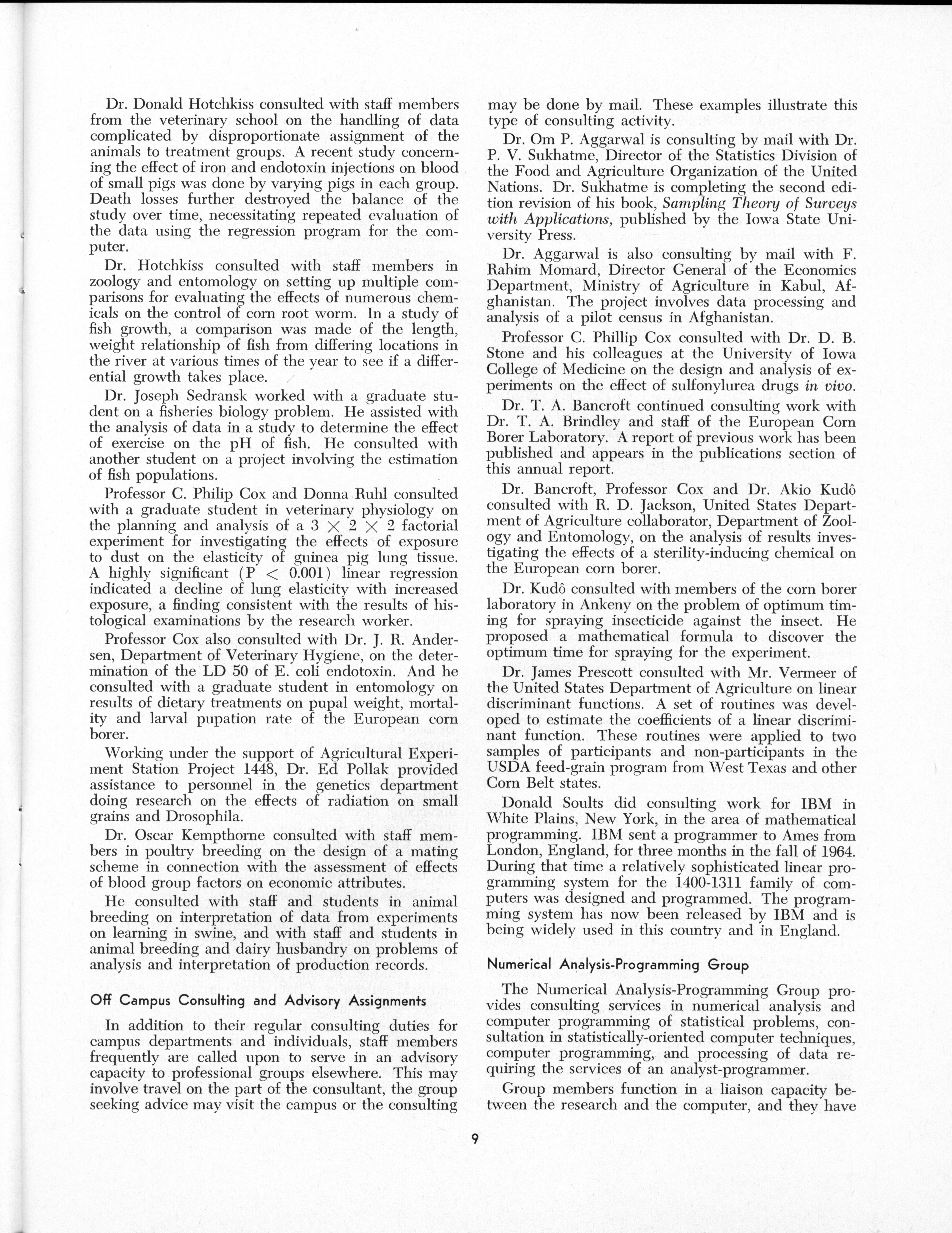 - "Statistical Laboratory Annual Report, July 1, 1964 to June 30, 1965", Iowa State University Statistical Laboratory Annual Reports, Iowa State University Library Digital Collections