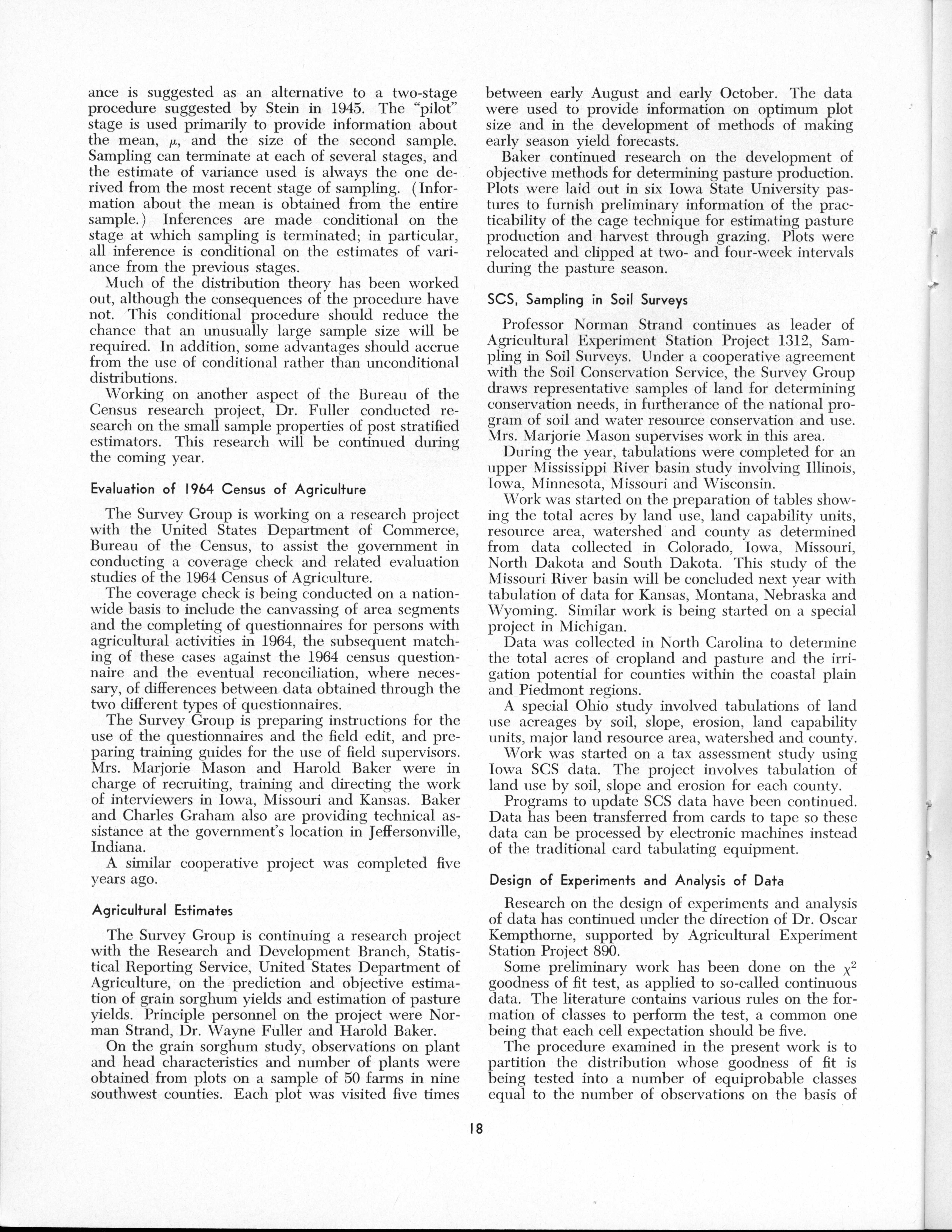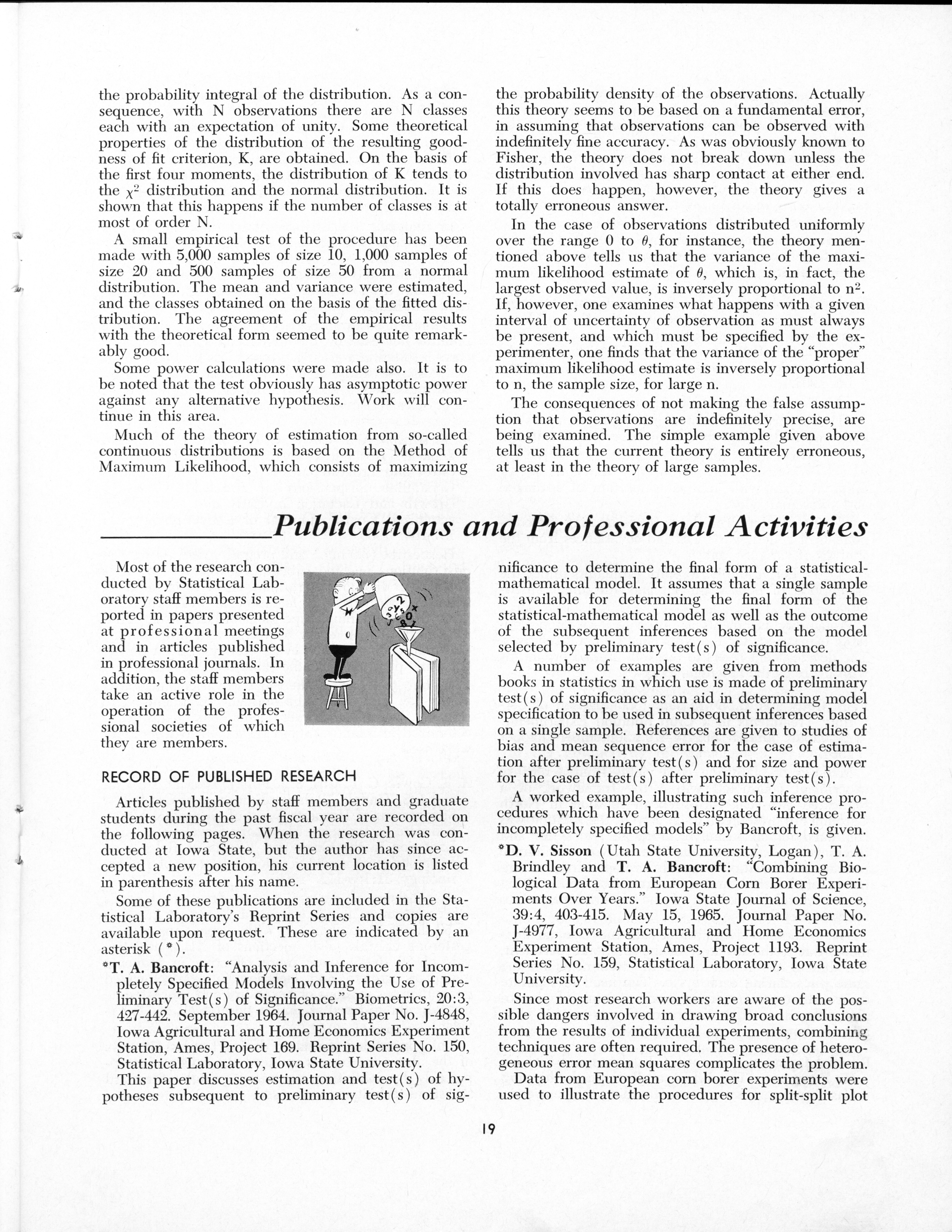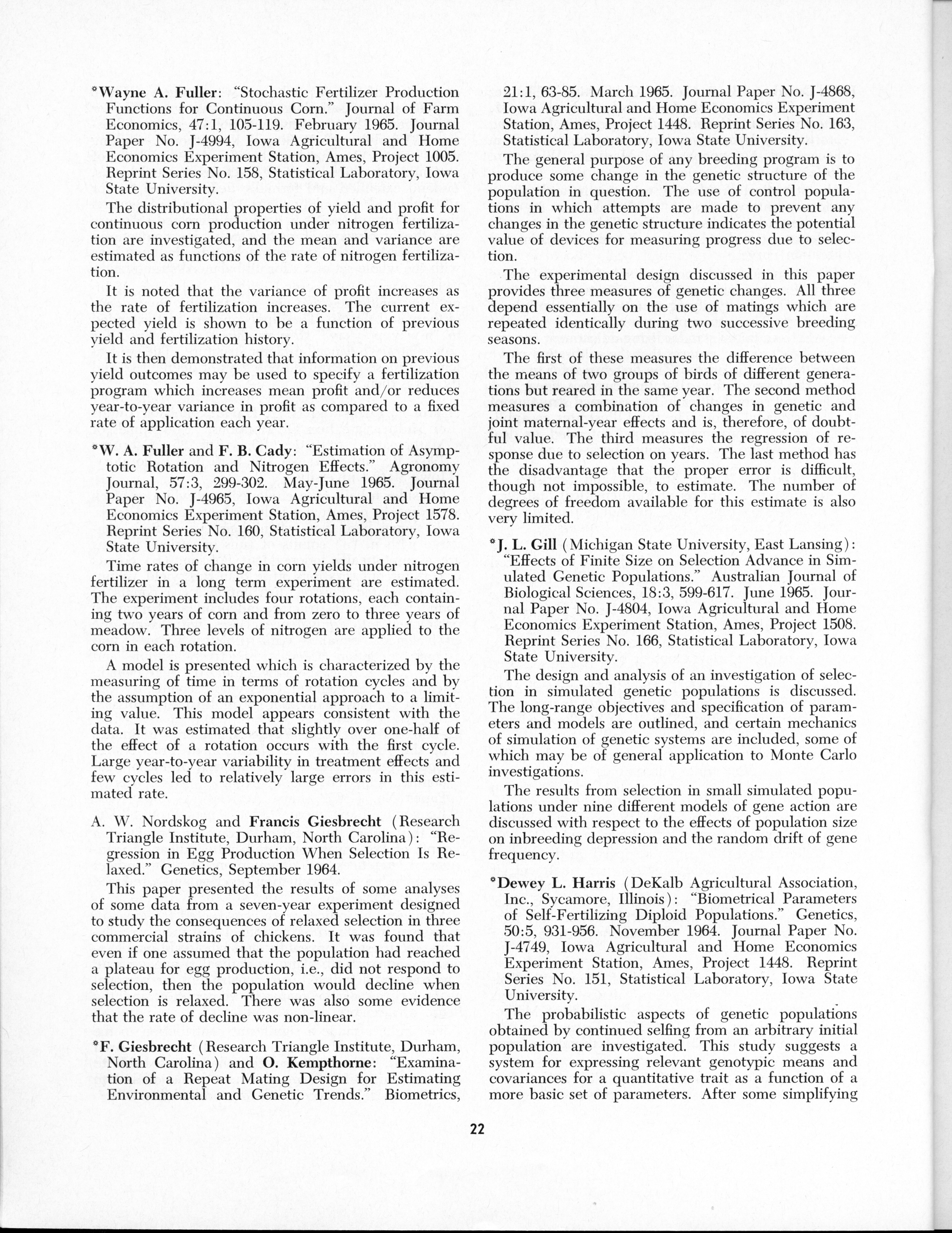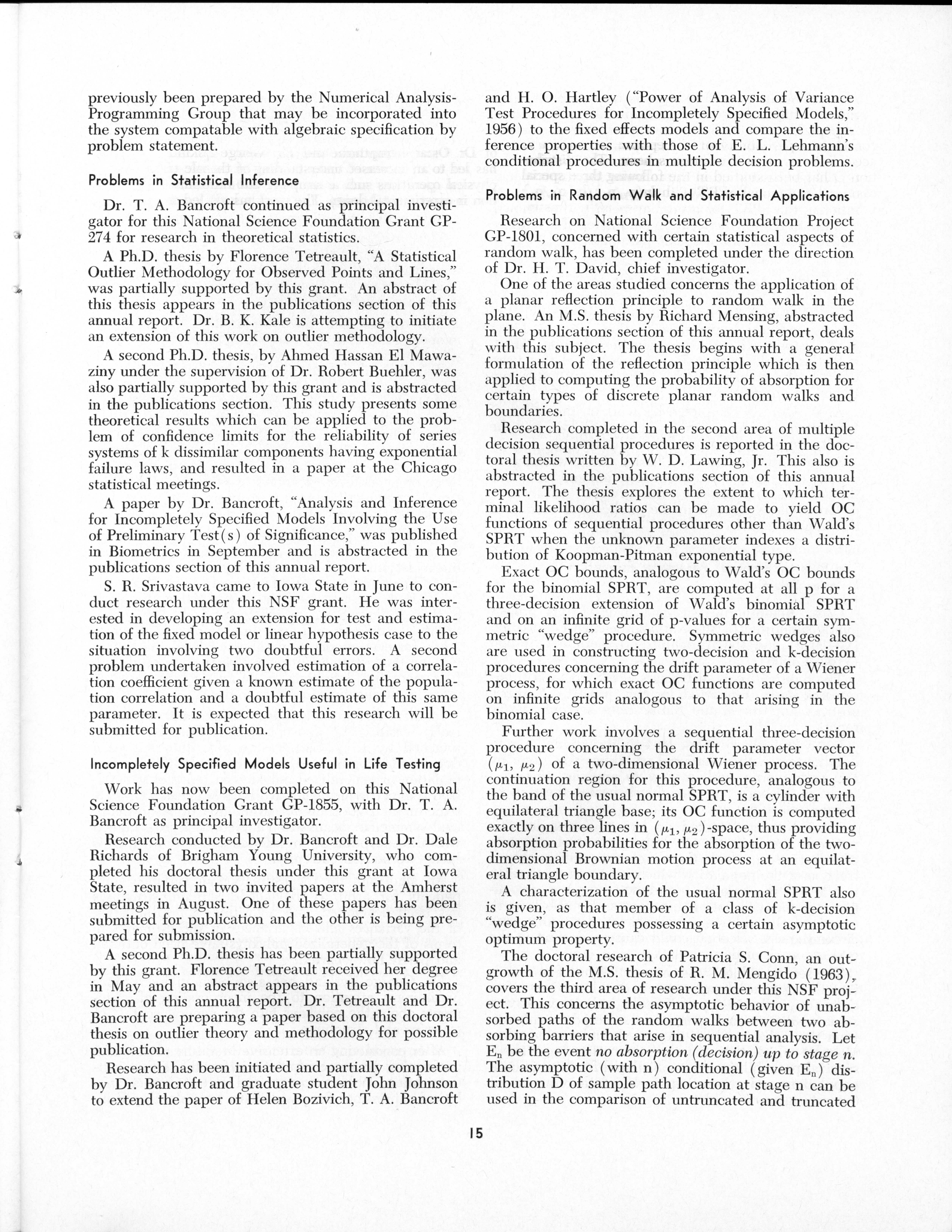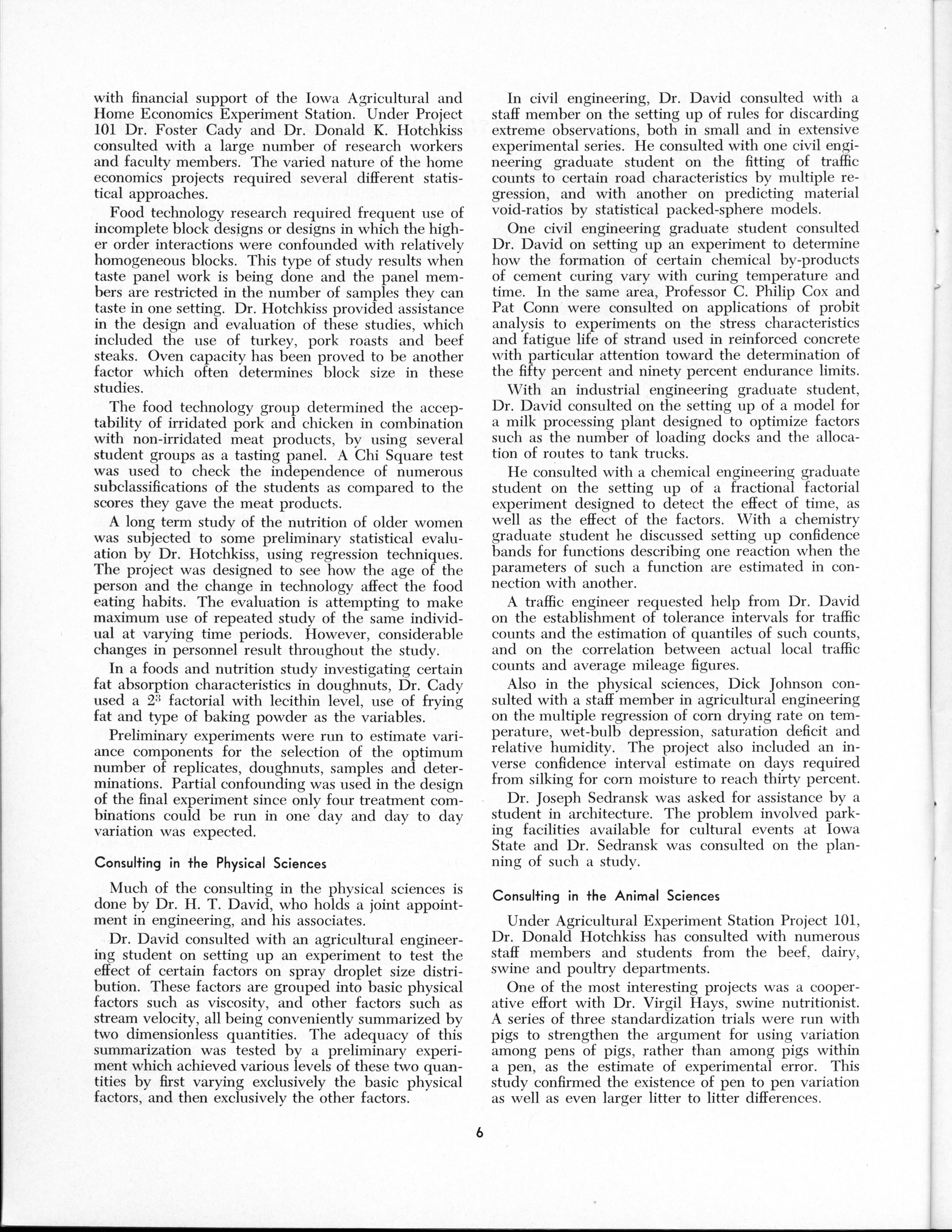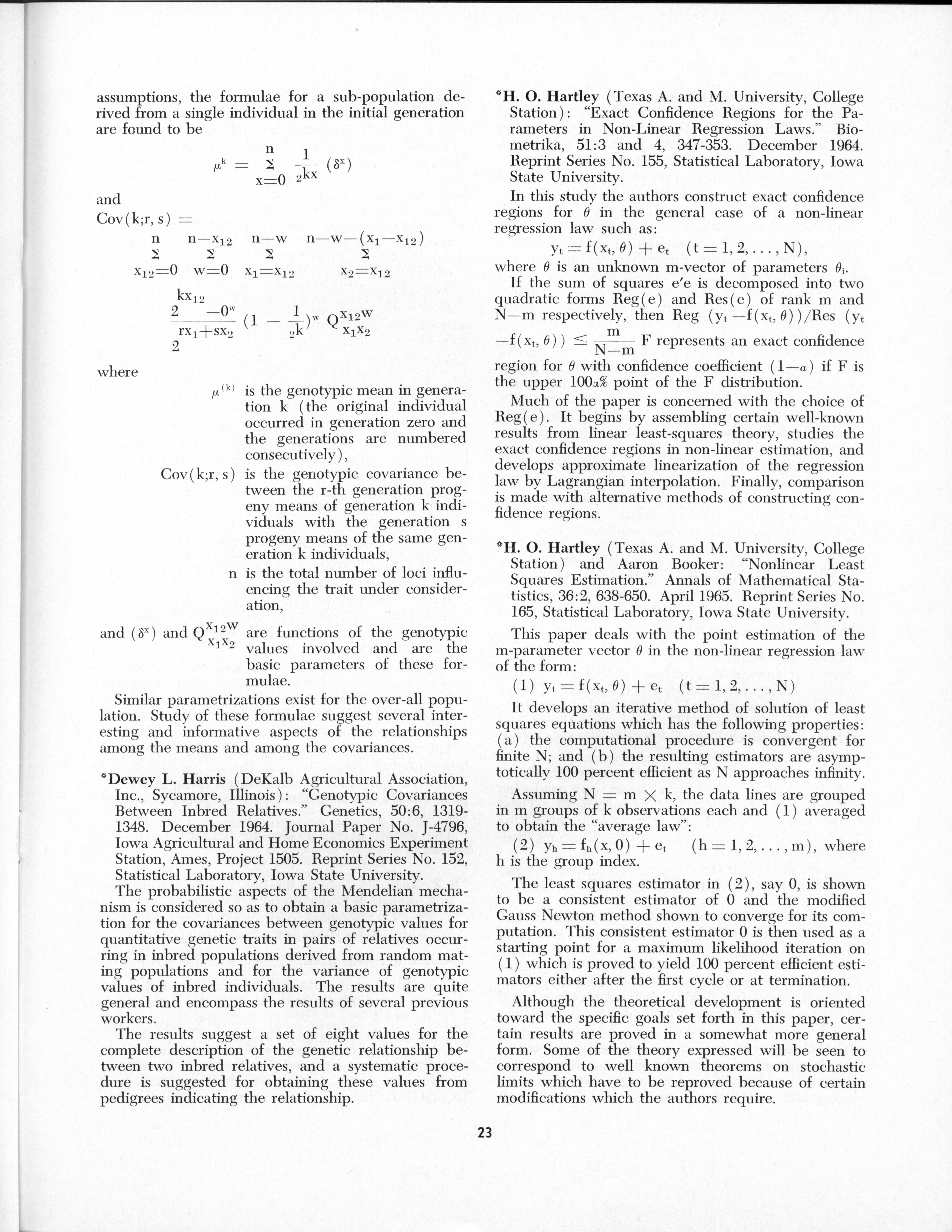 - "Statistical Laboratory Annual Report, July 1, 1964 to June 30, 1965", Iowa State University Statistical Laboratory Annual Reports, Iowa State University Library Digital Collections