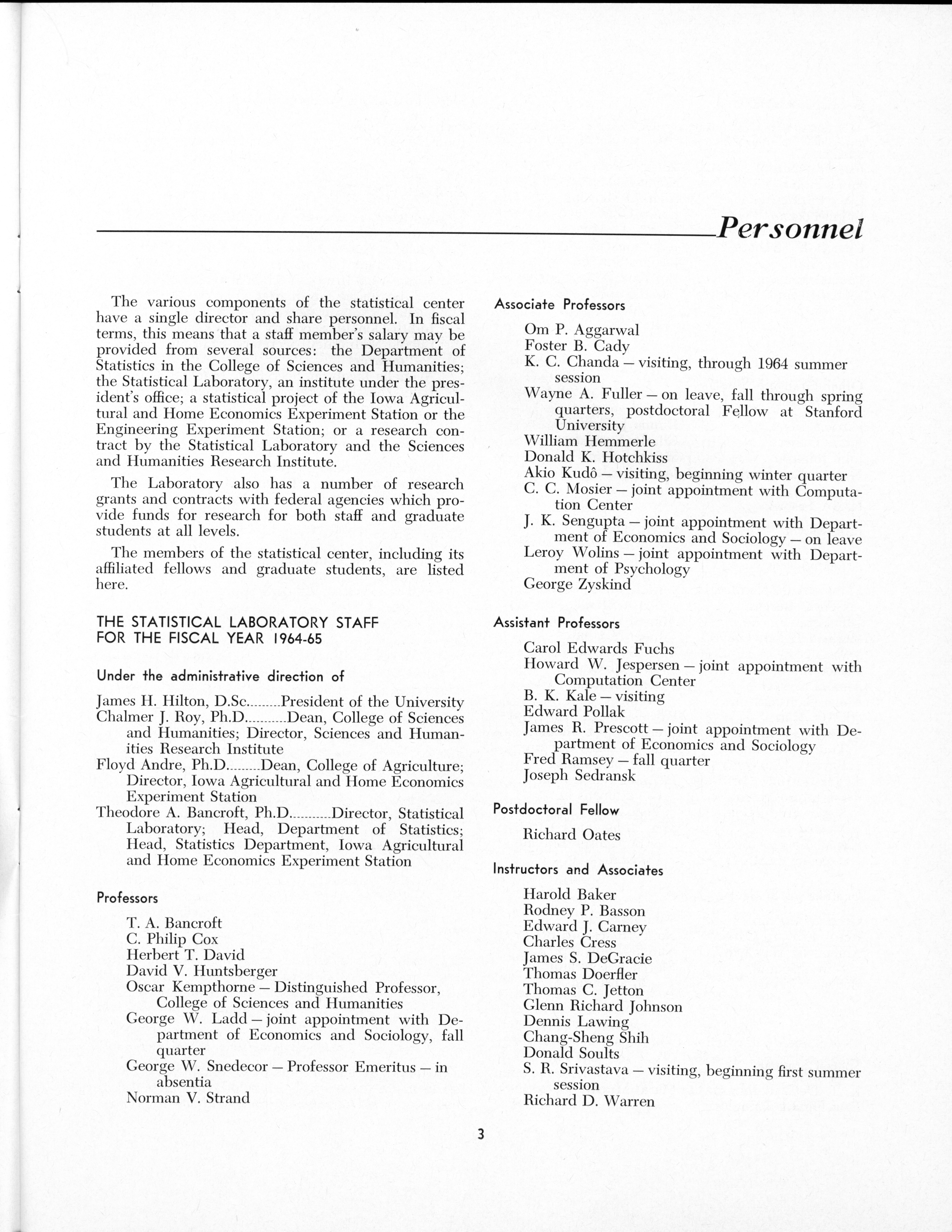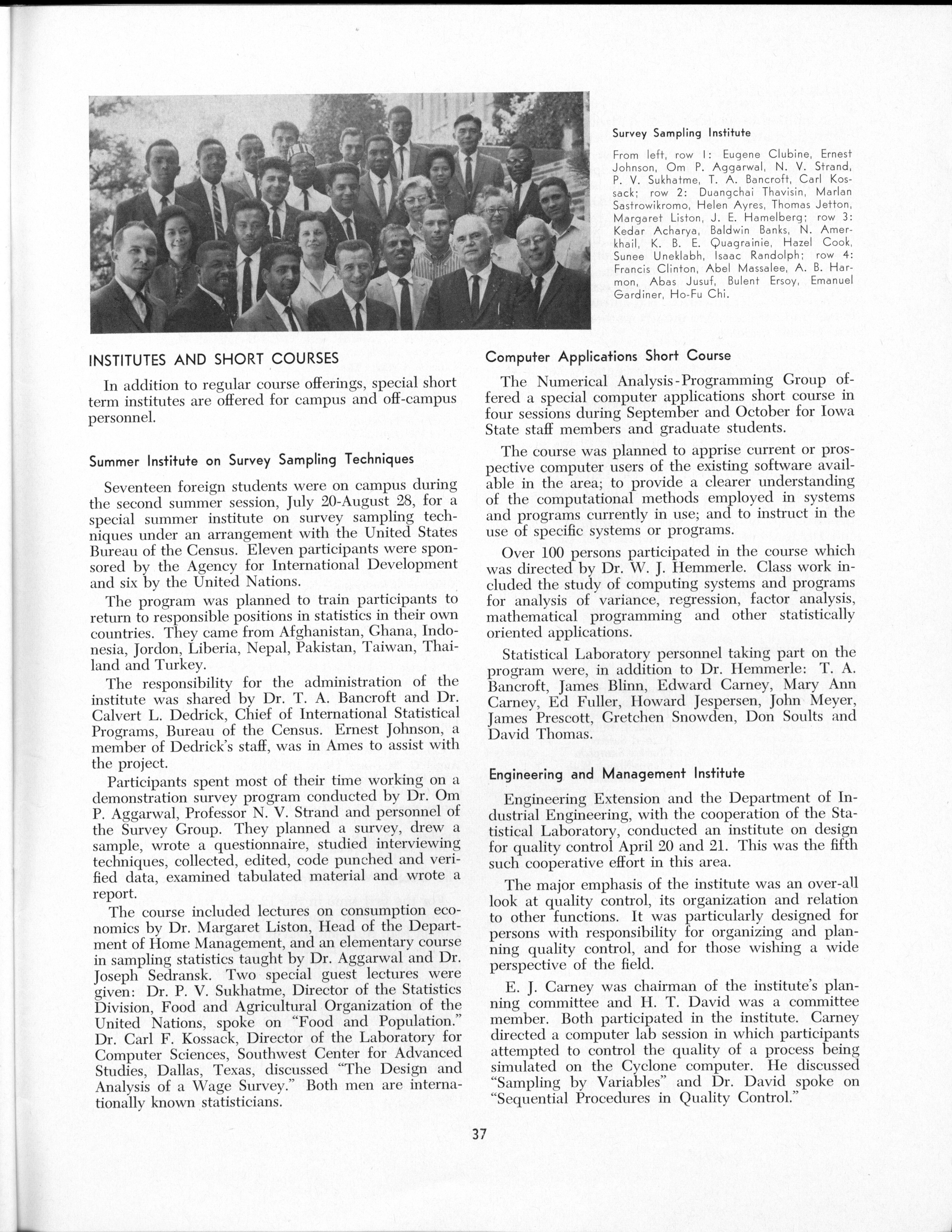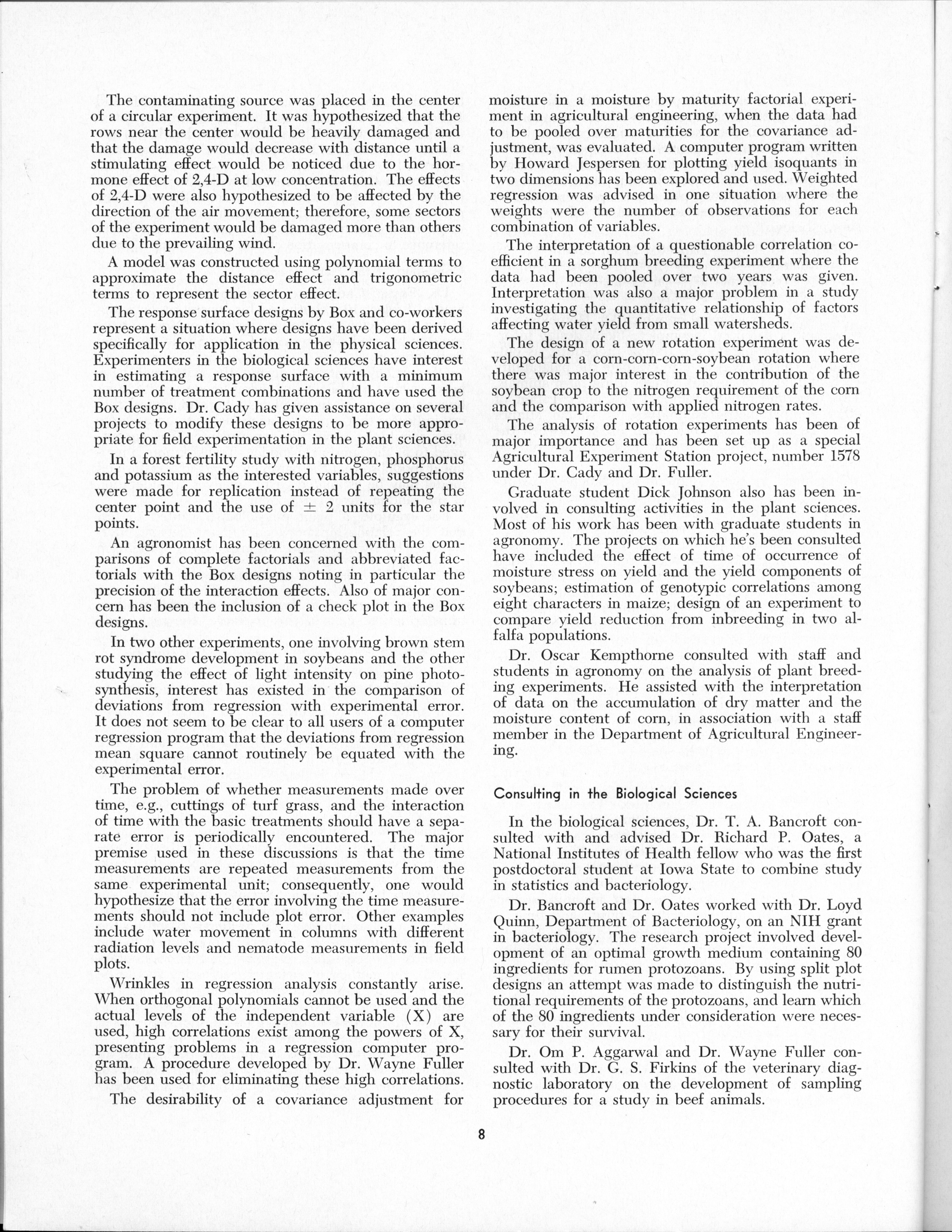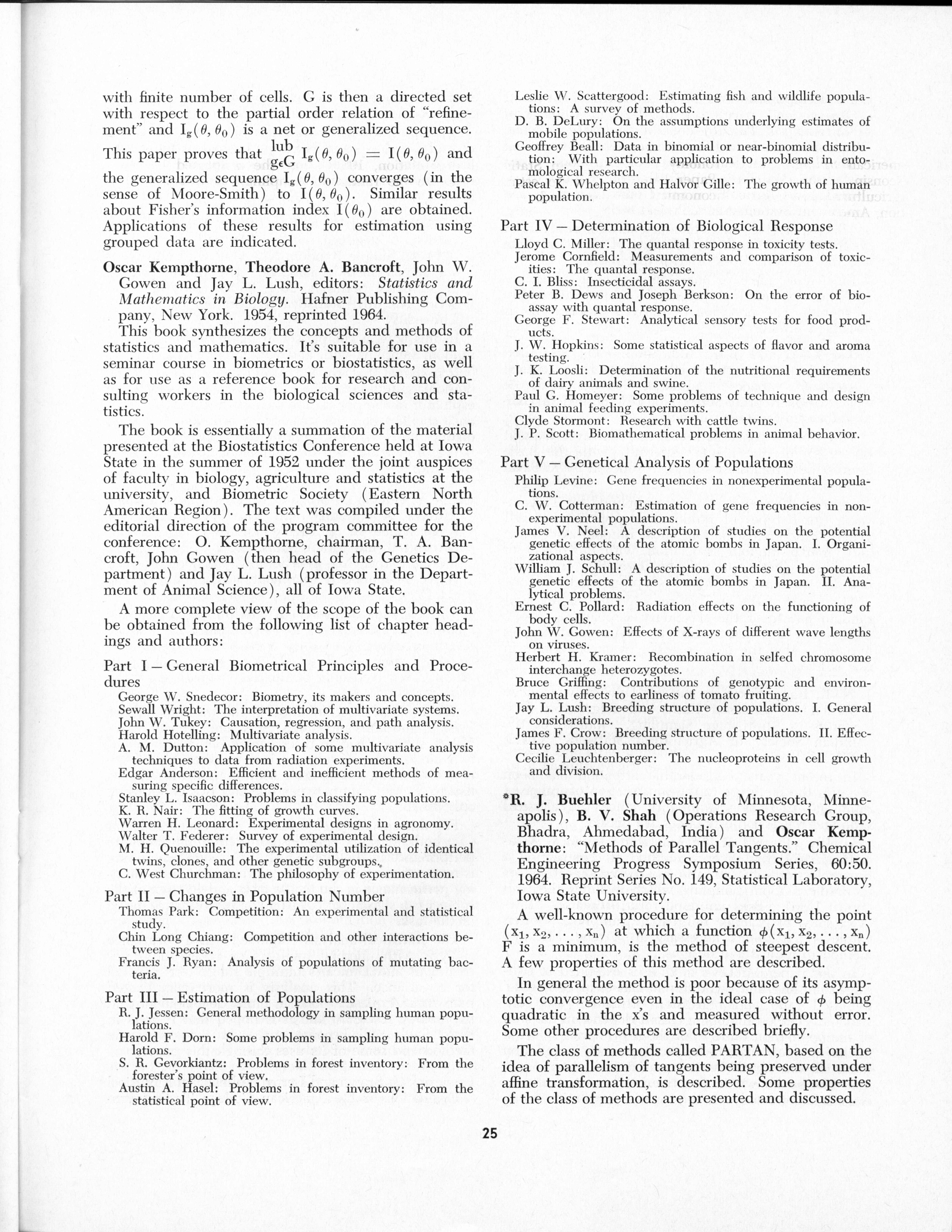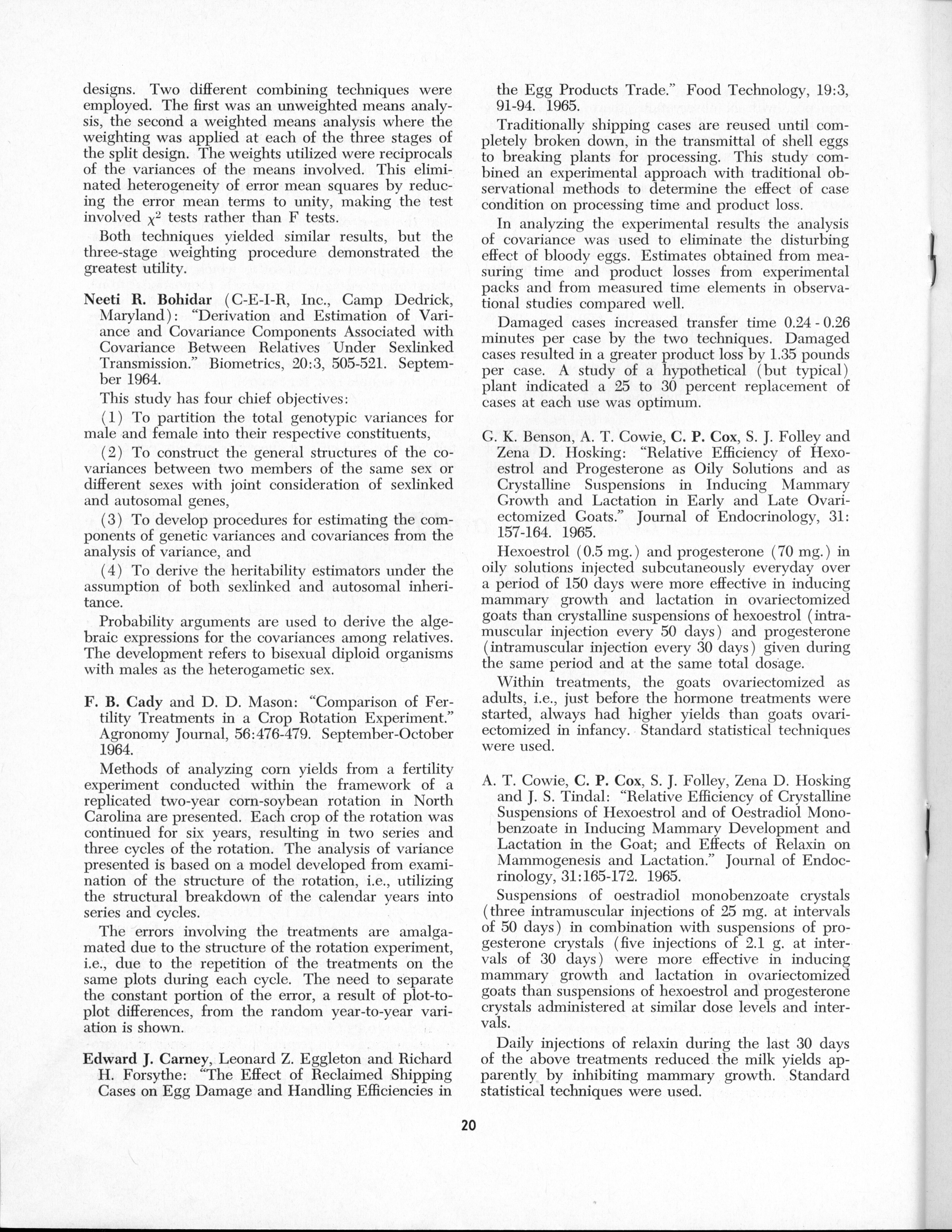 - "Statistical Laboratory Annual Report, July 1, 1964 to June 30, 1965", Iowa State University Statistical Laboratory Annual Reports, Iowa State University Library Digital Collections