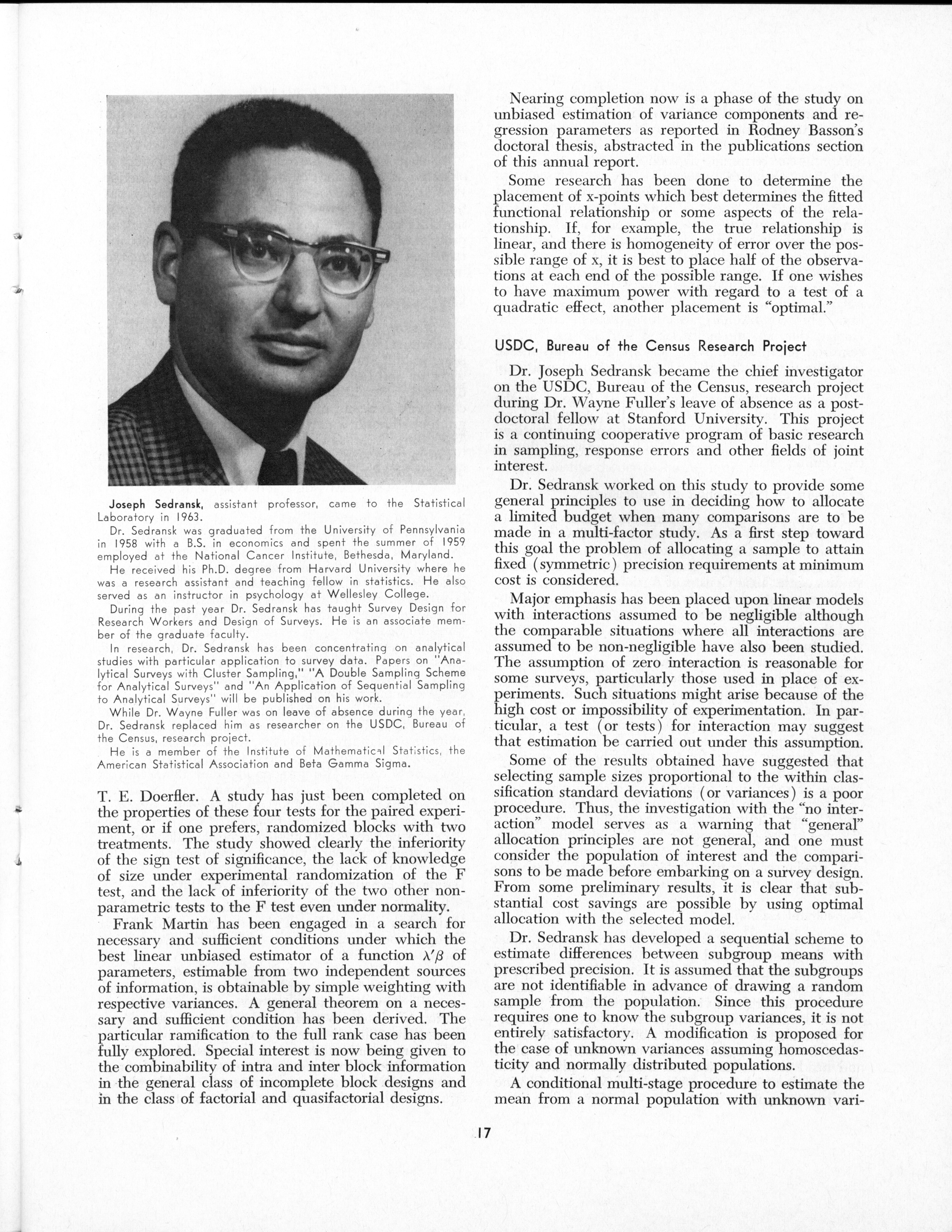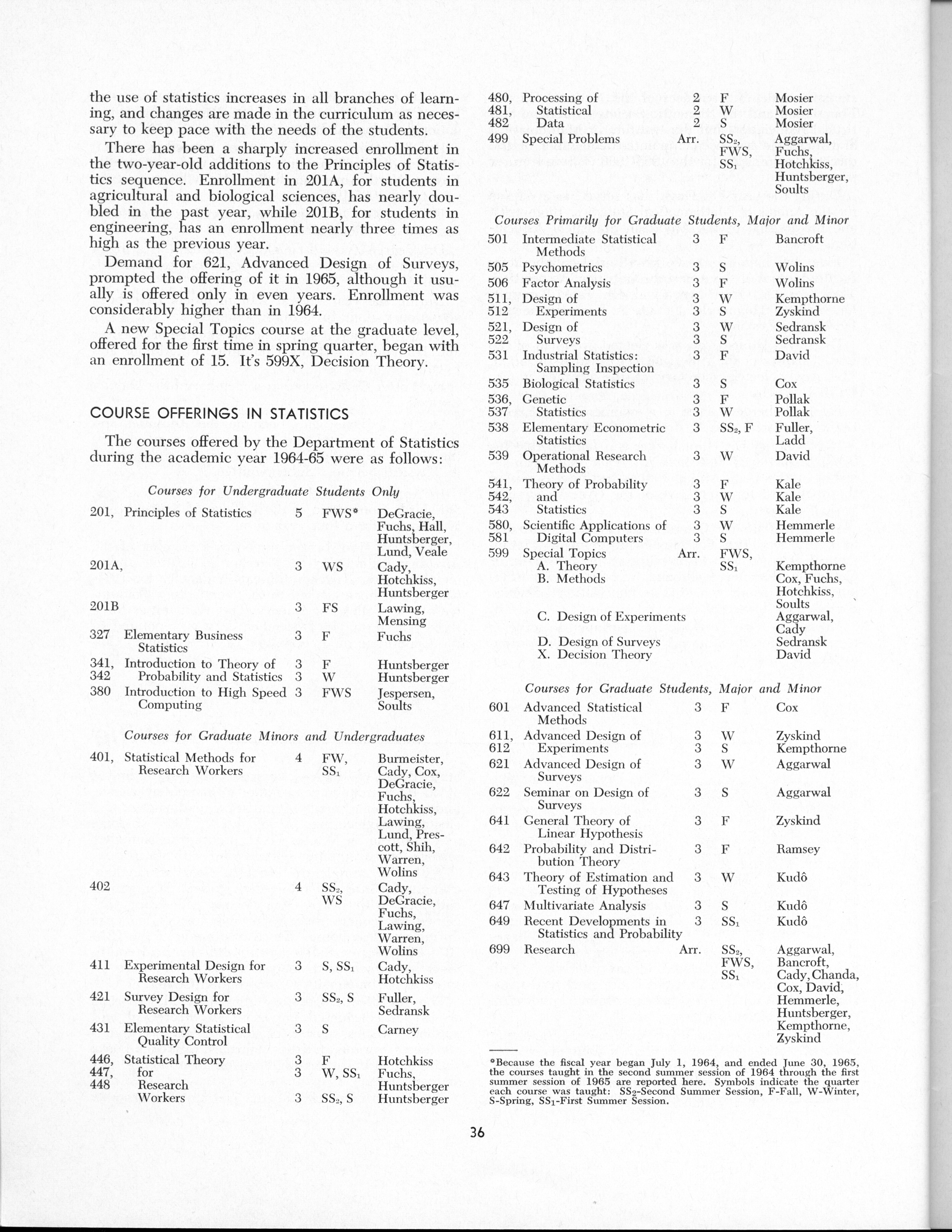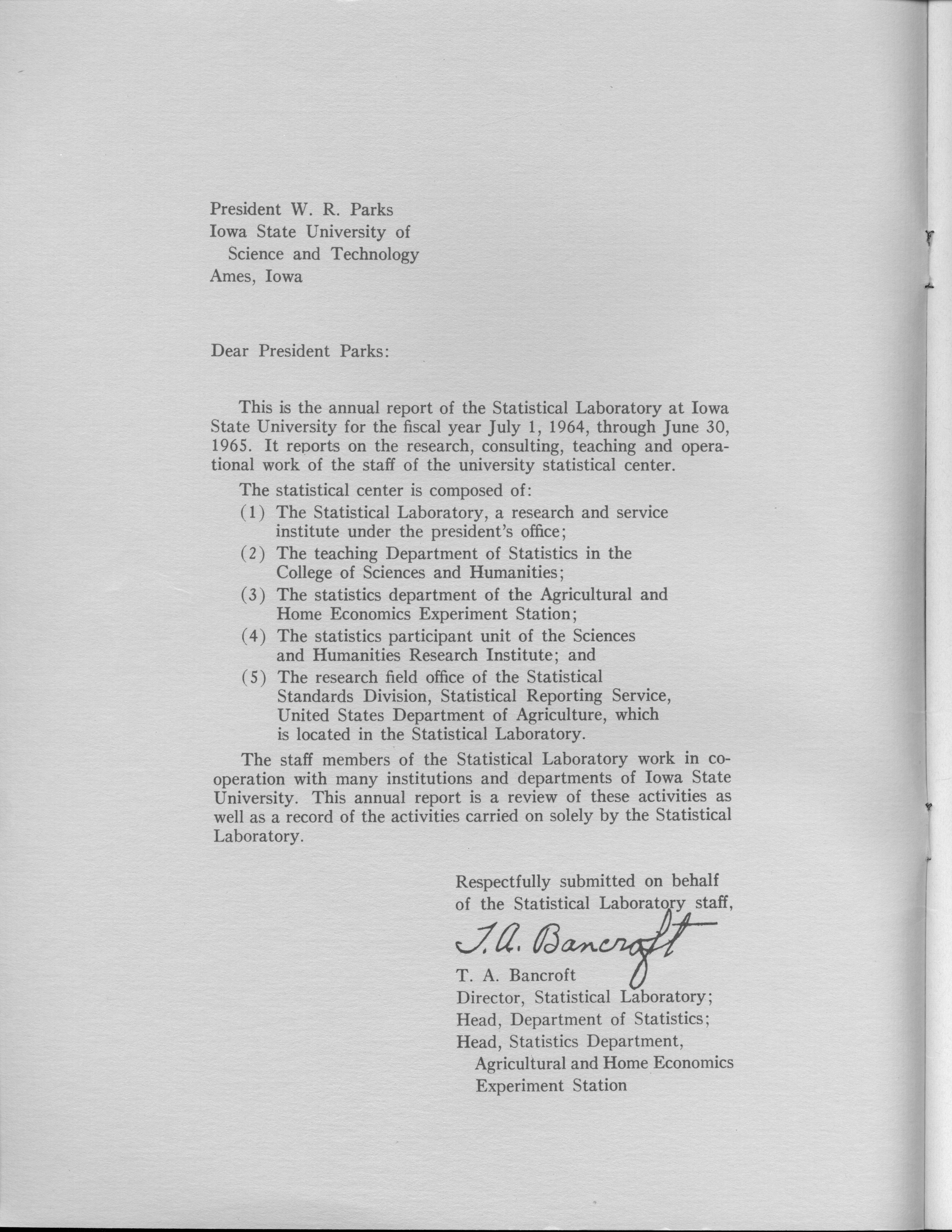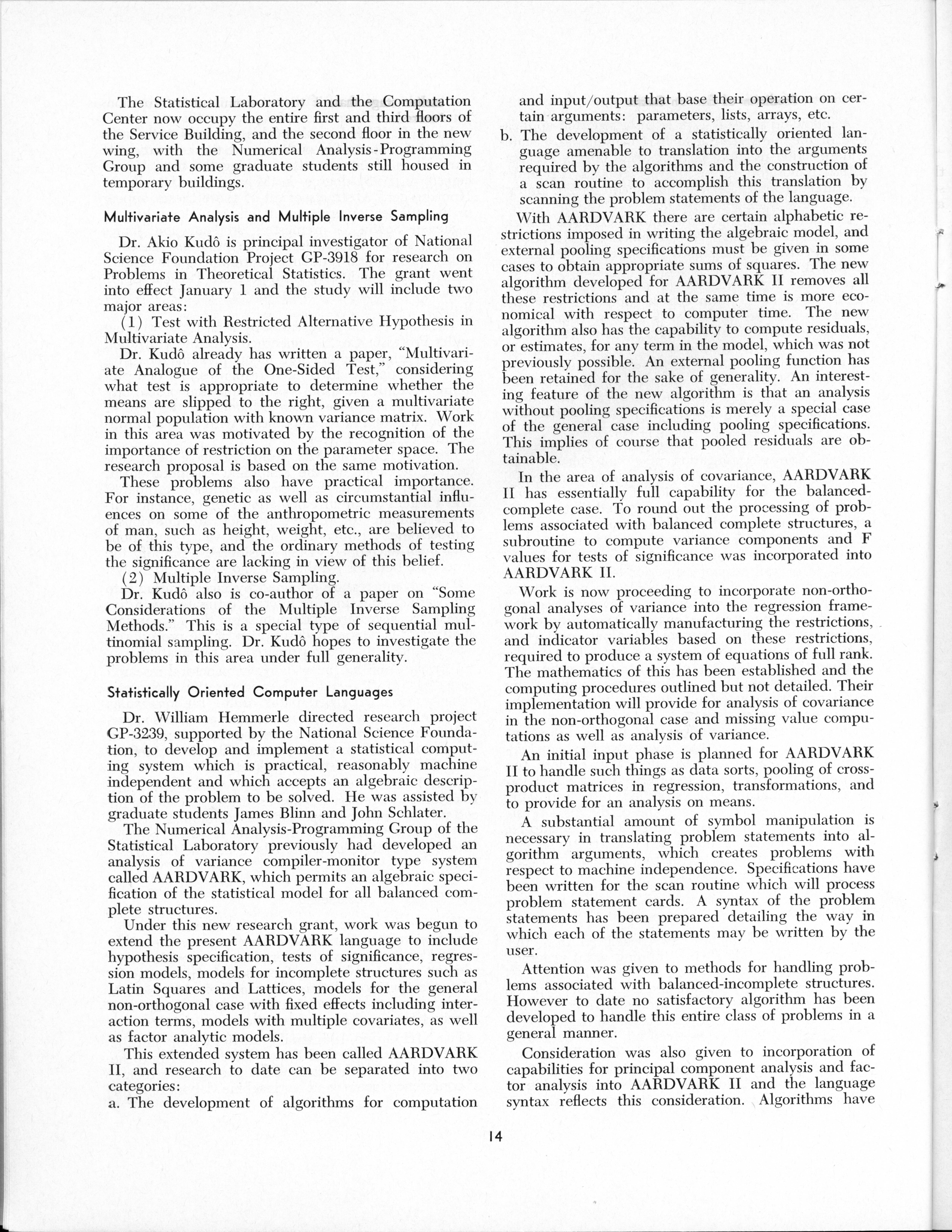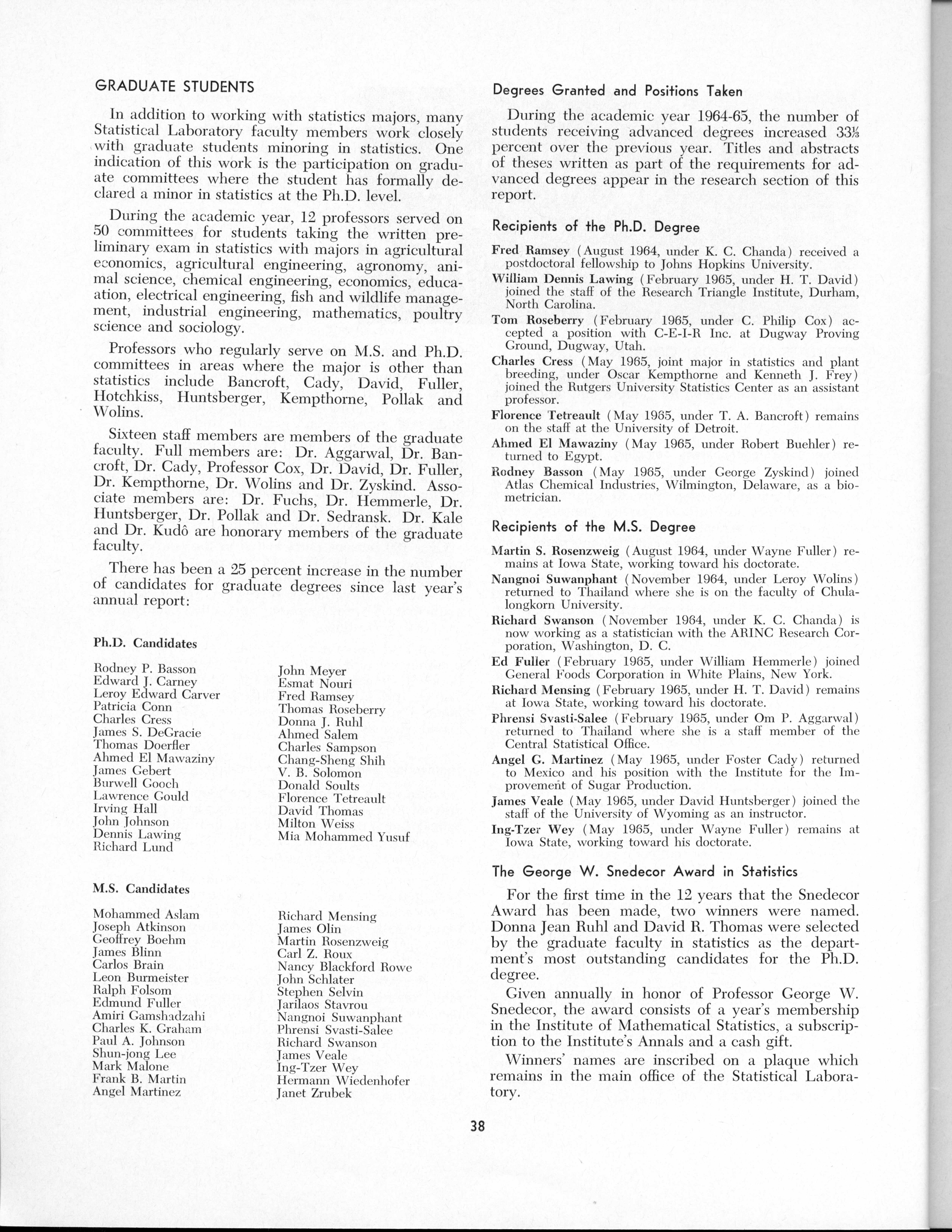 - "Statistical Laboratory Annual Report, July 1, 1964 to June 30, 1965", Iowa State University Statistical Laboratory Annual Reports, Iowa State University Library Digital Collections