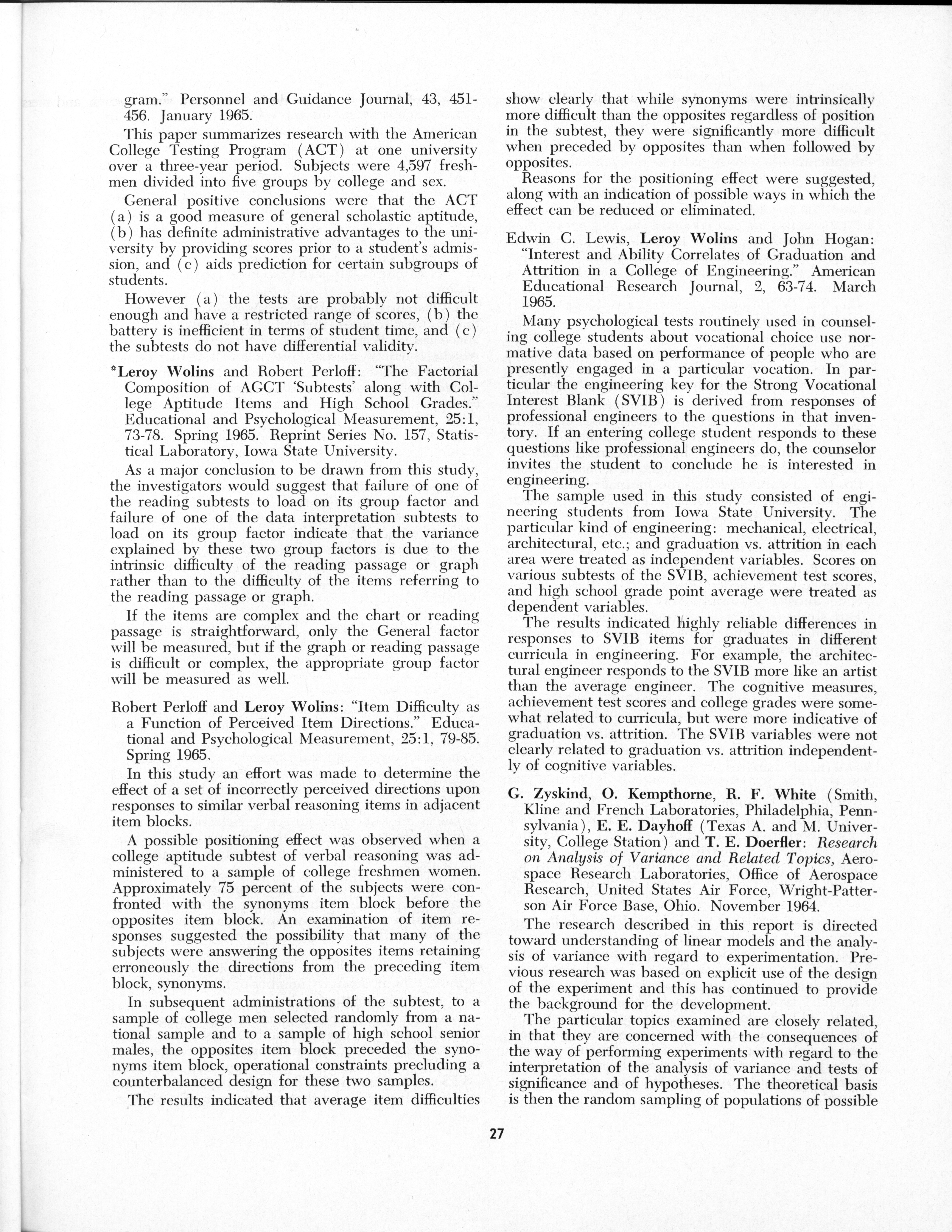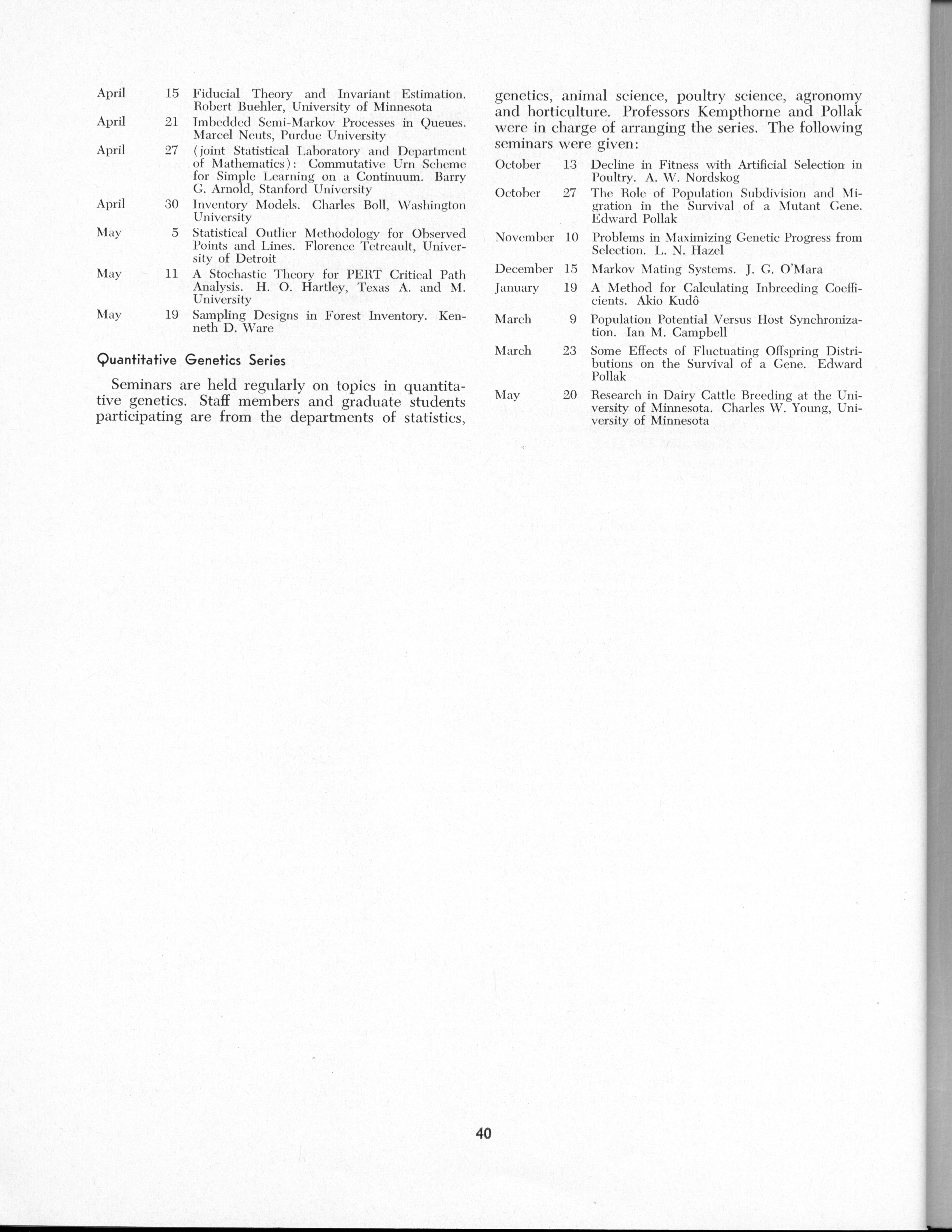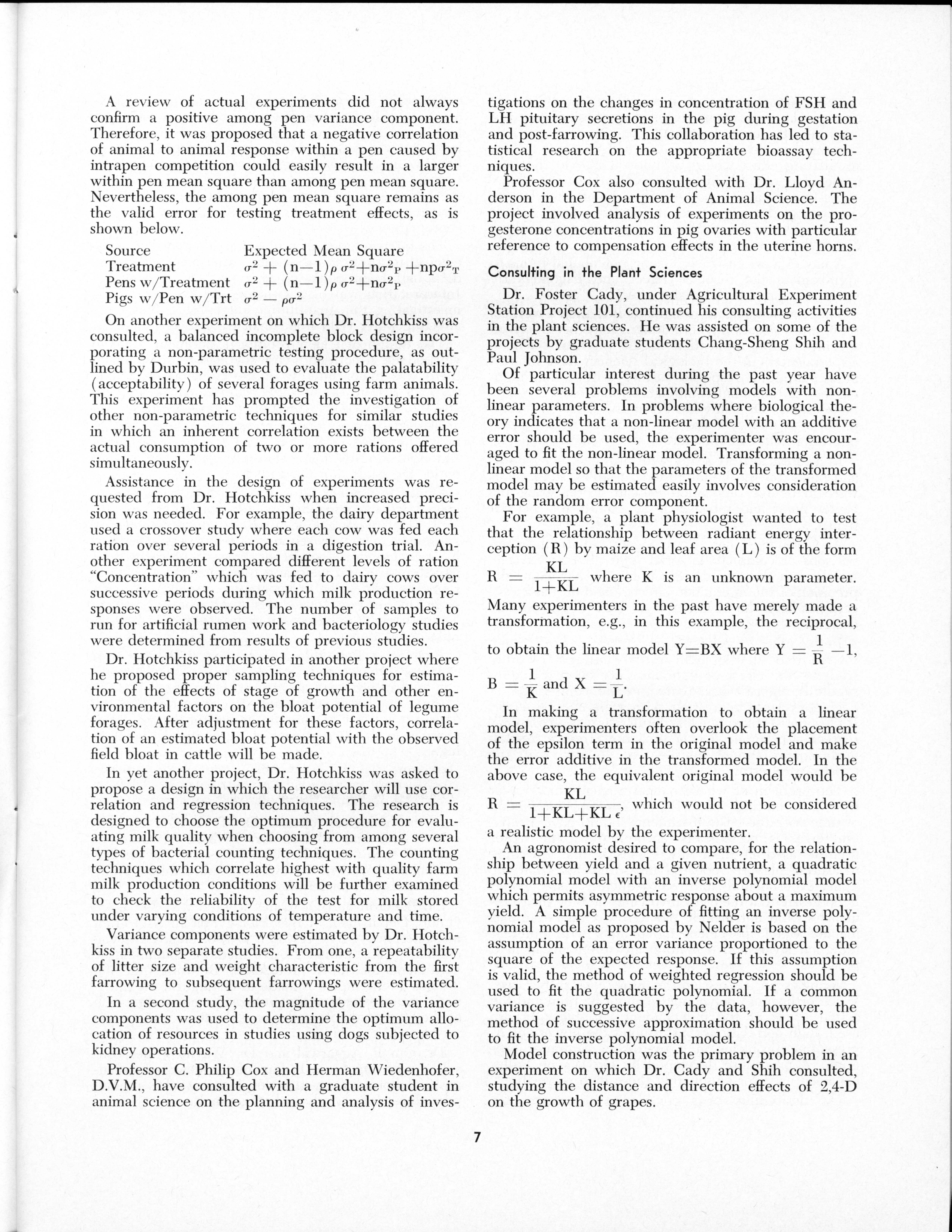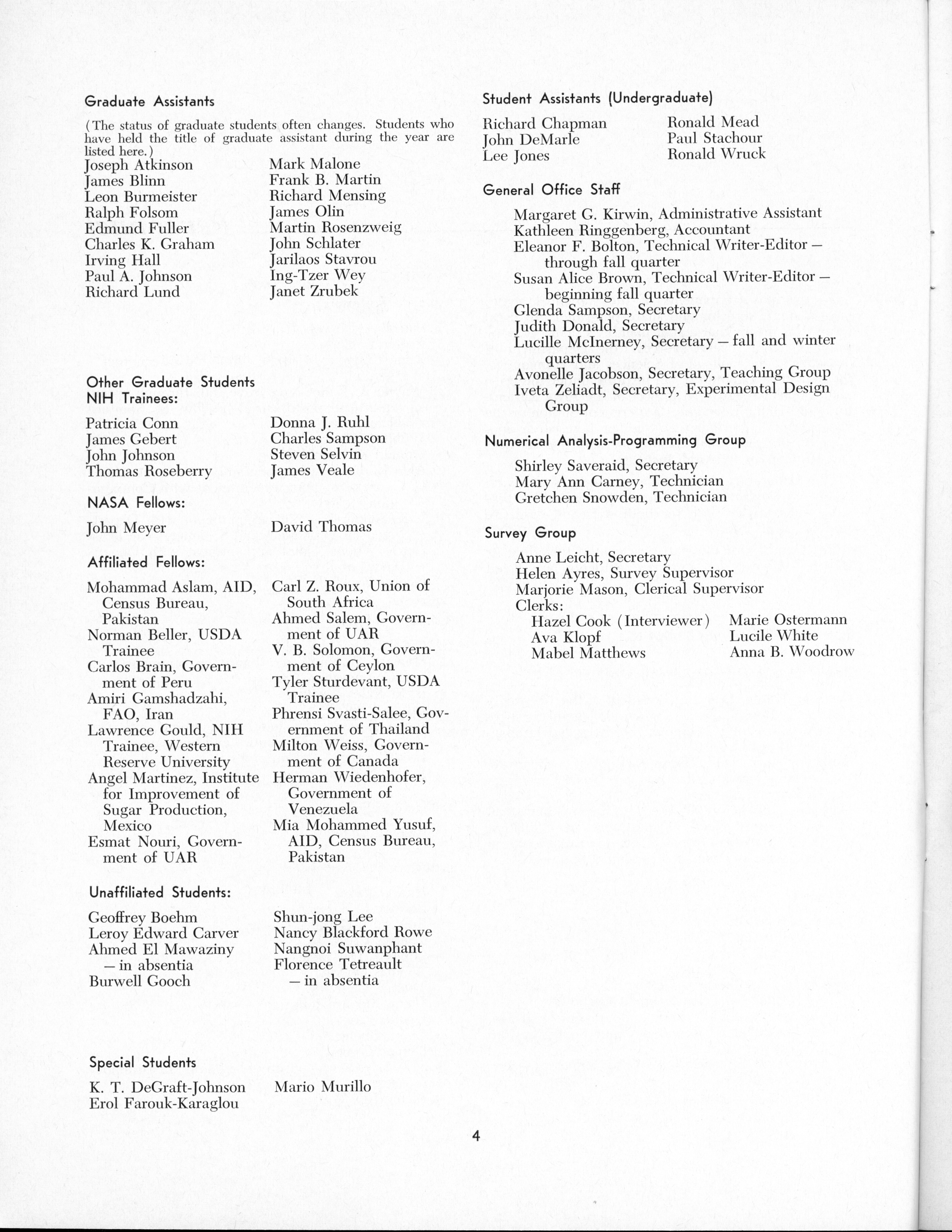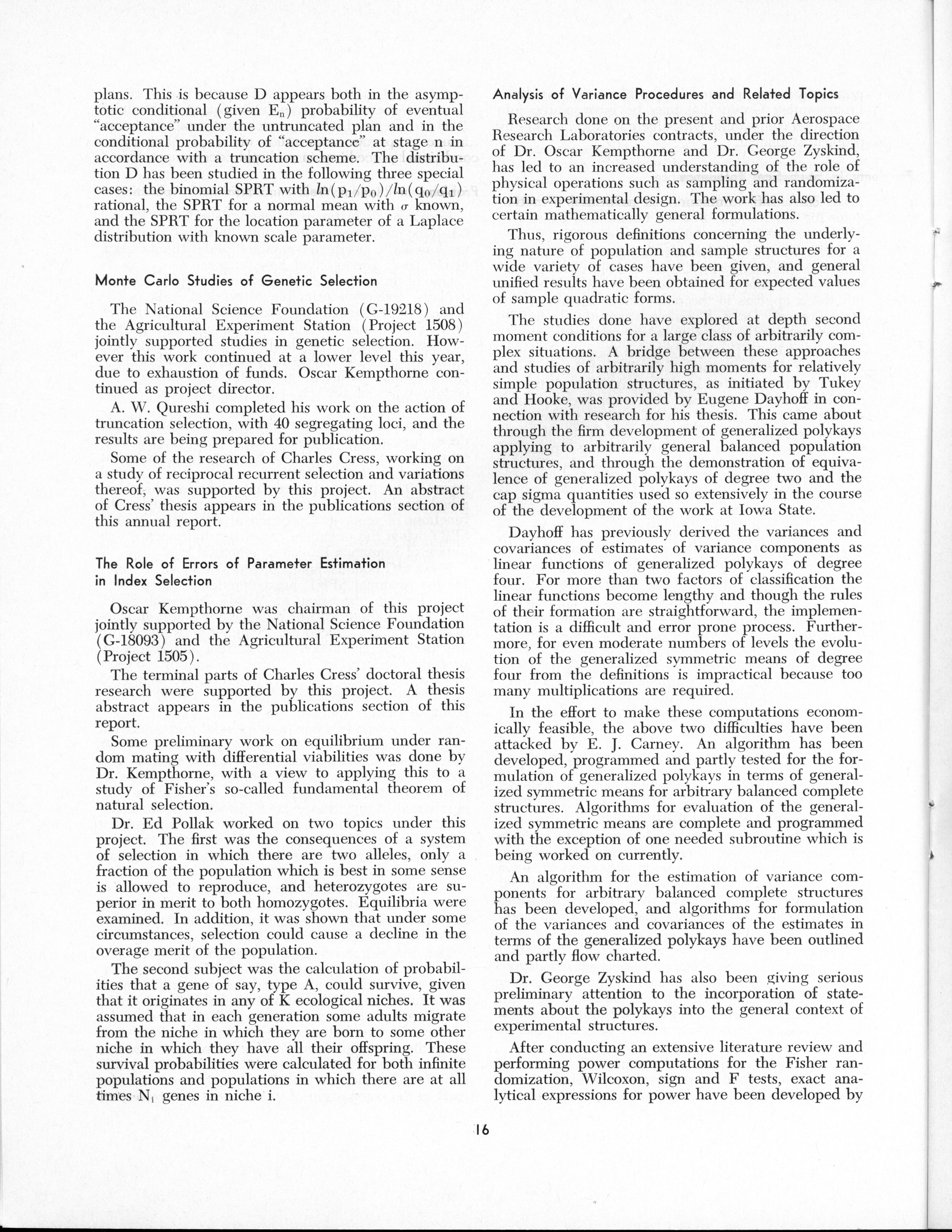 - "Statistical Laboratory Annual Report, July 1, 1964 to June 30, 1965", Iowa State University Statistical Laboratory Annual Reports, Iowa State University Library Digital Collections