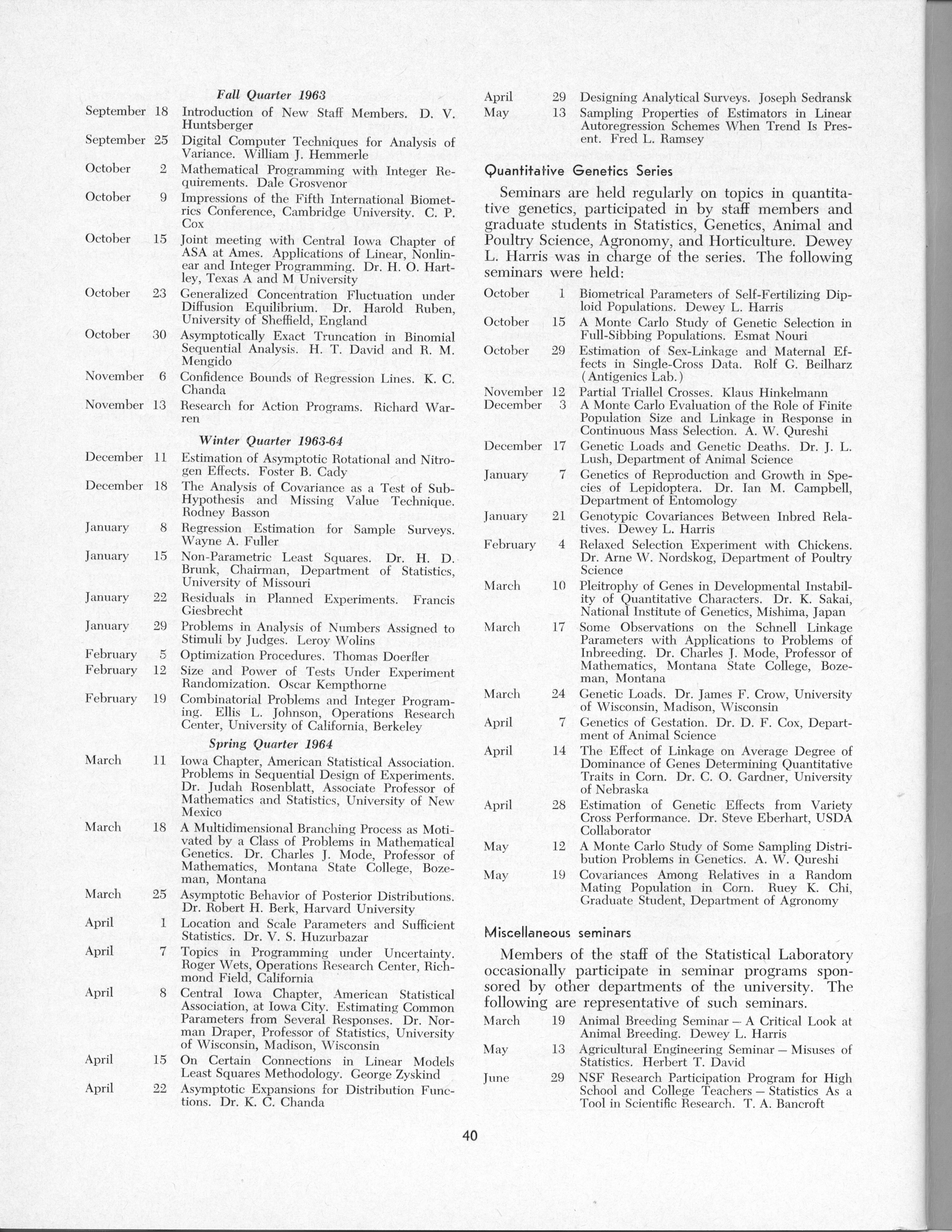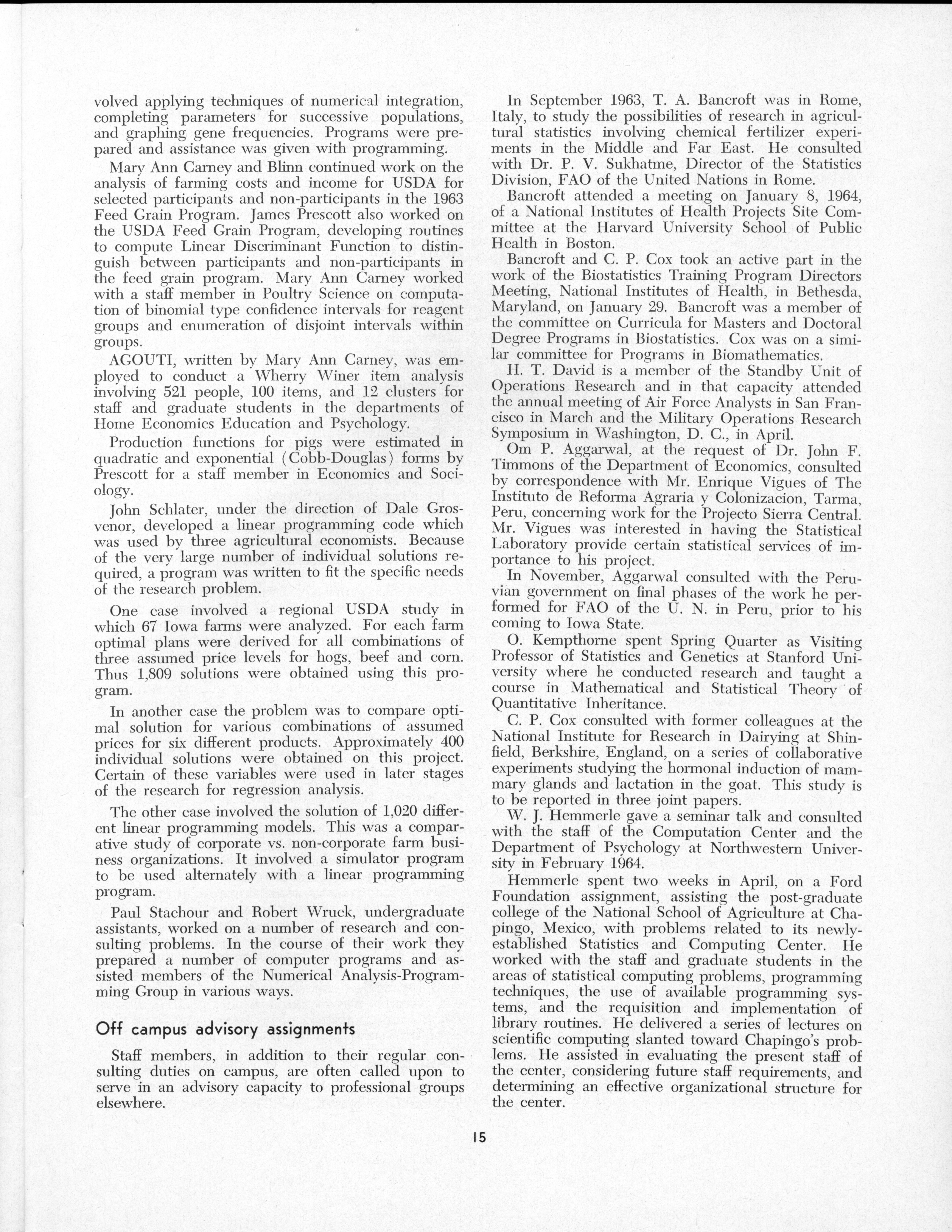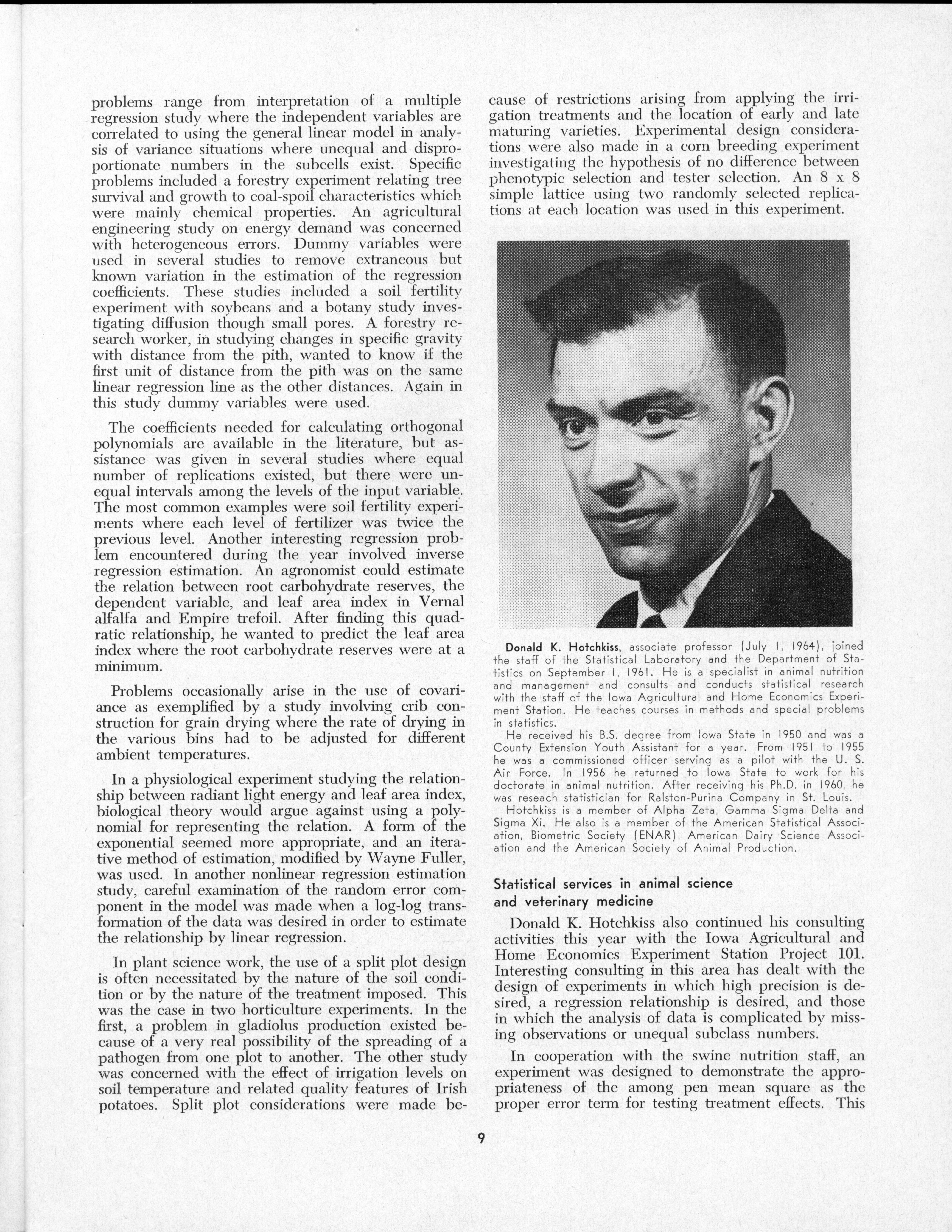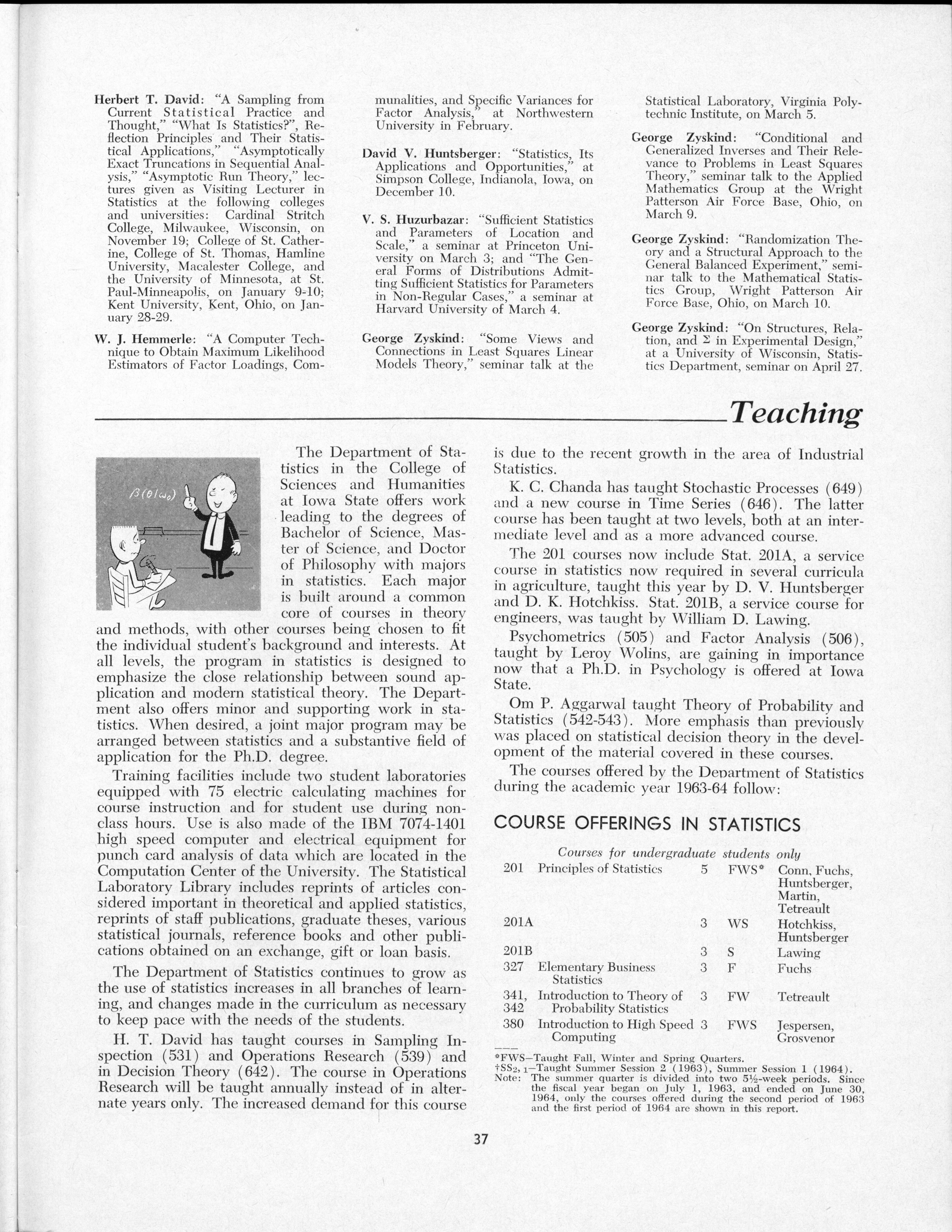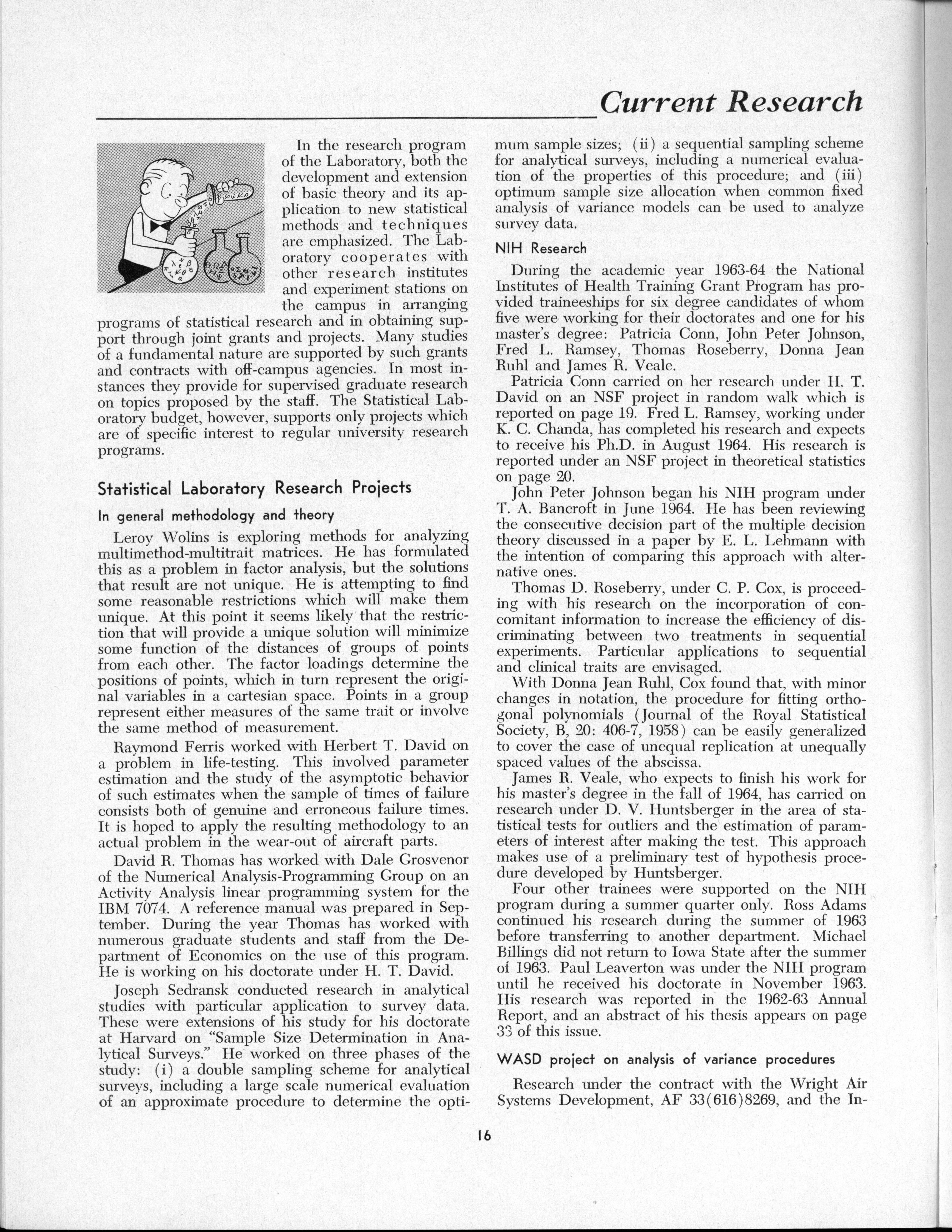 - "Statistical Laboratory Annual Report, July 1, 1963 to June 30, 1964", Iowa State University Statistical Laboratory Annual Reports, Iowa State University Library Digital Collections