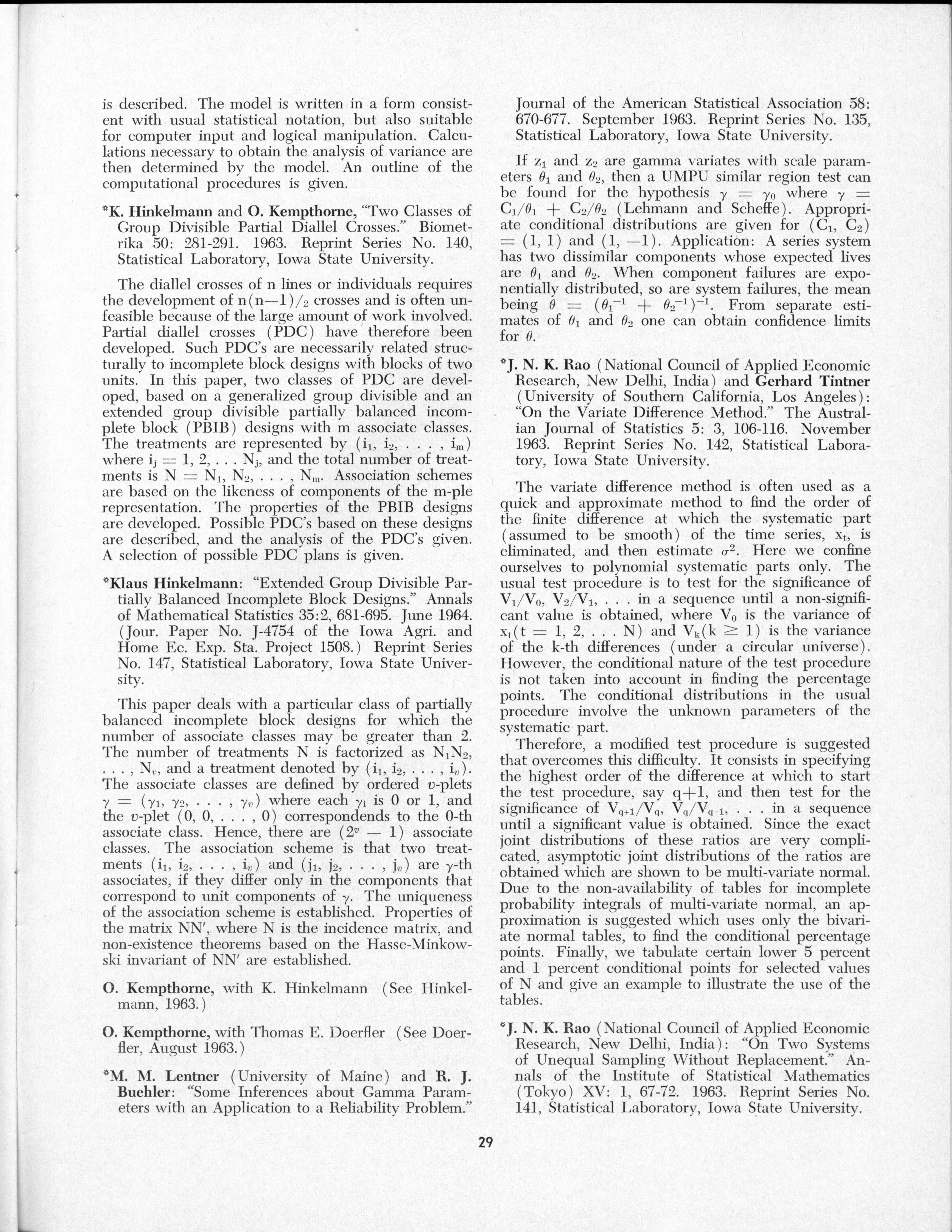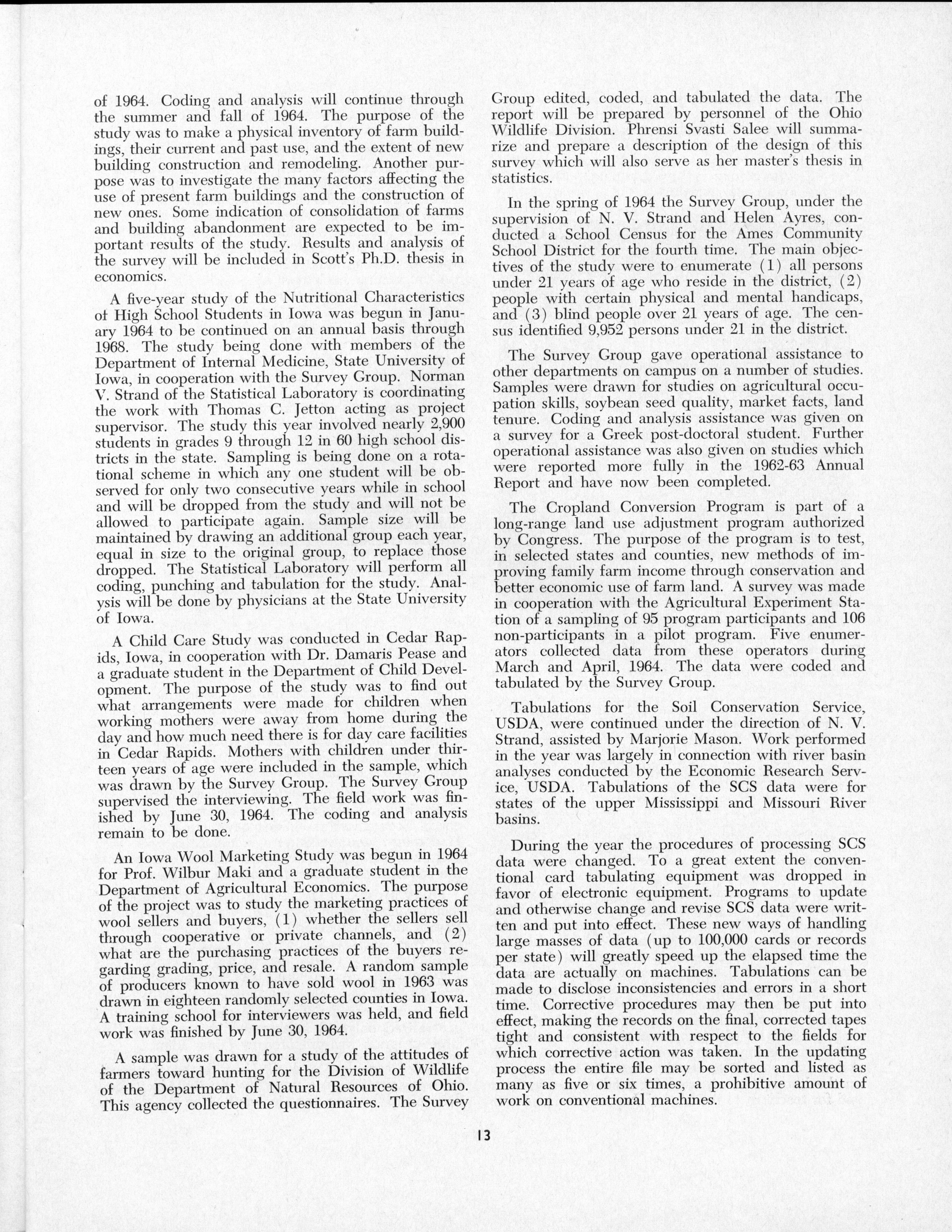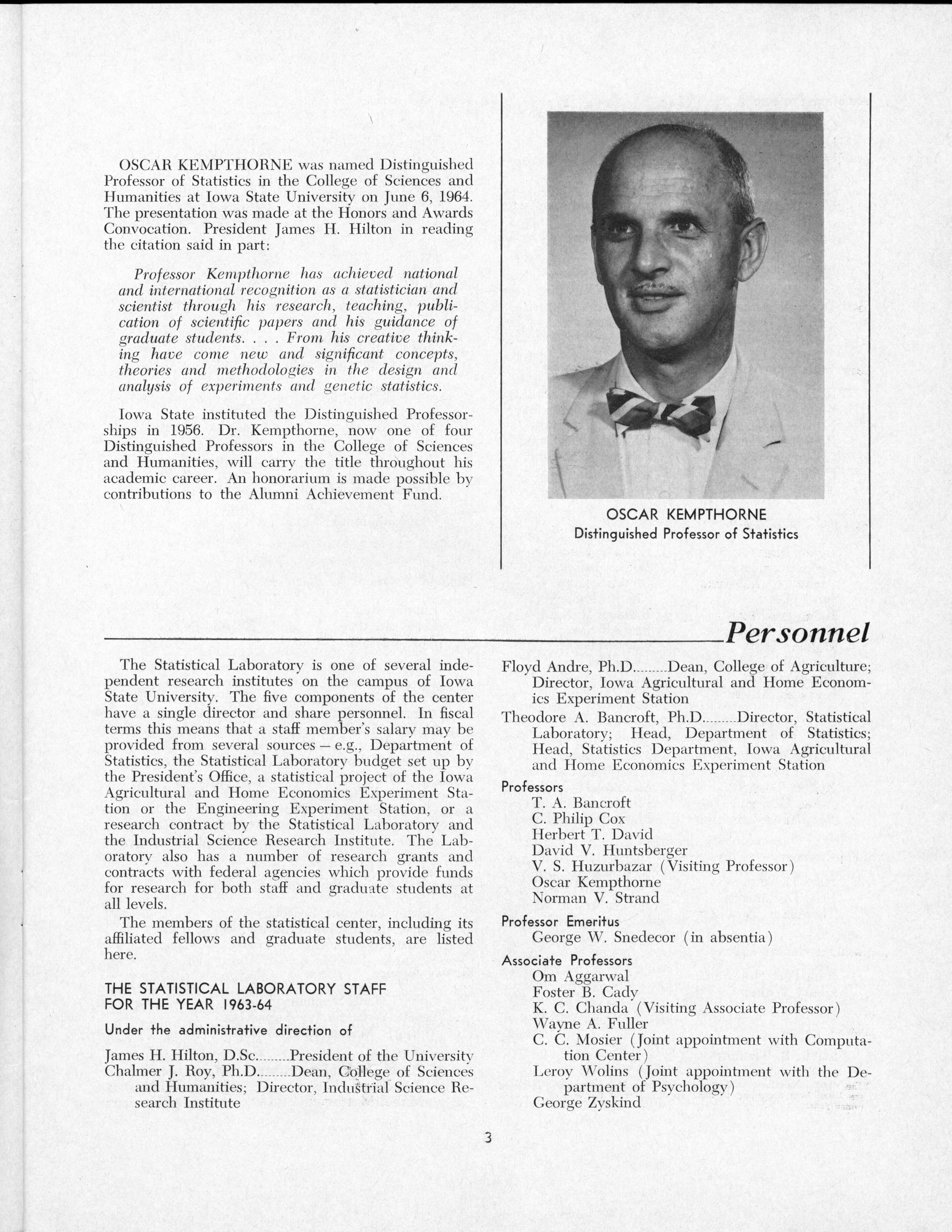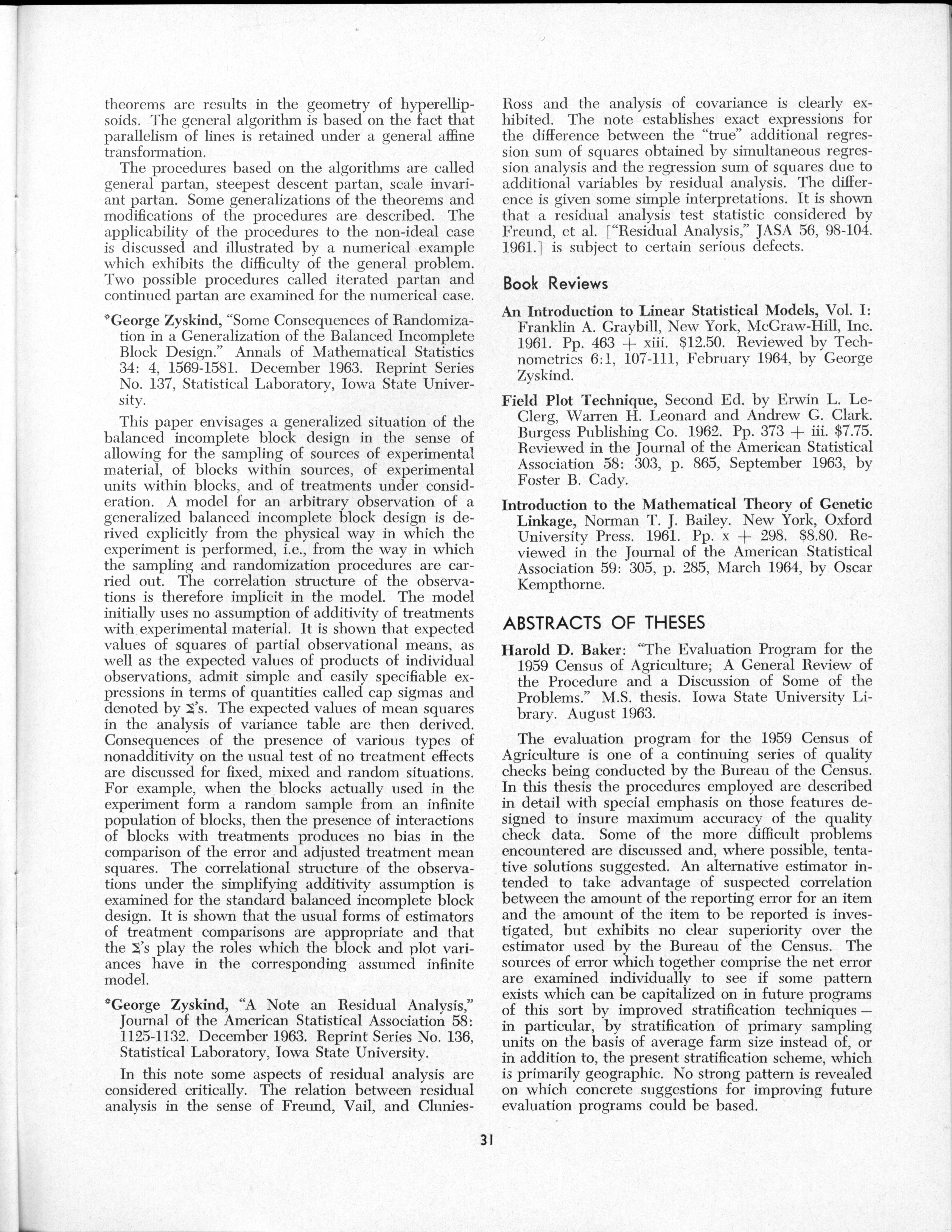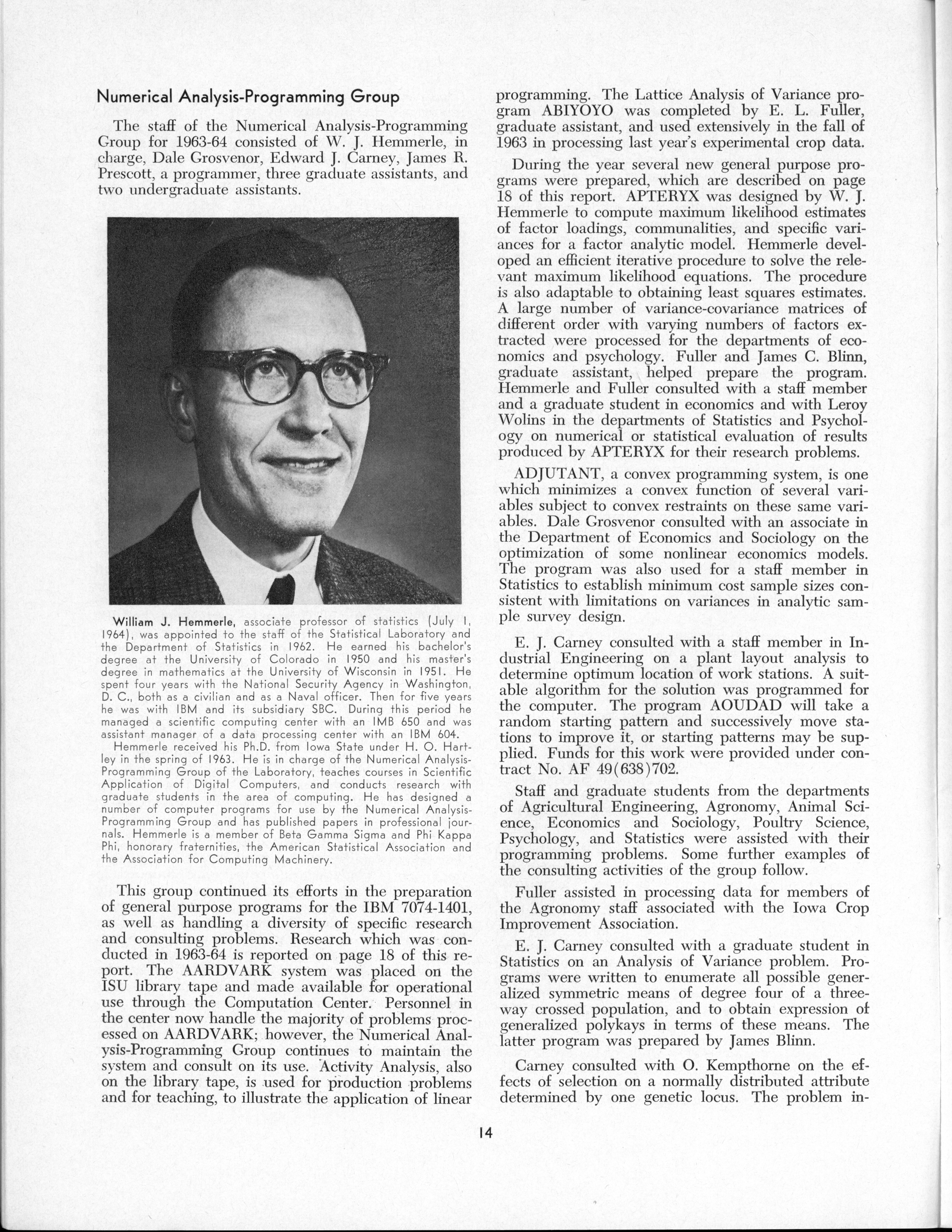 - "Statistical Laboratory Annual Report, July 1, 1963 to June 30, 1964", Iowa State University Statistical Laboratory Annual Reports, Iowa State University Library Digital Collections