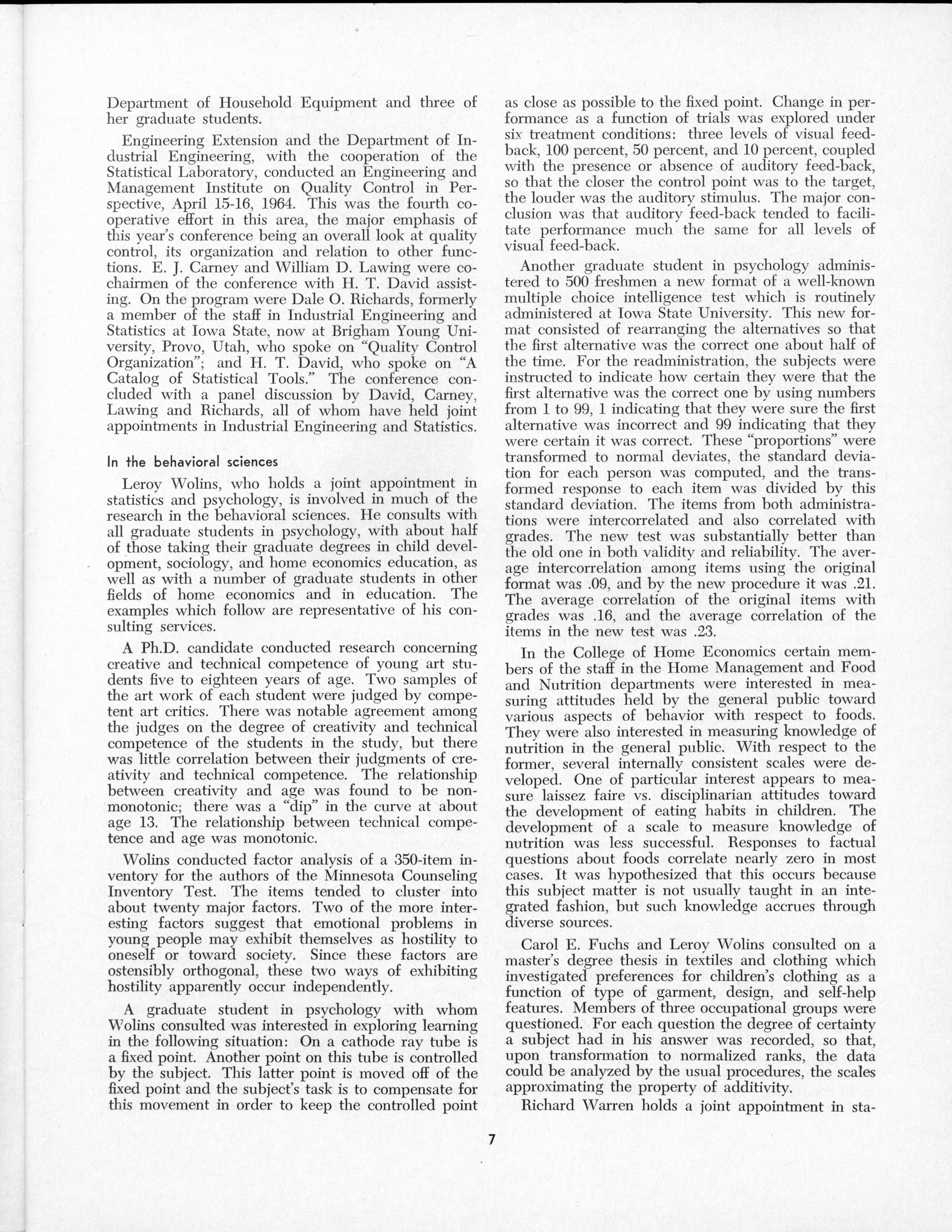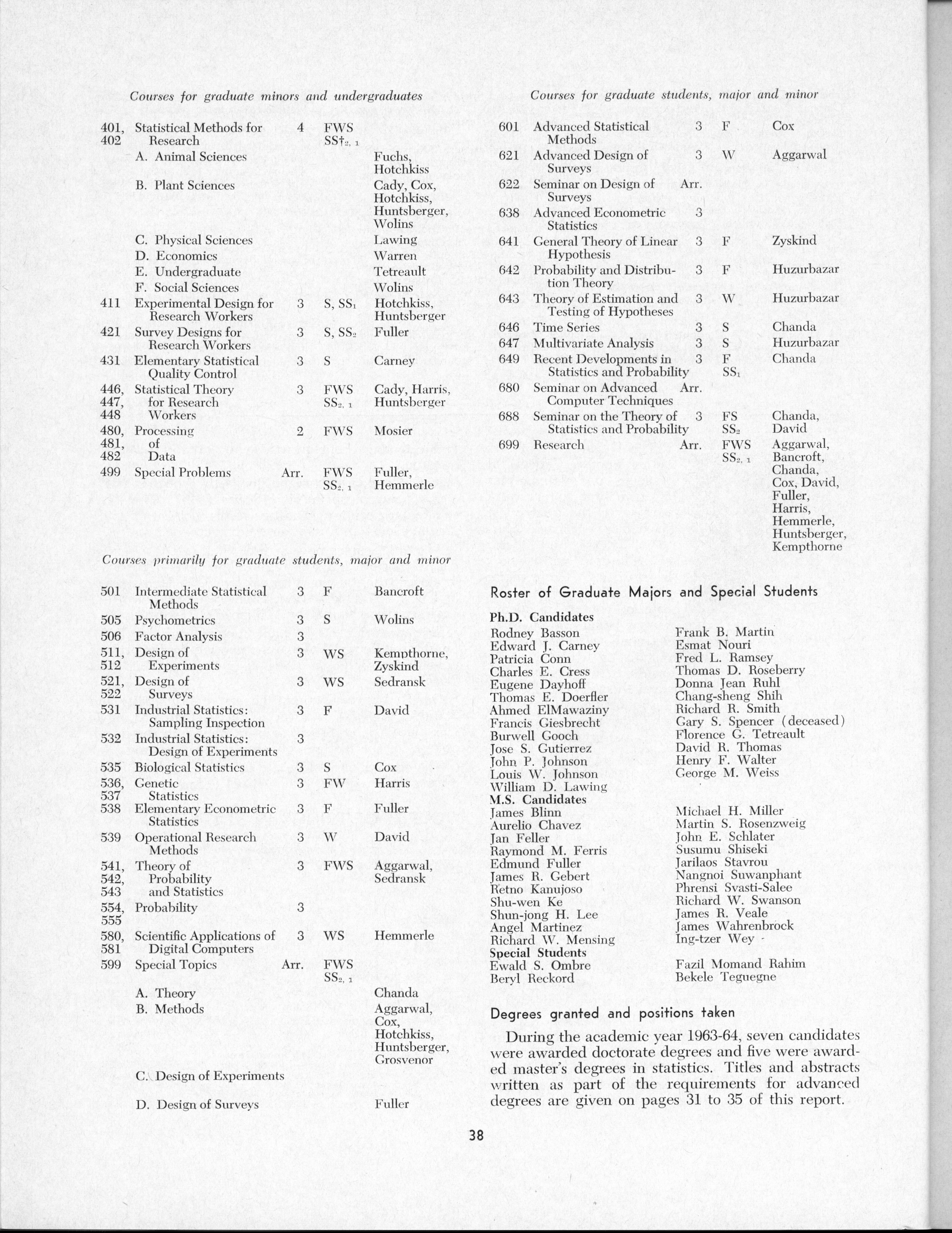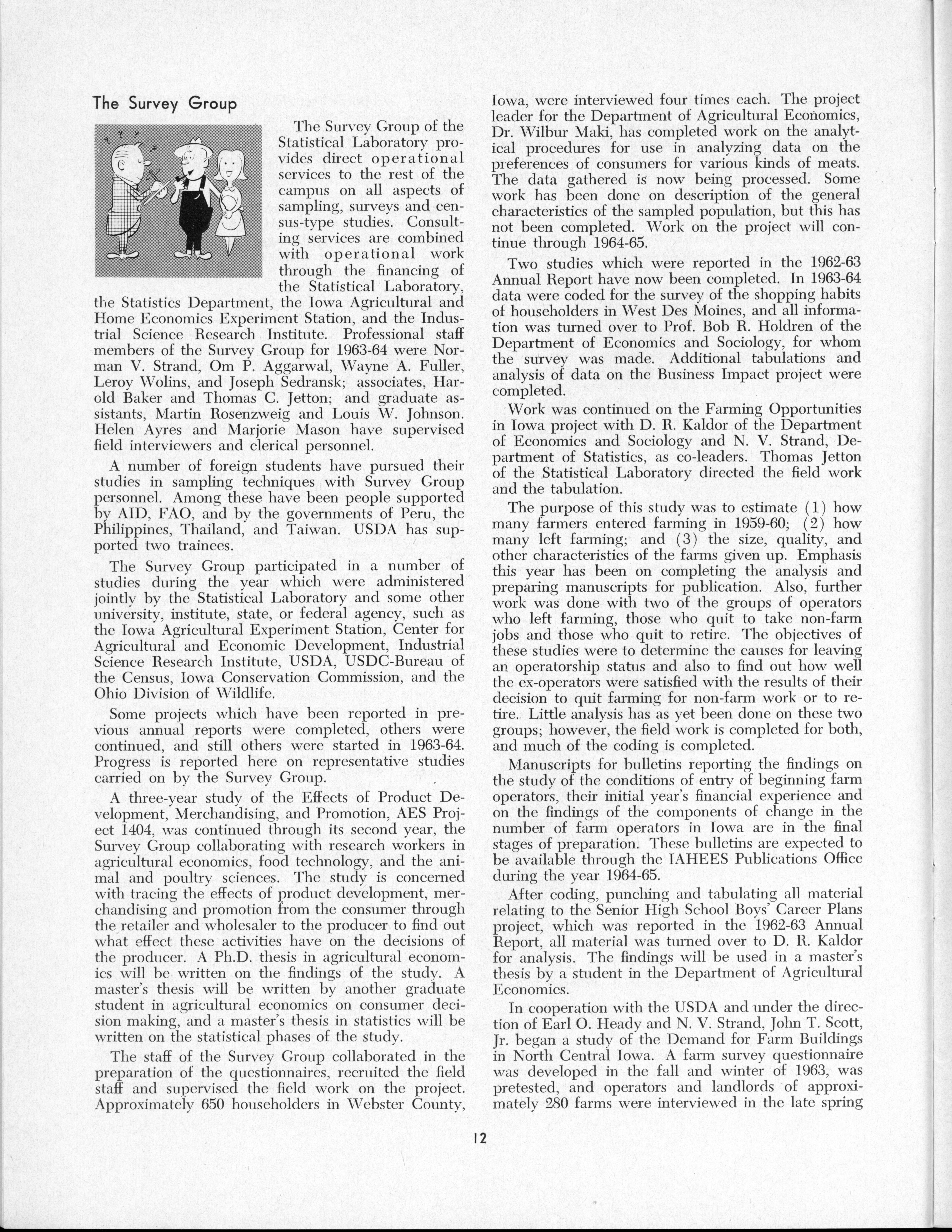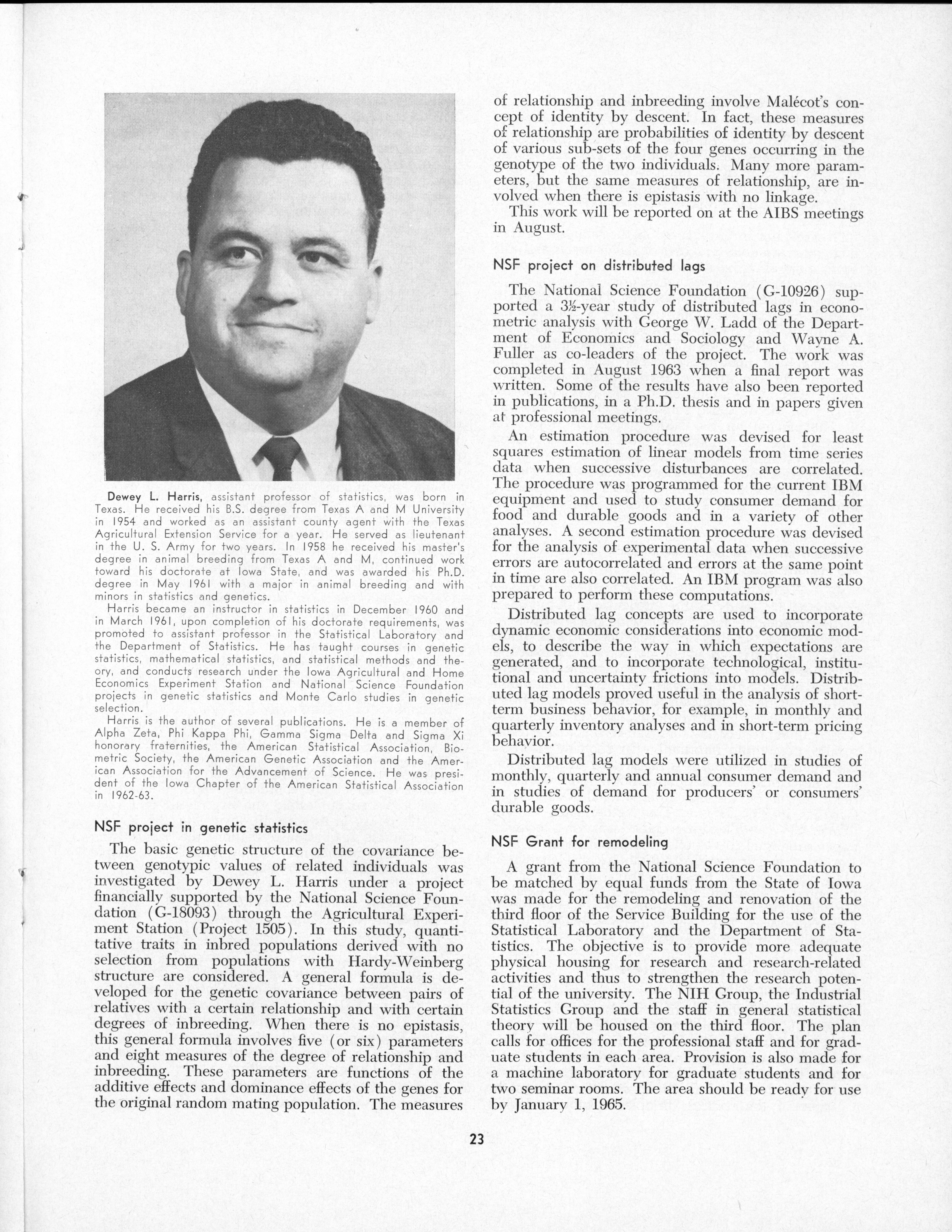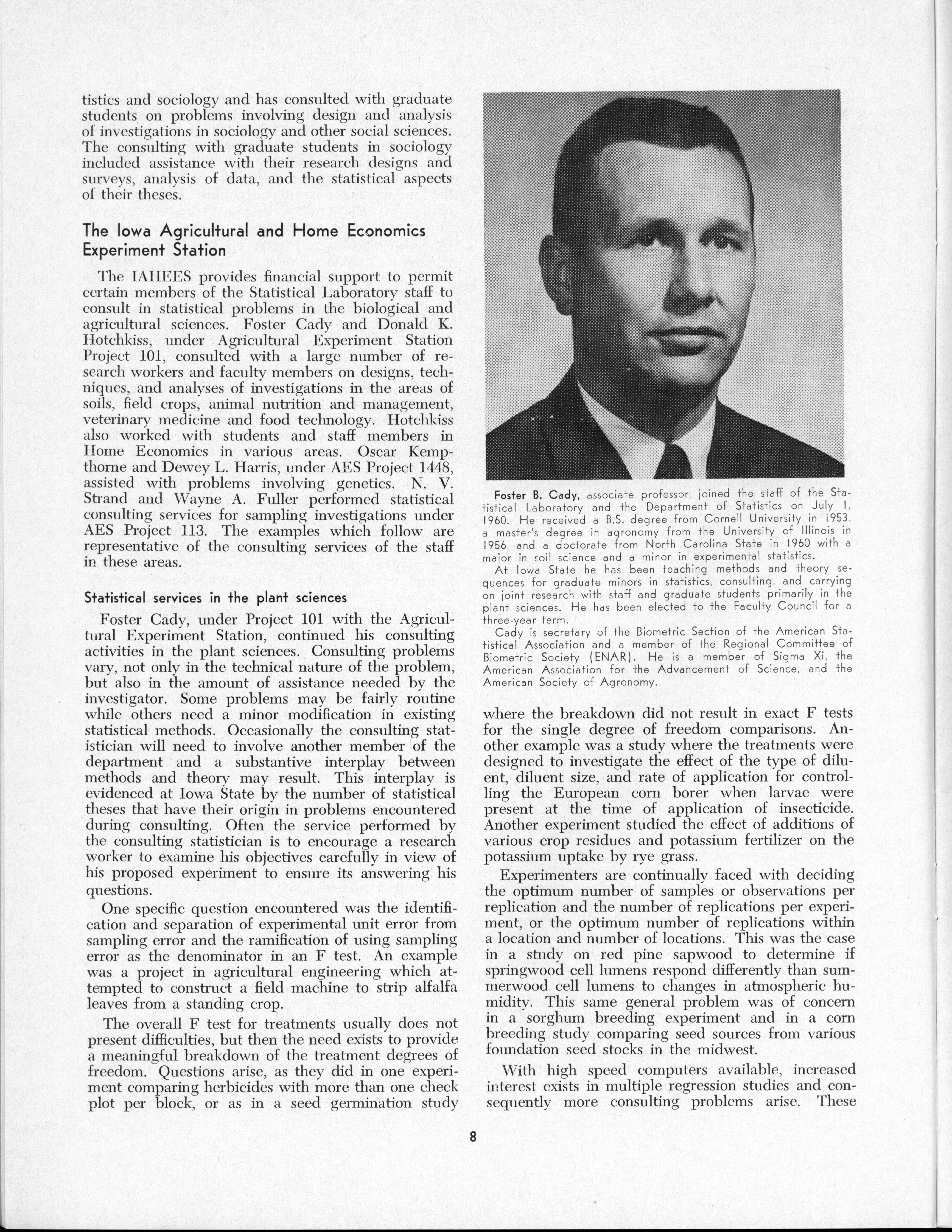 - "Statistical Laboratory Annual Report, July 1, 1963 to June 30, 1964", Iowa State University Statistical Laboratory Annual Reports, Iowa State University Library Digital Collections