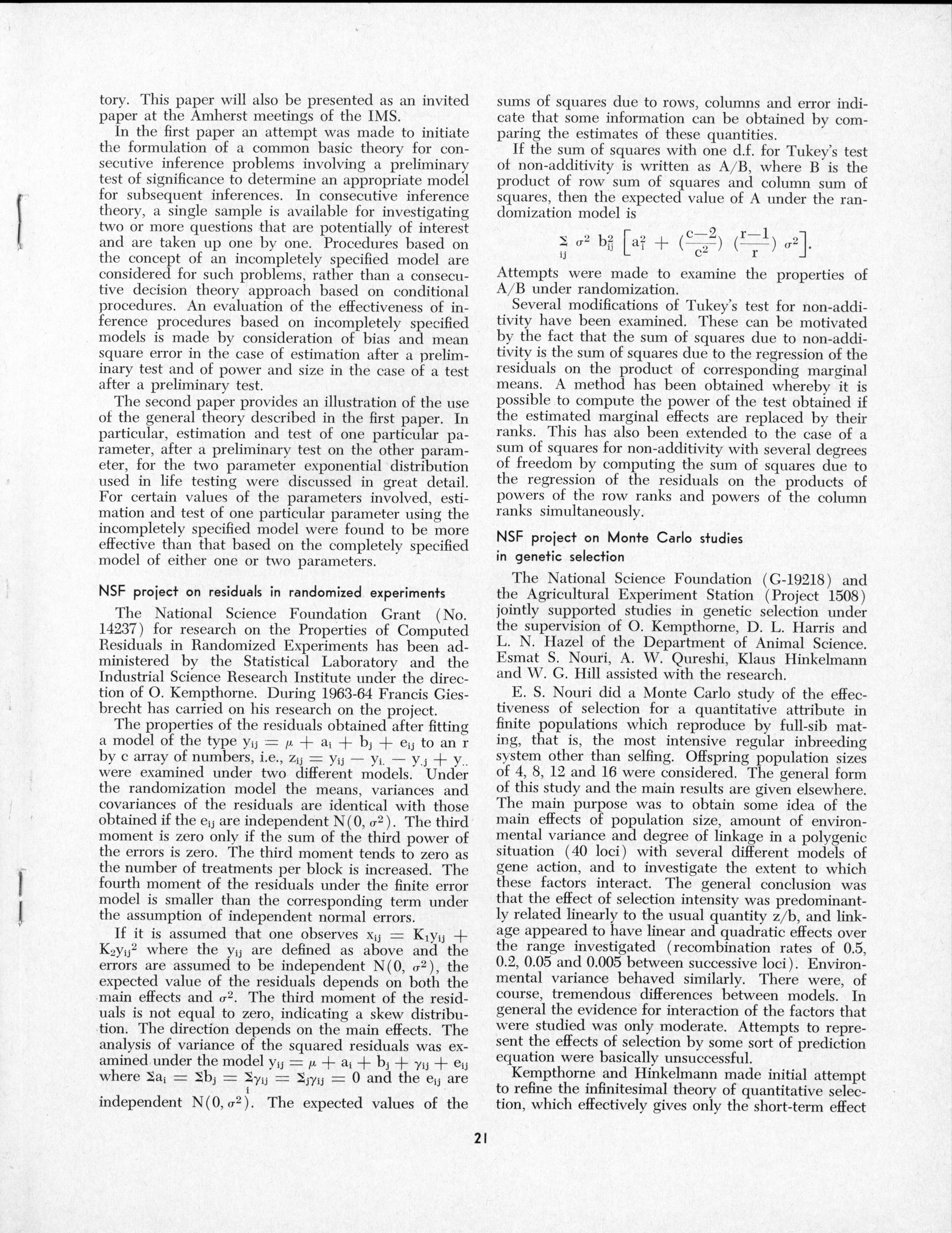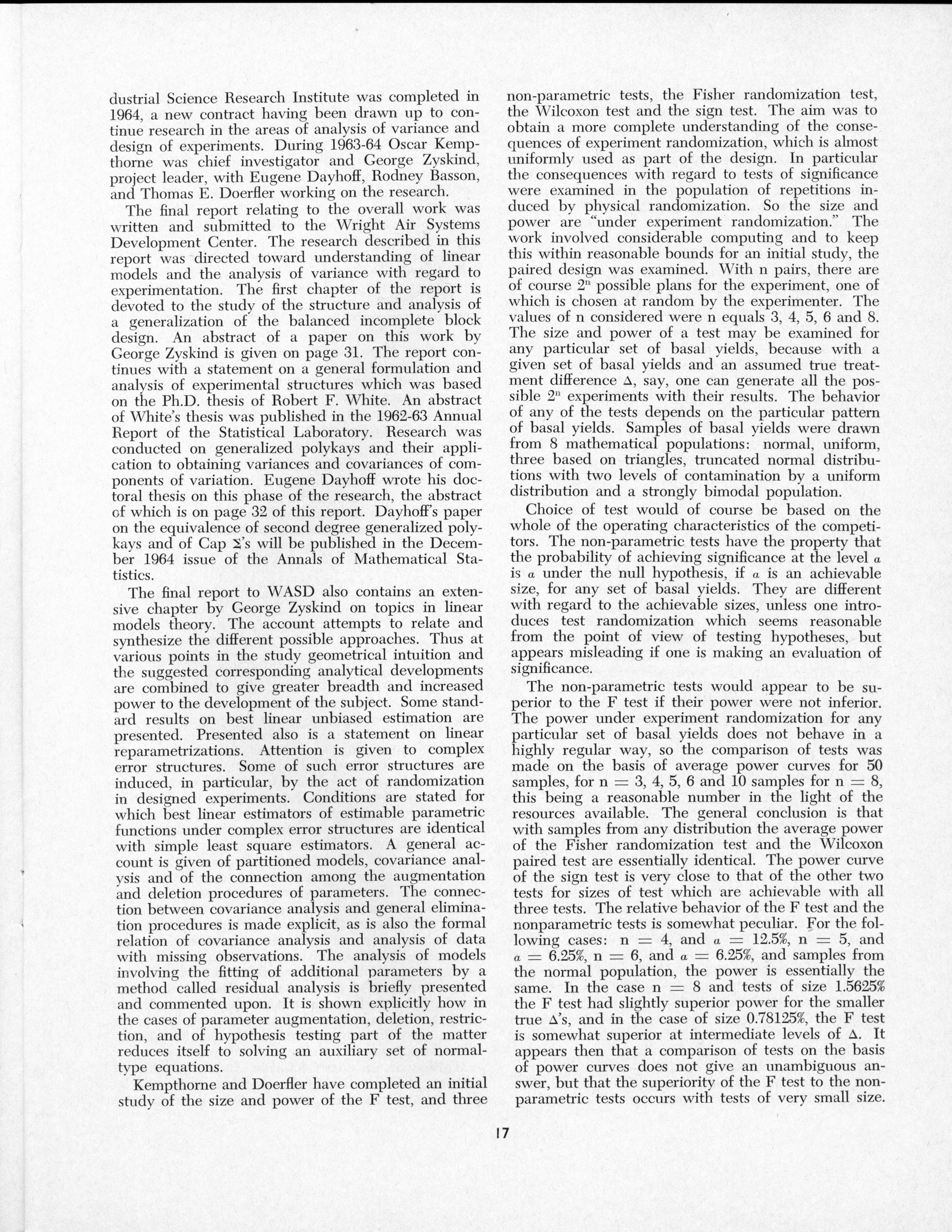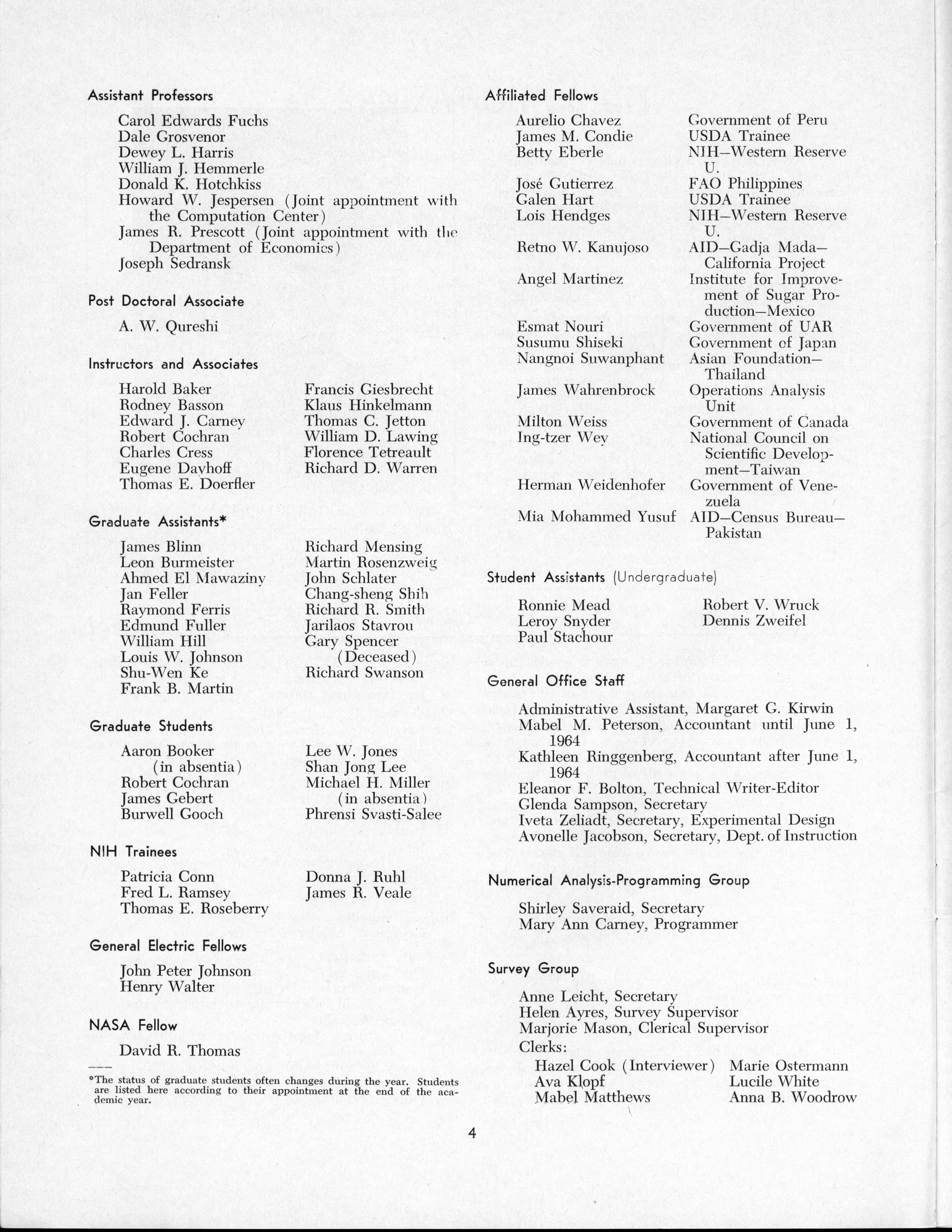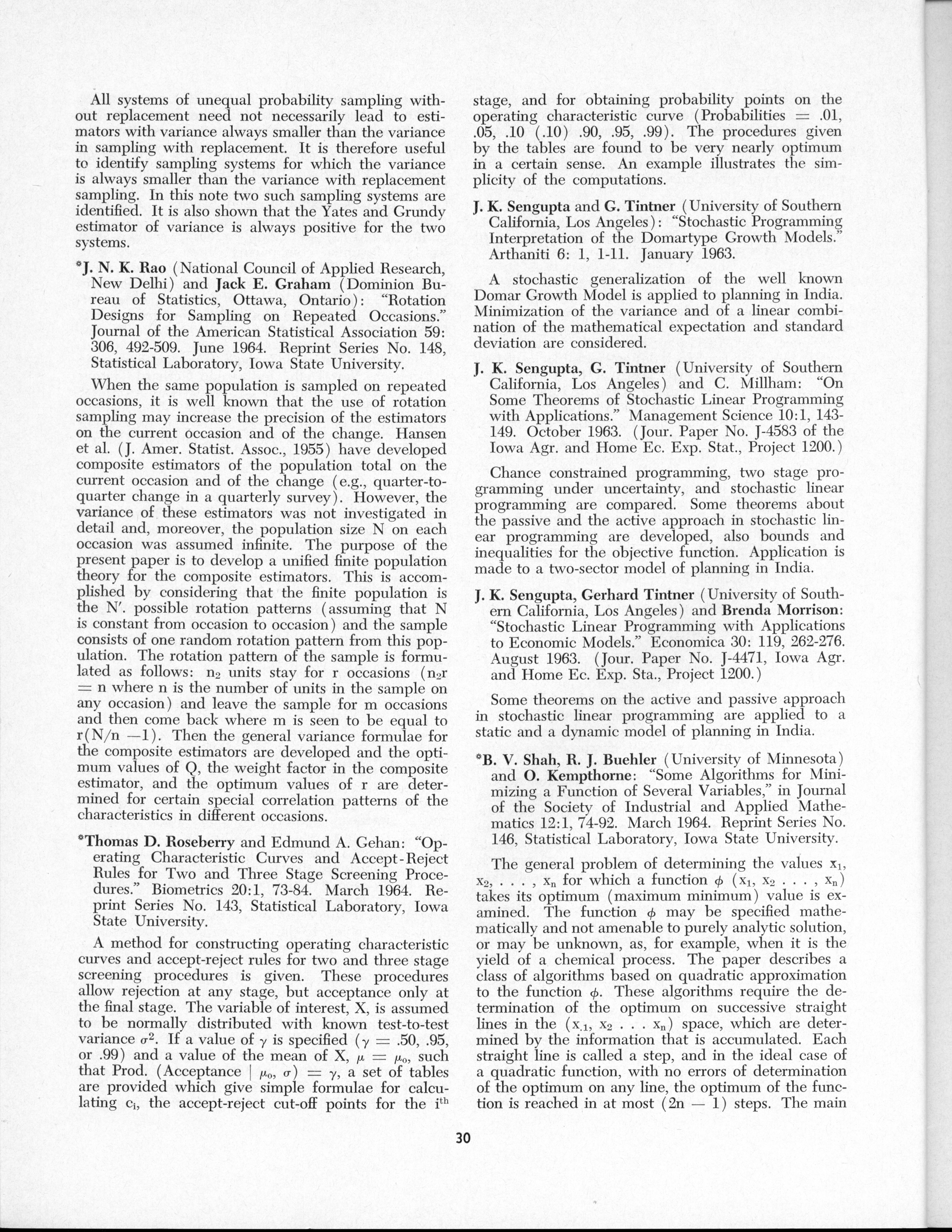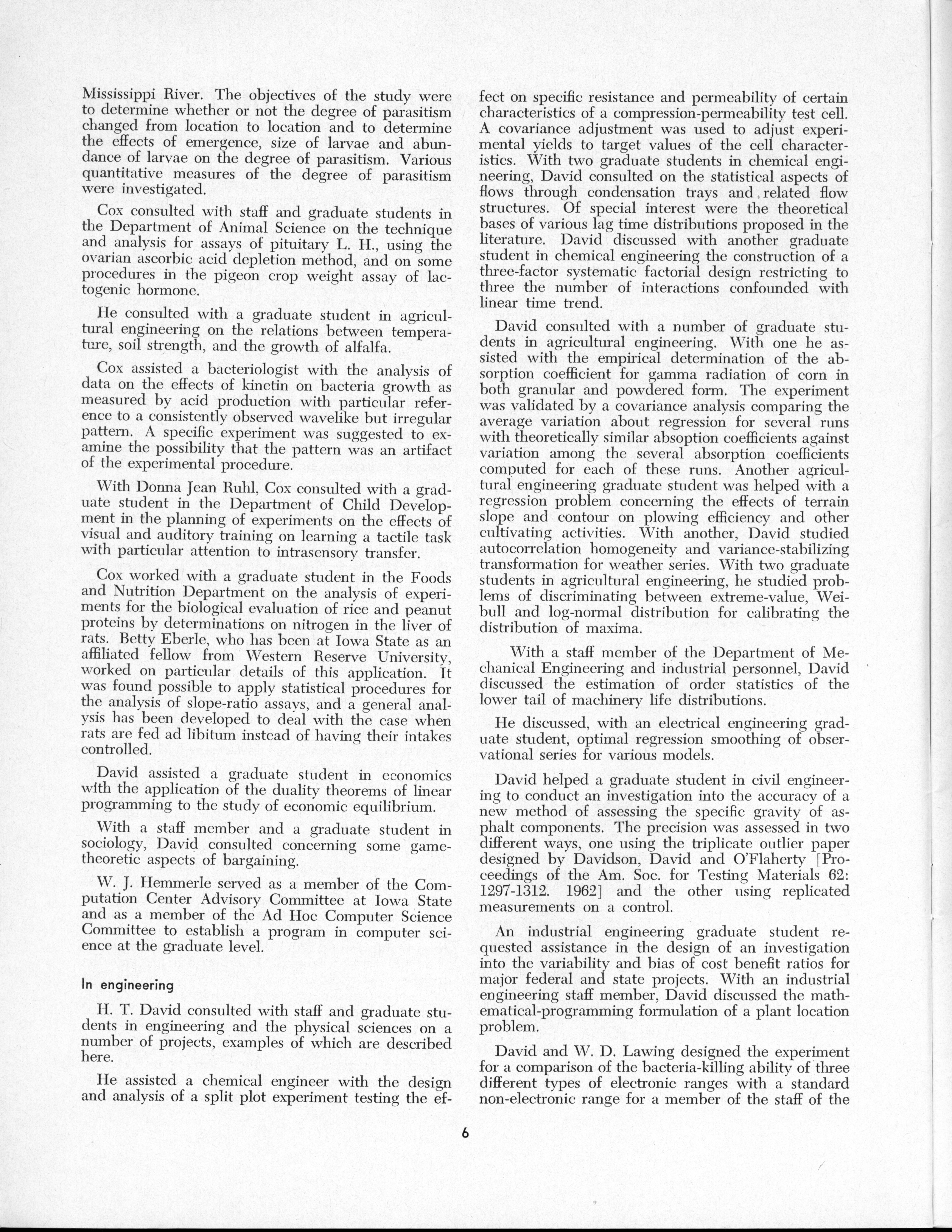 - "Statistical Laboratory Annual Report, July 1, 1963 to June 30, 1964", Iowa State University Statistical Laboratory Annual Reports, Iowa State University Library Digital Collections