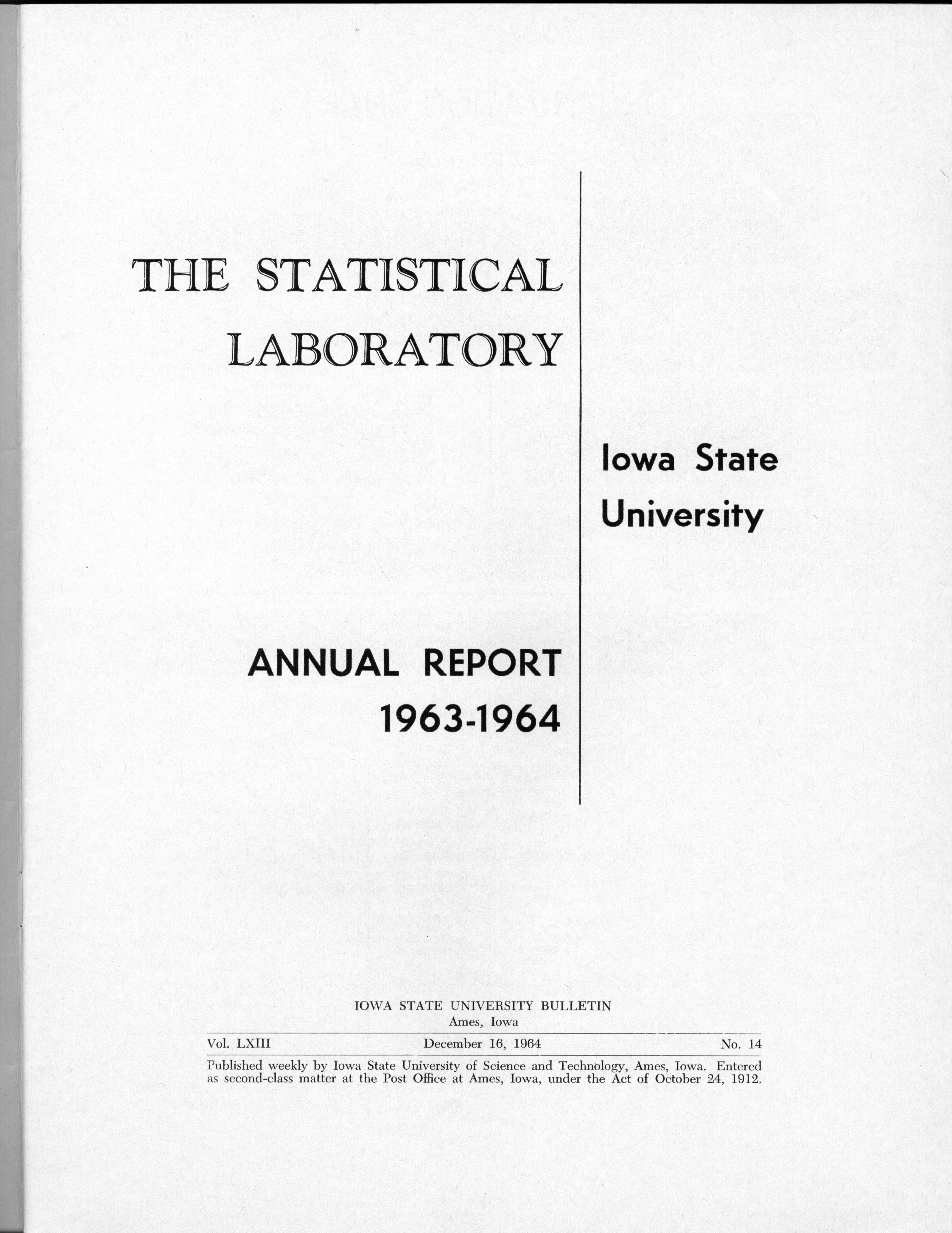 Statistical Laboratory Annual Report, July 1, 1963 to June 30, 1964 Item Info