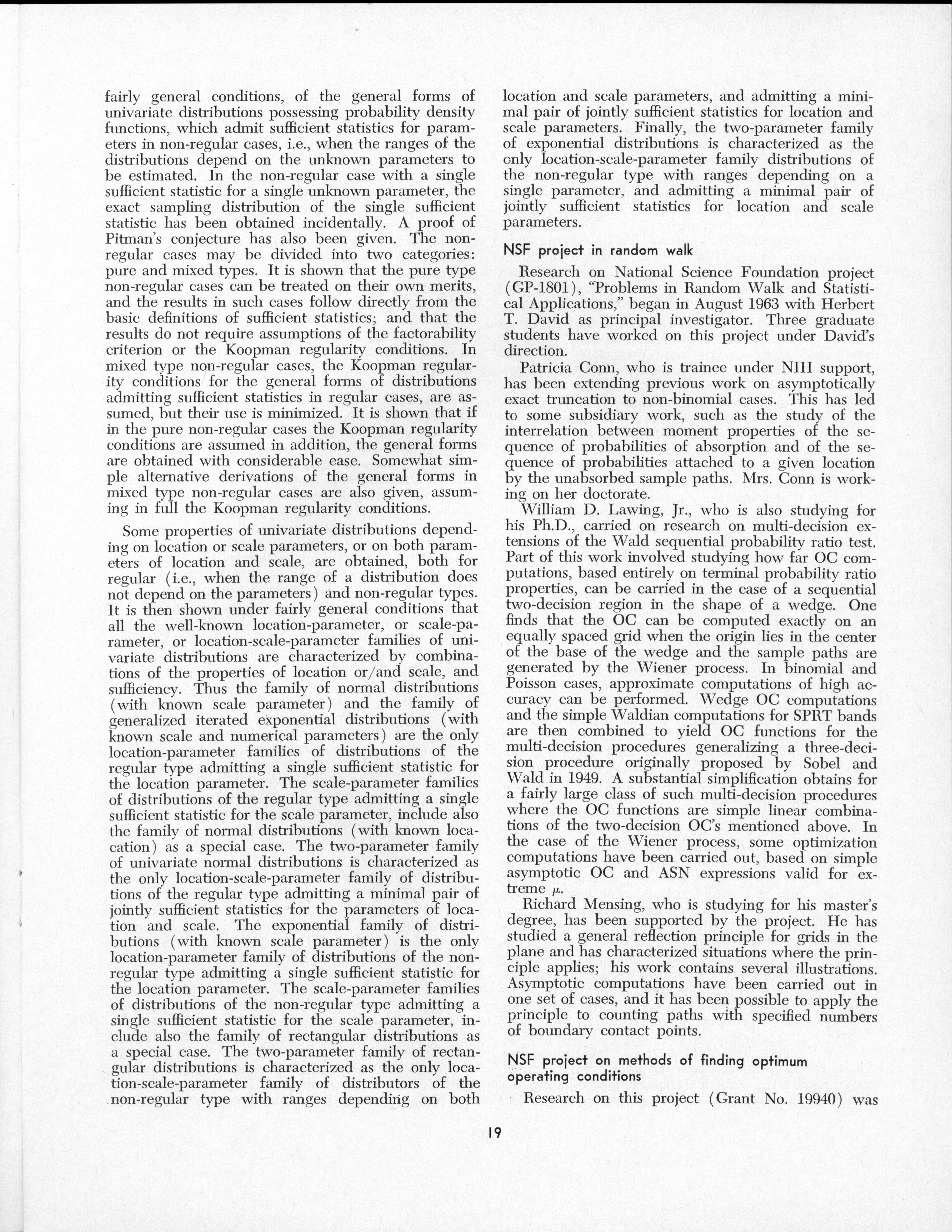 - Statistical Laboratory Annual Report, July 1, 1963 to June 30, 1964