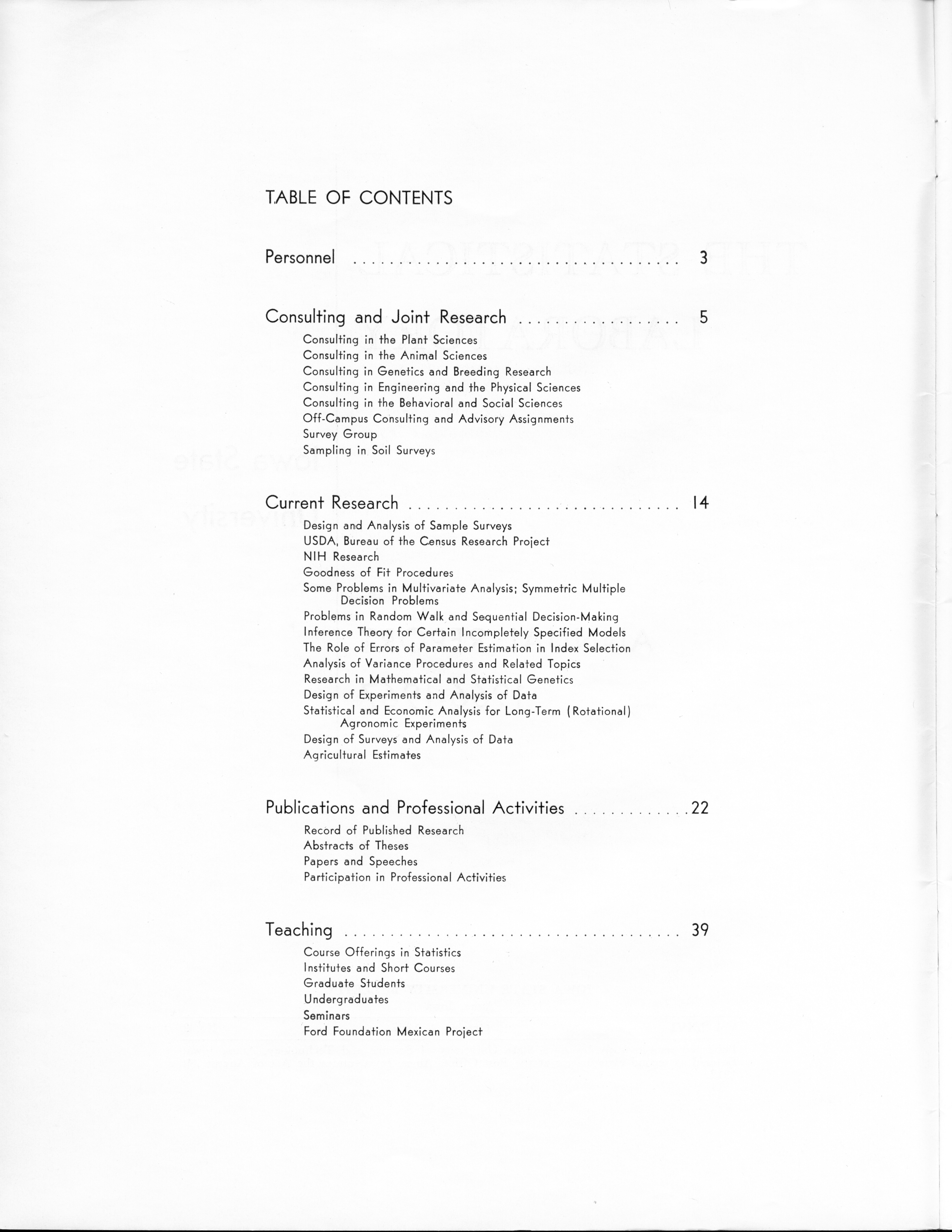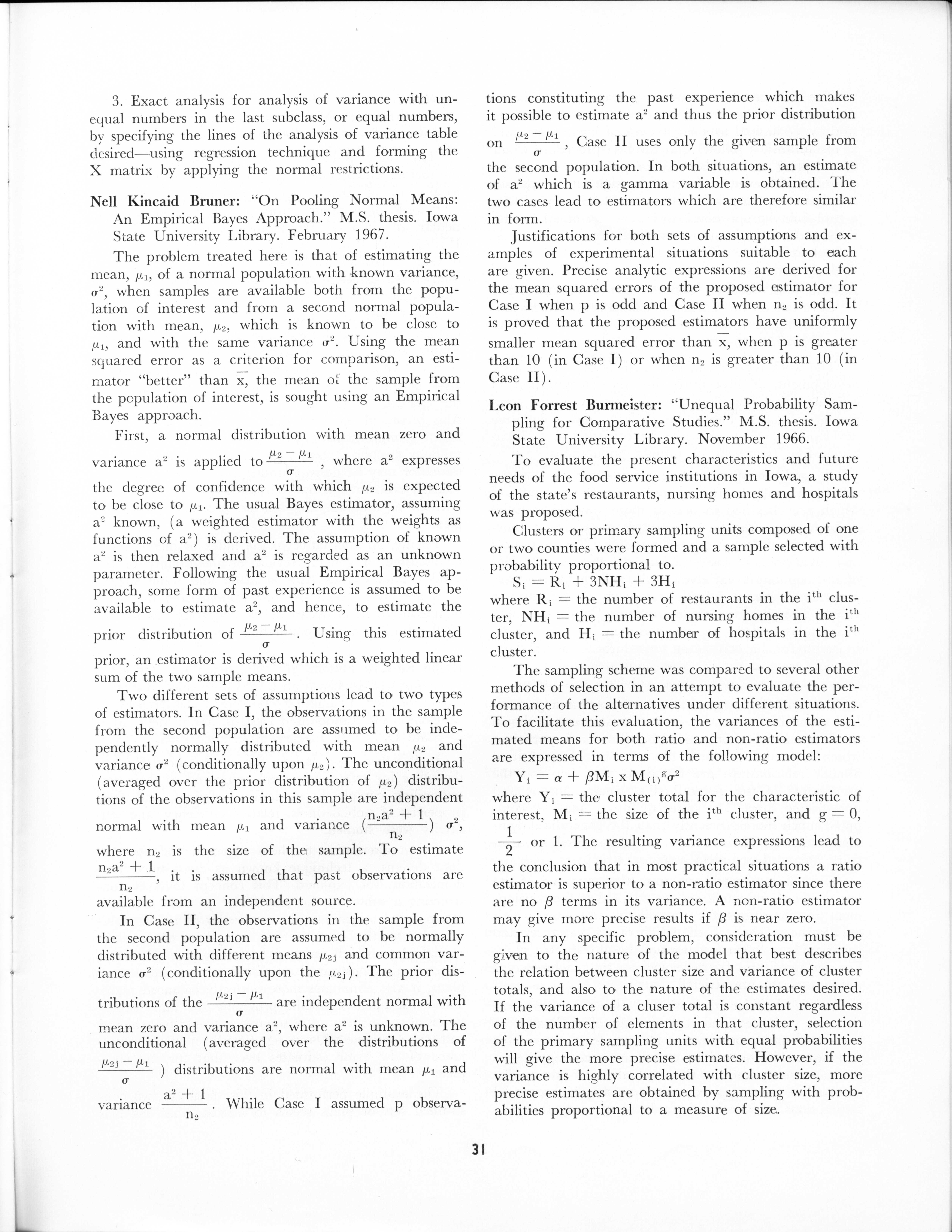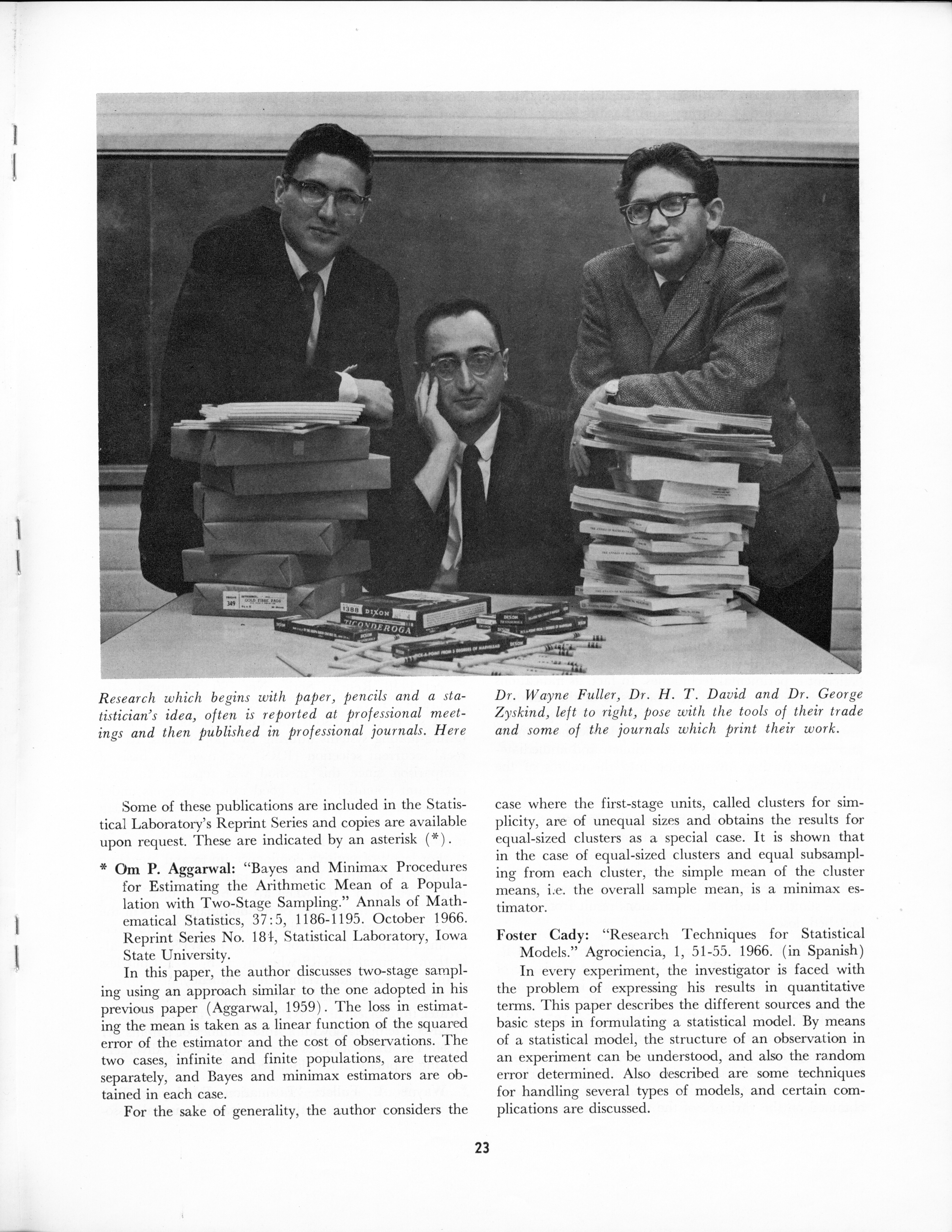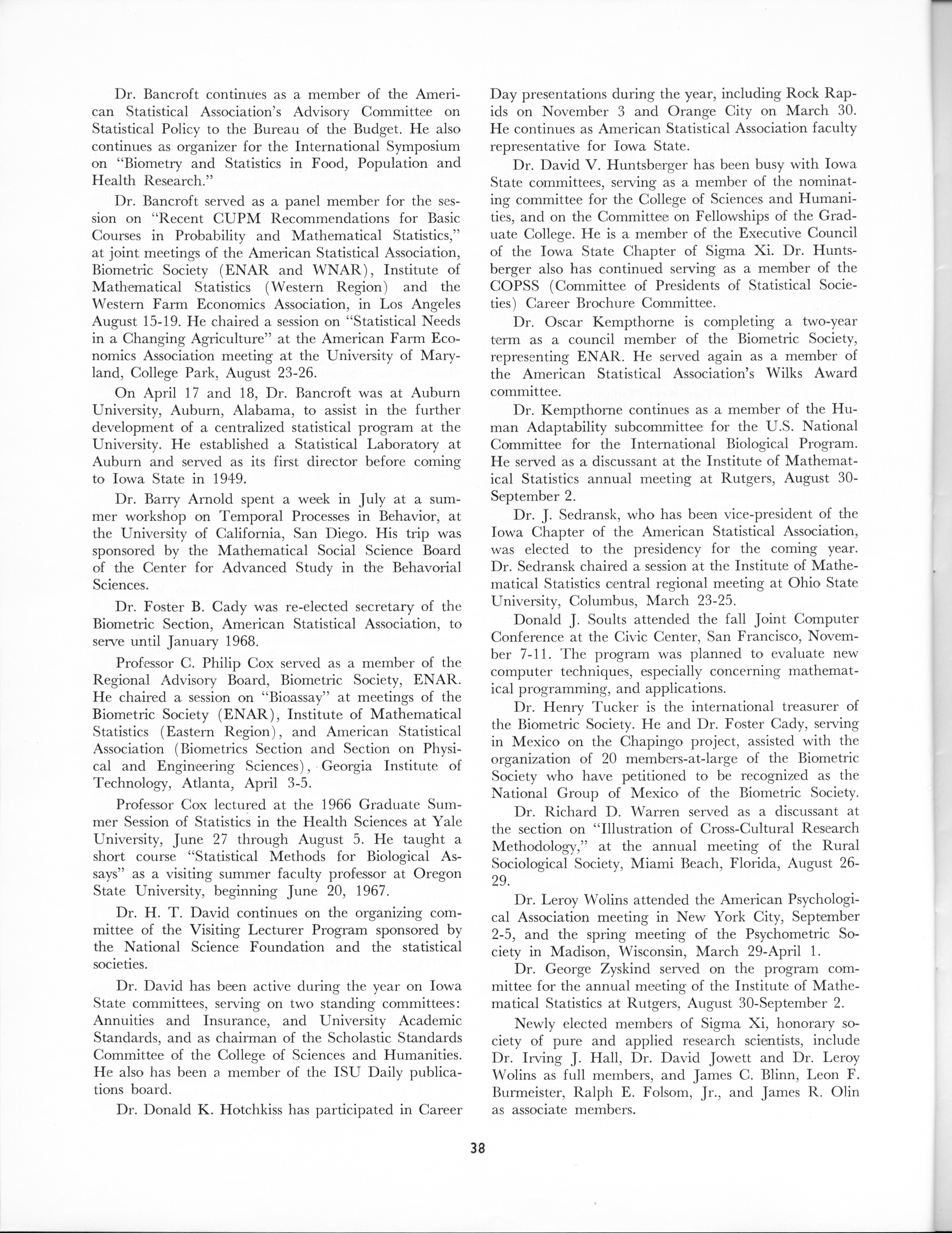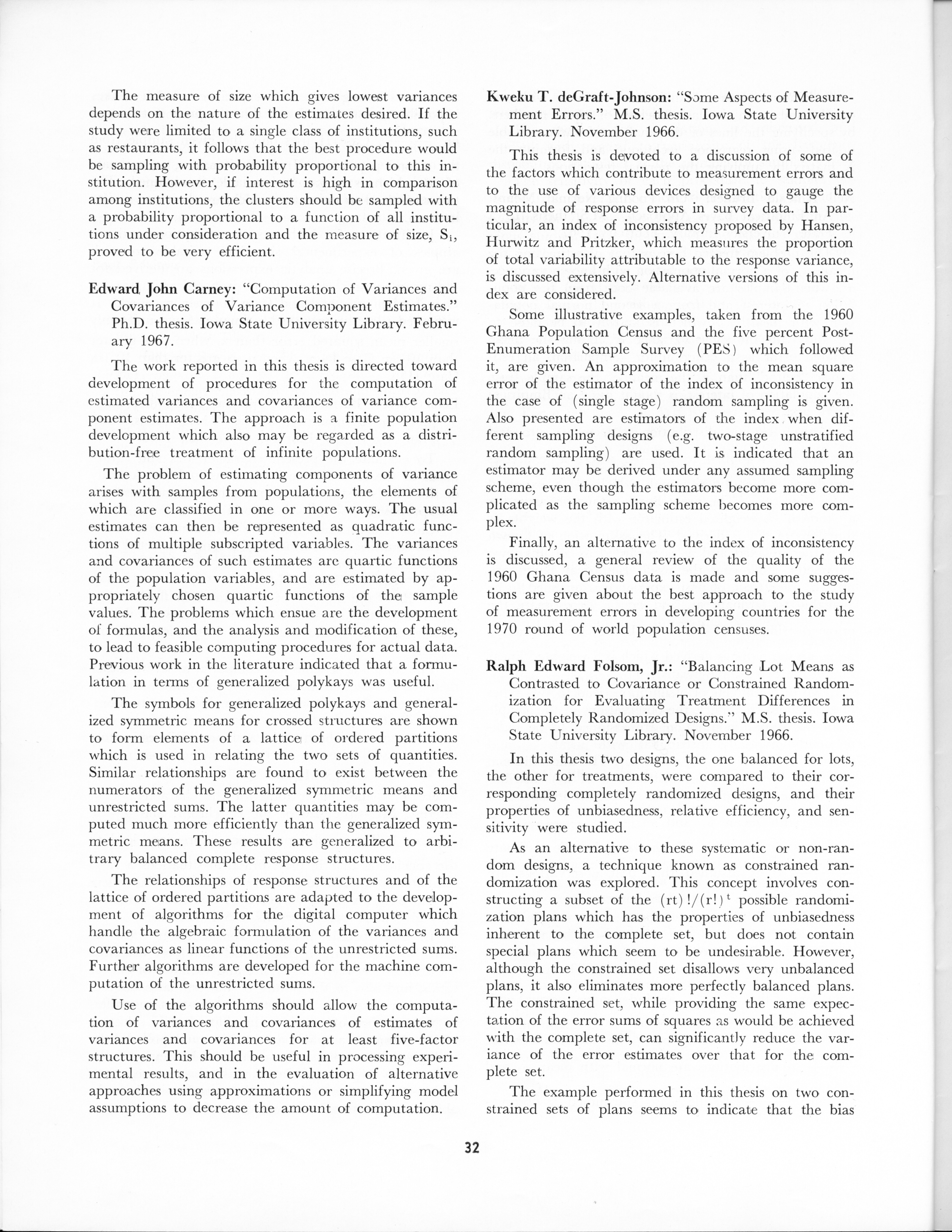 - "Statistical Laboratory Annual Report, July 1, 1966 to June 30, 1967", Iowa State University Statistical Laboratory Annual Reports, Iowa State University Library Digital Collections
