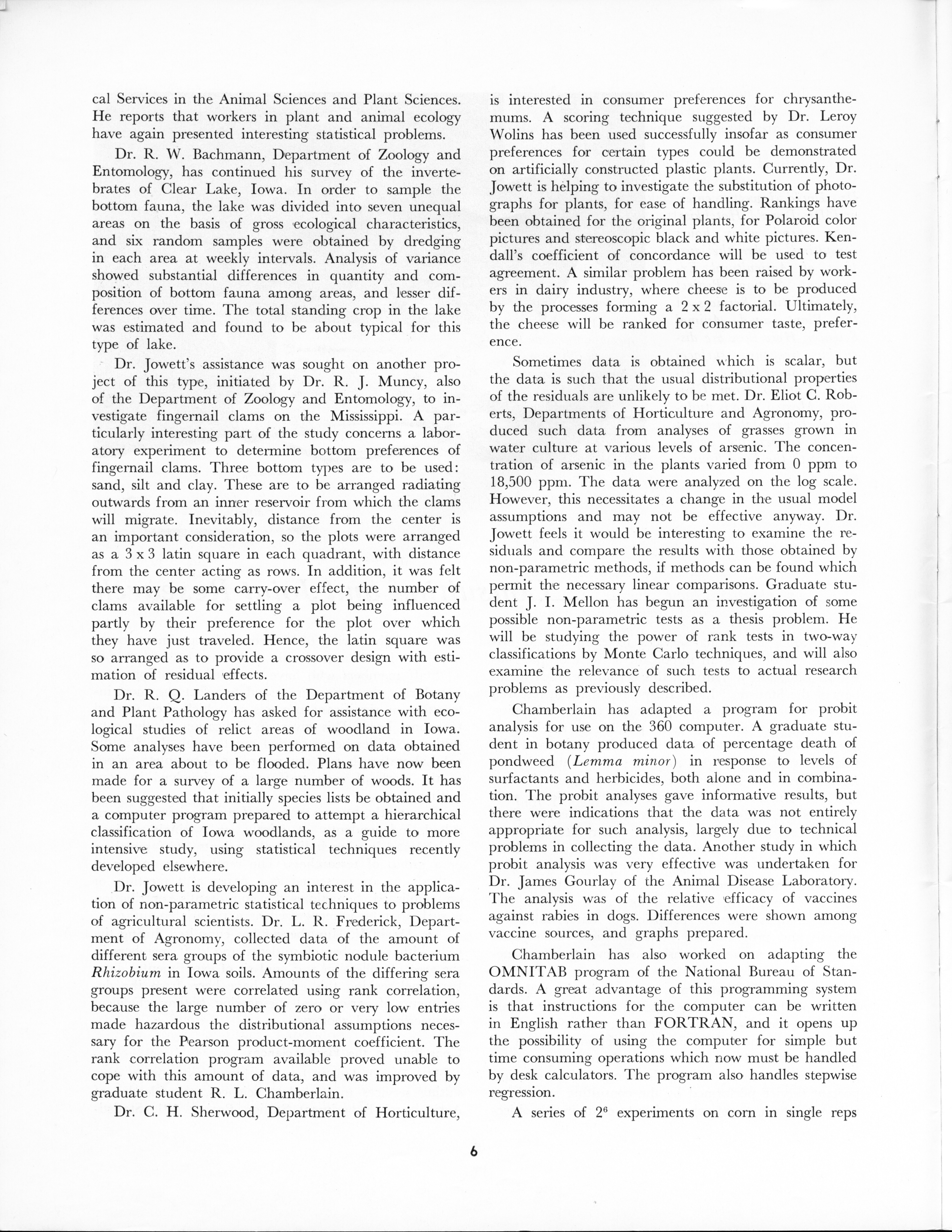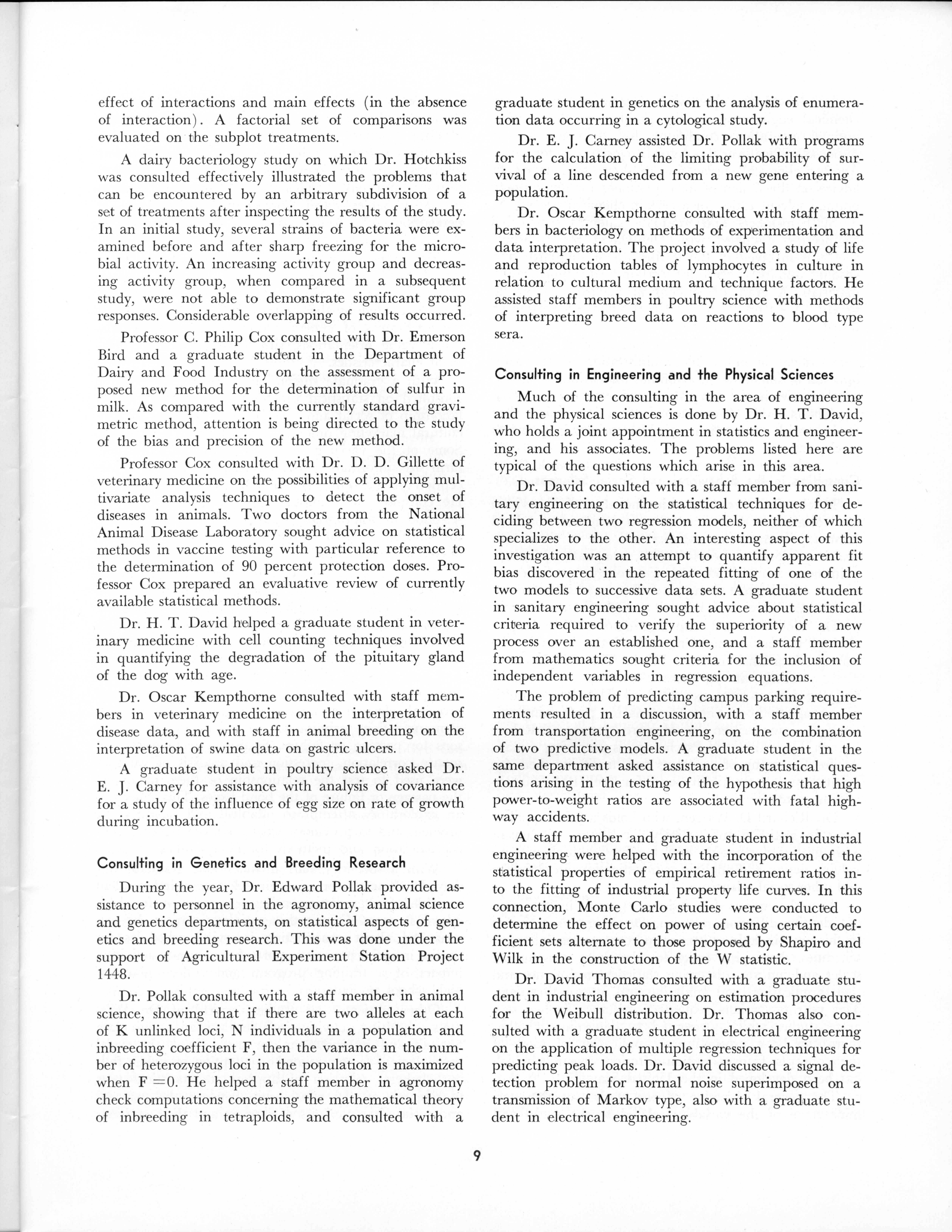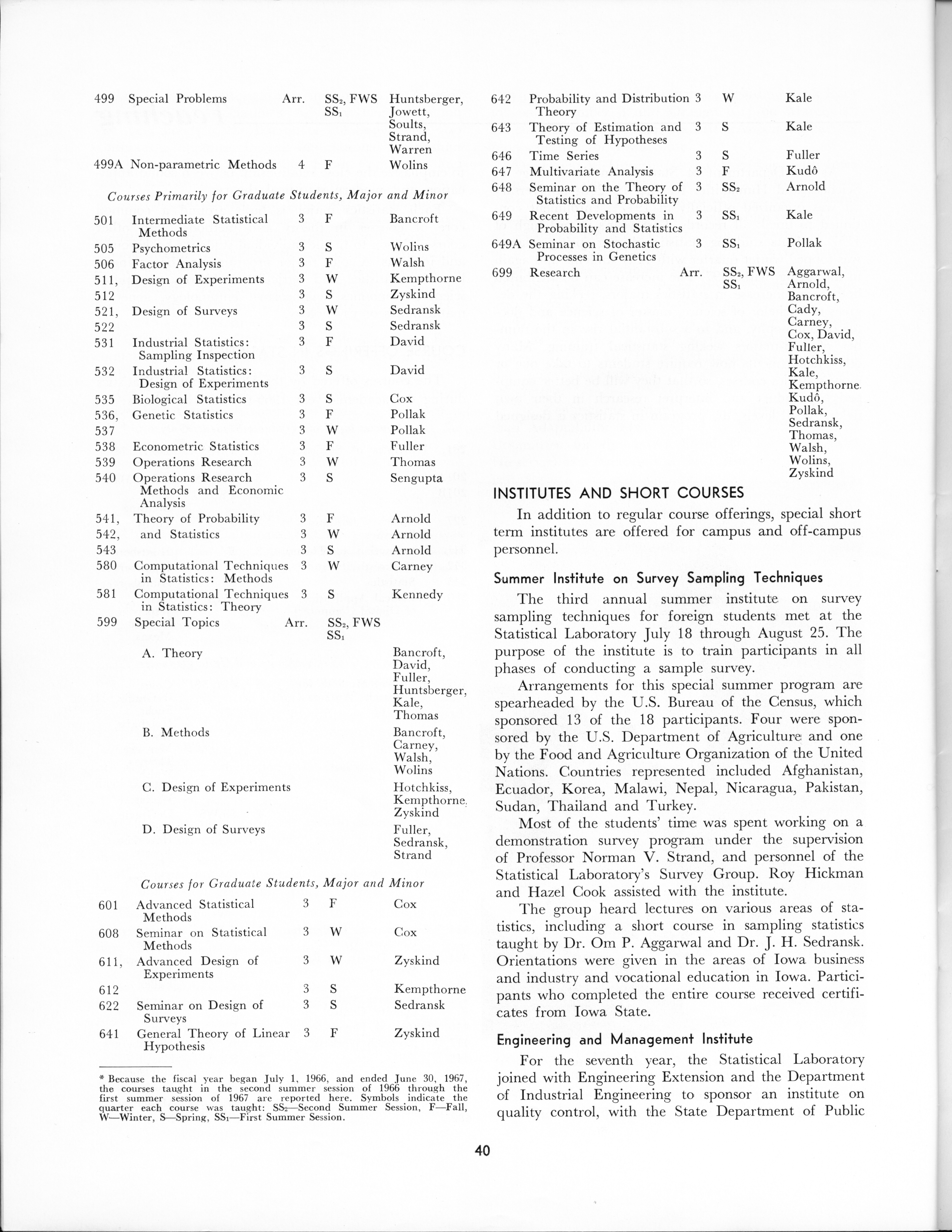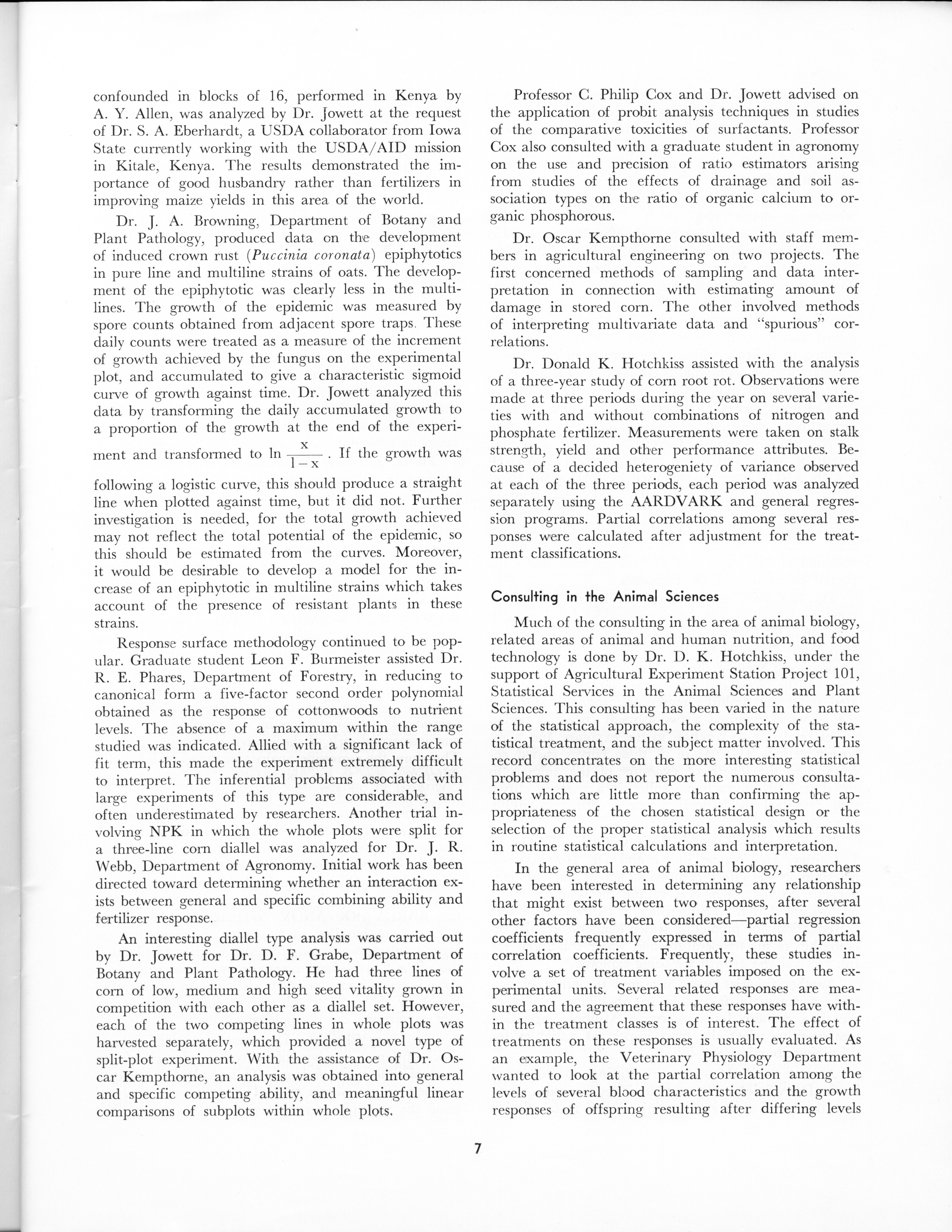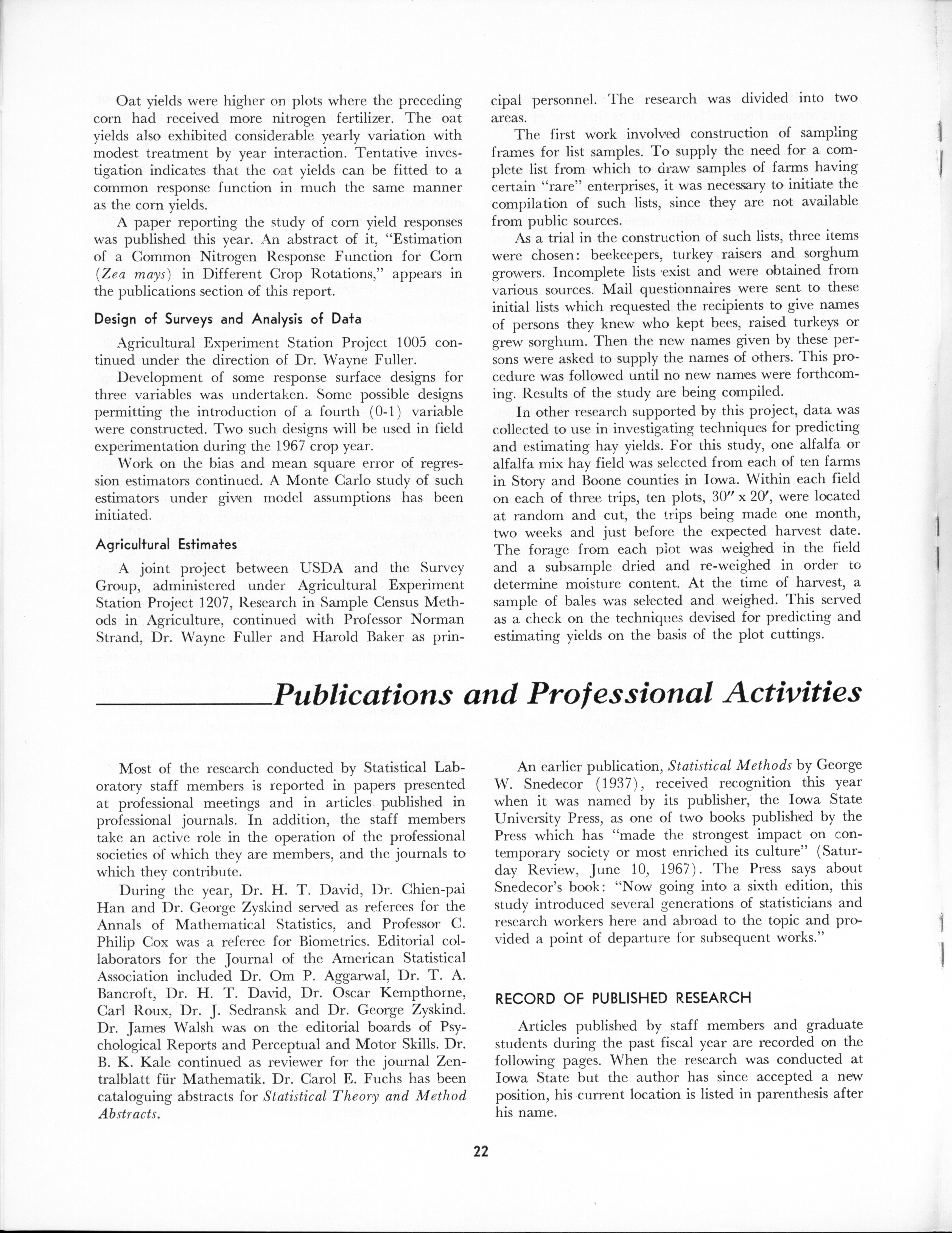 - "Statistical Laboratory Annual Report, July 1, 1966 to June 30, 1967", Iowa State University Statistical Laboratory Annual Reports, Iowa State University Library Digital Collections