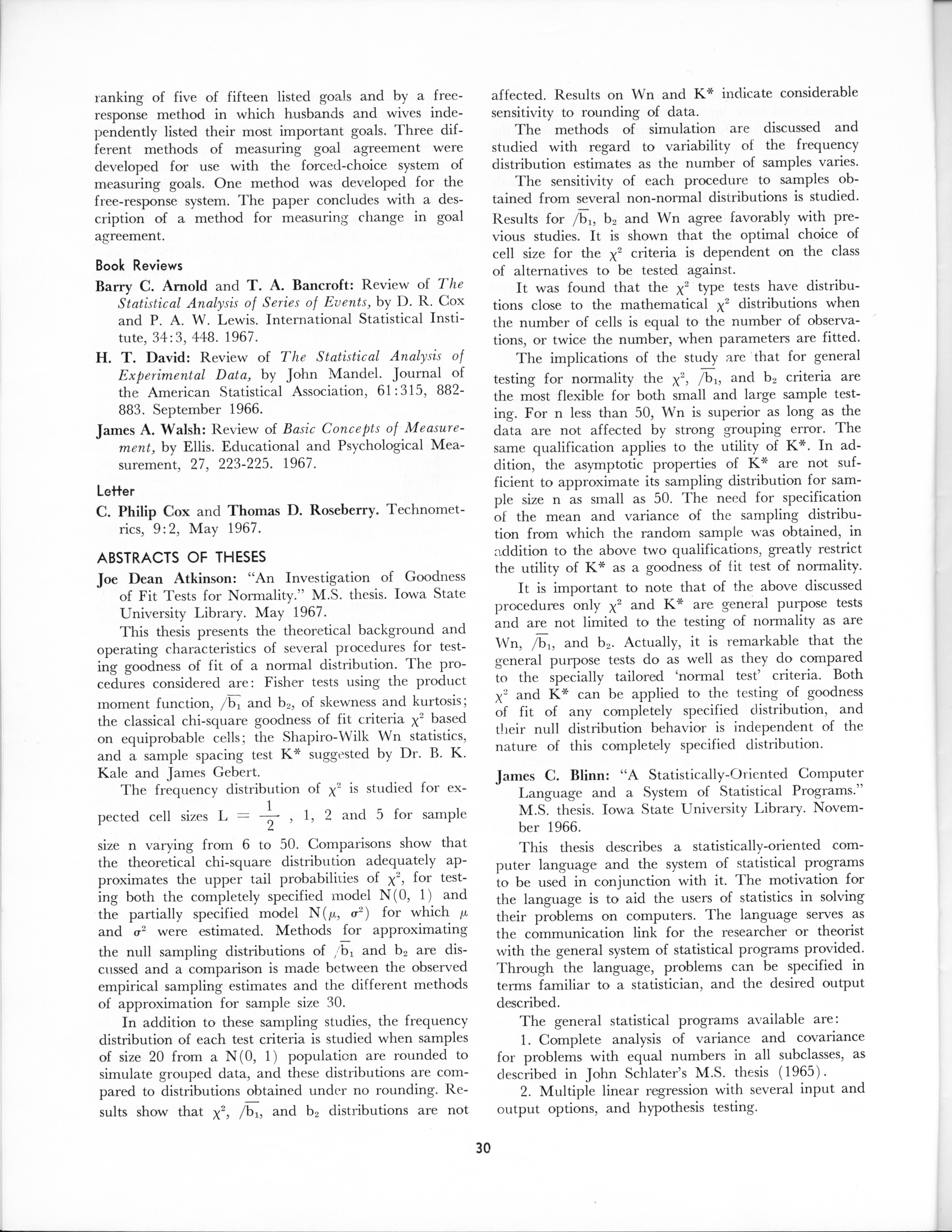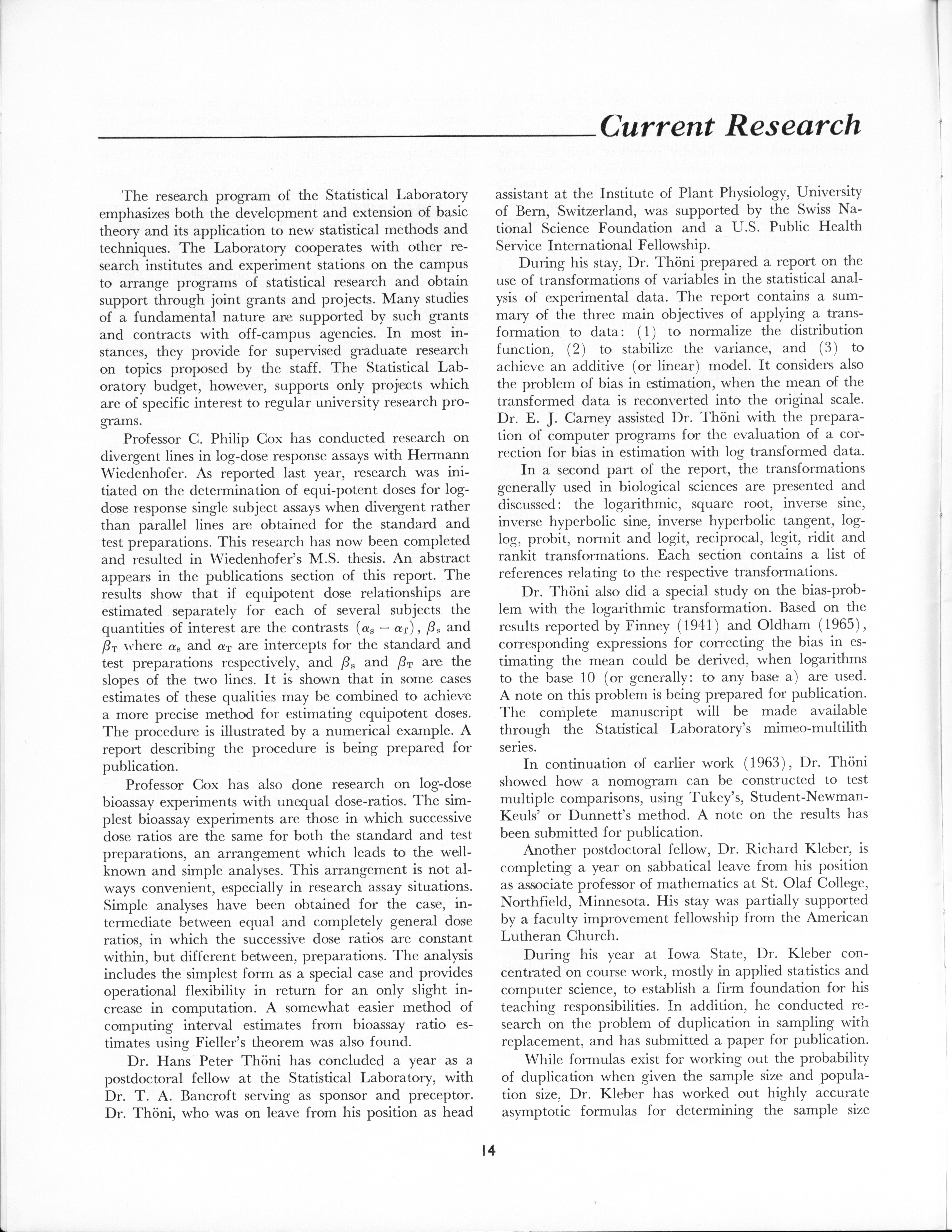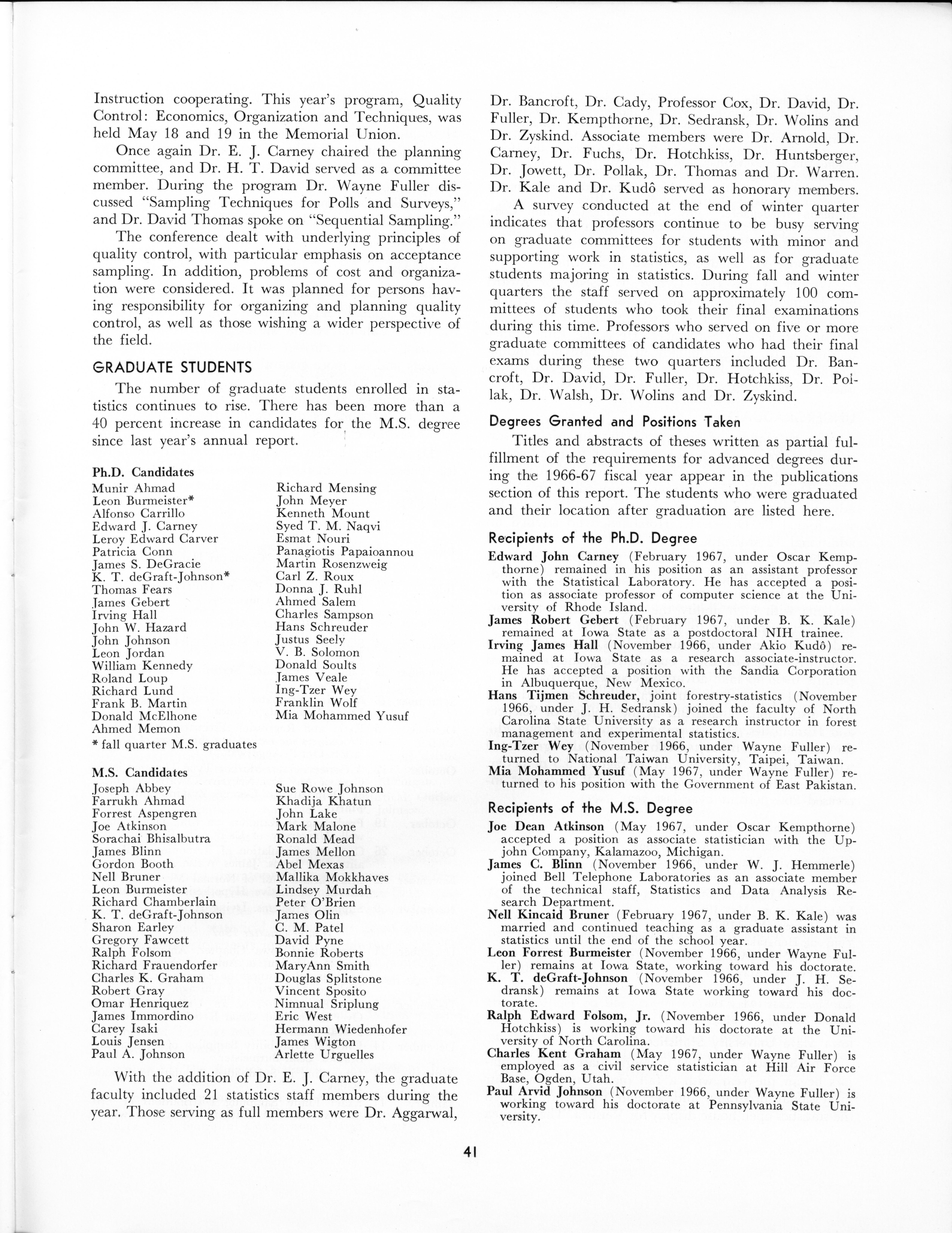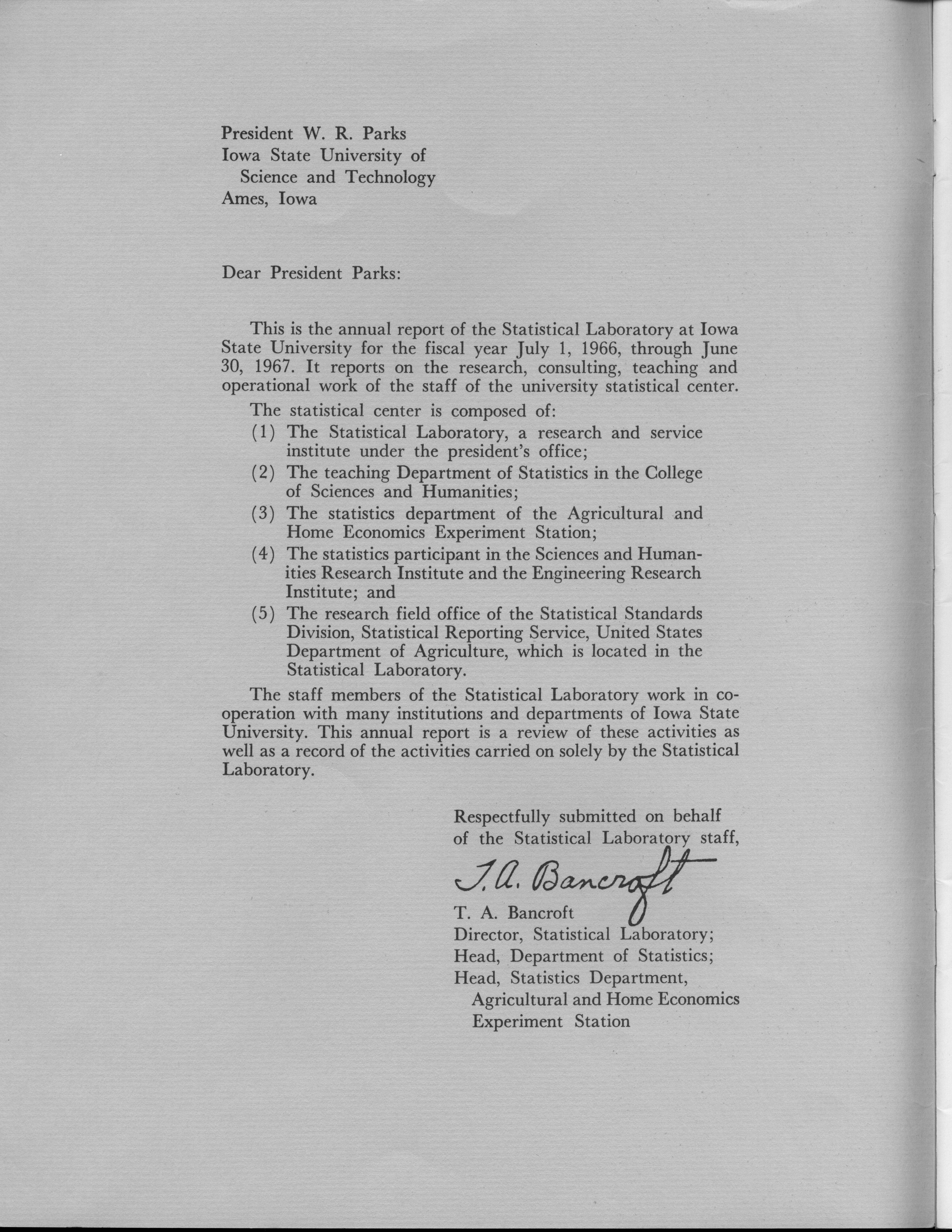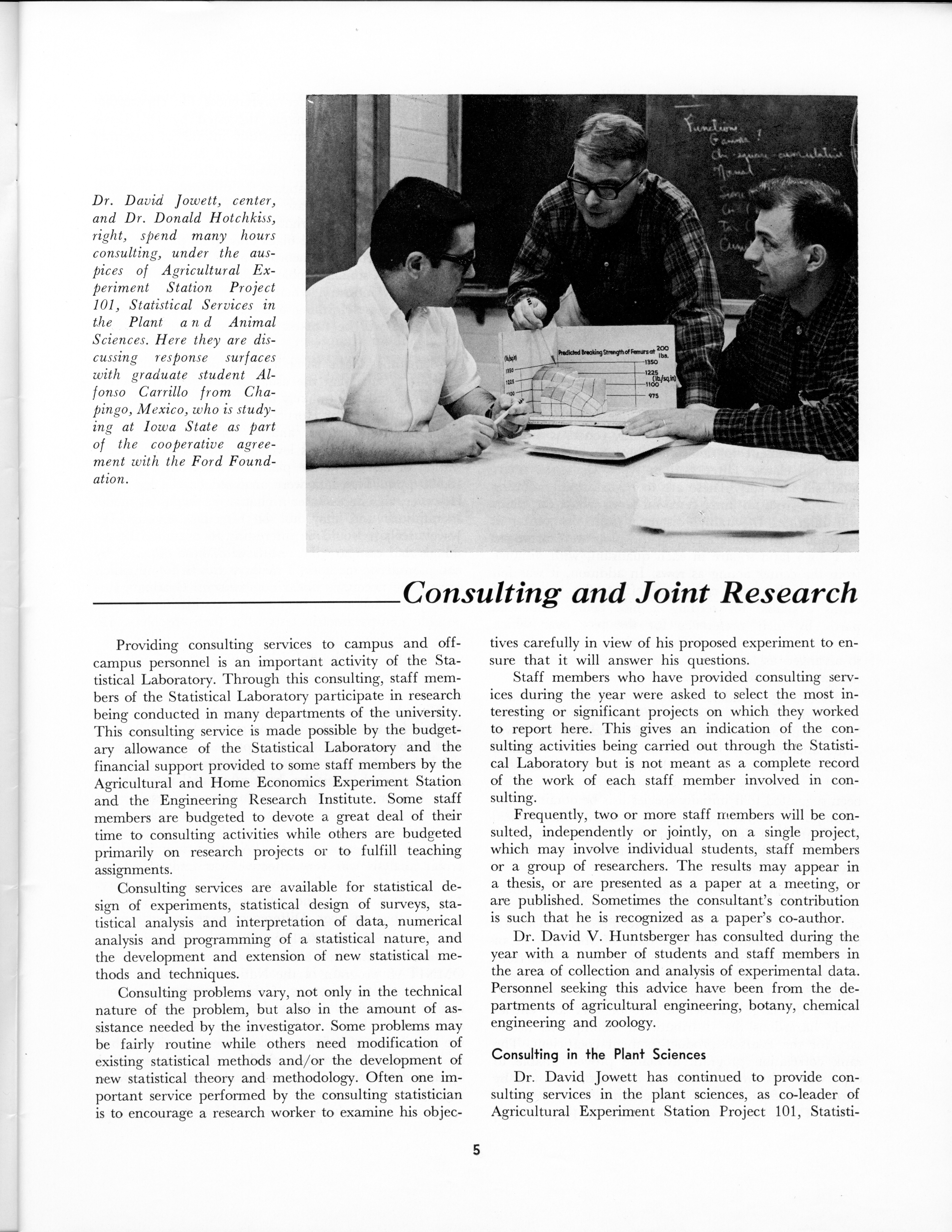 - "Statistical Laboratory Annual Report, July 1, 1966 to June 30, 1967", Iowa State University Statistical Laboratory Annual Reports, Iowa State University Library Digital Collections