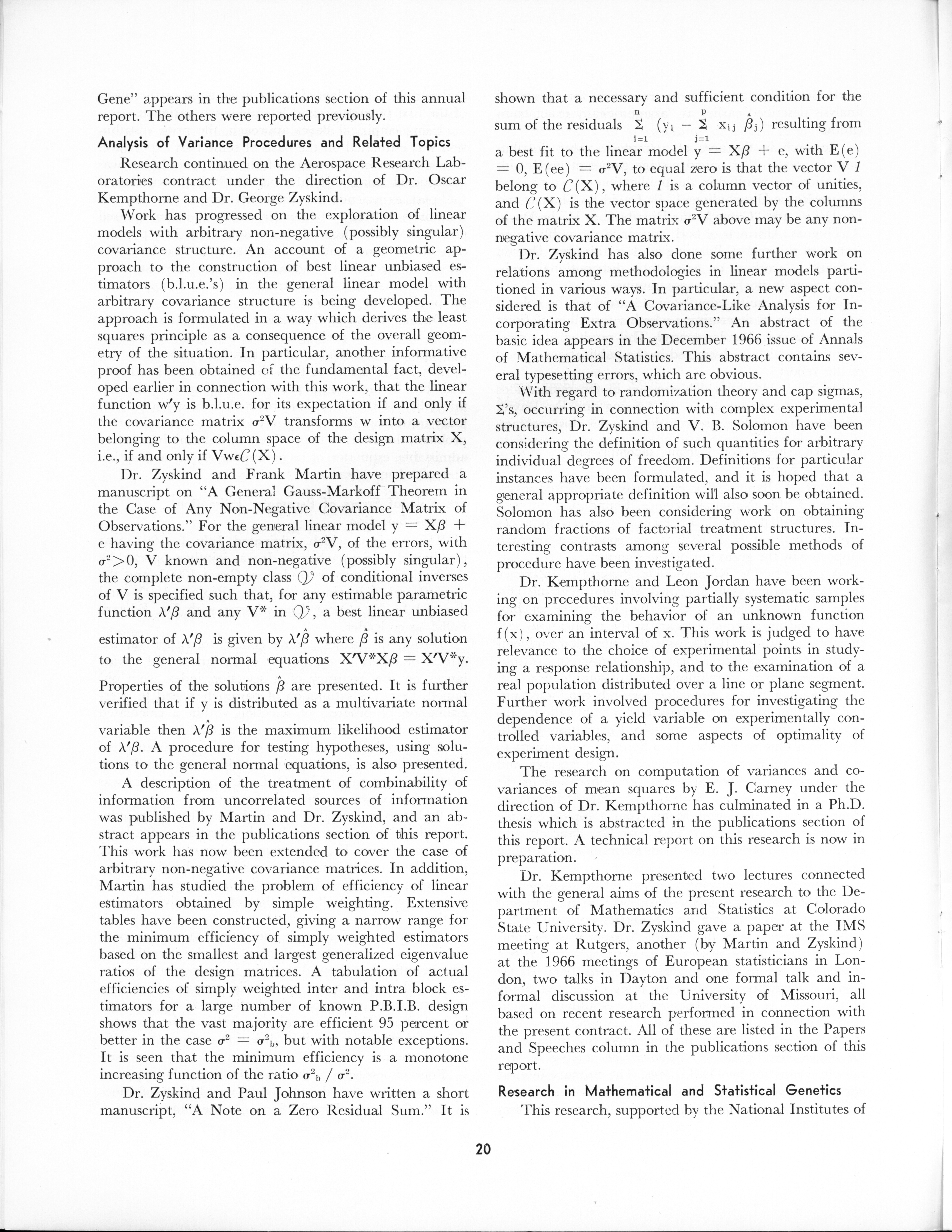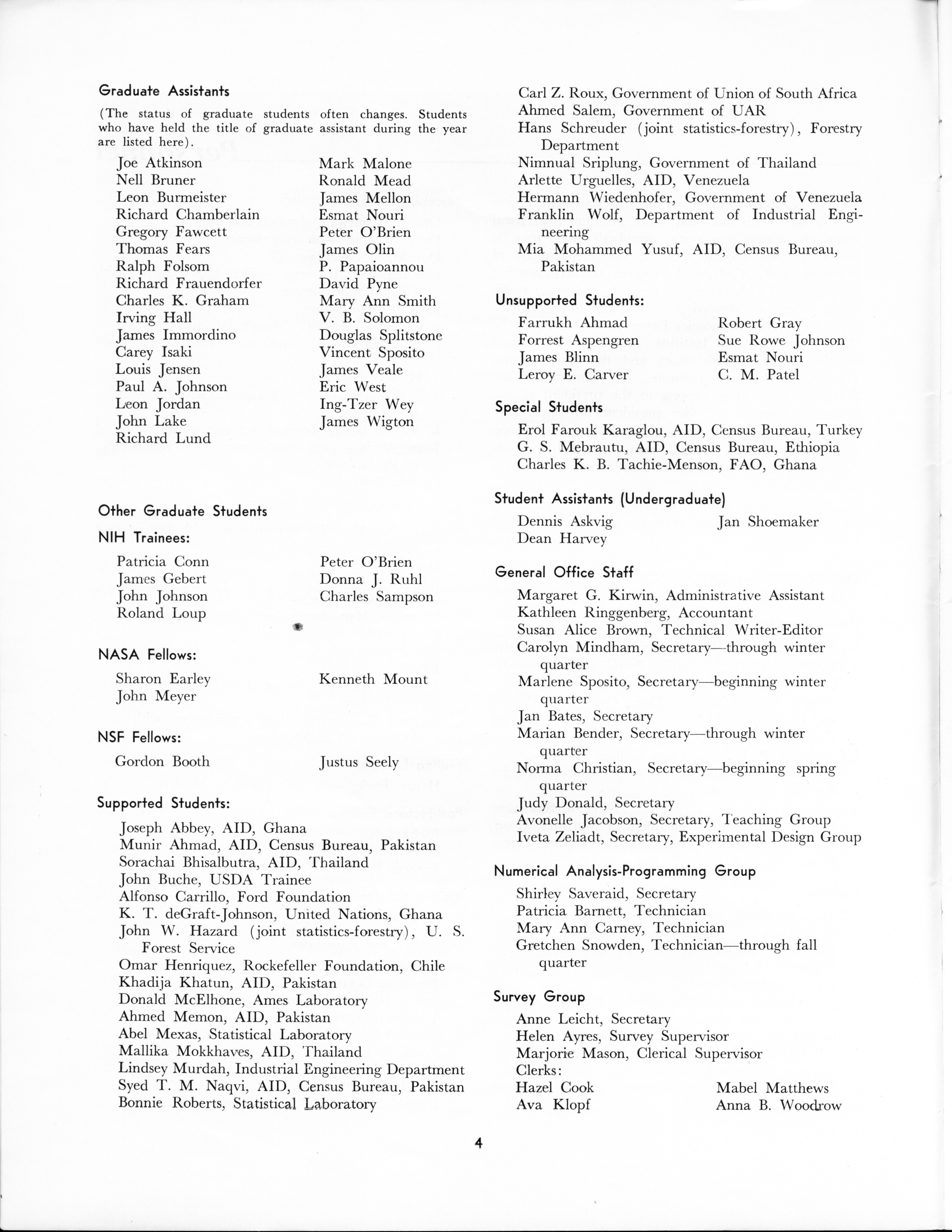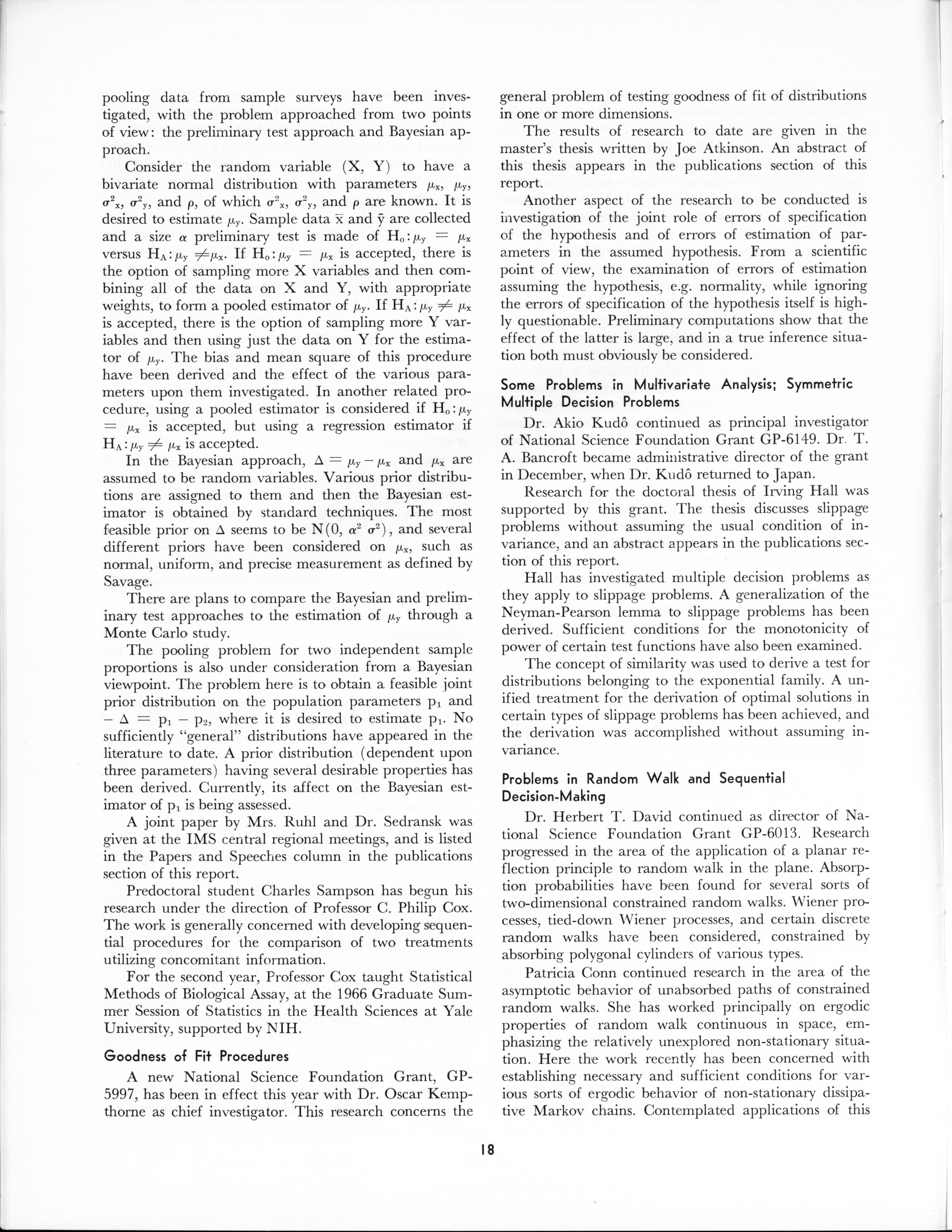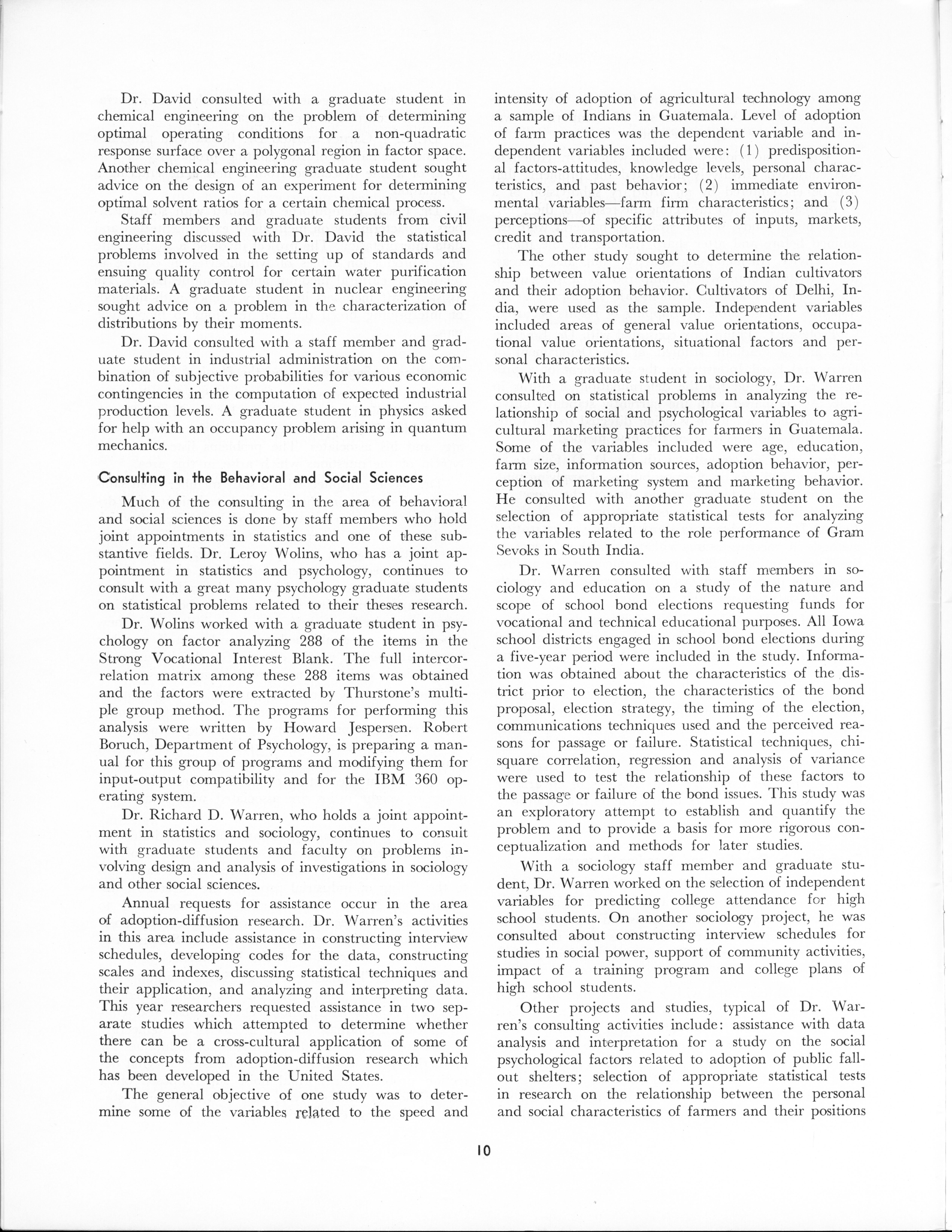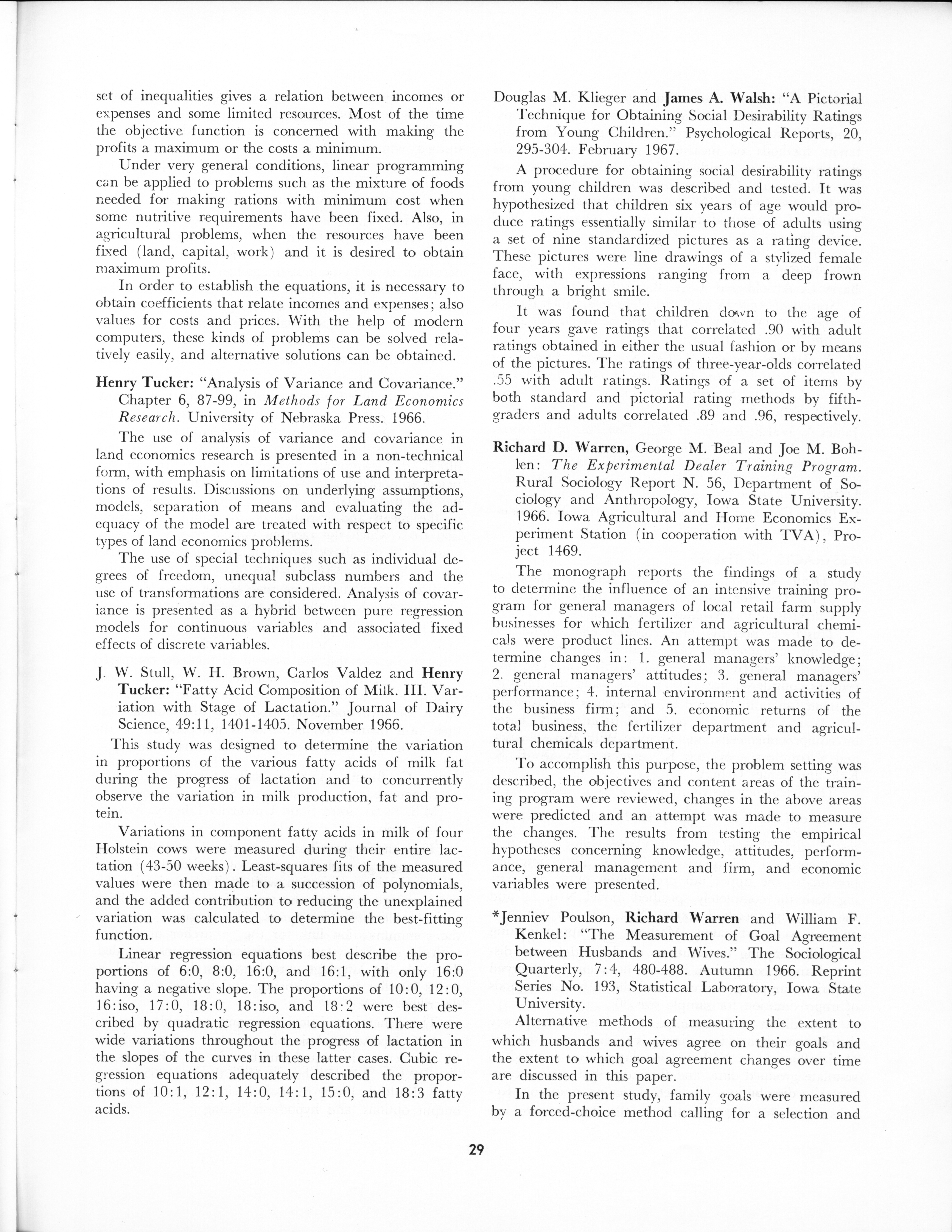 - "Statistical Laboratory Annual Report, July 1, 1966 to June 30, 1967", Iowa State University Statistical Laboratory Annual Reports, Iowa State University Library Digital Collections